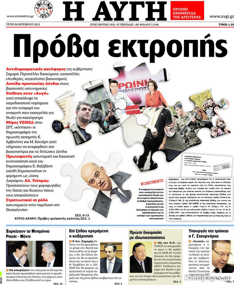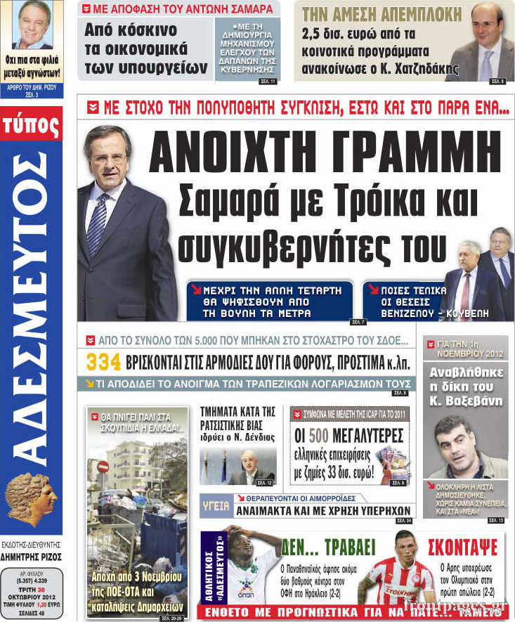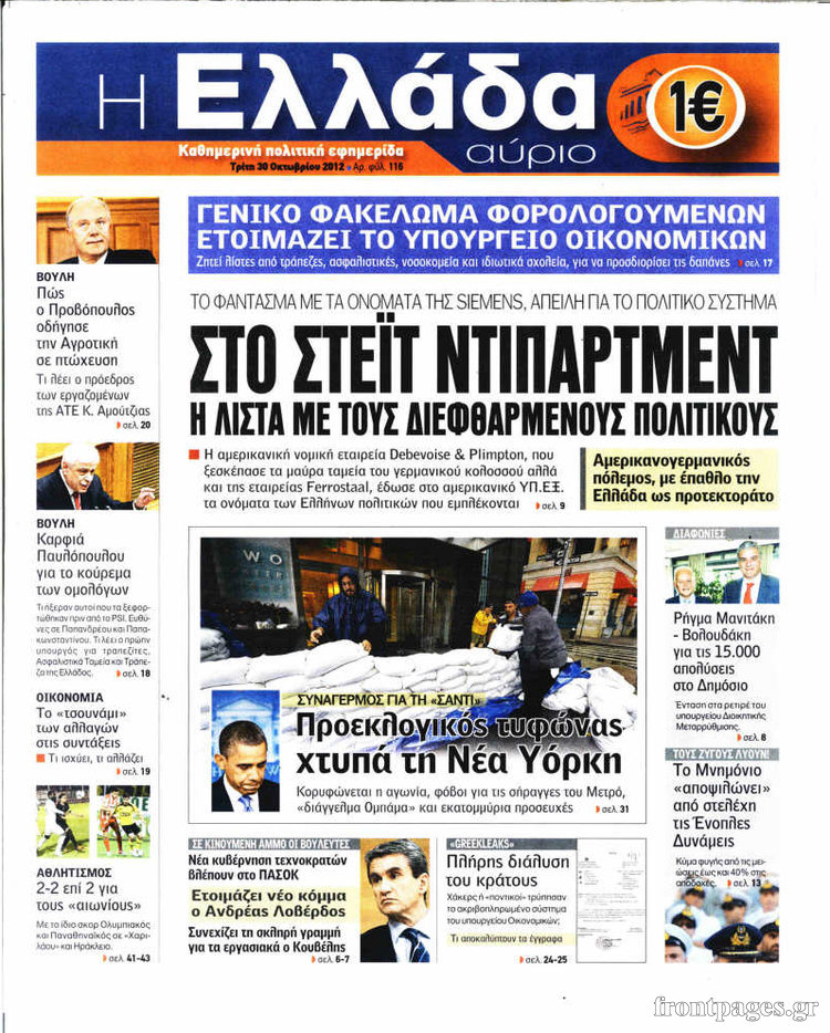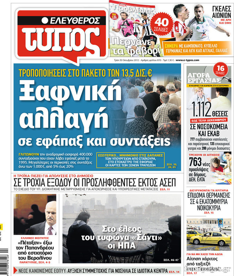 Οι πολιτικές εφημερίδες Enikos Newsroom 08:21, Τρίτη 30 Οκτωβρίου 2012 Media Οι πολιτικές εφημερίδες ΕΦΗΜΕΡΙΔΕΣ ΟΙ ΠΟΛΙΤΙΚΕΣ ΕΦΗΜΕΡΙΔΕΣ ΠΟΛΙΤΙΚΗ ΠΡΩΤΟΣΕΛΙΔΑ Μοιράσου το: σχολίασε κι εσύ (0 σχόλια) Ακολουθήστε το enikos.gr στο Google News και μάθετε πρώτοι όλες τις ειδήσεις Δείτε όλες τις τελευταίες ειδήσεις από την Ελλάδα και τον Κόσμο στο enikos.gr Ειδήσεις Ροή Ειδήσεων 4 ώρες πριν Αυτή είναι η λίστα με τα αιτήματα των αγροτών – Το «όχι» στη συνάντηση στο Μαξίμου και η έκκληση της κυβέρνησης για διάλογο με ανοιχτούς δρόμους 3 ώρες πριν Απάτες με επιδοτήσεις από τον ΟΠΕΚΕΠΕ στην Κρήτη: Ξεκίνησε η μεταγωγή των 16 συλληφθέντων στην Αθήνα – Τι λένε οι δικηγόροι τους 5 ώρες πριν Κρήτη: Θρίλερ με την εξαφάνιση του 33χρονου γιατρού – «Μου είπε “έλα πατέρα να μιλήσουμε γιατί δεν είμαι καλά”» 3 ώρες πριν Αργυρούπολη: Απείλησε με… τσεκούρι άλλον οδηγό ύστερα από καβγά – Στο αυτοκίνητό του βρέθηκε και αεροβόλο 2 ώρες πριν ΗΠΑ: Έψαχνε τον γιο του στο Ground Zero για έξι μήνες – 24 χρόνια αργότερα, η 11η Σεπτεμβρίου τον σκότωσε και αυτόν 44 λεπτά πριν Ύπνος: 9 πράγματα που μπορείτε να κάνετε πριν κοιμηθείτε για να ξυπνάτε πιο χαρούμενοι το πρωί, σύμφωνα με ειδικούς 2 ώρες πριν Αριθμολογία: Οι άνθρωποι που έχουν γεννηθεί αυτές τις 4 ημερομηνίες, δεν αντέχουν να κάνουν μία κλασική δουλειά γραφείου 4 ώρες πριν Γιατί δεν είστε ευτυχισμένοι: Τα 7 σημάδια που μαρτυρούν ότι αναζητάτε την πηγή της χαράς σε λάθος μέρη 3 ώρες πριν Χριστουγεννιάτικο δέντρο: Το έξυπνο κόλπο με τα στολίδια για να φαίνεται πιο γεμάτο 4 λεπτά πριν Η Κουταλένια: Η ιστορία ενός αυτιστικού κοριτσιού που βρίσκει παρηγοριά στη φωνή της Μαρίας Κάλλας ανεβαίνει στο θέατρο Μουσούρη 12 λεπτά πριν Αργυρούπολη: Έκλεψε το κινητό 74χρονου που επέβαινε σε συρμό του μετρό και… απαίτησε 100 ευρώ για να του το επιστρέψει 20 λεπτά πριν Φαίη Ξυλά: «Ήταν πολύ άσχημες περιπτώσεις – Δεν θα το άλλαζα, απλώς σίγουρα δεν θα το έκανα ξανά» 28 λεπτά πριν Άγιος έρωτας- επόμενα επεισόδια: Ο Αντρέας μαθαίνει ότι ο Χάρης είναι γιος του 36 λεπτά πριν Έφοδος της ΕΛ.ΑΣ. στις φυλακές Κορυδαλλού – Εντοπίστηκαν 4 κινητά τηλέφωνα ENIKOS NETWORK «Με αυτόν τον τρόπο κατάφερα να απογειώσω τη σεξουαλική μου ζωή» – Τι αποκαλύπτει 40χρονη Πείτε «τέλος» στην ακμή χωρίς φάρμακα – Ειδικός αποκαλύπτει αποτελεσματική ρουτίνα περιποίησης Νέα εποχή για την Εγνατία Οδό – Τι αλλάζει με επενδύσεις 1,8 δισ. ευρώ Στάση εργασίας στα λεωφορεία την Τετάρτη 17 Δεκεμβρίου – Κανονικά τα περιαστικά δρομολόγια Σύγχρονος Νοστράδαμος: Προειδοποιεί για «μεγάλο γεγονός» τους επόμενους μήνες που θα συγκλονίσει τη Βρετανία και τον κόσμο Τεστ παρατηρητικότητας: Μπορείτε να βρείτε τις 3 διαφορές στις εικόνες με έναν πιγκουίνο σε 14 δευτερόλεπτα περισσότερα 22:16 , Σάββατο 13 Δεκεμβρίου 2025 Άγιος έρωτας- επόμενα επεισόδια: Ο Αντρέας μαθαίνει ότι ο Χάρης είναι γιος του Μια εβδομάδα γεμάτη καταιγιστικές εξελίξεις στα νέα επεισόδια της σειράς “Άγιος Έρωτας... 20:40 , Σάββατο 13 Δεκεμβρίου 2025 HOTΕΛ ΕΛVIRA: Η Ελβίρα προσπαθεί να βγάλει οριστικά από το μυαλό της τον Χάρι, απόψε στις 21:00 Σε προεκλογικό πυρετό βρίσκεται το νησί, στο νέο επεισόδιο της κωμωδίας του MEGA, HOTΕΛ ΕΛVIRA... 18:00 , Σάββατο 13 Δεκεμβρίου 2025 Η Realnews στο www.pressreader.com Διαβάστε την ψηφιακή έκδοση της εφημερίδας στην οθόνη του κινητού, του tablet και του υπολογισ... 15:46 , Σάββατο 13 Δεκεμβρίου 2025 Τηλεθέαση (12/12): Ποιες εκπομπές της πρωινής ζώνης πήραν προβάδισμα την Παρασκευ