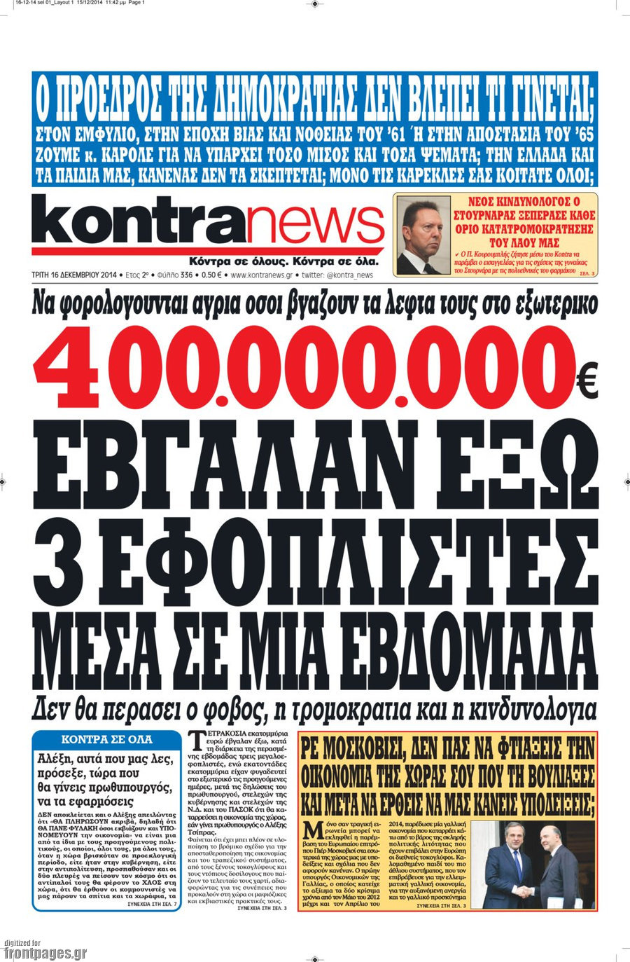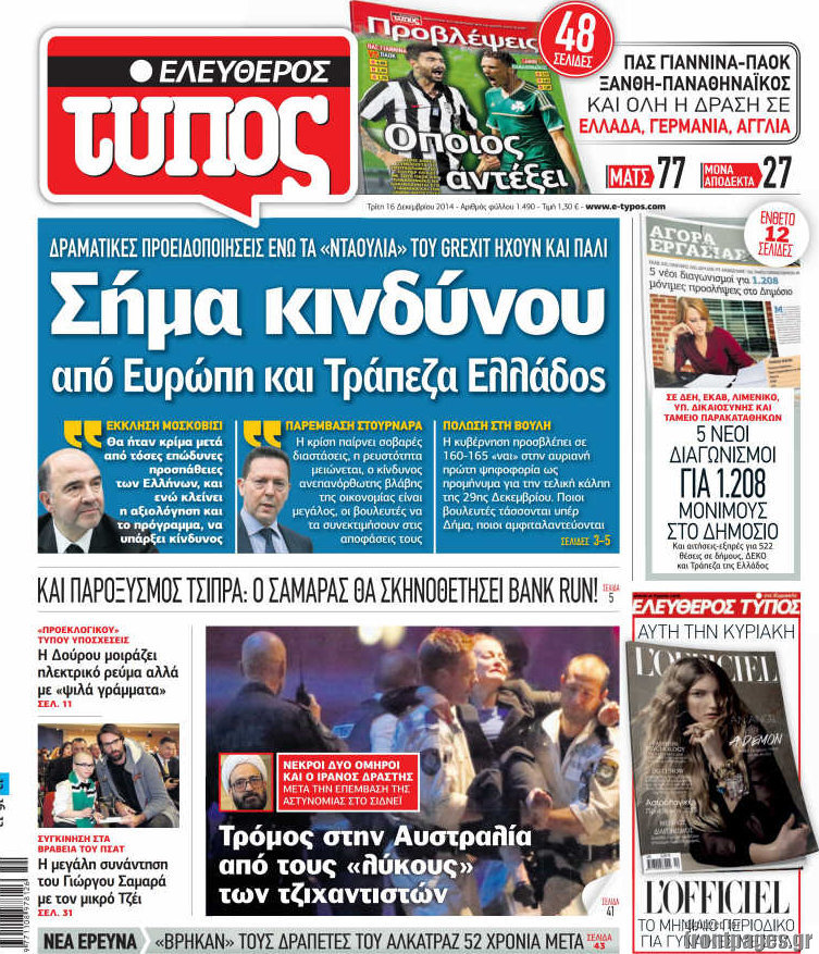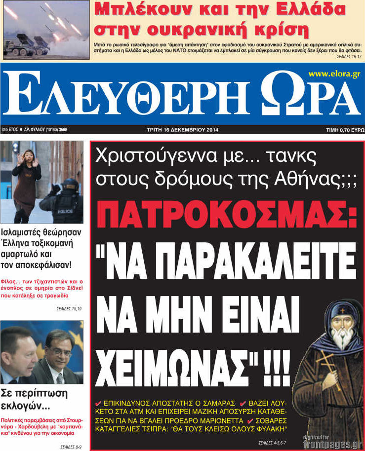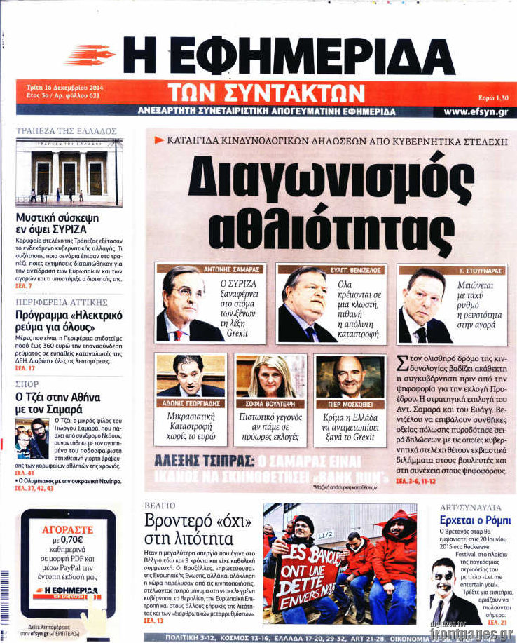 Οι πολιτικές εφημερίδες Enikos Newsroom 07:52, Τρίτη 16 Δεκεμβρίου 2014 Media Διαβάστε τα πρωτοσέλιδα των πολιτικών εφημερίδων: ΠΟΛΙΤΙΚΕΣ ΕΦΗΜΕΡΙΔΕΣ ΠΡΩΤΟΣΕΛΙΔΑ Μοιράσου το: σχολίασε κι εσύ (0 σχόλια) Ακολουθήστε το enikos.gr στο Google News και μάθετε πρώτοι όλες τις ειδήσεις Δείτε όλες τις τελευταίες ειδήσεις από την Ελλάδα και τον Κόσμο στο enikos.gr Ειδήσεις Ροή Ειδήσεων 2 ώρες πριν Υπόθεση Έπσταϊν: Το Υπουργείο Δικαιοσύνης δημοσιοποίησε μια σειρά από εξαιρετικά επεξεργασμένα αρχεία – «Λείπουν τα πιο σημαντικά έγγραφα», λένε οι Δημοκρατικοί 43 λεπτά πριν Ο «χάρτης» με τις αυξήσεις και τις φοροελαφρύνσεις του 2026 – Ποιοι και πόσα κερδίζουν 11 ώρες πριν Χριστούγεννα στα μπλόκα: Επιμένουν στις κινητοποιήσεις τους οι αγρότες – Ανοίγουν τα διόδια το Σαββατοκύριακο 2 ώρες πριν ΟΝΕΧ – MEGATUGS: Ξεκίνησε η ναυπήγηση ρυμουλκών στην Ελλάδα – Προθάλαμος πολεμικών πλοίων – Δείτε φωτογραφίες και βίντεο 2 ώρες πριν Καιρός: Αλλαγή σκηνικού σήμερα με βροχές και πτώση της θερμοκρασίας – Οι προβλέψεις των μετεωρολόγων για τα Χριστούγεννα 3 ώρες πριν Αυγά: Πόσα μπορείτε να τρώτε την ημέρα με ασφάλεια για μέγιστη πρόσληψη πρωτεΐνης 4 ώρες πριν Τα ζώδια σήμερα, Σάββατο 20 Δεκεμβρίου: Παρθένοι, το σύμπαν σας δίνει το κλειδί 3 ώρες πριν Οπτική ψευδαίσθηση: Μόνο αν είσαι ο Σέρλοκ Χολμς θα βρεις τον αριθμό «87» σε 7 δευτερόλεπτα 1 ώρα πριν Αρχαιολόγοι ανακάλυψαν σε χωράφι απεικόνιση 600 ετών ενός Αγίου – Τα στοιχεία που δείχνουν ότι μαρτύρησε 6 λεπτά πριν Ουκρανία: Drones έπληξαν εξέδρα πετρελαίου και πολεμικό πλοίο της Ρωσίας στην Κασπία 15 λεπτά πριν Παιδική υπέρταση: Μια σιωπηλή απειλή που αυξάνεται διεθνώς 16 λεπτά πριν Αγχώνεται για το χριστουγεννιάτικο δώρο που πήρε στην πλούσια σύντροφό του – «Φοβάμαι πως θα το βρει φθηνιάρικο, φοράει βραχιόλια Cartier» 22 λεπτά πριν Enerwave: Το νέο «ρεύμα» στη λιανική ενέργειας που αλλάζει την εμπειρία του καταναλωτή 27 λεπτά πριν Γιώργος Μαζωνάκης: Τη Δευτέρα η μήνυση του τραγουδιστή κατά του 22χρονου ENIKOS NETWORK Πόσα κιλά παίρνουμε πραγματικά τα Χριστούγεννα, σύμφωνα με την επιστήμη – Πώς να το αποτρέψουμε; Το δημοφιλές ρόφημα που αυξάνει την πίεση πιο γρήγορα και από το αλάτι Mega χριστουγεννιάτικη φορολοταρία: «Κλείδωσε» η ημερομηνία για την κλήρωση – Ερωτήσεις και απαντήσεις Αναστολή μέτρων αναγκαστικής εκτέλεσης για κτηνοτρόφους που πλήττονται από την ευλογιά των αιγοπροβάτων Χαρτογραφώντας το «σημείο χωρίς επιστροφή»: Για πρώτη φορά αποκαλύπτεται με λεπτομέρεια το ακανθώδες όριο της ατμόσφαιρας τ... Η Google καταργεί τη λειτουργία «dark web report» – Πώς θα μπορούν οι χρήστες να διαγράφουν τα δεδομένα τους περισσότερα 08:14 , Σάββατο 20 Δεκεμβρίου 2025 Τρομεροί γονείς: Η Μαρία Καβογιάννη εισβάλλει στο σπίτι της οικογένειας Στεφανίδη Όσα θα δούμε στο νέο διπλό επεισόδιο της σειράς «Τρομεροί γονείς», σήμερα Σάββατο 20 Δεκεμβρίο... 05:48 , Σάββατο 20 Δεκεμβρίου 2025 Οι οικονομικές εφημερίδες 20/12/2025 Διαβάστε τα πρωτοσέλιδα από τις οικονομικές εφημερίδες, σήμερα 20/12/2025. 05:43 , Σάββατο 20 Δεκεμβρίου 2025 Οι αθλητικές εφημερίδες 20/12/2025 Διαβάστε τα πρωτοσέλιδα από τις αθλητικές εφημερίδες, σήμερα 20/12/2025. 05:38 , Σάββατο 20 Δεκεμβρίου 2025 Οι πολιτικές εφημερίδες 20/12/2025 Διαβάστε τα πρωτοσέλιδα από τις πολιτικές εφημερίδες, σήμερα 20/12/2025. ΤΕΛΕΥΤΑΙΕΣ ΕΙΔΗΣΕΙΣ 6 λεπτά πριν Ουκρανία: Drones έπληξαν εξέδρα πετρελαίου και πολεμικό... 15 λεπτά πριν Παιδική υπέρταση: Μια σιωπηλή απειλή που αυξάνεται... 16 λεπτ