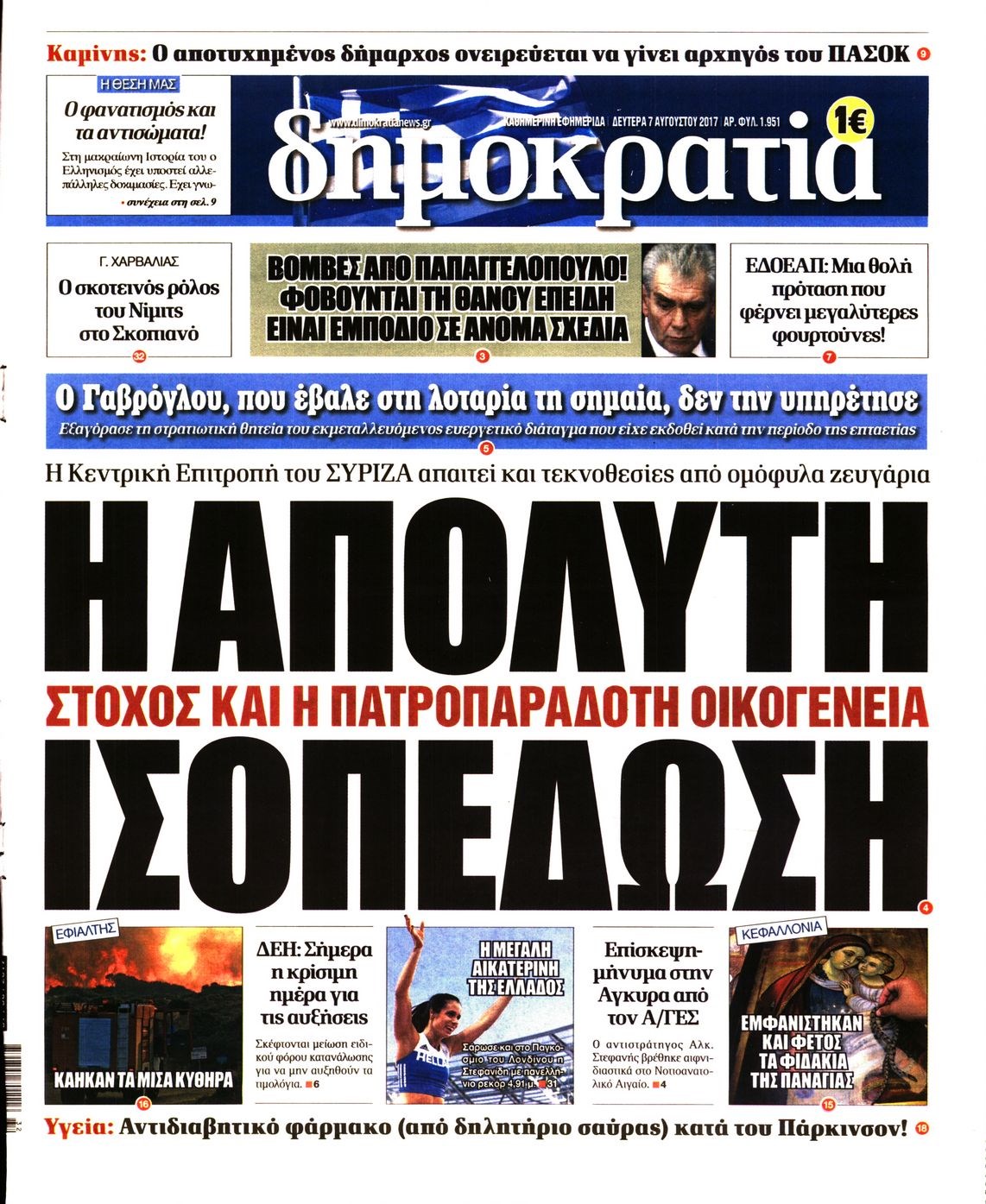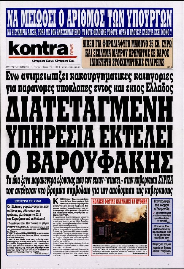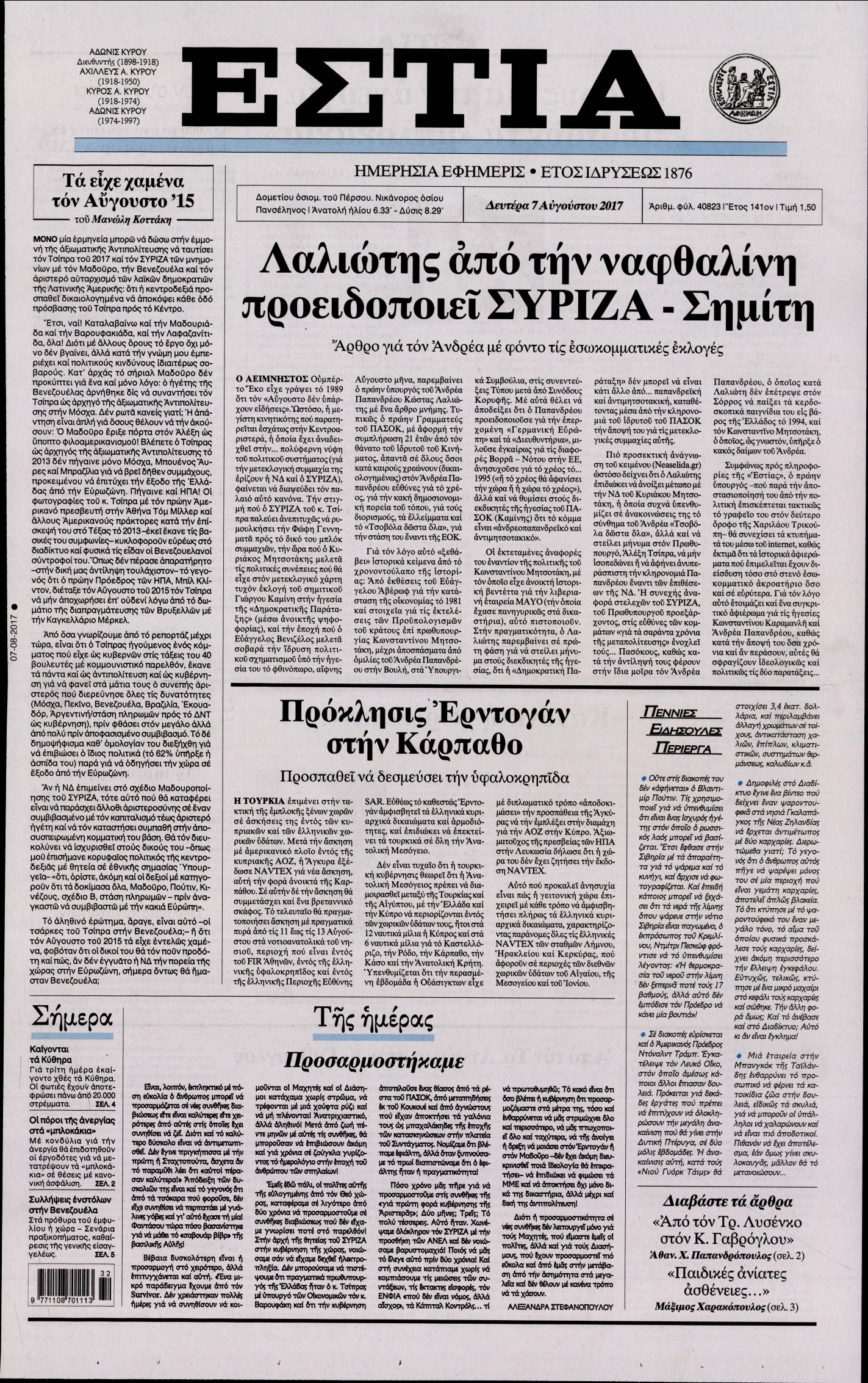 Οι πολιτικές εφημερίδες 7/8/2017 Κώστας Τεό 06:32, Δευτέρα 07 Αυγούστου 2017 Media Διαβάστε τα σημερινά πρωτοσέλιδα των πολιτικών εφημερίδων: ΠΟΛΙΤΙΚΕΣ ΕΦΗΜΕΡΙΔΕΣ ΠΡΩΤΟΣΕΛΙΔΑ Μοιράσου το: σχολίασε κι εσύ (0 σχόλια) Ακολουθήστε το enikos.gr στο Google News και μάθετε πρώτοι όλες τις ειδήσεις Δείτε όλες τις τελευταίες ειδήσεις από την Ελλάδα και τον Κόσμο στο enikos.gr Ειδήσεις Ροή Ειδήσεων 10 λεπτά πριν Υπόθεση Έπσταϊν: Το Υπουργείο Δικαιοσύνης δημοσιοποίησε μια σειρά από εξαιρετικά επεξεργασμένα αρχεία – «Λείπουν τα πιο σημαντικά έγγραφα», λένε οι Δημοκρατικοί 2 ώρες πριν Σαρωτικοί οι έλεγχοι στους δρόμους ενόψει εορτών – Μπλόκα της τροχαίας σε κεντρικές αρτηρίες της Αττικής 21 λεπτά πριν ΟΝΕΧ – MEGATUGS: Ξεκίνησε η ναυπήγηση ρυμουλκών στην Ελλάδα – Προθάλαμος πολεμικών πλοίων – Δείτε φωτογραφίες και βίντεο 9 ώρες πριν Χριστούγεννα στα μπλόκα: Επιμένουν στις κινητοποιήσεις τους οι αγρότες – Ανοίγουν τα διόδια το Σαββατοκύριακο 9 ώρες πριν Πούτιν: Τα μηνύματα σε Ευρώπη και ΝΑΤΟ από το μαραθώνιο «σόου» του – Η απαίτηση για «σεβασμό» και η ειρήνη «με τους όρους» της Μόσχας 2 ώρες πριν Αυγά: Πόσα μπορείτε να τρώτε την ημέρα με ασφάλεια για μέγιστη πρόσληψη πρωτεΐνης 2 ώρες πριν Τα ζώδια σήμερα, Σάββατο 20 Δεκεμβρίου: Παρθένοι, το σύμπαν σας δίνει το κλειδί 9 ώρες πριν Ανακαλύφθηκαν αρχαία χρυσά νομίσματα 2.200 ετών που απεικονίζουν τον θεό Απόλλωνα – Η άγνωστη σύνδεση με τον Φίλιππο Β΄ της Μακεδονίας 2 ώρες πριν Οπτική ψευδαίσθηση: Μόνο αν είσαι ο Σέρλοκ Χολμς θα βρεις τον αριθμό «87» σε 7 δευτερόλεπτα 5 λεπτά πριν ΗΠΑ: Τέσσερις μετανάστες πέθαναν σε κέντρα κράτησης – Αύξηση θανάτων σε επίπεδο ρεκόρ το 2025 10 λεπτά πριν Υπόθεση Έπσταϊν: Το Υπουργείο Δικαιοσύνης δημοσιοποίησε μια σειρά από εξαιρετικά επεξεργασμένα αρχεία – «Λείπουν τα πιο σημαντικά έγγραφα», λένε οι Δημοκρατικοί 13 λεπτά πριν Καιρός: Αλλαγή σκηνικού σήμερα με βροχές και πτώση της θερμοκρασίας – Οι προβλέψεις των μετεωρολόγων για τα Χριστούγεννα 21 λεπτά πριν ΟΝΕΧ – MEGATUGS: Ξεκίνησε η ναυπήγηση ρυμουλκών στην Ελλάδα – Προθάλαμος πολεμικών πλοίων – Δείτε φωτογραφίες και βίντεο 30 λεπτά πριν Φοινικούντα: Σήμερα απολογείται ο 30χρονος γιος γνωστού επιχειρηματία της Πλάκας ENIKOS NETWORK Το τεστ των 10 δευτερολέπτων που μπορεί να προβλέψει το προσδόκιμο ζωής σας – Τι λέει ειδικός του Cleveland Επιλέξτε καρέκλα για να μάθετε ποια είναι τα κρυφά χαρακτηριστικά σας – Τι αποκάλυψε για εσάς αυτό το τεστ προσωπικότητας; Αναστολή μέτρων αναγκαστικής εκτέλεσης για κτηνοτρόφους που πλήττονται από την ευλογιά των αιγοπροβάτων Πλήρης επάρκεια προϊόντων στις λαϊκές της Αττικής, παρά τις αγροτικές κινητοποιήσεις – Τι απαντούν οι πωλητές Χαρτογραφώντας το «σημείο χωρίς επιστροφή»: Για πρώτη φορά αποκαλύπτεται με λεπτομέρεια το ακανθώδες όριο της ατμόσφαιρας τ... Η Google καταργεί τη λειτουργία «dark web report» – Πώς θα μπορούν οι χρήστες να διαγράφουν τα δεδομένα τους περισσότερα 05:48 , Σάββατο 20 Δεκεμβρίου 2025 Οι οικονομικές εφημερίδες 20/12/2025 Διαβάστε τα πρωτοσέλιδα από τις οικονομικές εφημερίδες, σήμερα 20/12/2025. 05:43 , Σάββατο 20 Δεκεμβρίου 2025 Οι αθλητικές εφημερίδες 20/12/2025 Διαβάστε τα πρωτοσέλιδα από τις αθλητικές εφημερίδες, σήμερα 20/12/2025. 05:38 , Σάββατο 20 Δεκεμβρίου 2025 Οι πολιτικές εφημερίδες 20/12/2025 Διαβάστε τα πρωτοσέλιδα από τις πολιτικές εφημερίδες, σήμερα 20/12/2025. 04:20 , Σάββατο 20 Δεκεμβρίου 2025 Αγγελική Νικολούλη: Τα συλλυπητήρια για την απ