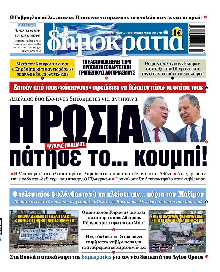 Οι πολιτικές εφημερίδες 7/8/2018 Enikos Newsroom 06:45, Τρίτη 07 Αυγούστου 2018 Media Διαβάστε τα πρωτοσέλιδα ΠΟΛΙΤΙΚΕΣ ΕΦΗΜΕΡΙΔΕΣ Μοιράσου το: σχολίασε κι εσύ (0 σχόλια) Ακολουθήστε το enikos.gr στο Google News και μάθετε πρώτοι όλες τις ειδήσεις Δείτε όλες τις τελευταίες ειδήσεις από την Ελλάδα και τον Κόσμο στο enikos.gr Ειδήσεις Ροή Ειδήσεων 7 ώρες πριν Ρετζέπ Ταγίπ Ερντογάν: Δεν έχουμε καμία βλέψη στα εδάφη ή την κυριαρχία κανενός – Δεν θα επιτρέψουμε να παραβιαστούν τα δικαιώματά μας 9 ώρες πριν Χριστούγεννα στα μπλόκα οι αγρότες: Άνοιξαν στα διόδια και μοίρασαν προϊόντα στους πολίτες – Νέα σύσκεψη την Κυριακή στη Νίκαια 9 ώρες πριν Αρχεία Επστάιν: Οι 500 σελίδες που λείπουν, τα αναπάντητα ερωτήματα και οι επώνυμοι – Τι έπεται 9 ώρες πριν Κύκλωμα διακίνησης ναρκωτικών σε σχολεία: Τηλεφωνούσαν στους ανηλίκους την ώρα του μαθήματος – Οι διάλογοι-σοκ, τα «ψευδώνυμα» και τα βασανιστήρια 8 ώρες πριν H ακτοφυλακή των ΗΠΑ κατάσχεσε και δεύτερο τάνκερ στα ανοιχτά της Βενεζουέλας – Δείτε βίντεο 1 ώρα πριν Οπτική ψευδαίσθηση: Μόνο το 2% των ανθρώπων θα βρει την πεταλούδα σε 15 δευτερόλεπτα 2 ώρες πριν Μήλο vs μπανάνα: Ποιο φρούτο έχει περισσότερες φυτικές ίνες, σύμφωνα με διαιτολόγους – Τα οφέλη τους για την υγεία 2 ώρες πριν Τα ζώδια σήμερα, Κυριακή 21 Δεκεμβρίου: Αιγόκεροι, αποφασίζετε για το επόμενο κεφάλαιο της ζωής σας 23 ώρες πριν Enerwave: Το νέο «ρεύμα» στη λιανική ενέργειας που αλλάζει την εμπειρία του καταναλωτή 28 λεπτά πριν Σήμερα με τη Realnews: Ό,τι και αν αγοράσεις, σκανάρεις και κερδίζεις! 2 λεπτά πριν Οι αθλητικές μεταδόσεις 21/12/2025 10 λεπτά πριν LEGEND: Ο διάδοχος της φρεγάτας Constellation έρχεται από την ακτοφυλακή των ΗΠΑ 18 λεπτά πριν Καιρός: Βροχές και χαμηλές θερμοκρασίες σήμερα – Η πρόγνωση για τα Χριστούγεννα 27 λεπτά πριν Εορτολόγιο: Ποιοι γιορτάζουν σήμερα 21 Δεκεμβρίου ENIKOS NETWORK Το αφροδισιακό φυλλώδες λαχανικό που μπορεί να προστατεύσει τα μάτια και να καταπολεμήσει τον καρκίνο Το απόλυτο κόλπο με το αυτοκόλλητο για να βγει πρώτη η βαλίτσα σας από το αεροπλάνο «Πολεμική» προετοιμασία από την ευρωπαϊκή βιομηχανία ενέργειας – Η Eurelectric ζητεί «ομπρέλα» προστασίας για τις υποδομές Ακύρωση ΑΦΜ για απάτες – Ποιους βάζει στο στόχαστρο η ΑΑΔΕ Χαρτογραφώντας το «σημείο χωρίς επιστροφή»: Για πρώτη φορά αποκαλύπτεται με λεπτομέρεια το ακανθώδες όριο της ατμόσφαιρας τ... Η Google καταργεί τη λειτουργία «dark web report» – Πώς θα μπορούν οι χρήστες να διαγράφουν τα δεδομένα τους περισσότερα 07:00 , Κυριακή 21 Δεκεμβρίου 2025 Σήμερα με τη Realnews: Instyle, μαζί Drive και Realnews Geopolitics Σήμερα με τη Realnews: Instyle, μαζί Drive και Realnews Geopolitics Instyle Η Άννα Ρεζάν, η Ch... 06:55 , Κυριακή 21 Δεκεμβρίου 2025 Η Realnews στο www.pressreader.com Διαβάστε την ψηφιακή έκδοση της εφημερίδας στην οθόνη του κινητού, του tablet και του υπολογισ... 05:46 , Κυριακή 21 Δεκεμβρίου 2025 Οι αθλητικές εφημερίδες 21/12/2025 Διαβάστε τα πρωτοσέλιδα από τις αθλητικές εφημερίδες, σήμερα 21/12/2025. 05:38 , Κυριακή 21 Δεκεμβρίου 2025 Οι πολιτικές εφημερίδες 21/12/2025 Διαβάστε τα πρωτοσέλιδα από τις πολιτικές εφημερίδες, σήμερα 21/12/2025. ΤΕΛΕΥΤΑΙΕΣ ΕΙΔΗΣΕΙΣ 10 λεπτά πριν LEGEND: Ο διάδοχος της φρεγάτας Constellation έρχεται από την... 18 λεπτά πριν Καιρός: Βροχές και χαμηλές θερμοκρασίες σήμερα – Η... 27 λεπτά πριν Εορτολόγιο: Ποιοι γιορτάζουν σήμερα 21 Δεκεμβρίου 32 λεπτά πριν Σήμερα με τη Realnews: Instyle, μαζί Drive και Realnews Geopolitics 37 λεπτά πριν Η Realnews στο www.pressreader.com 46 λεπτά πριν ΔΕΔΔΗΕ: Διακοπές ρεύματος σήμερα (21/12) στην Αθήνα και... 54 