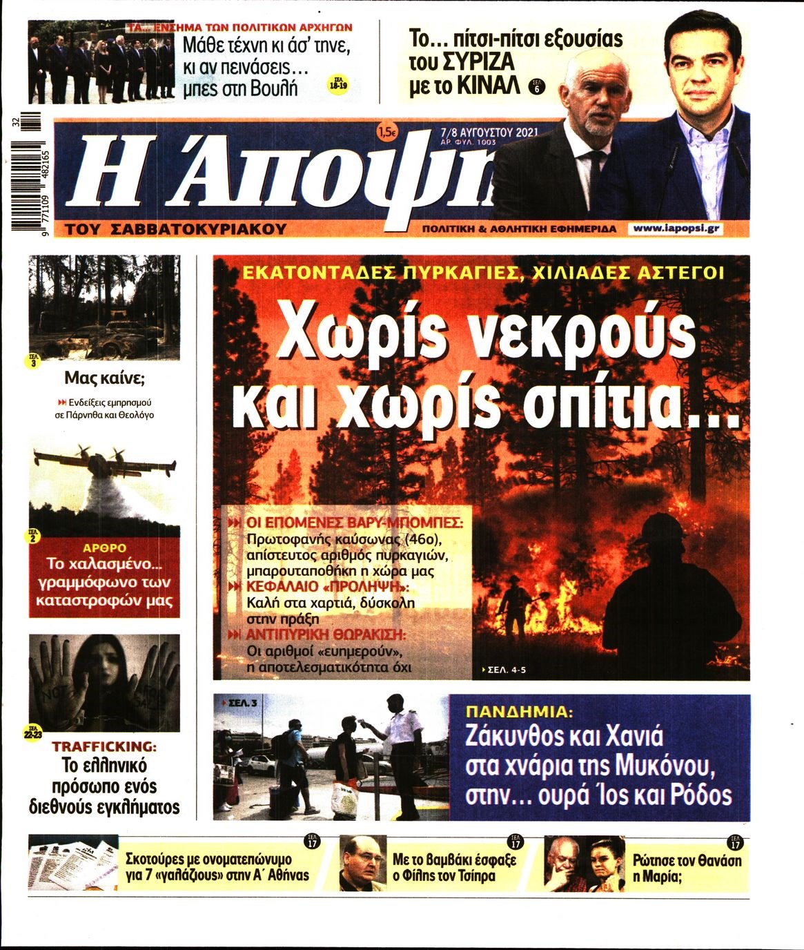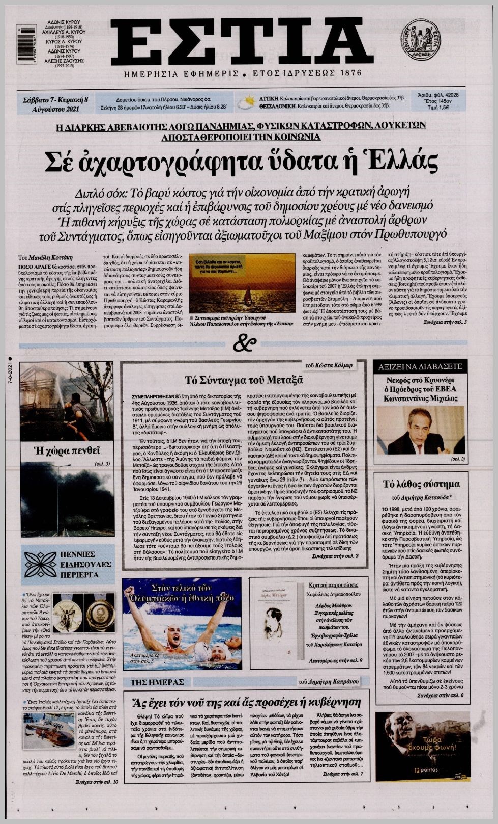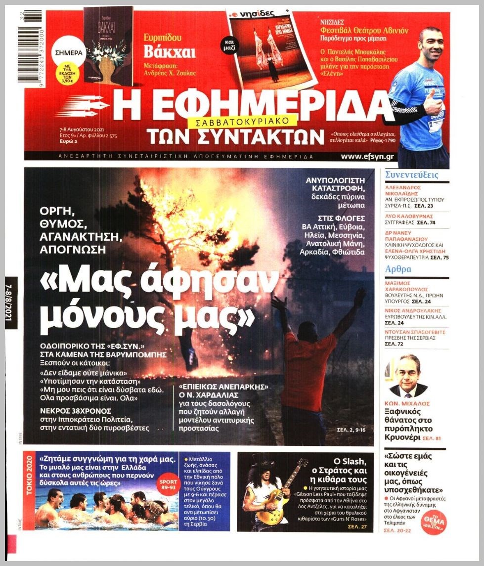 Οι πολιτικές εφημερίδες 7/8/2021 Διονύσης Νίκκας 07:20, Σάββατο 07 Αυγούστου 2021 Media Διαβάστε τα πρωτοσέλιδα των πολιτικών εφημερίδων… ΕΦΗΜΕΡΙΔΕΣ ΠΡΩΤΟΣΕΛΙΔΑ Μοιράσου το: σχολίασε κι εσύ (0 σχόλια) Ακολουθήστε το enikos.gr στο Google News και μάθετε πρώτοι όλες τις ειδήσεις Δείτε όλες τις τελευταίες ειδήσεις από την Ελλάδα και τον Κόσμο στο enikos.gr Ειδήσεις Ροή Ειδήσεων 2 ώρες πριν Χριστούγεννα στα μπλόκα οι αγρότες: Άνοιξαν στα διόδια και μοίρασαν προϊόντα στους πολίτες – Νέα σύσκεψη την Κυριακή στη Νίκαια 3 ώρες πριν Κύκλωμα διακίνησης ναρκωτικών σε σχολεία: Τηλεφωνούσαν στους ανηλίκους την ώρα του μαθήματος – Οι διάλογοι-σοκ, τα «ψευδώνυμα» και τα βασανιστήρια 2 ώρες πριν Αρχεία Επστάιν: Οι 500 σελίδες που λείπουν, τα αναπάντητα ερωτήματα και οι επώνυμοι – Τι έπεται 4 ώρες πριν Ζελένσκι: Μόνο οι ΗΠΑ και ο Τραμπ μπορούν να πιέσουν τη Ρωσία να βάλει τέλος στον πόλεμο 4 ώρες πριν Φοινικούντα: Προφυλακιστέος ο 30χρονος για συνέργεια στη διπλή δολοφονία – Και άλλα πρόσωπα στο «μικροσκόπιο» 2 ώρες πριν Αποκαλύφθηκε το άγνωστο «GPS» της αρχαιότητας – Πώς οι ναοί «φώτιζαν» τον δρόμο των ναυτικών πριν από την εφεύρεση των φάρων 3 ώρες πριν Ύπνος: Η διατροφή που μπορεί να σας βοηθήσει να κοιμάστε καλύτερα και να ζήσετε περισσότερο 4 ώρες πριν Αριθμολογία: Ο αριθμός του φύλακα αγγέλου σας, με βάση τον μήνα γέννησής σας – «Έτσι σας στέλνει σημάδια το σύμπαν» 16 ώρες πριν Enerwave: Το νέο «ρεύμα» στη λιανική ενέργειας που αλλάζει την εμπειρία του καταναλωτή 20 λεπτά πριν Γιάννης Αντετοκούνμπο: Έμεινε στην 6η θέση της ψηφοφορίας του ESPN για το βραβείο του MVP του NBA 35 λεπτά πριν Ρετζέπ Ταγίπ Ερντογάν: Δεν έχουμε καμία βλέψη στα εδάφη ή την κυριαρχία κανενός – Δεν θα επιτρέψουμε να παραβιαστούν τα δικαιώματά μας 50 λεπτά πριν Γερμανία: Εκδήλωση μνήμης για τα θύματα της επίθεσης στη χριστουγεννιάτικη αγορά του Μαγδεμβούργου 1 ώρα πριν The Voice: Η επιστροφή της Έλενας Παπαρίζου και η ατάκα του Γιώργου Μαζωνάκη μετά τις καταγγελίες 1 ώρα πριν Άδωνις Γεωργιάδης: «Η υγεία είναι κοινωνικό αγαθό, δεν μπορείς να αποκλείσεις κανέναν επειδή δεν έχει χρήματα» ENIKOS NETWORK Οι γυναίκες αποκαλύπτουν το πιο ελκυστικό πράγμα που μπορεί να κάνει ένας άνδρας Ομορφιά και αντιγήρανση: Ειδικοί μιλούν για συσκευές περιποίησης του δέρματος «Πολεμική» προετοιμασία από την ευρωπαϊκή βιομηχανία ενέργειας – Η Eurelectric ζητεί «ομπρέλα» προστασίας για τις υποδομές Ακύρωση ΑΦΜ για απάτες – Ποιους βάζει στο στόχαστρο η ΑΑΔΕ Χαρτογραφώντας το «σημείο χωρίς επιστροφή»: Για πρώτη φορά αποκαλύπτεται με λεπτομέρεια το ακανθώδες όριο της ατμόσφαιρας τ... Η Google καταργεί τη λειτουργία «dark web report» – Πώς θα μπορούν οι χρήστες να διαγράφουν τα δεδομένα τους περισσότερα 00:00 , Κυριακή 21 Δεκεμβρίου 2025 The Voice: Η επιστροφή της Έλενας Παπαρίζου και η ατάκα του Γιώργου Μαζωνάκη μετά τις καταγγελίες Στη φάση των Cross Battles Live μπήκε το The Voice, με την Έλενα Παπαρίζου να επιστρέφει στο π... 20:30 , Σάββατο 20 Δεκεμβρίου 2025 Αυτή την Κυριακή με τη Realnews: Instyle, μαζί Drive και Realnews Geopolitics Αυτή την Κυριακή με τη Realnews: Instyle, μαζί Drive και Realnews Geopolitics Instyle Η Άννα Ρ... 20:28 , Σάββατο 20 Δεκεμβρίου 2025 Ο ΑΝΤ1 γεμίζει τις γιορτές με μουσική – Ποιους καλλιτέχνες θα απολαύσουμε Φέτος στον ΑΝΤ1 γιορτάζουμε τις νύχτες μας παρέα με αγαπημένους καλλιτέχνες και μεγάλες μουσι... 18:19 , Σάββατο 20 Δεκεμβρίου 2025 HOTΕΛ ΕΛVIRA: Η Ελβίρα μαθαίνει πως ο Χάρι μένει κρυφά στο ξενοδοχείο του Παντελή Συ