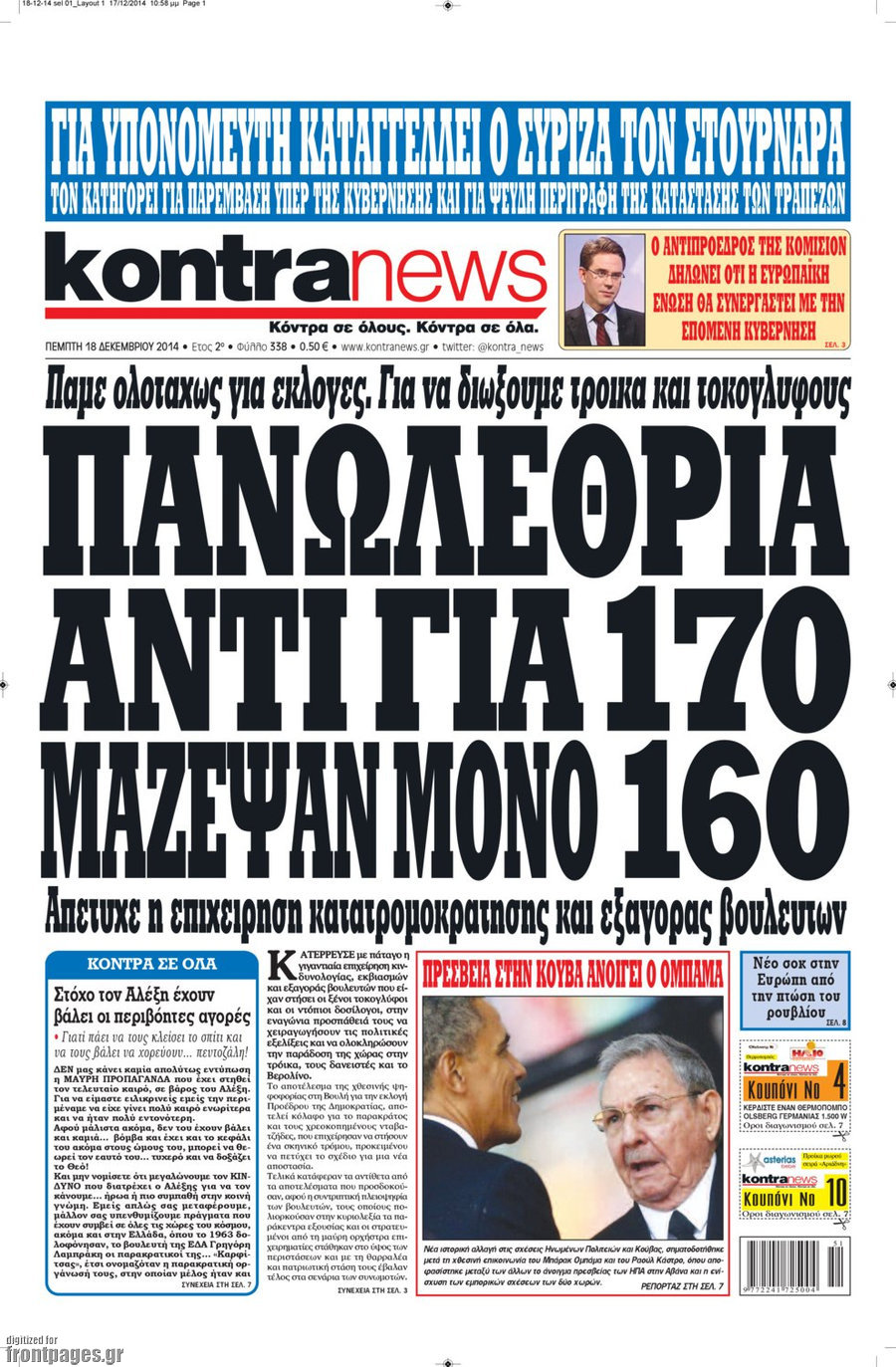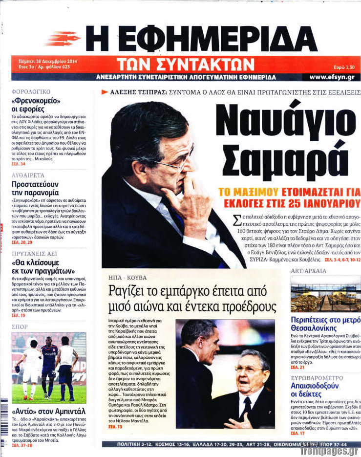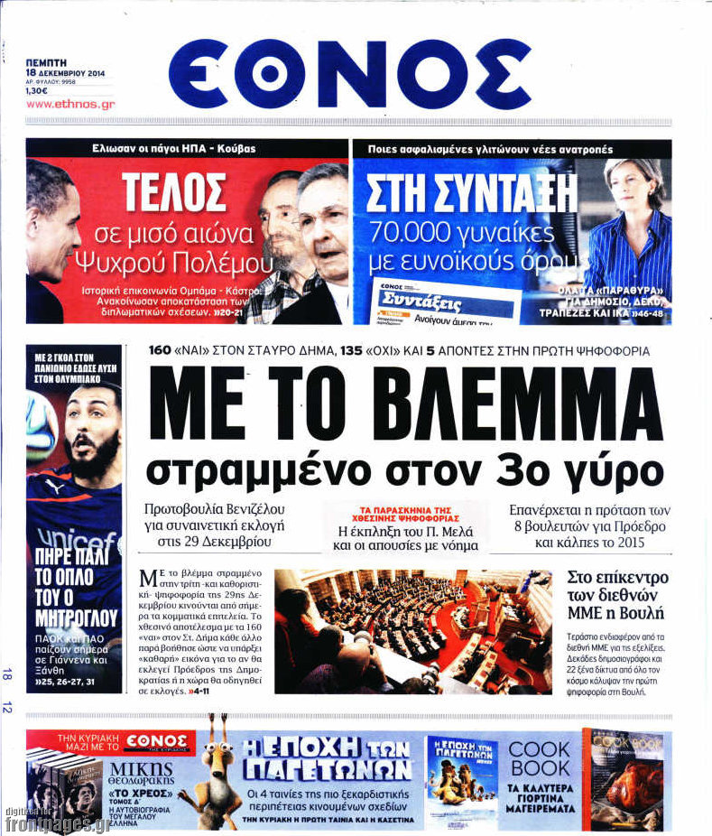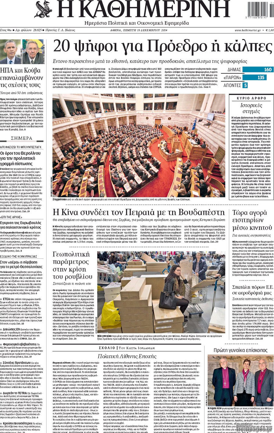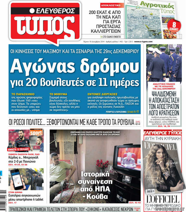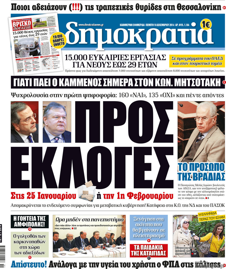 Οι πολιτικές εφημερίδες Enikos Newsroom 07:31, Πέμπτη 18 Δεκεμβρίου 2014 Media Διαβάστε τα πρωτοσέλιδα των πολιτικών εφημερίδων: ΕΞΩΦΥΛΛΑ ΕΦΗΜΕΡΙΔΕΣ ΠΟΛΙΤΙΚΕΣ ΕΦΗΜΕΡΙΔΕΣ ΠΡΩΤΟΣΕΛΙΔΑ Μοιράσου το: σχολίασε κι εσύ (0 σχόλια) Ακολουθήστε το enikos.gr στο Google News και μάθετε πρώτοι όλες τις ειδήσεις Δείτε όλες τις τελευταίες ειδήσεις από την Ελλάδα και τον Κόσμο στο enikos.gr Ειδήσεις Ροή Ειδήσεων 1 ώρα πριν Τουρκία: Αναφορές για Ελληνίδα αεροσυνοδό στο αεροσκάφος που συνετρίβη με τον αρχηγό του Γενικού Επιτελείου της Λιβύης 3 ώρες πριν Έξοδος Χριστουγέννων: Αυξημένη η κίνηση προς την Κεντρική Ελλάδα – Η εικόνα στα αγροτικά μπλόκα και οι δρόμοι που είναι ανοιχτοί 1 ώρα πριν Καιρός: Βροχές και καταιγίδες σήμερα στο μεγαλύτερο μέρος της χώρας – Πώς θα κάνουμε Χριστούγεννα, τα δεδομένα για την Πρωτοχρονιά 1 ώρα πριν Φρίκη στη Θεσσαλονίκη: 13χρονη κατήγγειλε ότι έπεσε θύμα ομαδικού βιασμού από 6 αγόρια 3 ώρες πριν Ελλάδα – Κύπρος – Ισραήλ: Η νέα αμυντική συνεργασία, το κέντρο κυβερνοασφάλειας και τα νεύρα της Τουρκίας 42 λεπτά πριν Η ζωή για 3 ζώδια γίνεται πολύ πιο εύκολη από εδώ και πέρα – «Εμπιστευτείτε τη διαίσθηση σας για να πάρετε αποφάσεις» 2 ώρες πριν Αγρότης ανακάλυψε τυχαία λείψανα δύο ανθρώπων της Εποχής του Χαλκού – Το μυστήριο πίσω από την περίεργη ταφή 1 ώρα πριν Χαμός στο διαδίκτυο με ανάρτηση μητέρας για όσους δεν έχουν παιδιά – «Κάνουν διακοπές κάθε μέρα» 1 ημέρα πριν Η Coca-Cola και ο Ελληνικός Ερυθρός Σταυρός μαζί αυτά τα Χριστούγεννα: Μια μεγάλη αγκαλιά για τους συνανθρώπους μας που έχουν ανάγκη 6 λεπτά πριν Μητρώο Δεξαμενών Ιδιωτικών Πρατηρίων Καυσίμων: Σε λειτουργία η ψηφιακή εφαρμογή – Όλες οι λεπτομέρειες 13 λεπτά πριν Τηλεθέαση (23/12): Ποιες πρωινές εκπομπές της ψυχαγωγικής ζώνης πήραν προβάδισμα; 20 λεπτά πριν ΣΥΡΙΖΑ: Το 2025 απέδειξε ότι ο πρωτογενής τομέας έχει τεθεί στο περιθώριο των κυβερνητικών επιλογών 27 λεπτά πριν Εντοπίστηκε κατάστημα στη Θεσσαλονίκη όπου έπαιζαν παράνομα «φρουτάκια» – 4 συλλήψεις – ΦΩΤΟ 34 λεπτά πριν ΕΦΕΤ: Οδηγίες για το τραπέζι των Χριστουγέννων – Τι πρέπει να προσέχετε ENIKOS NETWORK Πόνος στην κοιλιά στους άνδρες: Με ποιες παθήσεις μπορεί να σχετίζεται 5 τροφές που μειώνουν τη χοληστερίνη φυσικά – Θα τις βρείτε και στο γιορτινό τραπέζι Παραμονή των Χριστουγέννων: Πώς θα λειτουργήσουν σήμερα τα καταστήματα, τα σούπερ μάρκετ, οι φούρνοι και οι λαϊκές αγορές Χριστούγεννα και Πρωτοχρονιά: Πώς κινούνται τα Μέσα Μαζικής Μεταφοράς Ο Google Assistant θα παραμείνει λίγο περισσότερο για ορισμένους χρήστες Android Τεστ προσωπικότητας: Το βάζο που θα επιλέξετε αποκαλύπτει πώς λύνετε προβλήματα στη ζωή σας περισσότερα 10:36 , Τετάρτη 24 Δεκεμβρίου 2025 Τηλεθέαση (23/12): Ποιες πρωινές εκπομπές της ψυχαγωγικής ζώνης πήραν προβάδισμα; Με αμείωτη ένταση συνεχίστηκε η «μάχη» στην πρωινή ζώνη την Τρίτη 23 Δεκεμβρίου, όπως φαίνεται... 10:09 , Τετάρτη 24 Δεκεμβρίου 2025 Την Κυριακή με τη Realnews: Ό,τι και αν αγοράσεις, σκανάρεις και κερδίζεις! Την Κυριακή με τη Realnews: Ό,τι και αν αγοράσεις, σκανάρεις και κερδίζεις! Με το PADU app, το... 10:05 , Τετάρτη 24 Δεκεμβρίου 2025 Τηλεθέαση (23/12): Σάρωσε το reunion του «Παρά Πέντε» το βράδυ της Τρίτης Το βράδυ της Τρίτης (23/12) οι τηλεθεατές παρακολούθησαν το reunion του «Παρά Πέντε». Μάλιστα,... 08:43 , Τετάρτη 24 Δεκεμβρίου 2025 Παρά Πέντε: Όλα όσα έγιναν στο reunion της θρυλικής σειράς – Το τραγούδι των ηθοποιών και το βίντεο για τους συντελεστές που έχουν φύγει από τη ζω