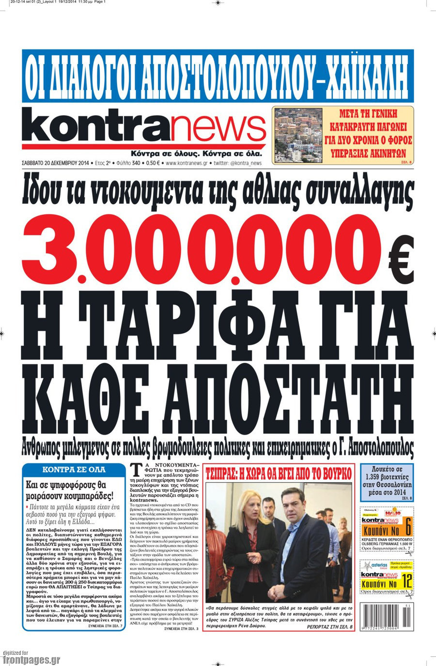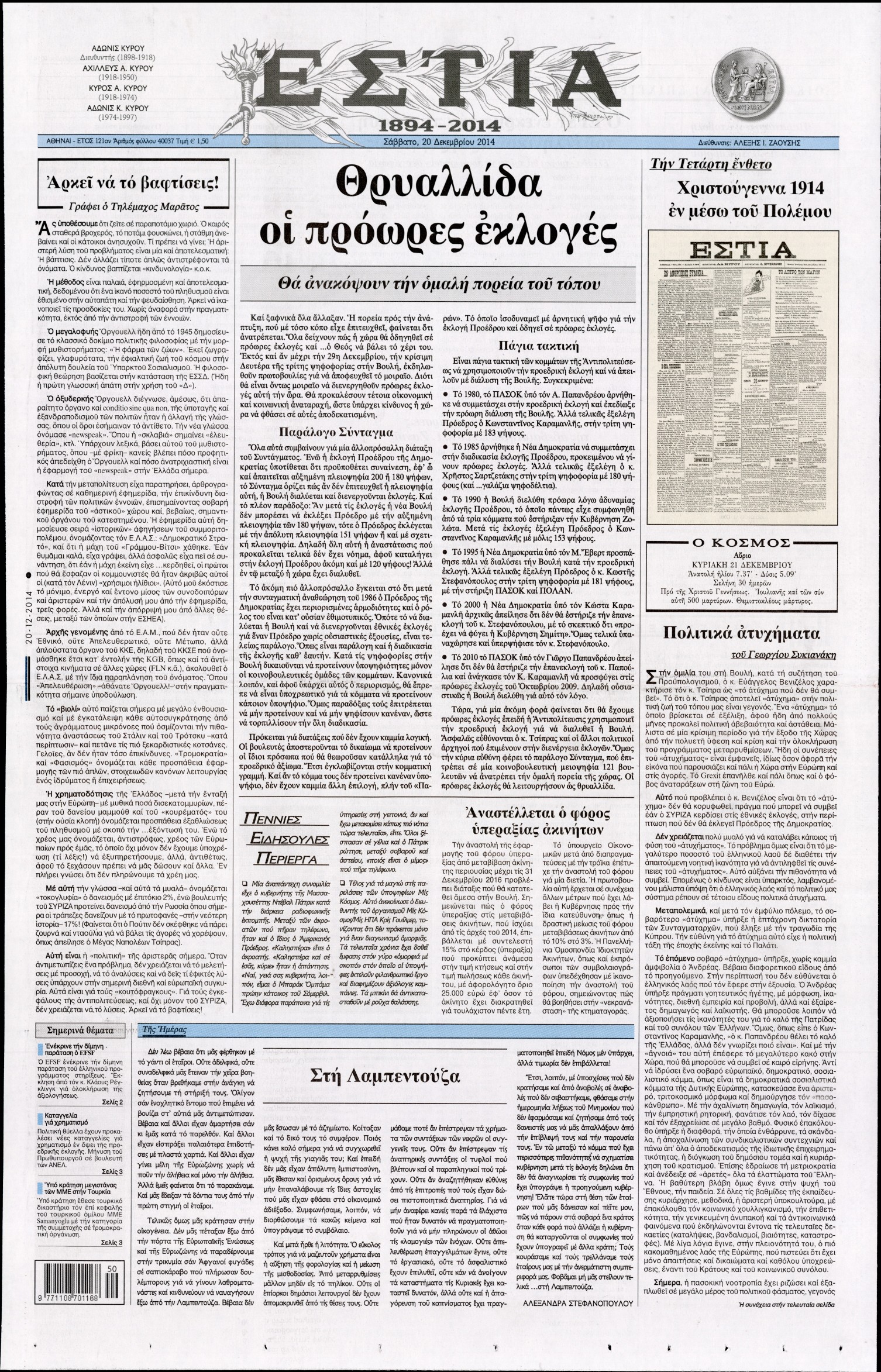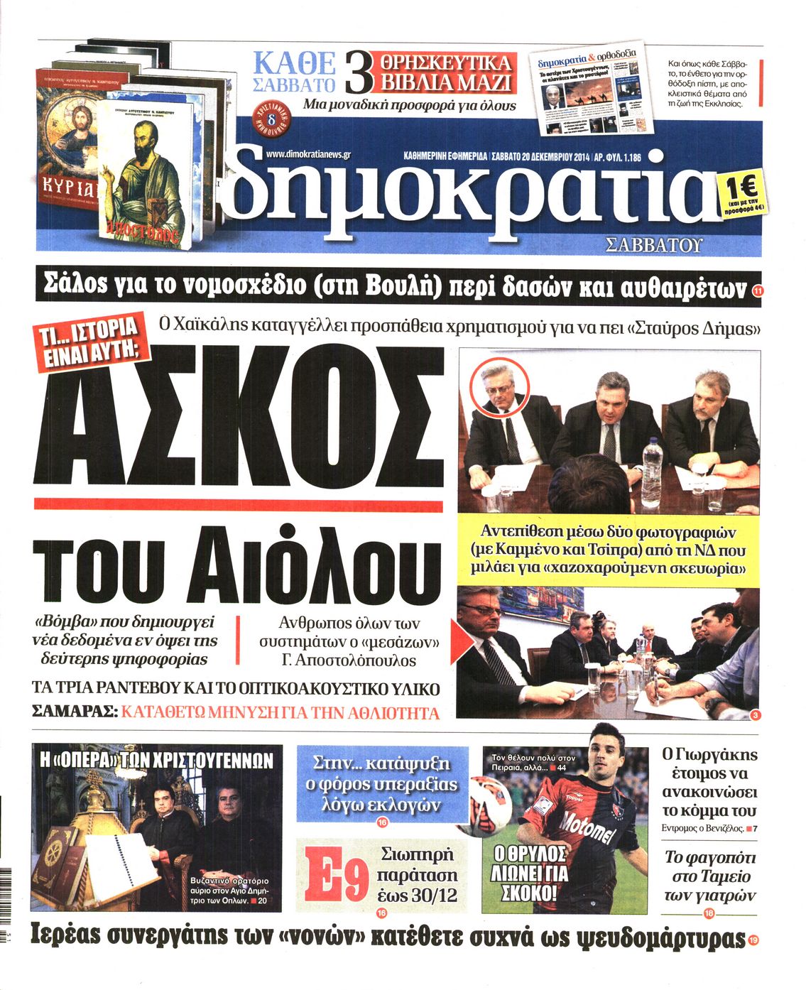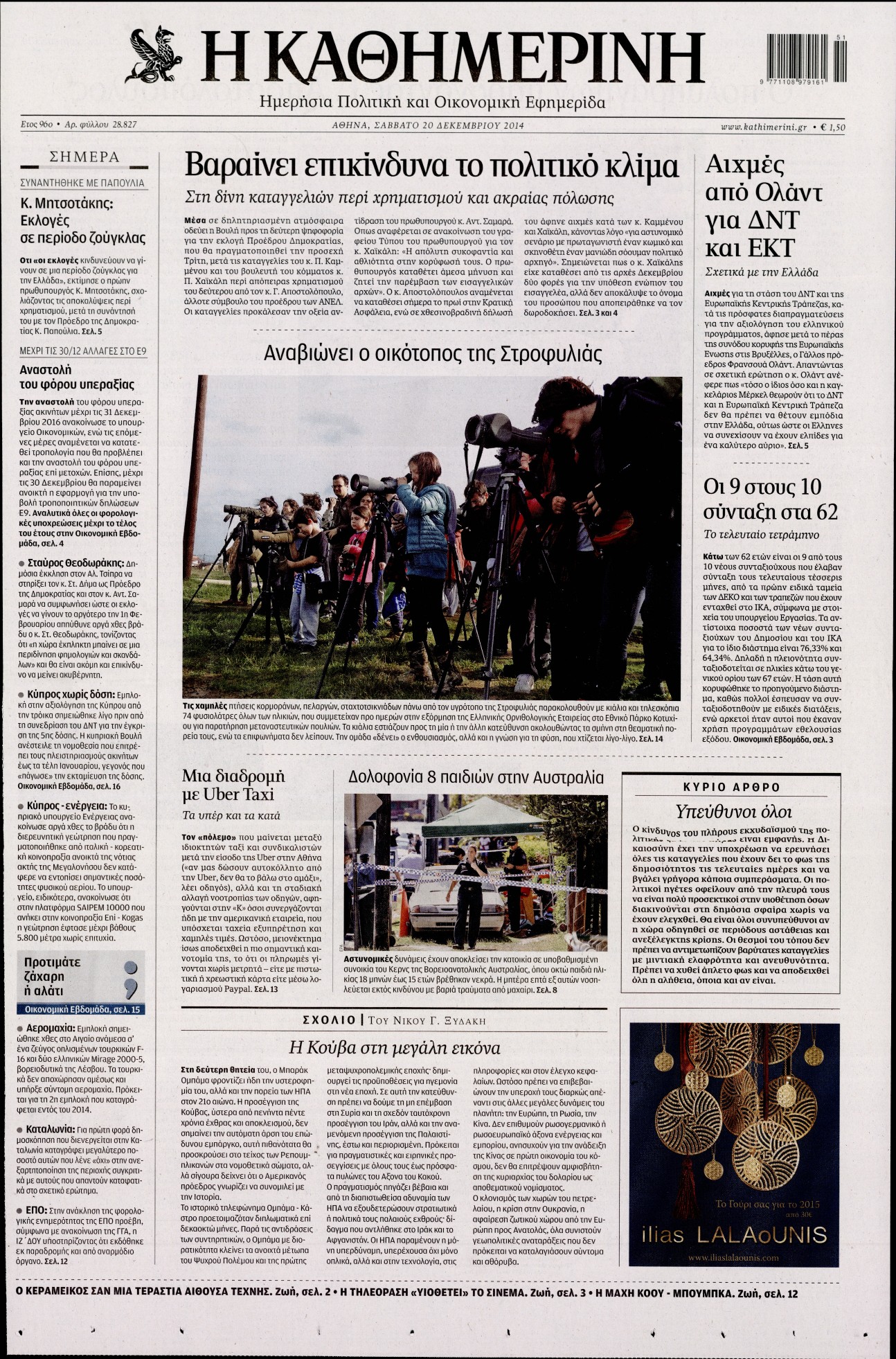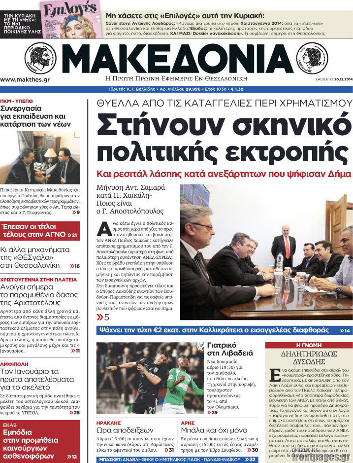 Οι πολιτικές εφημερίδες Enikos Newsroom 07:49, Σάββατο 20 Δεκεμβρίου 2014 Media Διαβάστε τα πρωτοσέλιδα των πολιτικών εφημερίδων: ΕΦΗΜΕΡΙΔΕΣ ΠΟΛΙΤΙΚΕΣ ΕΦΗΜΕΡΙΔΕΣ ΠΡΩΤΟΣΕΛΙΔΑ Μοιράσου το: σχολίασε κι εσύ (0 σχόλια) Ακολουθήστε το enikos.gr στο Google News και μάθετε πρώτοι όλες τις ειδήσεις Δείτε όλες τις τελευταίες ειδήσεις από την Ελλάδα και τον Κόσμο στο enikos.gr Ειδήσεις Ροή Ειδήσεων 1 ώρα πριν Καιρός: Σε εξέλιξη η ψυχρή εισβολή με ραγδαία πτώση της θερμοκρασίας – «Πλήρης ασυμφωνία των μοντέλων για χιόνια στην Αττική» 2 ώρες πριν Τρεις συλλήψεις για επικίνδυνη οδήγηση και σούζες στη λεωφόρο Αθηνών – Δείτε βίντεο 3 ώρες πριν Προειδοποίηση Τραμπ για την Κούβα: «Πρέπει να κάνουν μία συμφωνία πριν να είναι πολύ αργά» 3 ώρες πριν Ραγδαίες εξελίξεις στην Κύπρο: Η σύζυγος του Νίκου Χριστοδουλίδη παραιτείται από τον Ανεξάρτητο Φορέα Κοινωνικής Στήριξης – Καταγγέλλει «ανυπόστατες επιθέσεις» 2 ώρες πριν Θεσσαλονίκη: «Μου κάνανε δύο στρώσεις με ράμματα, έχει διαλυθεί το πρόσωπό μου» – Συγκλονίζει η 45χρονη που τραυματίστηκε στο εμπορικό κέντρο 3 ώρες πριν Τα 5 ζώδια που θα δουν την ερωτική ζωή τους να αλλάζει ριζικά αυτή την εβδομάδα – «Αφήστε τα πάντα να εξελιχθούν ακριβώς όπως είναι γραφτό» 7 ώρες πριν Αν σας ενοχλούν αυτές οι 11 συμπεριφορές, ο εγκέφαλός σας επεξεργάζεται τις πληροφορίες πιο γρήγορα από τους υπόλοιπους 4 ώρες πριν Τι προκαλεί τις ισχυρές ηλιακές εκλάμψεις; Οι επιστήμονες επιτέλους έλυσαν το μυστήριο 2 ώρες πριν Κουίζ για την παλιά Αθήνα: Αναγνωρίζετε ποια οδός είναι; Σήμερα είναι διαφορετική 5 λεπτά πριν Πλυντήριο πιάτων: Βελτιώστε την απόδοσή του με μια εργασία καθαρισμού που διαρκεί μόνο ένα λεπτό 7 λεπτά πριν Ιωάννα Τούνη: Στο νοσοκομείο με υψηλό πυρετό ο γιος της, Πάρης – «Τρελάθηκα, φρίκαρα αρκετά» 15 λεπτά πριν Νέο μήνυμα Παχλαβί στους Ιρανούς – «Κατεβείτε στους δρόμους» 23 λεπτά πριν Κρίσεις στις Ένοπλες Δυνάμεις – Οι τοποθετήσεις των νέων «ΑΝΤΙ» και «ΥΠΟ» που αποφάσισε το ΚΥΣΕΑ 39 λεπτά πριν Ίλιον: Συναγερμός για την εξαφάνιση 59χρονου – Τελευταία φορά εθεάθη στο Καματερό σε δασική περιοχή ENIKOS NETWORK 2 κρυφά red flags στις σχέσεις που φαίνονται μόνο πάνω στο σεξ Θαμπό και ταλαιπωρημένο δέρμα μετά τις γιορτές; Πώς να αποκτήσετε ξανά νεανική και σφριγηλή επιδερμίδα Νέες ασφαλιστικές εισφορές: Τι πρέπει να γνωρίζουν για τη σύνταξη τους οι ελεύθεροι επαγγελματίες και οι αγρότες ΟΠΕΚΑ: Τέλος χρόνου για το επίδομα παιδιού Α21 – Κλείνει η πλατφόρμα στις 15 Ιανουαρίου Ο Google Assistant θα παραμείνει λίγο περισσότερο για ορισμένους χρήστες Android Τεστ προσωπικότητας: Το βάζο που θα επιλέξετε αποκαλύπτει πώς λύνετε προβλήματα στη ζωή σας περισσότερα 13:34 , Κυριακή 11 Ιανουαρίου 2026 Σήμερα με τη Realnews: Μυστηριώδης εξαφάνιση – Ένα καθηλωτικό θρίλερ γεμάτο αγωνία από τον διεθνώς αναγνωρισμένο συγγραφέα Rick Mofina Σήμερα με τη Realnews: Μυστηριώδης εξαφάνιση –Ένα καθηλωτικό θρίλερ γεμάτο αγωνία από το... 13:23 , Κυριακή 11 Ιανουαρίου 2026 Τηλεθέαση 10/1: Οι νικητές και οι χαμένοι του Σαββάτου Δύσκολη μέρα ήταν για αρκετές εκπομπές το Σάββατο (10/1/2026) καθώς κατέγραψαν μεγάλες απώλειε... 11:15 , Κυριακή 11 Ιανουαρίου 2026 Σήμερα με τη Realnews: Ό,τι και αν αγοράσεις, σκανάρεις και κερδίζεις! Σήμερα με τη Realnews: Ό,τι και αν αγοράσεις, σκανάρεις και κερδίζεις! Με το PADU app, το κορυ... 09:56 , Κυριακή 11 Ιανουαρίου 2026 Σήμερα με τη Realnews: Δωροεπιταγή 10€ Σήμερα με τη Realnews: Δωροεπιταγή 10€ Δωροεπιταγή αξίας 10€ για αγορές άν