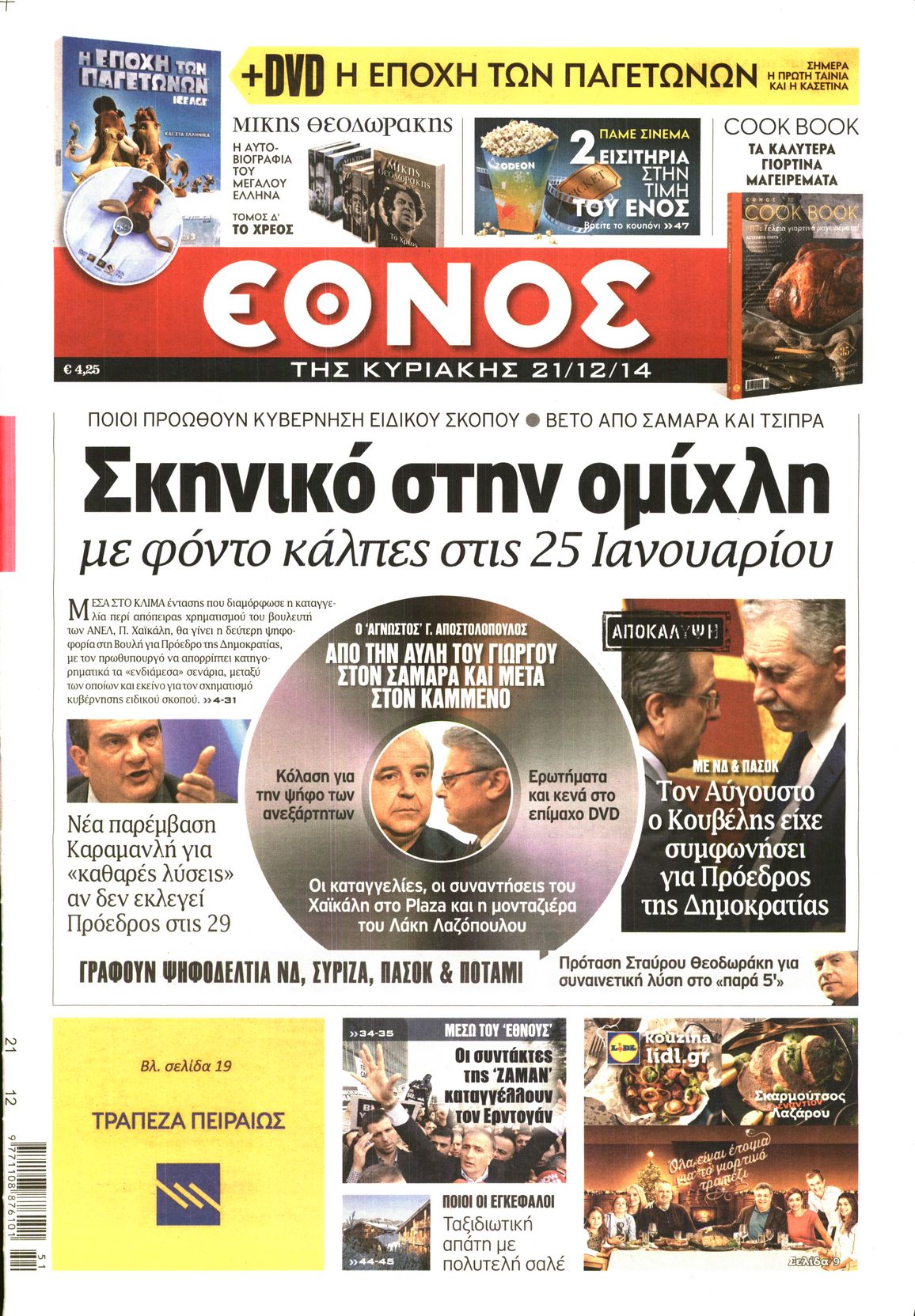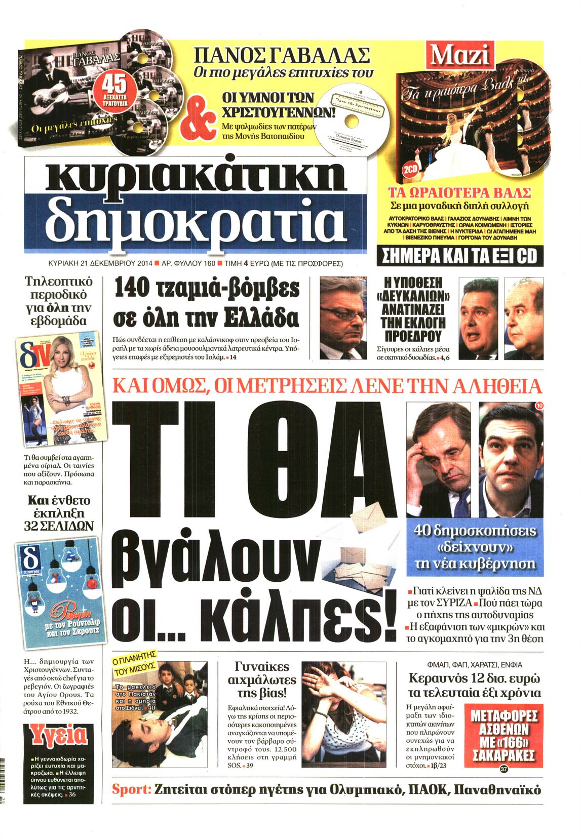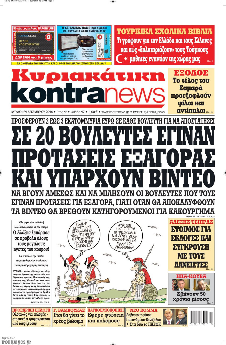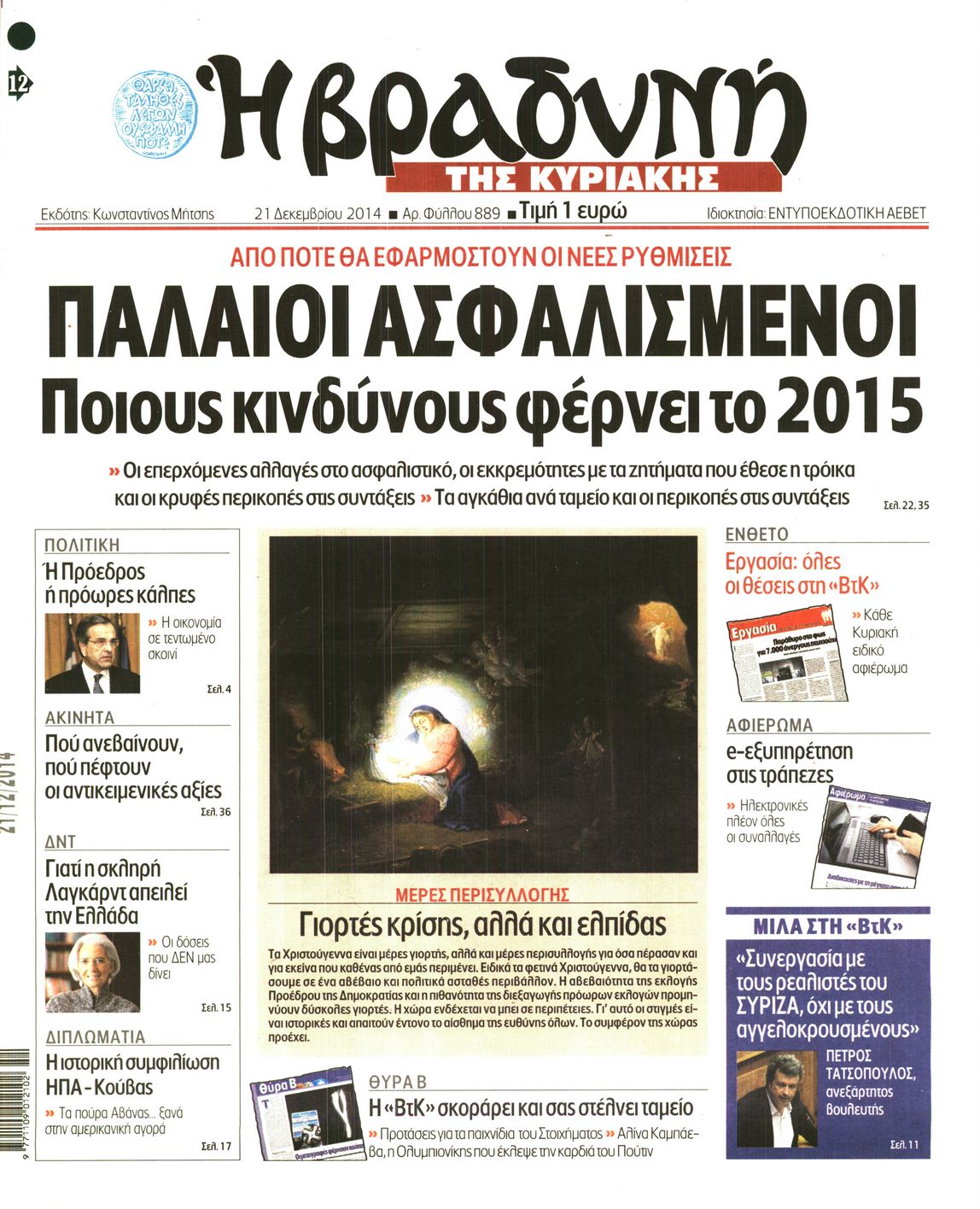 Οι πολιτικές εφημερίδες Enikos Newsroom 07:30, Κυριακή 21 Δεκεμβρίου 2014 Media Διαβάστε τα πρωτοσέλιδα των πολιτικών εφημερίδων: ΕΞΩΦΥΛΛΑ ΕΦΗΜΕΡΙΔΕΣ ΠΟΛΙΤΙΚΕΣ ΕΦΗΜΕΡΙΔΕΣ ΠΡΩΤΟΣΕΛΙΔΑ Μοιράσου το: σχολίασε κι εσύ (0 σχόλια) Ακολουθήστε το enikos.gr στο Google News και μάθετε πρώτοι όλες τις ειδήσεις Δείτε όλες τις τελευταίες ειδήσεις από την Ελλάδα και τον Κόσμο στο enikos.gr Ειδήσεις Ροή Ειδήσεων 42 λεπτά πριν Μητσοτάκης σε αγρότες: Είμαστε ανοιχτοί στον διάλογο, αλλά όχι στο παράλογο – Η διεκδίκηση αιτημάτων οφείλει να γίνεται με σεβασμό στο κοινωνικό σύνολο 58 λεπτά πριν Γρίπη: «Καμπανάκι» από τους επιστήμονες για έξαρση κρουσμάτων στις γιορτές – Ποιοι κινδυνεύουν και πώς προστατευόμαστε 2 ώρες πριν Γαλλία: Έτοιμοι για Χριστούγεννα στους δρόμους οι αγρότες – «Οι δεσμεύσεις της κυβέρνησης δεν είναι αρκετές» 2 ώρες πριν Φοροδιαφυγή και «κενό ΦΠΑ»: Πώς τα ψηφιακά εργαλεία έφεραν δισεκατομμύρια στα ταμεία του Δημοσίου 3 ώρες πριν Τζορτζ Κλούνεϊ: Πέθανε η αδελφή του, Άντα Ζάιντλερ – «Η ηρωίδα μου» 52 λεπτά πριν Τα άστρα ευνοούν σκανδαλωδώς 4 ζώδια – «Εμφανίζονται ξαφνικά ευκαιρίες γιατί αποφασίζετε να αφήσετε πίσω το παρελθόν» 2 ώρες πριν Οι γονείς της θέλουν να έχουν πρόσβαση στον τραπεζικό της λογαριασμό – «Επιμένουν πως στις οικογένειες δεν υπάρχουν μυστικά» 2 ώρες πριν Αρχαιολόγοι ανακάλυψαν κάτι που δεν περίμεναν: Τα μαθηματικά υπήρχαν πριν από τους αριθμούς – Το μυστικό που κρύβεται πίσω από περίεργα αγγεία 8.000 ετών 1 ημέρα πριν Enerwave: Το νέο «ρεύμα» στη λιανική ενέργειας που αλλάζει την εμπειρία του καταναλωτή 10 λεπτά πριν Νέα περιστατικά κατανάλωσης αλκοόλ από ανηλίκους στην Κρήτη: Δύο παιδιά στο νοσοκομείο – 3 συλλήψεις 18 λεπτά πριν Τηλεθέαση (20/12): Πρωτιά για το The Voice στην prime time – Τα ποσοστά στο δυναμικό και στο γενικό σύνολο 23 λεπτά πριν Συναγερμός στην Σκύρο – Ακυβέρνητο δεξαμενόπλοιο λόγω μπλακ άουτ 26 λεπτά πριν Σοκ στις Πινακάτες: Νεκρός ο πρόεδρος του χωριού Νίκος Παππάς – Κατέρρευσε μπροστά στη σύζυγο και τα παιδιά του 34 λεπτά πριν Πώς «ακούγονται» το Δέλτα του Αξιού και η λίμνη Ορεστιάδα; Οι πρώτες ηχογραφήσεις των επιστημόνων δείχνουν κάτι απρόσμενο ENIKOS NETWORK Άσκηση: η «ασπίδα» του εγκεφάλου απέναντι στη γήρανση Έχετε καταρροή και φαγούρα στα μάτια στις γιορτές; Μπορεί να ευθύνεται το σύνδρομο χριστουγεννιάτικου δέντρου Ανοιχτά τα καταστήματα σήμερα – Μέχρι τι ώρα μπορείτε να κάνετε τις αγορές σας Πρωτοχρονιά 2026: Πόσο θα κοστίσει φέτος η βασιλόπιτα – Οι τιμές σε ζαχαροπλαστεία, φούρνους και σούπερ μάρκετ Χαρτογραφώντας το «σημείο χωρίς επιστροφή»: Για πρώτη φορά αποκαλύπτεται με λεπτομέρεια το ακανθώδες όριο της ατμόσφαιρας τ... Η Google καταργεί τη λειτουργία «dark web report» – Πώς θα μπορούν οι χρήστες να διαγράφουν τα δεδομένα τους περισσότερα 09:43 , Κυριακή 21 Δεκεμβρίου 2025 Το λάθος στην ταινία Die Hard που άφησε άναυδους τους θαυμαστές του Μπρους Γουίλις Ένας φανατικός των ταινιών άφησε άναυδους τους θαυμαστές του Die Hard, επισημαίνοντας τρία βασ... 08:13 , Κυριακή 21 Δεκεμβρίου 2025 Άγιος έρωτας: Ένας καταστροφικός σεισμός χτυπά τη Στέρνα Καταιγιστικές είναι οι εξελίξεις στα δυο τελευταία, συγκλονιστικά επεισόδια του 2025 της σειρά... 08:00 , Κυριακή 21 Δεκεμβρίου 2025 Σήμερα με τη Realnews: Ό,τι και αν αγοράσεις, σκανάρεις και κερδίζεις! Σήμερα με τη Realnews: Ό,τι και αν αγοράσεις, σκανάρεις και κερδίζεις! Με το PADU app, το κορυ... 07:00 , Κυριακή 21 Δεκεμβρίου 2025 Σήμερα με τη Realnews: Inst