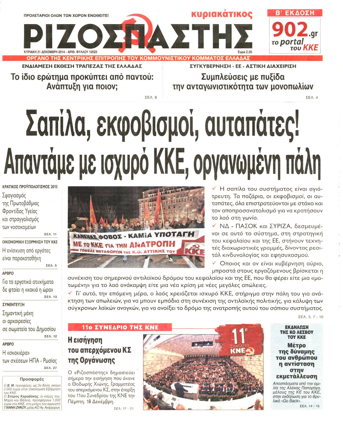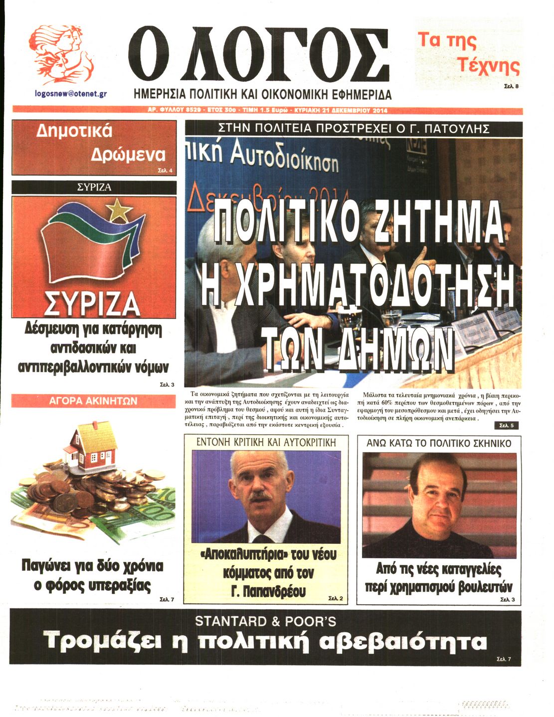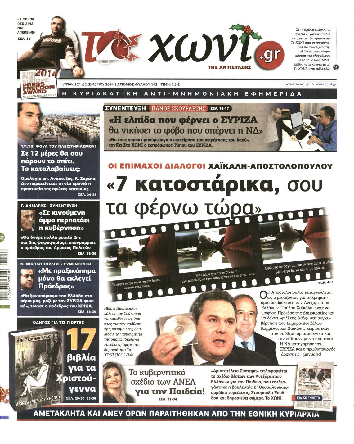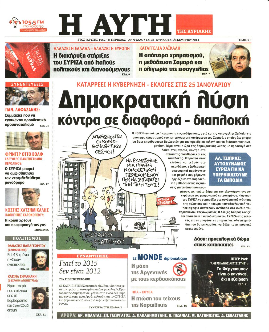 Οι πολιτικές εφημερίδες Enikos Newsroom 07:30, Κυριακή 21 Δεκεμβρίου 2014 Media Διαβάστε τα πρωτοσέλιδα των πολιτικών εφημερίδων: ΕΞΩΦΥΛΛΑ ΕΦΗΜΕΡΙΔΕΣ ΠΟΛΙΤΙΚΕΣ ΕΦΗΜΕΡΙΔΕΣ ΠΡΩΤΟΣΕΛΙΔΑ Μοιράσου το: σχολίασε κι εσύ (0 σχόλια) Ακολουθήστε το enikos.gr στο Google News και μάθετε πρώτοι όλες τις ειδήσεις Δείτε όλες τις τελευταίες ειδήσεις από την Ελλάδα και τον Κόσμο στο enikos.gr Ειδήσεις Ροή Ειδήσεων 42 λεπτά πριν Μητσοτάκης σε αγρότες: Είμαστε ανοιχτοί στον διάλογο, αλλά όχι στο παράλογο – Η διεκδίκηση αιτημάτων οφείλει να γίνεται με σεβασμό στο κοινωνικό σύνολο 58 λεπτά πριν Γρίπη: «Καμπανάκι» από τους επιστήμονες για έξαρση κρουσμάτων στις γιορτές – Ποιοι κινδυνεύουν και πώς προστατευόμαστε 2 ώρες πριν Γαλλία: Έτοιμοι για Χριστούγεννα στους δρόμους οι αγρότες – «Οι δεσμεύσεις της κυβέρνησης δεν είναι αρκετές» 2 ώρες πριν Φοροδιαφυγή και «κενό ΦΠΑ»: Πώς τα ψηφιακά εργαλεία έφεραν δισεκατομμύρια στα ταμεία του Δημοσίου 3 ώρες πριν Τζορτζ Κλούνεϊ: Πέθανε η αδελφή του, Άντα Ζάιντλερ – «Η ηρωίδα μου» 52 λεπτά πριν Τα άστρα ευνοούν σκανδαλωδώς 4 ζώδια – «Εμφανίζονται ξαφνικά ευκαιρίες γιατί αποφασίζετε να αφήσετε πίσω το παρελθόν» 2 ώρες πριν Οι γονείς της θέλουν να έχουν πρόσβαση στον τραπεζικό της λογαριασμό – «Επιμένουν πως στις οικογένειες δεν υπάρχουν μυστικά» 2 ώρες πριν Αρχαιολόγοι ανακάλυψαν κάτι που δεν περίμεναν: Τα μαθηματικά υπήρχαν πριν από τους αριθμούς – Το μυστικό που κρύβεται πίσω από περίεργα αγγεία 8.000 ετών 1 ημέρα πριν Enerwave: Το νέο «ρεύμα» στη λιανική ενέργειας που αλλάζει την εμπειρία του καταναλωτή 10 λεπτά πριν Νέα περιστατικά κατανάλωσης αλκοόλ από ανηλίκους στην Κρήτη: Δύο παιδιά στο νοσοκομείο – 3 συλλήψεις 18 λεπτά πριν Τηλεθέαση (20/12): Πρωτιά για το The Voice στην prime time – Τα ποσοστά στο δυναμικό και στο γενικό σύνολο 23 λεπτά πριν Συναγερμός στην Σκύρο – Ακυβέρνητο δεξαμενόπλοιο λόγω μπλακ άουτ 26 λεπτά πριν Σοκ στις Πινακάτες: Νεκρός ο πρόεδρος του χωριού Νίκος Παππάς – Κατέρρευσε μπροστά στη σύζυγο και τα παιδιά του 34 λεπτά πριν Πώς «ακούγονται» το Δέλτα του Αξιού και η λίμνη Ορεστιάδα; Οι πρώτες ηχογραφήσεις των επιστημόνων δείχνουν κάτι απρόσμενο ENIKOS NETWORK Άσκηση: η «ασπίδα» του εγκεφάλου απέναντι στη γήρανση Έχετε καταρροή και φαγούρα στα μάτια στις γιορτές; Μπορεί να ευθύνεται το σύνδρομο χριστουγεννιάτικου δέντρου Ανοιχτά τα καταστήματα σήμερα – Μέχρι τι ώρα μπορείτε να κάνετε τις αγορές σας Πρωτοχρονιά 2026: Πόσο θα κοστίσει φέτος η βασιλόπιτα – Οι τιμές σε ζαχαροπλαστεία, φούρνους και σούπερ μάρκετ Χαρτογραφώντας το «σημείο χωρίς επιστροφή»: Για πρώτη φορά αποκαλύπτεται με λεπτομέρεια το ακανθώδες όριο της ατμόσφαιρας τ... Η Google καταργεί τη λειτουργία «dark web report» – Πώς θα μπορούν οι χρήστες να διαγράφουν τα δεδομένα τους περισσότερα 09:43 , Κυριακή 21 Δεκεμβρίου 2025 Το λάθος στην ταινία Die Hard που άφησε άναυδους τους θαυμαστές του Μπρους Γουίλις Ένας φανατικός των ταινιών άφησε άναυδους τους θαυμαστές του Die Hard, επισημαίνοντας τρία βασ... 08:13 , Κυριακή 21 Δεκεμβρίου 2025 Άγιος έρωτας: Ένας καταστροφικός σεισμός χτυπά τη Στέρνα Καταιγιστικές είναι οι εξελίξεις στα δυο τελευταία, συγκλονιστικά επεισόδια του 2025 της σειρά... 08:00 , Κυριακή 21 Δεκεμβρίου 2025 Σήμερα με τη Realnews: Ό,τι και αν αγοράσεις, σκανάρεις και κερδίζεις! Σήμερα με τη Realnews: Ό,τι και αν αγοράσεις, σκανάρεις και κερδίζεις! Με το PADU app, το κορυ... 07:00 , Κυριακή 21 Δεκεμβρίου 2025 Σήμερα με τη Realnews: Inst