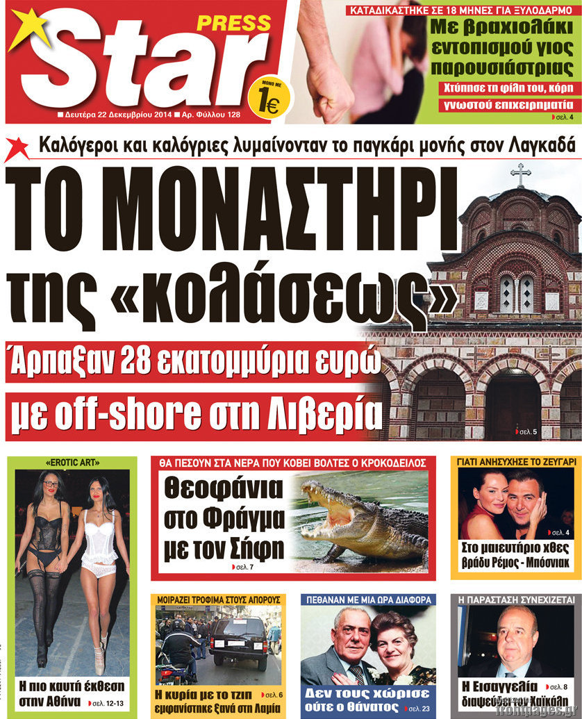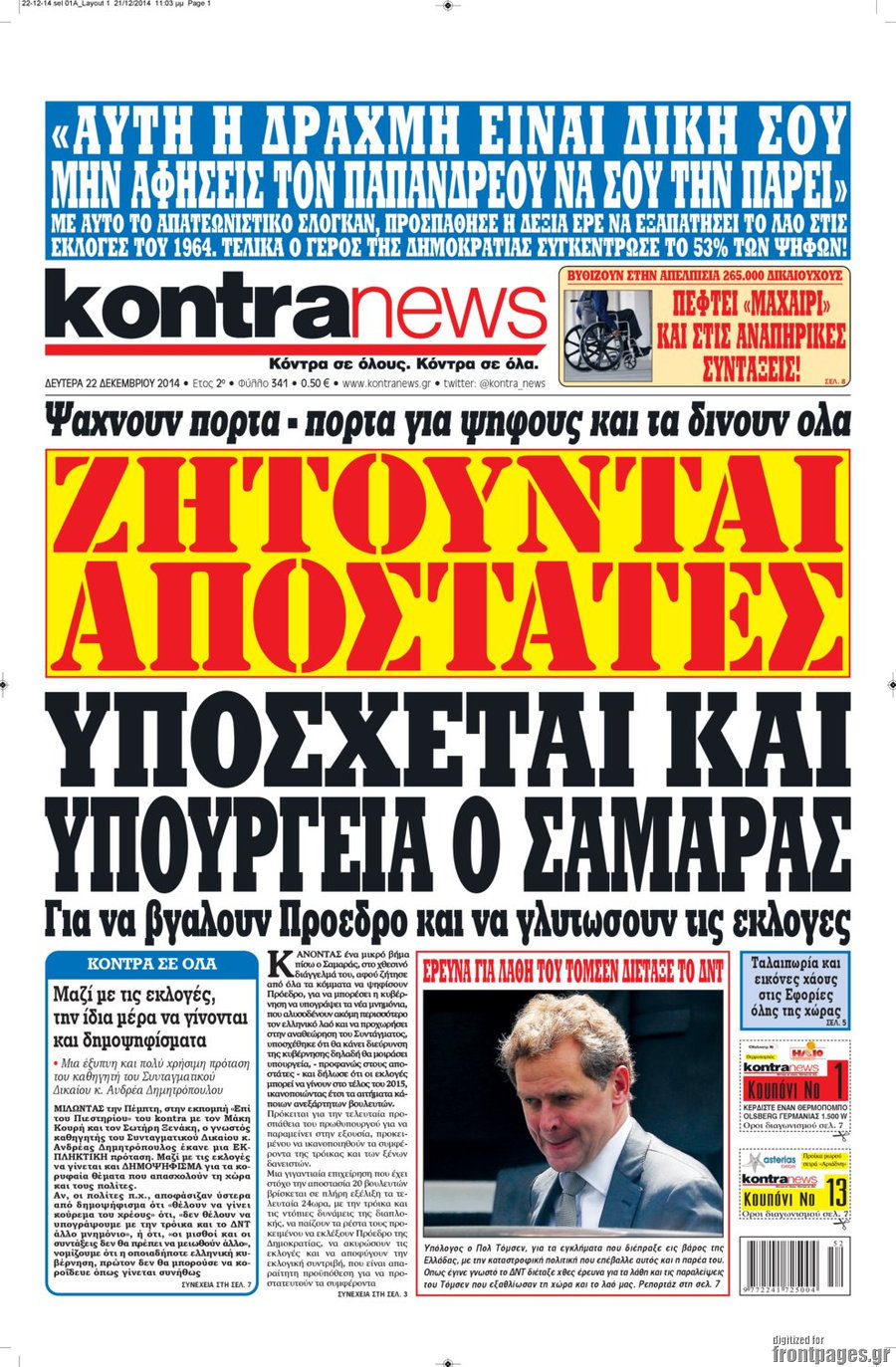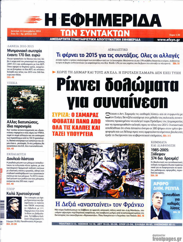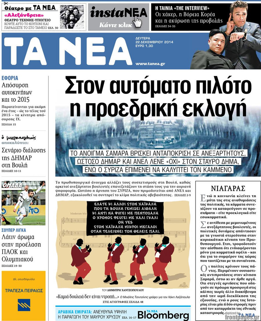Οι πολιτικές εφημερίδες Enikos Newsroom 08:04, Δευτέρα 22 Δεκεμβρίου 2014 Media Διαβάστε τα πρωτοσέλιδα των πολιτικών εφημερίδων: ΠΟΛΙΤΙΚΕΣ ΕΦΗΜΕΡΙΔΕΣ ΠΡΩΤΟΣΕΛΙΔΑ Μοιράσου το: σχολίασε κι εσύ (0 σχόλια) Ακολουθήστε το enikos.gr στο Google News και μάθετε πρώτοι όλες τις ειδήσεις Δείτε όλες τις τελευταίες ειδήσεις από την Ελλάδα και τον Κόσμο στο enikos.gr Ειδήσεις Ροή Ειδήσεων 3 ώρες πριν Αυξάνουν την πίεση προς την κυβέρνηση οι αγρότες: Κλείνουν παρακαμπτήριους και ανοίγουν διόδια – Τι θα γίνει τις γιορτές 2 ώρες πριν ΟΠΕΚΕΠΕ: Προφυλακιστέος ο φερόμενος αρχηγός και ο λογιστής της εγκληματικής οργάνωσης 3 ώρες πριν Φοινικούντα: Το Σάββατο απολογείται ο 30χρονος γιος γνωστού επιχειρηματία της Πλάκας που παραδόθηκε – Όσα είπε στους αστυνομικούς και ο ρόλος του στο έγκλημα 2 ώρες πριν Μπορεί ο Μαδούρο να αντέξει τον αποκλεισμό του Τραμπ; Τι θα χρειαστεί η Ουάσινγκτον για να τον ανατρέψει 4 ώρες πριν Πρίγκιπας Ουίλιαμ – Κέιτ: Η νέα οικογενειακή φωτογραφία για τις Χριστουγεννιάτικες κάρτες του 2025 4 ώρες πριν Ύπνος: Η απλή βραδινή ρουτίνα για να προστατεύσετε τα μαλλιά σας από το κρύο κατά τη διάρκεια του χειμώνα 5 ώρες πριν Manifesting: Πώς να συναντήσετε τον σύντροφο της ζωής σας, ανάλογα με τον μήνα γέννησής σας 2 ημέρες πριν 20 χρόνια τα Χριστούγεννα ξεκινούν στα Public με μεγάλη ποικιλία σε δώρα! 3 ώρες πριν Αρχαιολόγοι ανακάλυψαν ρωμαϊκά τεχνουργήματα από μια πόλη που δεν υπήρξε ποτέ – Τα τρία εντυπωσιακά κτίρια και ο αμφορέας με τις… σαρδέλες 8 λεπτά πριν ΟΗΕ: Την εκλογή του νέου ύπατου αρμοστή για τους Πρόσφυγες Μπαρχάμ Άχμεντ Σαλίχ χαιρέτησε ο Αντόνιο Γκουτέρες 12 λεπτά πριν Σύνοδος Κορυφής στις Βρυξέλλες: Ακόμη πιο κοντά σε διέξοδο για τη χρηματοδότηση της Ουκρανίας 20 λεπτά πριν ΟΗΕ: Iστορική επίσκεψη του Συμβουλίου Ασφαλείας στη Δαμασκό – Mήνυμα Ελλάδας για συμπερίληψη και λογοδοσία 27 λεπτά πριν Νέος πρέσβης της Μεγάλης Βρετανίας στις ΗΠΑ ο Κρίστιαν Τέρνερ 31 λεπτά πριν Conference League: Με Νόα, Ντρίτα, Άλκμααρ ή Τσέλιε στους «16» η ΑΕΚ ENIKOS NETWORK Σε περίοδο αυξημένης δραστηριότητας η γρίπη στην Ελλάδα-Μέτρα προστασίας από τον ΕΟΔΥ Σκέφτεστε συνέχεια συζητήσεις που έχετε κάνει; Τι σημαίνει αυτό, σύμφωνα με ειδικό Στεγαστικό: Τι λέει η ΠΟΜΙΔΑ για τα νέα μέτρα που ανακοίνωσε ο Κυριάκος Μητσοτάκης Λαγκάρντ: Αισιόδοξη για την ανάπτυξη της Ευρωζώνης, αβέβαιη για τον πληθωρισμό Χαρτογραφώντας το «σημείο χωρίς επιστροφή»: Για πρώτη φορά αποκαλύπτεται με λεπτομέρεια το ακανθώδες όριο της ατμόσφαιρας τ... Η Google καταργεί τη λειτουργία «dark web report» – Πώς θα μπορούν οι χρήστες να διαγράφουν τα δεδομένα τους περισσότερα 17:45 , Πέμπτη 18 Δεκεμβρίου 2025 ROUK ZOUK: Εορταστικό επεισόδιο με καλεσμένους τους πρωταγωνιστές του «Γιατί ρε πατέρα» Το Σάββατο 20 Δεκεμβρίου στις 21:00, η Ζέτα Μακρυπούλια υποδέχεται εκλεκτούς ηθοποιούς που όλο... 17:20 , Πέμπτη 18 Δεκεμβρίου 2025 Άγιος έρωτας: Η Χριστίνα εξομολογείται στον πατέρα Νικόλαο, απόψε στις 21:00 στον Alpha Η Νότα αποφασίζει να εκδικηθεί τον Πέτρο και τον Στέφανο, για χάρη του Λούη, όμως τα πράγματα ... 16:50 , Πέμπτη 18 Δεκεμβρίου 2025 Να μ’ αγαπάς: Ζωή και Φωτεινή συμφιλιώνονται ως μάνα με κόρη, απόψε στις 20:00 Η ταυτότητα του Άγγελου αποκαλύπτεται στο νέο επεισόδιο της σειράς “Να μ’ αγαπάς... 15:52 , Πέμπτη 18 Δεκεμβρίου 2025 Το Σπίτι Δίπλα Στο Ποτάμι: Το καθηλωτικό τελευταίο επεισόδιο για το 2025 απόψε στις 22:30 Καθηλώνει το σημερινό επεισόδιο της σειράς “Το Σπίτι Δίπλα Στο Ποτάμι” πο