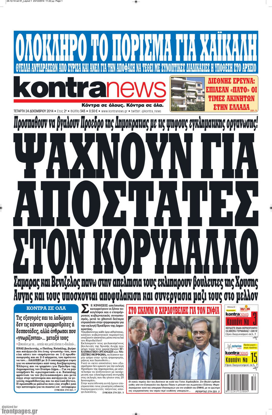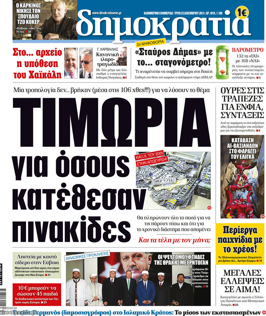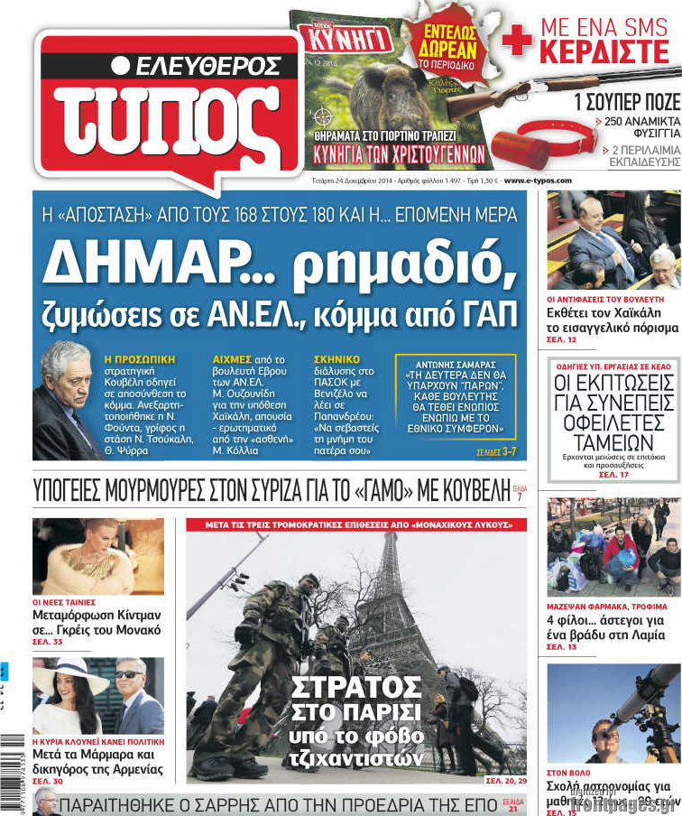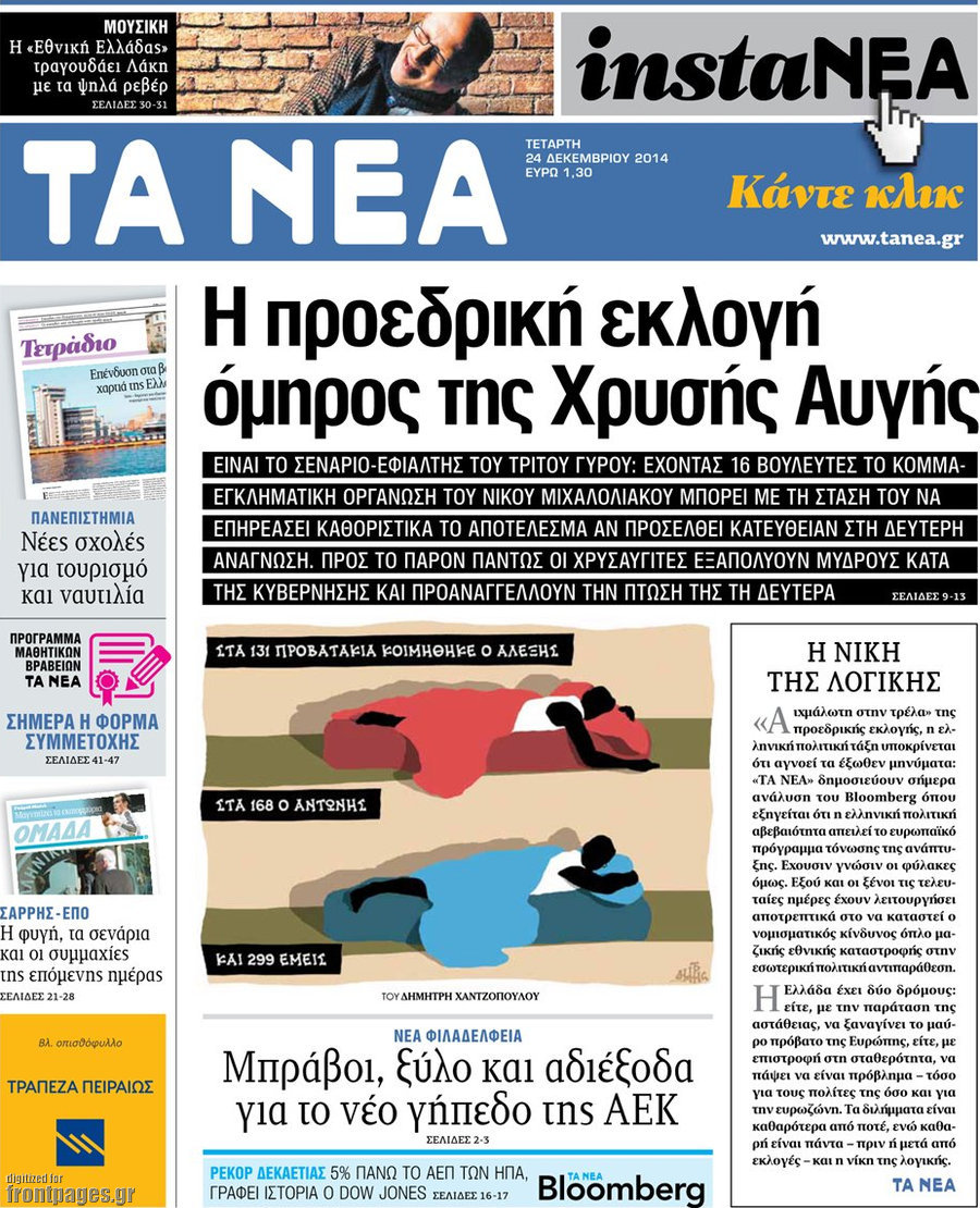 Οι πολιτικές εφημερίδες Enikos Newsroom 07:48, Τετάρτη 24 Δεκεμβρίου 2014 Media Διαβάστε τα πρωτοσέλιδα των πολιτικών εφημερίδων: ΠΟΛΙΤΙΚΕΣ ΕΦΗΜΕΡΙΔΕΣ ΠΡΩΤΟΣΕΛΙΔΑ Μοιράσου το: σχολίασε κι εσύ (0 σχόλια) Ακολουθήστε το enikos.gr στο Google News και μάθετε πρώτοι όλες τις ειδήσεις Δείτε όλες τις τελευταίες ειδήσεις από την Ελλάδα και τον Κόσμο στο enikos.gr Ειδήσεις Ροή Ειδήσεων 17 λεπτά πριν Αγρότες από το μπλόκο Νίκαιας κλείνουν τη Δευτέρα τις σήραγγες των Τεμπών για τα φορτηγά – Τι αποφάσισαν 4 ώρες πριν Μητσοτάκης σε αγρότες: Είμαστε ανοιχτοί στον διάλογο, αλλά όχι στο παράλογο – Η διεκδίκηση αιτημάτων οφείλει να γίνεται με σεβασμό στο κοινωνικό σύνολο 3 ώρες πριν Κηφισιά: Δύο συλλήψεις για ληστεία με λεία 180.000 ευρώ – Βίντεο ντοκουμέντα από τη δράση των συλληφθέντων 2 ώρες πριν Ρωσία: Δεν προετοιμάζεται συνάντηση Αμερικανών, Ρώσων και Ουκρανών απεσταλμένων, ανακοίνωσε το Κρεμλίνο 5 ώρες πριν Η οικογενειακή διαμάχη των Μπέκαμ: Το block από τον Μπρούκλιν και η απόφαση να περάσει τα Χριστούγεννα με τους δισεκατομμυριούχους γονείς της συζύγου του 4 ώρες πριν Τα άστρα ευνοούν σκανδαλωδώς 4 ζώδια – «Εμφανίζονται ξαφνικά ευκαιρίες γιατί αποφασίζετε να αφήσετε πίσω το παρελθόν» 3 ώρες πριν Προπονήτρια γυμναστικής που έχασε 9 κιλά αποκαλύπτει: «Αυτοί είναι οι 5 παράγοντες που εμποδίζουν την απώλεια βάρους» 2 ώρες πριν Οι άνθρωποι που στρώνουν το κρεβάτι τους κάθε πρωί, διαθέτουν αυτές τις 8 κρυφές δυνάμεις 1 ημέρα πριν Enerwave: Το νέο «ρεύμα» στη λιανική ενέργειας που αλλάζει την εμπειρία του καταναλωτή 4 λεπτά πριν Θεσσαλονίκη: Οι αγρότες δεν άνοιξαν τις μπάρες στα διόδια του Ωραιοκάστρου, μοιράζουν όσπρια και κηπευτικά – Κλειστή η εθνική στα Μάλγαρα 12 λεπτά πριν Ολυμπιακός και Μεντιλίμπαρ «έδωσαν τα χέρια» έως το 2027 17 λεπτά πριν Αγρότες από το μπλόκο Νίκαιας κλείνουν τη Δευτέρα τις σήραγγες των Τεμπών για τα φορτηγά – Τι αποφάσισαν 20 λεπτά πριν Άκης Σκέρτσος: Τι έγινε τελικά με την Έκθεση Πισσαρίδη; 28 λεπτά πριν Αττική: Σε ποια σημεία εγκαταστάθηκαν οι πρώτες «έξυπνες κάμερες» – Πώς θα στέλνονται τα πρόστιμα ENIKOS NETWORK Ο εγκέφαλός μας ξεπερνά ακόμα σε εξυπνάδα το ΑΙ – Ποιο είναι αυτό στο οποίο είμαστε καλύτεροι Φοράτε ψηλοτάκουνα παπούτσια; Ποδίατροι συμβουλεύουν πόσο ψηλά επιτρέπεται να είναι και πώς να τα επιλέξετε Η επόμενη ημέρα για τις ελληνικές τράπεζες -Τι λένε κορυφαία στελέχη του κλάδου Χριστουγεννιάτικο τραπέζι: Πόσο θα αγοράσετε φέτος τη γαλοπούλα και το μοσχάρι – Πού κυμαίνονται οι τιμές για μελομακάρονα ... Χαρτογραφώντας το «σημείο χωρίς επιστροφή»: Για πρώτη φορά αποκαλύπτεται με λεπτομέρεια το ακανθώδες όριο της ατμόσφαιρας τ... Η Google καταργεί τη λειτουργία «dark web report» – Πώς θα μπορούν οι χρήστες να διαγράφουν τα δεδομένα τους περισσότερα 09:43 , Κυριακή 21 Δεκεμβρίου 2025 Το λάθος στην ταινία Die Hard που άφησε άναυδους τους θαυμαστές του Μπρους Γουίλις Ένας φανατικός των ταινιών άφησε άναυδους τους θαυμαστές του Die Hard, επισημαίνοντας τρία βασ... 08:13 , Κυριακή 21 Δεκεμβρίου 2025 Άγιος έρωτας: Ένας καταστροφικός σεισμός χτυπά τη Στέρνα Καταιγιστικές είναι οι εξελίξεις στα δυο τελευταία, συγκλονιστικά επεισόδια του 2025 της σειρά... 08:00 , Κυριακή 21 Δεκεμβρίου 2025 Σήμερα με τη Realnews: Ό,τι και αν αγοράσεις, σκανάρεις και κερδίζεις! Σήμερα με τη Realnews: Ό,τι και αν αγοράσεις, σκανάρεις και κερδίζεις! Με το PADU app, το κορυ... 07:00 , Κυριακή 21 Δεκεμβρίου 2025 Σήμερα με τη Realnews: Instyle, μαζί Drive και R