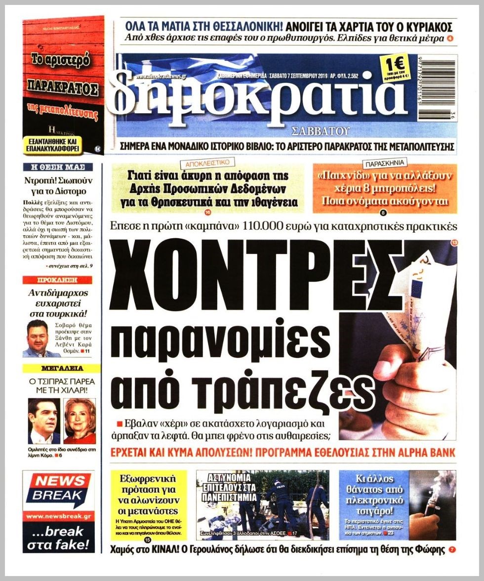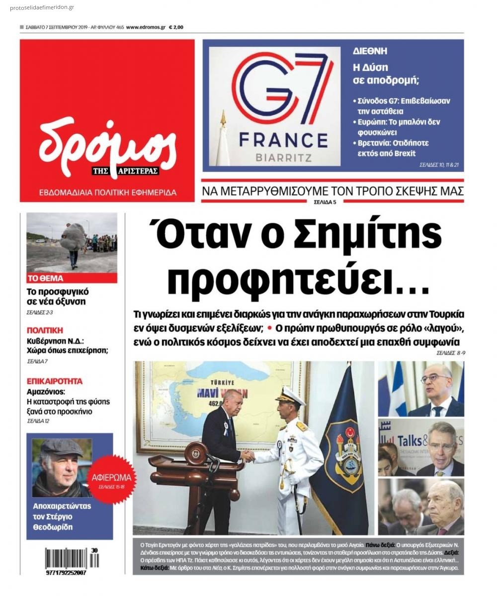 Οι πολιτικές εφημερίδες 7/9/2019 Κώστας Τεό 07:14, Σάββατο 07 Σεπτεμβρίου 2019 Media Διαβάστε τα πρωτοσέλιδα των πολιτικών εφημερίδων: ΠΟΛΙΤΙΚΕΣ ΕΦΗΜΕΡΙΔΕΣ ΠΡΩΤΟΣΕΛΙΔΑ Μοιράσου το: σχολίασε κι εσύ (0 σχόλια) Ακολουθήστε το enikos.gr στο Google News και μάθετε πρώτοι όλες τις ειδήσεις Δείτε όλες τις τελευταίες ειδήσεις από την Ελλάδα και τον Κόσμο στο enikos.gr Ειδήσεις Ροή Ειδήσεων 4 ώρες πριν Χριστούγεννα στα μπλόκα: Επιμένουν στις κινητοποιήσεις τους οι αγρότες – Ανοίγουν τα διόδια το Σαββατοκύριακο 4 ώρες πριν Ουκρανία: Η άνευ προηγουμένου επίθεση σε ρωσικό τάνκερ στη Μεσόγειο και το μήνυμα προς στον Πούτιν – Το «μακρύ χέρι» του Κιέβου 3 ώρες πριν Πούτιν: Τα μηνύματα σε Ευρώπη και ΝΑΤΟ από το μαραθώνιο «σόου» του – Η απαίτηση για «σεβασμό» και η ειρήνη «με τους όρους» της Μόσχας 4 ώρες πριν Τραμπ: Δεν αποκλείει την πιθανότητα ενός πολέμου στη Βενεζουέλα – «Ο Μαδούρο ξέρει καλύτερα από τον καθένα τι ακριβώς θέλω» 5 ώρες πριν Συνεχίζει να προκαλεί ο Μίτσκοσκι: «Για μένα το όνομα Μακεδονία είναι ιερό» 3 ώρες πριν Ανακαλύφθηκαν αρχαία χρυσά νομίσματα 2.200 ετών που απεικονίζουν τον θεό Απόλλωνα – Η άγνωστη σύνδεση με τον Φίλιππο Β΄ της Μακεδονίας 4 ώρες πριν Ύπνος: Μια κρυφή κατάσταση του εγκεφάλου πριν από τον ύπνο μπορεί να είναι το “κλειδί” για υψηλή ευφυΐα και δημιουργικότητα 5 ώρες πριν Αριθμολογία: Οι άνθρωποι που έχουν γεννηθεί αυτές τις 4 ημερομηνίες, συχνά παρεξηγούνται – «Η καλοσύνη τους κρύβει τεράστια δύναμη» 6 ώρες πριν Ξεχάστε το καθάρισμα το Σαββατοκύριακο: Ο «κανόνας των 20 λεπτών» που θα σας λύσει τα χέρια 16 λεπτά πριν ΗΠΑ: Τραγωδία στην Αλαμπάμα – Σκότωσε την δημοσιογράφο σύζυγό του και αυτοκτόνησε μπροστά στον 3χρονο γιο τους 30 λεπτά πριν Πρόταση γάμου στο ΣΕΦ κατά την διάρκεια του αγώνα Ολυμπιακός-Βιλερμπάν – Δείτε βίντεο 45 λεπτά πριν Euroleague: Επέστρεψε στις νίκες ο Ολυμπιακός, πήρε την ματσάρα της χρονιάς η Μπάρτσα – Τα αποτελέσματα και η βαθμολογία 1 ώρα πριν Συρία: Μαζικά πλήγματα των ΗΠΑ σε θέσεις του Ισλαμικού Κράτους – Χέγκσεθ: «Δεν είναι αρχή πολέμου, είναι μια δήλωση εκδίκησης» για το θάνατο των στρατιωτών μας 1 ώρα πριν Ουκρανία: Ολοκληρώθηκαν οι συνομιλίες με τους Αμερικανούς κι Ευρωπαίους διαπραγματευτές ENIKOS NETWORK Το ΕΚΑΒ τιμήθηκε από την Ακαδημία Αθηνών για τα 40 χρόνια προσφοράς του Έχετε πραγματικά μεγάλη καρδιά; 10 χαρακτηριστικά όσων έχουν καλοσύνη Αναστολή μέτρων αναγκαστικής εκτέλεσης για κτηνοτρόφους που πλήττονται από την ευλογιά των αιγοπροβάτων Πλήρης επάρκεια προϊόντων στις λαϊκές της Αττικής, παρά τις αγροτικές κινητοποιήσεις – Τι απαντούν οι πωλητές Χαρτογραφώντας το «σημείο χωρίς επιστροφή»: Για πρώτη φορά αποκαλύπτεται με λεπτομέρεια το ακανθώδες όριο της ατμόσφαιρας τ... Η Google καταργεί τη λειτουργία «dark web report» – Πώς θα μπορούν οι χρήστες να διαγράφουν τα δεδομένα τους περισσότερα 22:42 , Παρασκευή 19 Δεκεμβρίου 2025 Γιώργος Γιαννόπουλος για “Το σόι σου”: “Είναι ευτυχία και ευλογία αυτή η σειρά” «Είναι ευτυχία και ευλογία η συγκυρία αυτής της σειράς», θα πει ο Γιώργος Γιαννόπουλος -ο αγαπ... 20:37 , Παρασκευή 19 Δεκεμβρίου 2025 Don’t Forget The Lyrics: Η Έλλη Κοκκίνου υποδέχεται 4 παίκτες που θα κάνουν τα πάντα για να μη χάσουν ούτε… μισή λέξη από τους στίχους Το «Don’t Forget The Lyrics» επιστρέφει απόψε, Παρασκευή 19 Δεκεμβρίου, στις 21:00 με νέο επει... 19:31 , Παρασκευή 19 Δεκεμβρίου 2025 GNTM: Απόψε ο μεγάλος τελικός για τους 4 φιναλίστ Έπειτα από μήνες γ