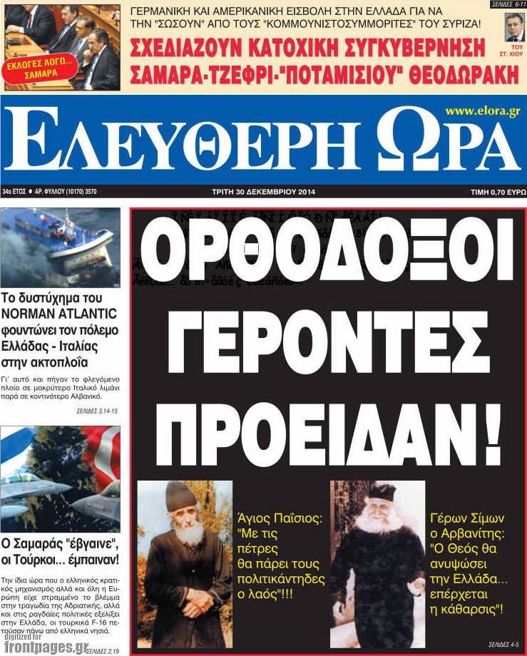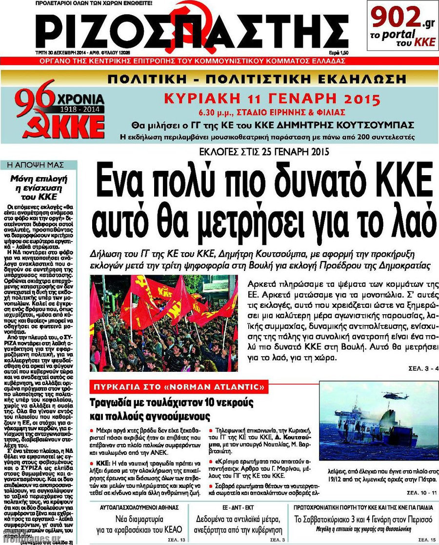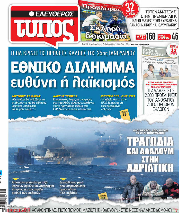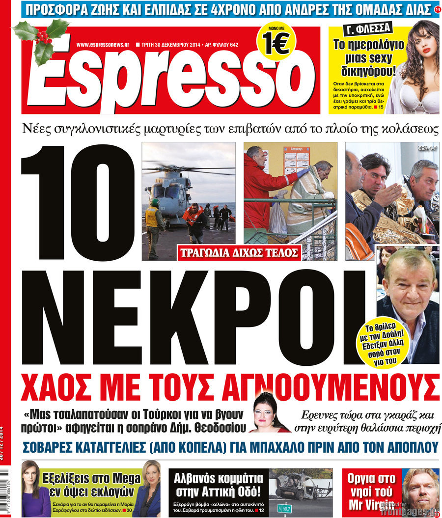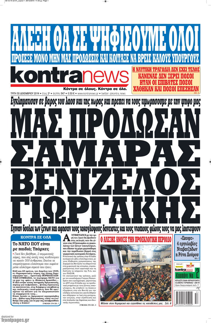 Οι πολιτικές εφημερίδες Enikos Newsroom 07:55, Τρίτη 30 Δεκεμβρίου 2014 Media Διαβάστε τα πρωτοσέλιδα των πολιτικών εφημερίδων: ΠΟΛΙΤΙΚΕΣ ΕΦΗΜΕΡΙΔΕΣ ΠΡΩΤΟΣΕΛΙΔΑ Μοιράσου το: σχολίασε κι εσύ (0 σχόλια) Ακολουθήστε το enikos.gr στο Google News και μάθετε πρώτοι όλες τις ειδήσεις Δείτε όλες τις τελευταίες ειδήσεις από την Ελλάδα και τον Κόσμο στο enikos.gr Ειδήσεις Ροή Ειδήσεων 2 ώρες πριν Μπλόκα: Οι αγρότες σηκώνουν τις μπάρες σε διόδια για τους εκδρομείς των Χριστουγέννων και μοιράζουν προϊόντα – Βίντεο 2 ώρες πριν Τσιάρας προς αγρότες: Τα μπλόκα και τα πείσματα δεν ωφελούν – Οι λύσεις περνούν μέσα από τον διάλογο 3 ώρες πριν Αρχεία Έπσταϊν: Οι συγκλονιστικές φωτογραφίες – Ο Μάικλ Τζάκσον, ο Μικ Τζάγκερ και ο Κέβιν Σπέισι ανάμεσα στους διάσημους που απεικονίζονται 57 λεπτά πριν Μαθητές διακινούσαν κοκαΐνη και χασίς σε σχολείο της Αττικής – 12 συλλήψεις 1 ώρα πριν Βέλγιο: Άγνωστοι έριξαν κόκκινη μπογιά στο προξενείο της Πολωνίας στις Βρυξέλλες 5 ώρες πριν Μία νέα «χρυσή» περίοδος αρχίζει για 3 ζώδια από σήμερα – «Μία αναπάντεχη ευκαιρία οδηγεί στην επιτυχία» 4 ώρες πριν Διαιτολόγος αποκαλύπτει 9 πρωινές συνήθειες που «λιώνουν» το κοιλιακό λίπος – «Υποστηρίζουν την υγιεινή απώλεια βάρους» 4 ώρες πριν Οι 7 φράσεις που δεν λένε ποτέ οι συναισθηματικά έξυπνοι άνθρωποι κατά τη διάρκεια ενός καβγά 7 ώρες πριν Enerwave: Το νέο «ρεύμα» στη λιανική ενέργειας που αλλάζει την εμπειρία του καταναλωτή 6 λεπτά πριν Μαρινάκης στον Realfm 97,8: Η κυβέρνηση σέβεται κάθε λογική διεκδίκηση των αγροτών, αλλά και το αίτημα των πολιτών να μην ταλαιπωρούνται 12 λεπτά πριν O Πάντερ MVP της 17ης αγωνιστικής στην Euroleague 21 λεπτά πριν Πέθανε η τραγουδίστρια Κλαούντια Ντελμέρ 28 λεπτά πριν Μία ανεκμετάλλευτη πηγή θα μπορούσε να προσφέρει ανεξάντλητη ενέργεια – Οι επιστήμονες ίσως γνωρίζουν πώς να την ξεκλειδώσουν 37 λεπτά πριν Θεσσαλονίκη: Ανήλικος που είχε εξαφανιστεί βρέθηκε στο σπίτι Τούρκων μετά από αστυνομική επιχείρηση ENIKOS NETWORK Η αποχή από την αναπαραγωγή παρατείνει τη ζωή στα ζώα, σύμφωνα με μελέτη – Τι ισχύει για τους ανθρώπους; Σημαντικές επαφές στις ΗΠΑ είχε ο υπουργός Υγείας Άδωνις Γεωργιάδης Ευλογιά αιγοπροβάτων: Παρατεταμένη επιζωοτία, αυστηρά μέτρα – Τι ισχύει για τον εμβολιασμό και την ανασύσταση του ζωικού κε... Τσιάρας προς αγρότες: Έχει ικανοποιηθεί το 74% των αιτημάτων – Τα μπλόκα και τα πείσματα δεν ωφελούν Χαρτογραφώντας το «σημείο χωρίς επιστροφή»: Για πρώτη φορά αποκαλύπτεται με λεπτομέρεια το ακανθώδες όριο της ατμόσφαιρας τ... Η Google καταργεί τη λειτουργία «dark web report» – Πώς θα μπορούν οι χρήστες να διαγράφουν τα δεδομένα τους περισσότερα 14:04 , Σάββατο 20 Δεκεμβρίου 2025 Η Realnews αυτής της Κυριακής (21/12/2025) Με τίτλο: «Ασπίδα προστασίας για την Ελλάδα» κυκλοφορεί, αυτήν την Κυριακή, η Realnews. Σημαντ... 12:53 , Σάββατο 20 Δεκεμβρίου 2025 Να μ’ αγαπάς: Το παρελθόν έρχεται στο φως – Καταιγιστικές εξελίξεις στα τελευταία επεισόδια του 2025 Ο Άγγελος αποκαλύπτεται, η Φωτεινή ανησυχεί για τον Λευτέρη και η Ζωή έρχεται αντιμέτωπη με το... 11:41 , Σάββατο 20 Δεκεμβρίου 2025 «Η αγάπη δεν χάνεται ποτέ»: Η μικρού μήκους ταινία κινουμένων σχεδίων που θέτει ερωτήματα για τη ζωή και τον θάνατο Ο θάνατος είναι ένα από τα πιο σκληρά θέματα που καλείται να διαχειριστεί κάποιος στη διάρκεια... 09:30 , Σάββατο 20 Δεκεμβρίου 2025 «Porto Leone: Στη γειτονιά με τα κόκκινα φανάρια» – Ο Χρόνης αποκαλύπτει στην Αλεξάνδρα το μυστικό για το παιδί τ
