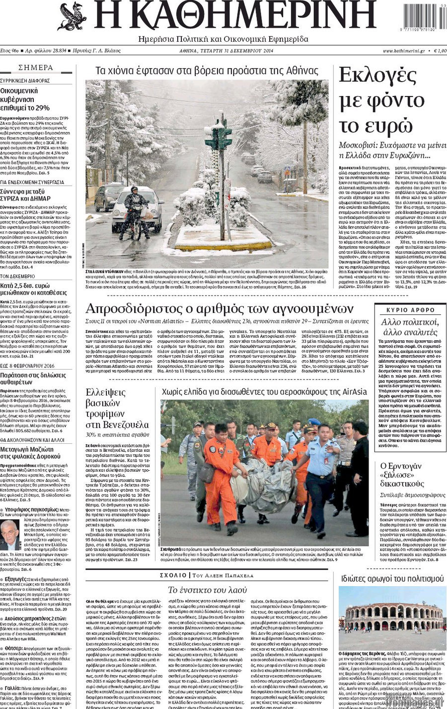 Οι πολιτικές εφημερίδες Enikos Newsroom 08:24, Τετάρτη 31 Δεκεμβρίου 2014 Media Διαβάστε τα πρωτοσέλιδα των πολιτικών εφημερίδων: ΕΦΗΜΕΡΙΔΕΣ ΠΟΛΙΤΙΚΕΣ ΕΦΗΜΕΡΙΔΕΣ ΠΡΩΤΟΣΕΛΙΔΑ Μοιράσου το: σχολίασε κι εσύ (0 σχόλια) Ακολουθήστε το enikos.gr στο Google News και μάθετε πρώτοι όλες τις ειδήσεις Δείτε όλες τις τελευταίες ειδήσεις από την Ελλάδα και τον Κόσμο στο enikos.gr Ειδήσεις Ροή Ειδήσεων 12 λεπτά πριν ΑΑΔΕ: Στο «μικροσκόπιο» γάμοι, βαφτίσεις, catering – Τι αλλάζει μετά το Πάσχα – Όλες οι νέες πληροφορίες 28 λεπτά πριν Οι ΗΠΑ επιλέγουν την Ελλάδα ως στρατηγικό εταίρο στην Ανατολική Μεσόγειο – Επενδύσεις και σε τρένα 9 ώρες πριν Νέα Πέραμος: Πού στρέφονται οι έρευνες των αρχών για το άγριο έγκλημα με θύμα τον 27χρονο επιχειρηματία – «Δεν είχε πειράξει κανέναν» λένε οι γονείς του 9 ώρες πριν The Washington Post: Τι έχουμε μάθει ως τώρα από τα νέα στοιχεία στην υπόθεση Επστάιν – «Η αλήθεια να φτάσει στο κόκκαλο» 10 ώρες πριν Μητσοτάκης για τη συνταγματική αναθεώρηση: «Φιλοδοξία μου είναι το 2030 να έχουμε κλείσει όλες τις εκκρεμότητες με το πελατειακό κράτος» 2 ώρες πριν Οπτική ψευδαίσθηση: Μόνο όσοι έχουν τέλεια όραση μπορούν να εντοπίσουν την τίγρη μέσα σε 14 δευτερόλεπτα 2 ώρες πριν Χειροπράκτης προτείνει 1 απλή άσκηση για να «εξαφανίσετε το διπλοσάγονο» 5 ώρες πριν Τα ζώδια σήμερα, Τρίτη 3 Φεβρουαρίου 2026: Τοξότες, σας εξαντλεί να είστε συνεχώς «στην τσίτα» και ψάχνετε κάτι διαφορετικό 11 ώρες πριν Ποιος είναι ο έρωτας της ζωή σας; Ανακαλύψτε την αδελφή-ψυχή σας με βάση τον μήνα γέννησή σας 15 λεπτά πριν Αυτή την Κυριακή με τη Realnews: Τίτλοι τέλους – Ένα ψυχολογικό θρίλερ γεμάτο μυστήριο, ανατροπές και σκοτεινά μυστικά από τον βραβευμένο συγγραφέα M.J. Trow 5 λεπτά πριν Χωρίς ταξί η Αττική σήμερα και αύριο – Συγκέντρωση και πορεία προς το Μαξίμου 12 λεπτά πριν ΑΑΔΕ: Στο «μικροσκόπιο» γάμοι, βαφτίσεις, catering – Τι αλλάζει μετά το Πάσχα – Όλες οι νέες πληροφορίες 12 λεπτά πριν Καιρός: Βροχές και συννεφιά σήμερα – Αναλυτική πρόγνωση ανά περιοχή 19 λεπτά πριν Οι αθλητικές μεταδόσεις 3/2/2026 ENIKOS NETWORK Βρείτε τις 3 διαφορές στην φωτογραφία με τον άνδρα που διαβάζει εφημερίδα – Μόνο οι πολύ παρατηρητικοί κερδίζουν Το αγαπημένο ρόφημα των Άγγλων που μπορεί να ρίξει την πίεση και να μειώσει τον κίνδυνο για διαβήτη ΑΑΔΕ: Στο «μικροσκόπιο» γάμοι, βαφτίσεις, catering – Τι αλλάζει μετά το Πάσχα – Όλες οι νέες πληροφορίες Επιθεώρηση Εργασίας: Αυξήθηκαν κατά 4% οι έλεγχοι το 2025 – Στα 53,4 εκατ. ευρώ τα πρόστιμα Ευπάθεια στο moltbook ai αποκαλύπτει email, tokens σύνδεσης και api keys Αυτός είναι ο ρόλος της μικρής τρύπας στους νυχοκόπτες – «Είμαι ο μόνος που δεν το ήξερε;»» περισσότερα 05:48 , Τρίτη 03 Φεβρουαρίου 2026 Οι οικονομικές εφημερίδες 3/2/2026 Διαβάστε τα πρωτοσέλιδα από τις οικονομικές εφημερίδες, σήμερα 3/2/2026. 05:38 , Τρίτη 03 Φεβρουαρίου 2026 Οι πολιτικές εφημερίδες 3/2/2026 Διαβάστε τα πρωτοσέλιδα από τις πολιτικές εφημερίδες, σήμερα 3/2/2026. 18:18 , Δευτέρα 02 Φεβρουαρίου 2026 Άγιος Έρωτας: Η μικρή Ελευθερία δεν θέλει τους νέους της γονείς και η Χλόη καταφεύγει στον πατέρα Νικόλαο Όσα θα δούμε απόψε στο νέο επεισόδιο της σειράς “Άγιος Έρωτας” στις 22:00 στον Alp... 18:07 , Δευτέρα 02 Φεβρουαρίου 2026 MasterChef 10: Το πρώτο Mystery Box έχει την παιχνιδιάρικη υπογραφή του Πάνου Ιωαννίδη Μετά τις πρώτες εβδομάδες και τις διαδικασίες, που προηγήθηκαν, 14 διαγωνιζόμενοι της πρώτης μ... ΤΕΛΕΥΤΑΙΕΣ ΕΙΔΗΣΕΙΣ 5 λεπτά πριν Χωρίς ταξί η Αττική σήμερα και αύριο – Συγκέντρωση... 12 λεπτά π