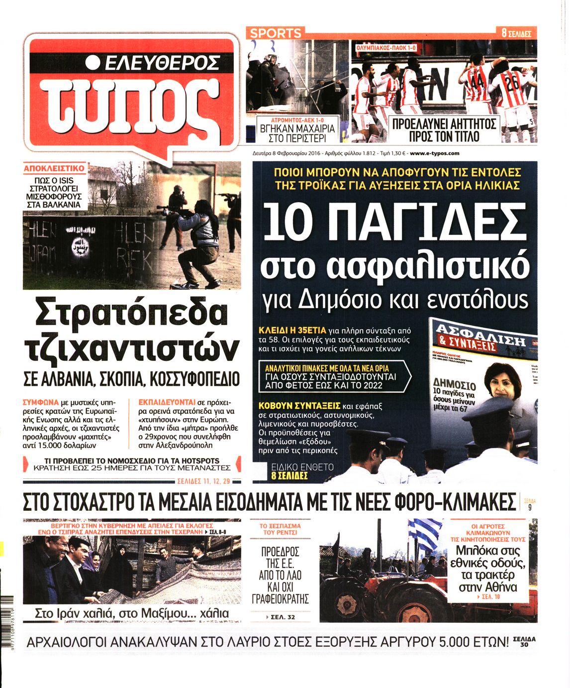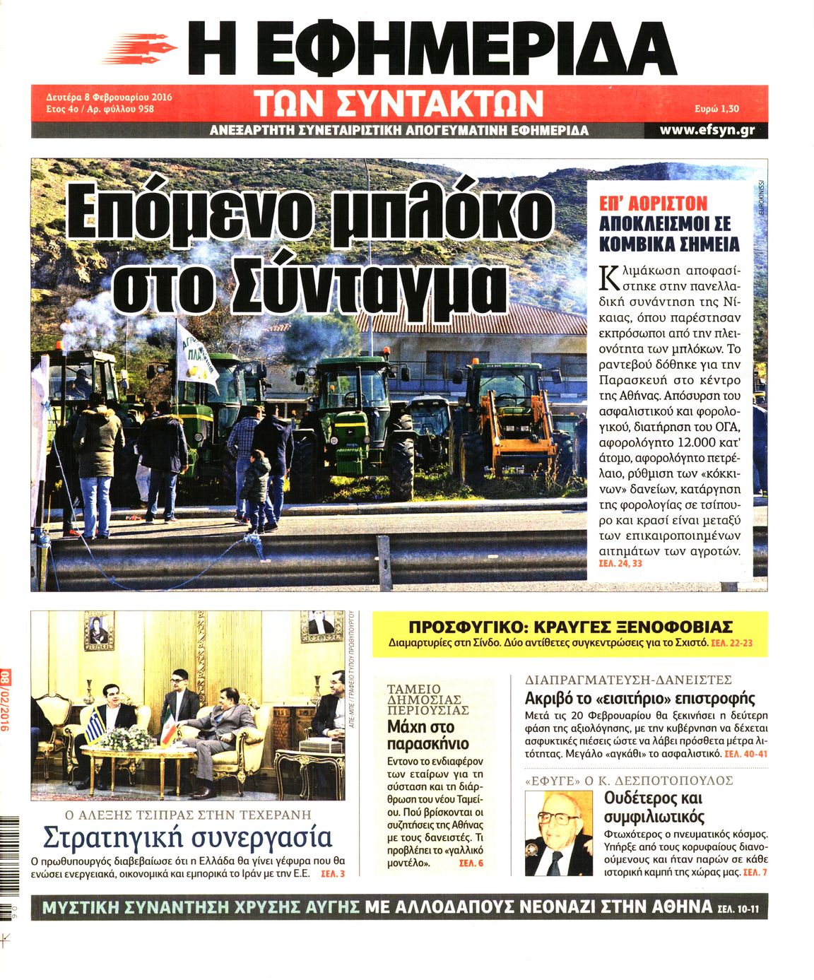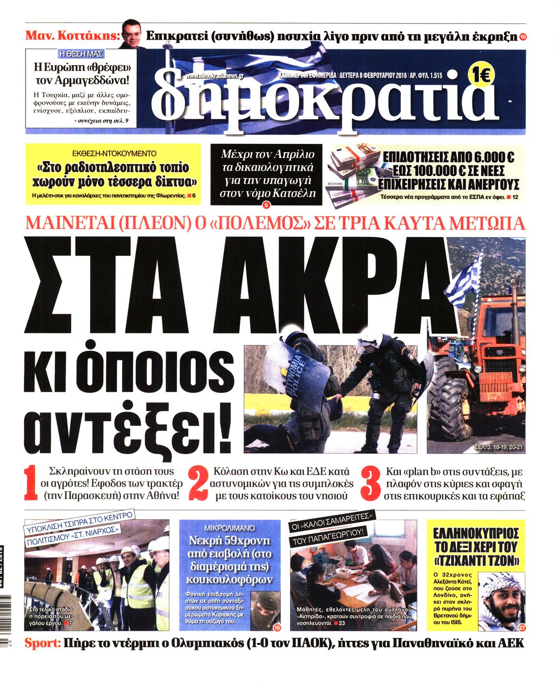 Οι πολιτικές εφημερίδες 8-2-2016 Enikos Newsroom 06:10, Δευτέρα 08 Φεβρουαρίου 2016 Media Διαβάστε τα σημερινά πρωτοσέλιδα των πολιτικών εφημερίδων: ΠΟΛΙΤΙΚΕΣ ΕΦΗΜΕΡΙΔΕΣ ΠΡΩΤΟΣΕΛΙΔΑ Μοιράσου το: σχολίασε κι εσύ (0 σχόλια) Ακολουθήστε το enikos.gr στο Google News και μάθετε πρώτοι όλες τις ειδήσεις Δείτε όλες τις τελευταίες ειδήσεις από την Ελλάδα και τον Κόσμο στο enikos.gr Ειδήσεις Ροή Ειδήσεων 4 ώρες πριν Χριστούγεννα στα μπλόκα: Επιμένουν στις κινητοποιήσεις τους οι αγρότες – Ανοίγουν τα διόδια το Σαββατοκύριακο 4 ώρες πριν Ουκρανία: Η άνευ προηγουμένου επίθεση σε ρωσικό τάνκερ στη Μεσόγειο και το μήνυμα προς στον Πούτιν – Το «μακρύ χέρι» του Κιέβου 3 ώρες πριν Πούτιν: Τα μηνύματα σε Ευρώπη και ΝΑΤΟ από το μαραθώνιο «σόου» του – Η απαίτηση για «σεβασμό» και η ειρήνη «με τους όρους» της Μόσχας 4 ώρες πριν Τραμπ: Δεν αποκλείει την πιθανότητα ενός πολέμου στη Βενεζουέλα – «Ο Μαδούρο ξέρει καλύτερα από τον καθένα τι ακριβώς θέλω» 5 ώρες πριν Συνεχίζει να προκαλεί ο Μίτσκοσκι: «Για μένα το όνομα Μακεδονία είναι ιερό» 3 ώρες πριν Ανακαλύφθηκαν αρχαία χρυσά νομίσματα 2.200 ετών που απεικονίζουν τον θεό Απόλλωνα – Η άγνωστη σύνδεση με τον Φίλιππο Β΄ της Μακεδονίας 4 ώρες πριν Ύπνος: Μια κρυφή κατάσταση του εγκεφάλου πριν από τον ύπνο μπορεί να είναι το “κλειδί” για υψηλή ευφυΐα και δημιουργικότητα 5 ώρες πριν Αριθμολογία: Οι άνθρωποι που έχουν γεννηθεί αυτές τις 4 ημερομηνίες, συχνά παρεξηγούνται – «Η καλοσύνη τους κρύβει τεράστια δύναμη» 6 ώρες πριν Ξεχάστε το καθάρισμα το Σαββατοκύριακο: Ο «κανόνας των 20 λεπτών» που θα σας λύσει τα χέρια 14 λεπτά πριν Εξάρχεια: Ένταση με μολότοφ, χημικά και κρότου λάμψης 30 λεπτά πριν ΗΠΑ: Τραγωδία στην Αλαμπάμα – Σκότωσε την δημοσιογράφο σύζυγό του και αυτοκτόνησε μπροστά στον 3χρονο γιο τους 44 λεπτά πριν Πρόταση γάμου στο ΣΕΦ κατά την διάρκεια του αγώνα Ολυμπιακός-Βιλερμπάν – Δείτε βίντεο 59 λεπτά πριν Euroleague: Επέστρεψε στις νίκες ο Ολυμπιακός, πήρε την ματσάρα της χρονιάς η Μπάρτσα – Τα αποτελέσματα και η βαθμολογία 1 ώρα πριν Συρία: Μαζικά πλήγματα των ΗΠΑ σε θέσεις του Ισλαμικού Κράτους – Χέγκσεθ: «Δεν είναι αρχή πολέμου, είναι μια δήλωση εκδίκησης» για το θάνατο των στρατιωτών μας ENIKOS NETWORK Το ΕΚΑΒ τιμήθηκε από την Ακαδημία Αθηνών για τα 40 χρόνια προσφοράς του Έχετε πραγματικά μεγάλη καρδιά; 10 χαρακτηριστικά όσων έχουν καλοσύνη Αναστολή μέτρων αναγκαστικής εκτέλεσης για κτηνοτρόφους που πλήττονται από την ευλογιά των αιγοπροβάτων Πλήρης επάρκεια προϊόντων στις λαϊκές της Αττικής, παρά τις αγροτικές κινητοποιήσεις – Τι απαντούν οι πωλητές Χαρτογραφώντας το «σημείο χωρίς επιστροφή»: Για πρώτη φορά αποκαλύπτεται με λεπτομέρεια το ακανθώδες όριο της ατμόσφαιρας τ... Η Google καταργεί τη λειτουργία «dark web report» – Πώς θα μπορούν οι χρήστες να διαγράφουν τα δεδομένα τους περισσότερα 22:42 , Παρασκευή 19 Δεκεμβρίου 2025 Γιώργος Γιαννόπουλος για “Το σόι σου”: “Είναι ευτυχία και ευλογία αυτή η σειρά” «Είναι ευτυχία και ευλογία η συγκυρία αυτής της σειράς», θα πει ο Γιώργος Γιαννόπουλος -ο αγαπ... 20:37 , Παρασκευή 19 Δεκεμβρίου 2025 Don’t Forget The Lyrics: Η Έλλη Κοκκίνου υποδέχεται 4 παίκτες που θα κάνουν τα πάντα για να μη χάσουν ούτε… μισή λέξη από τους στίχους Το «Don’t Forget The Lyrics» επιστρέφει απόψε, Παρασκευή 19 Δεκεμβρίου, στις 21:00 με νέο επει... 19:31 , Παρασκευή 19 Δεκεμβρίου 2025 GNTM: Απόψε ο μεγάλος τελικός για τους 4 φιναλίστ Έπειτα από μήνες γεμάτους μόδα, δημιουργία κ