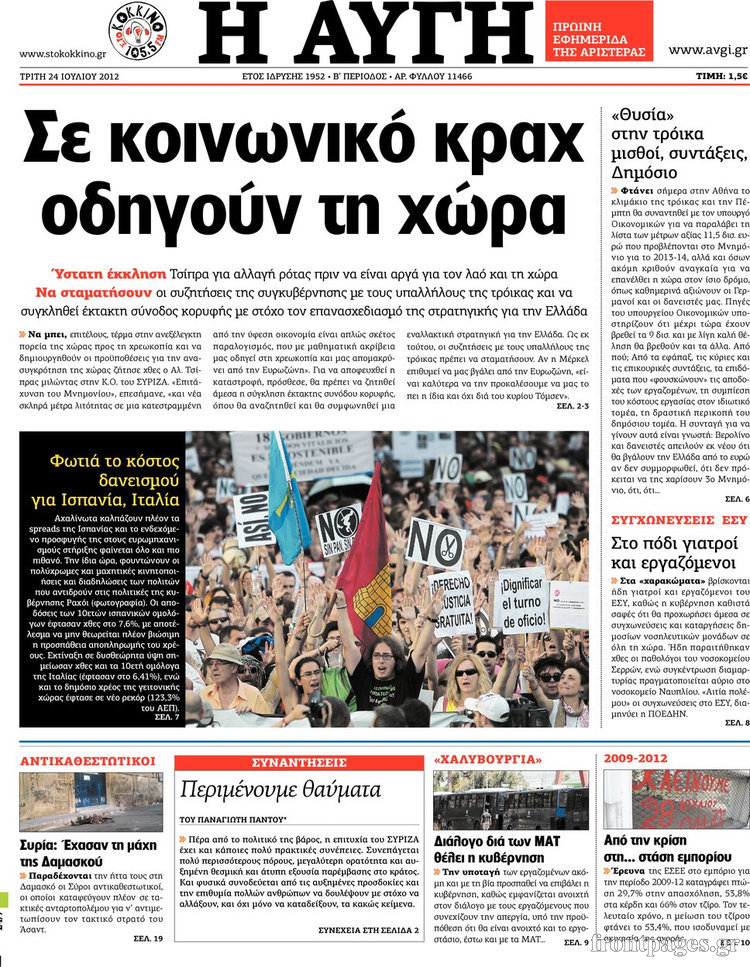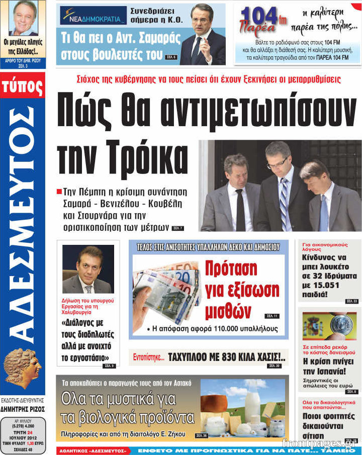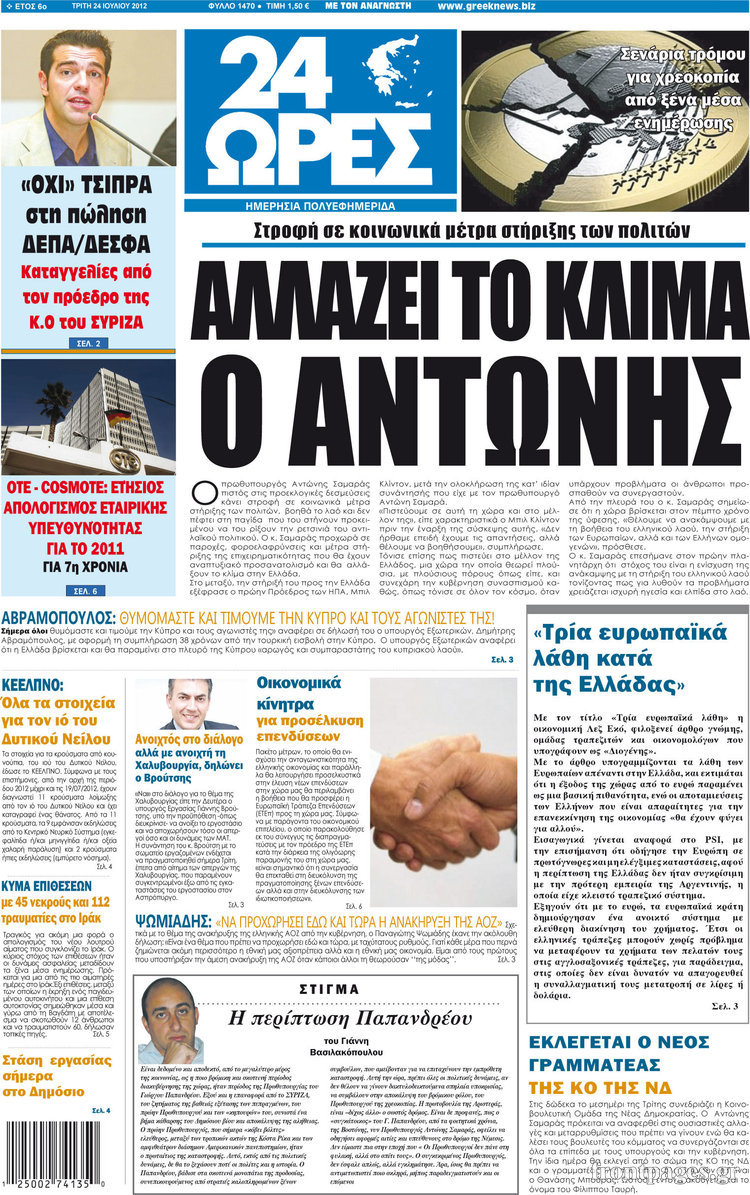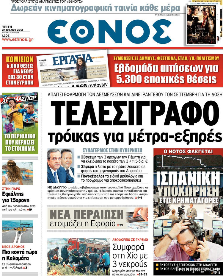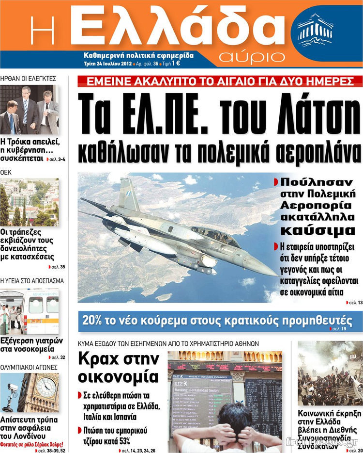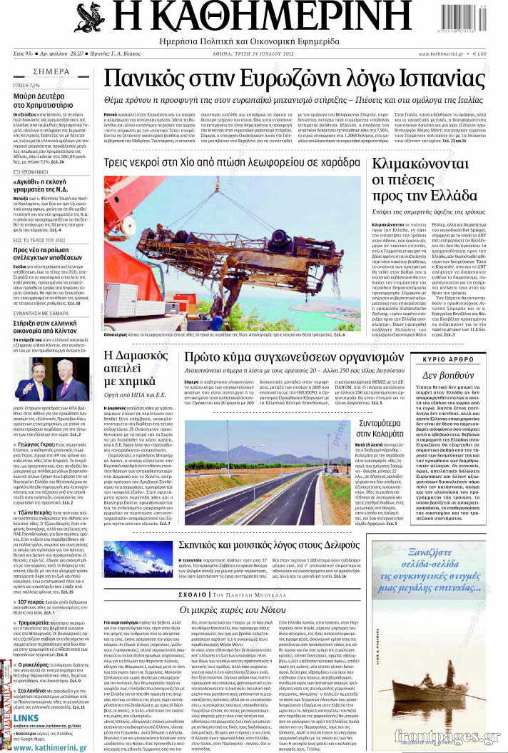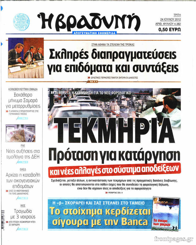 Διαβάστε τα σημερινά πρωτοσέλιδα των πολιτικών εφημερίδων