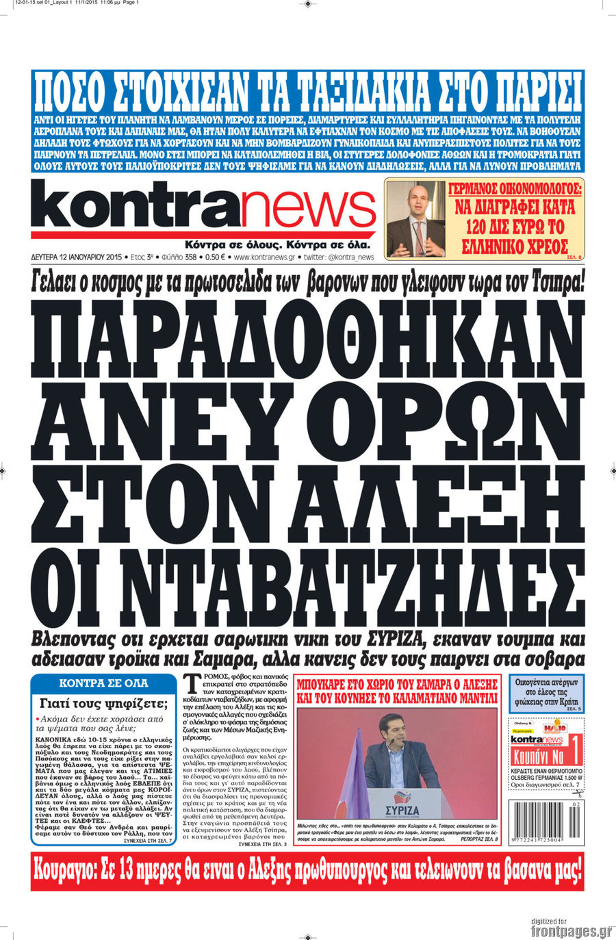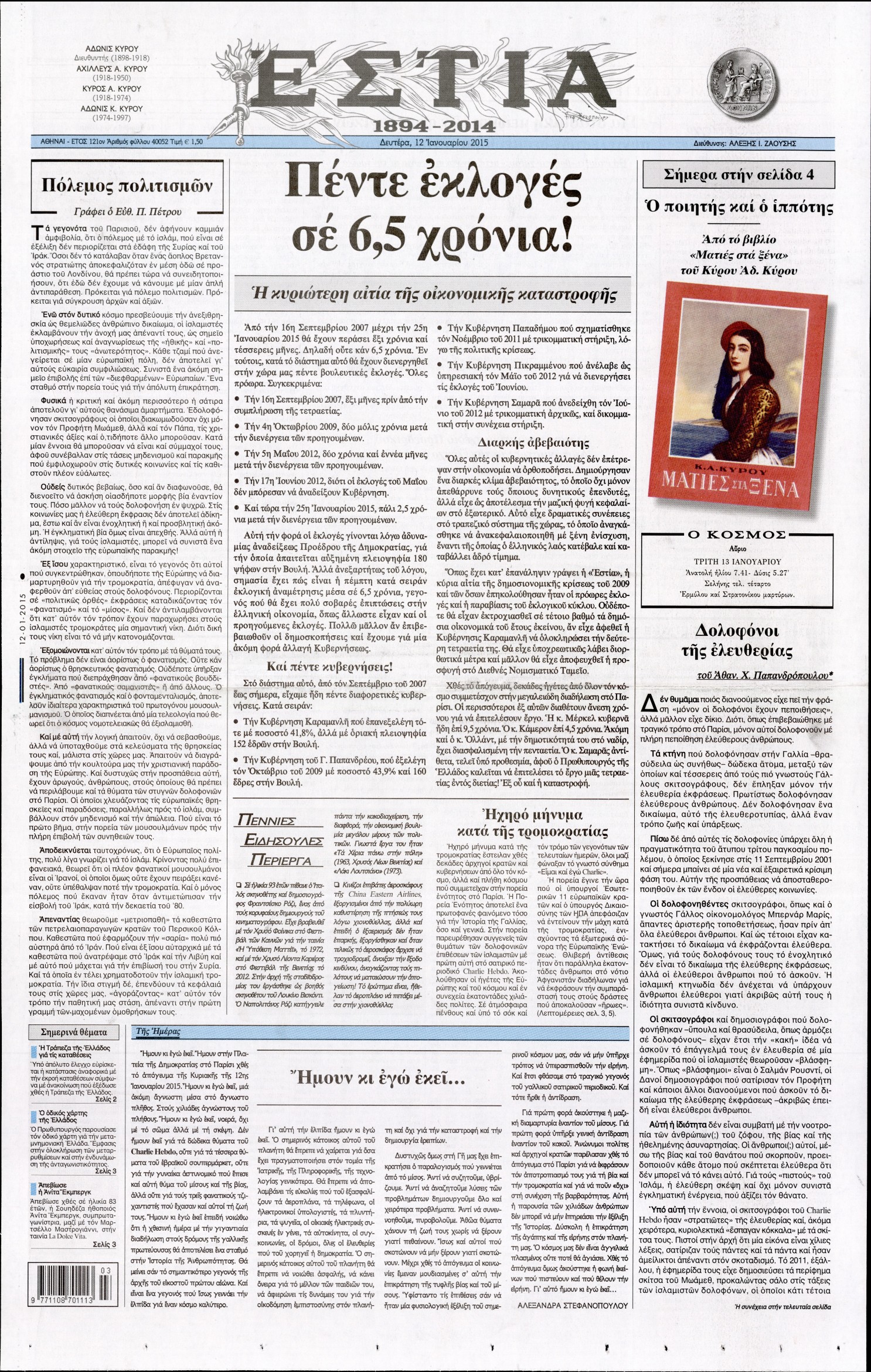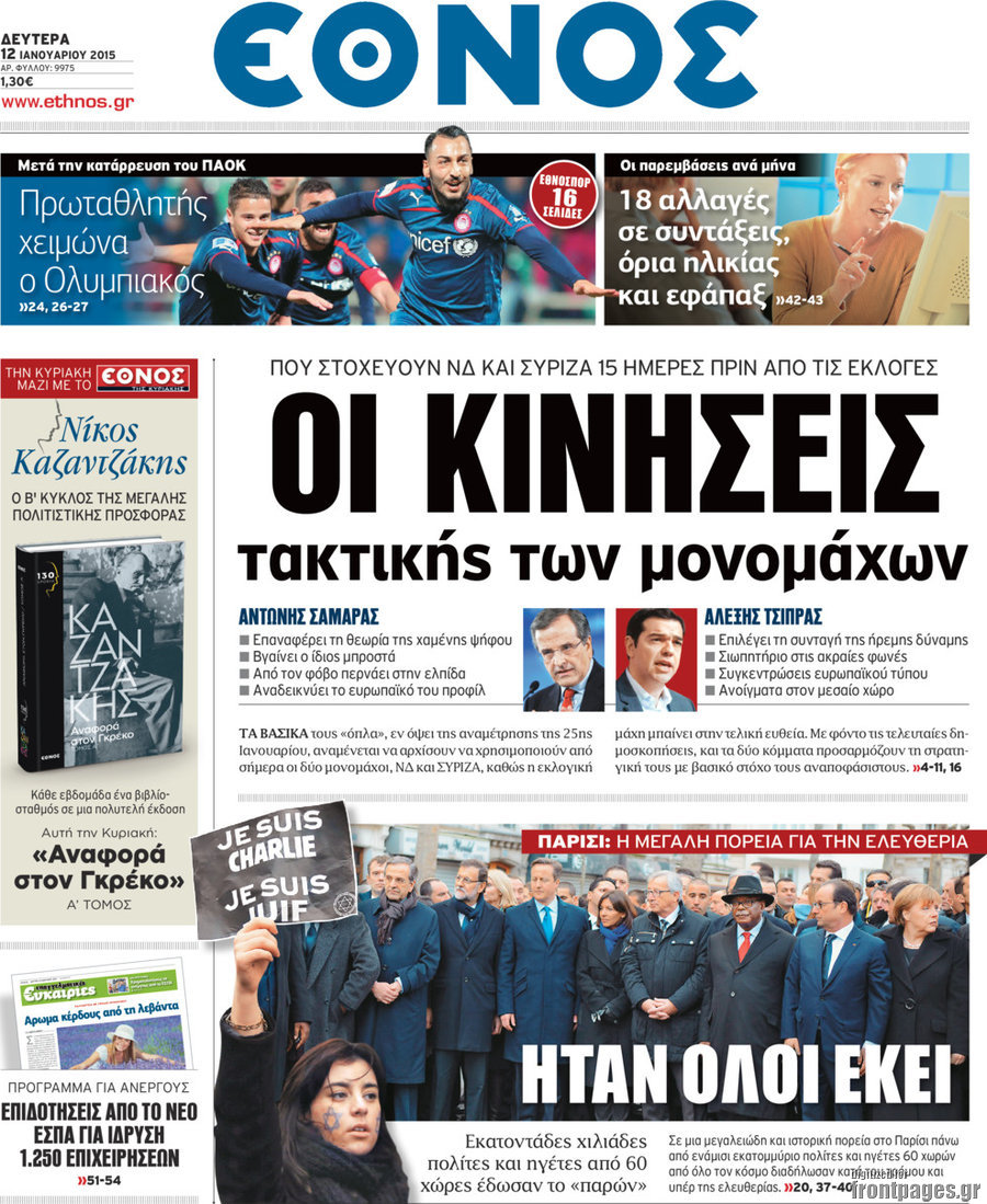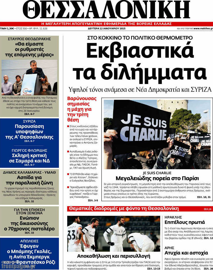 Οι πολιτικές εφημερίδες Enikos Newsroom 07:44, Δευτέρα 12 Ιανουαρίου 2015 Media Οι πολιτικές εφημερίδες Διαβάστε τα πρωτοσέλιδα των πολιτικών εφημερίδων: ΕΦΗΜΕΡΙΔΕΣ ΠΟΛΙΤΙΚΕΣ ΕΦΗΜΕΡΙΔΕΣ ΠΡΩΤΟΣΕΛΙΔΑ Μοιράσου το: σχολίασε κι εσύ (0 σχόλια) Ακολουθήστε το enikos.gr στο Google News και μάθετε πρώτοι όλες τις ειδήσεις Δείτε όλες τις τελευταίες ειδήσεις από την Ελλάδα και τον Κόσμο στο enikos.gr Ειδήσεις Ροή Ειδήσεων 2 ώρες πριν Υπόθεση Έπσταϊν: Το Υπουργείο Δικαιοσύνης δημοσιοποίησε μια σειρά από εξαιρετικά επεξεργασμένα αρχεία – «Λείπουν τα πιο σημαντικά έγγραφα», λένε οι Δημοκρατικοί 42 λεπτά πριν Ο «χάρτης» με τις αυξήσεις και τις φοροελαφρύνσεις του 2026 – Ποιοι και πόσα κερδίζουν 11 ώρες πριν Χριστούγεννα στα μπλόκα: Επιμένουν στις κινητοποιήσεις τους οι αγρότες – Ανοίγουν τα διόδια το Σαββατοκύριακο 2 ώρες πριν ΟΝΕΧ – MEGATUGS: Ξεκίνησε η ναυπήγηση ρυμουλκών στην Ελλάδα – Προθάλαμος πολεμικών πλοίων – Δείτε φωτογραφίες και βίντεο 2 ώρες πριν Καιρός: Αλλαγή σκηνικού σήμερα με βροχές και πτώση της θερμοκρασίας – Οι προβλέψεις των μετεωρολόγων για τα Χριστούγεννα 3 ώρες πριν Αυγά: Πόσα μπορείτε να τρώτε την ημέρα με ασφάλεια για μέγιστη πρόσληψη πρωτεΐνης 4 ώρες πριν Τα ζώδια σήμερα, Σάββατο 20 Δεκεμβρίου: Παρθένοι, το σύμπαν σας δίνει το κλειδί 3 ώρες πριν Οπτική ψευδαίσθηση: Μόνο αν είσαι ο Σέρλοκ Χολμς θα βρεις τον αριθμό «87» σε 7 δευτερόλεπτα 1 ώρα πριν Αρχαιολόγοι ανακάλυψαν σε χωράφι απεικόνιση 600 ετών ενός Αγίου – Τα στοιχεία που δείχνουν ότι μαρτύρησε 6 λεπτά πριν Ουκρανία: Drones έπληξαν εξέδρα πετρελαίου και πολεμικό πλοίο της Ρωσίας στην Κασπία 14 λεπτά πριν Παιδική υπέρταση: Μια σιωπηλή απειλή που αυξάνεται διεθνώς 15 λεπτά πριν Αγχώνεται για το χριστουγεννιάτικο δώρο που πήρε στην πλούσια σύντροφό του – «Φοβάμαι πως θα το βρει φθηνιάρικο, φοράει βραχιόλια Cartier» 22 λεπτά πριν Enerwave: Το νέο «ρεύμα» στη λιανική ενέργειας που αλλάζει την εμπειρία του καταναλωτή 26 λεπτά πριν Γιώργος Μαζωνάκης: Τη Δευτέρα η μήνυση του τραγουδιστή κατά του 22χρονου ENIKOS NETWORK Πόσα κιλά παίρνουμε πραγματικά τα Χριστούγεννα, σύμφωνα με την επιστήμη – Πώς να το αποτρέψουμε; Το δημοφιλές ρόφημα που αυξάνει την πίεση πιο γρήγορα και από το αλάτι Mega χριστουγεννιάτικη φορολοταρία: «Κλείδωσε» η ημερομηνία για την κλήρωση – Ερωτήσεις και απαντήσεις Αναστολή μέτρων αναγκαστικής εκτέλεσης για κτηνοτρόφους που πλήττονται από την ευλογιά των αιγοπροβάτων Χαρτογραφώντας το «σημείο χωρίς επιστροφή»: Για πρώτη φορά αποκαλύπτεται με λεπτομέρεια το ακανθώδες όριο της ατμόσφαιρας τ... Η Google καταργεί τη λειτουργία «dark web report» – Πώς θα μπορούν οι χρήστες να διαγράφουν τα δεδομένα τους περισσότερα 08:14 , Σάββατο 20 Δεκεμβρίου 2025 Τρομεροί γονείς: Η Μαρία Καβογιάννη εισβάλλει στο σπίτι της οικογένειας Στεφανίδη Όσα θα δούμε στο νέο διπλό επεισόδιο της σειράς «Τρομεροί γονείς», σήμερα Σάββατο 20 Δεκεμβρίο... 05:48 , Σάββατο 20 Δεκεμβρίου 2025 Οι οικονομικές εφημερίδες 20/12/2025 Διαβάστε τα πρωτοσέλιδα από τις οικονομικές εφημερίδες, σήμερα 20/12/2025. 05:43 , Σάββατο 20 Δεκεμβρίου 2025 Οι αθλητικές εφημερίδες 20/12/2025 Διαβάστε τα πρωτοσέλιδα από τις αθλητικές εφημερίδες, σήμερα 20/12/2025. 05:38 , Σάββατο 20 Δεκεμβρίου 2025 Οι πολιτικές εφημερίδες 20/12/2025 Διαβάστε τα πρωτοσέλιδα από τις πολιτικές εφημερίδες, σήμερα 20/12/2025. ΤΕΛΕΥΤΑΙΕΣ ΕΙΔΗΣΕΙΣ 6 λεπτά πριν Ουκρανία: Drones έπληξαν εξέδρα πετρελαίου και πολεμικό... 14 λεπτά πριν Παιδική υπέρταση: Μια