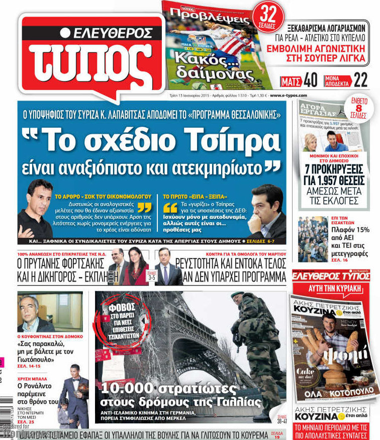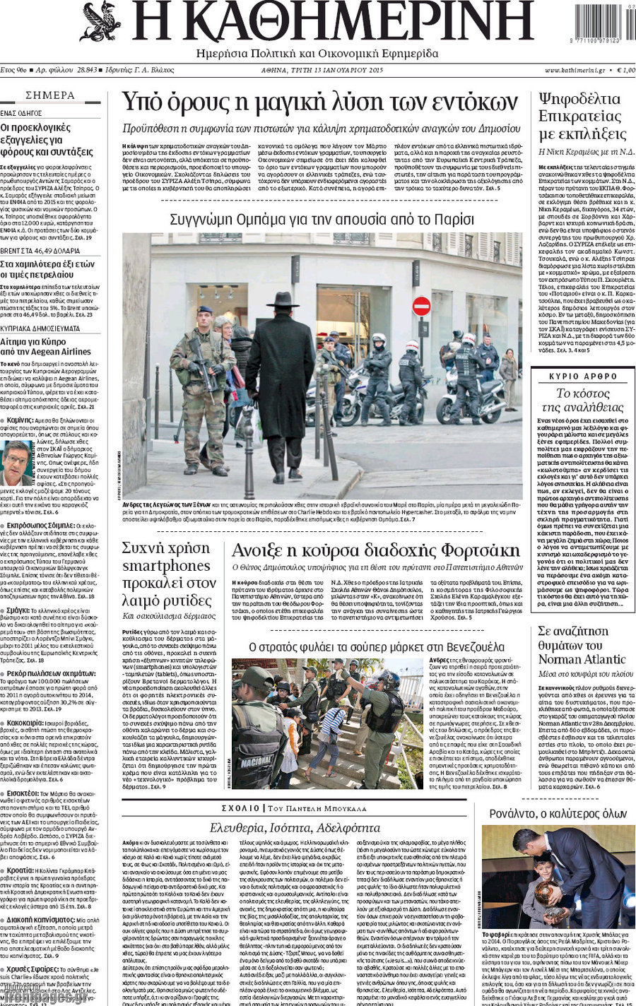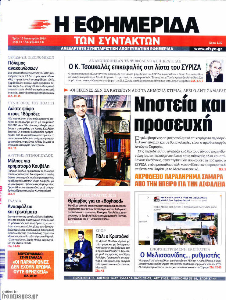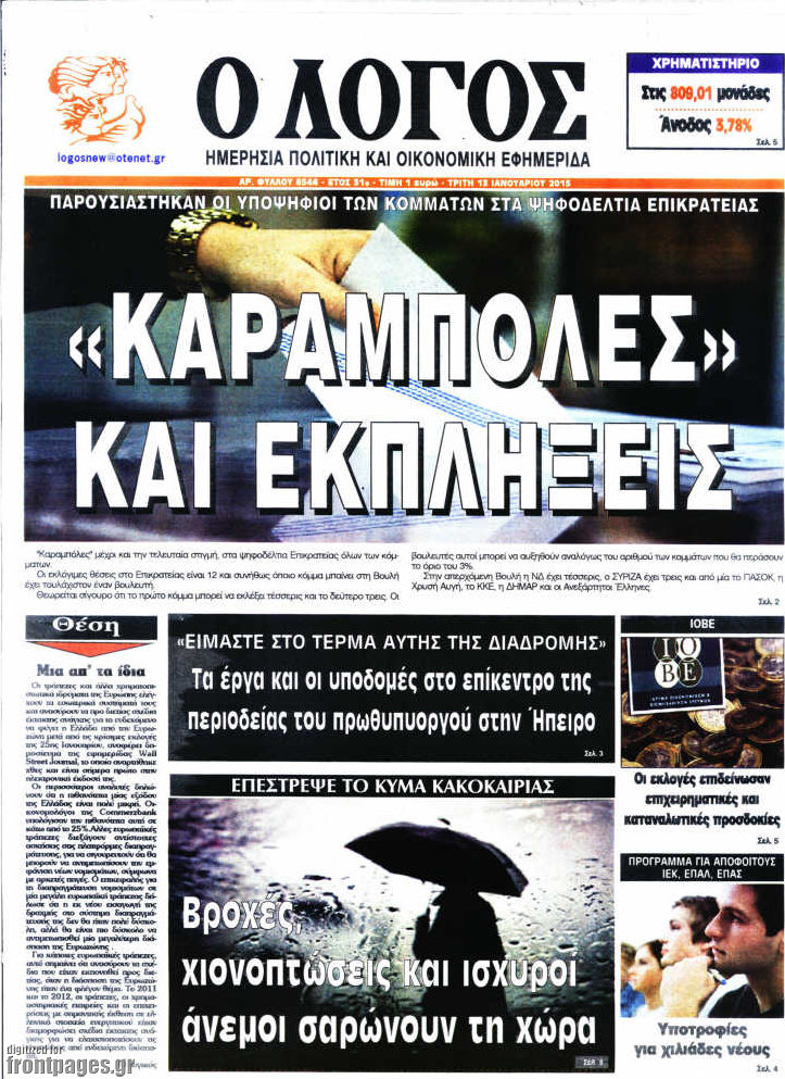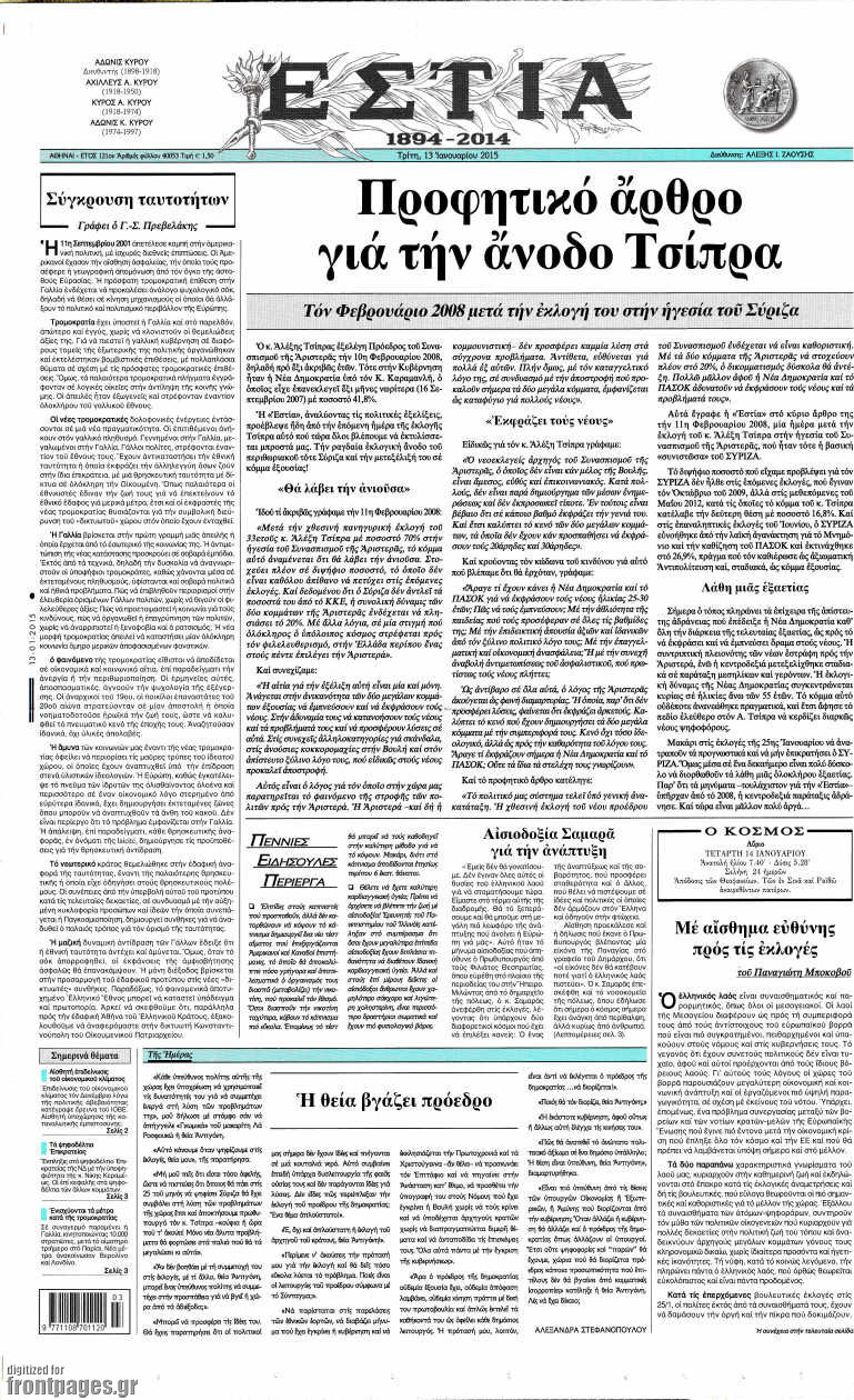Οι πολιτικές εφημερίδες Enikos Newsroom 08:05, Τρίτη 13 Ιανουαρίου 2015 Media Διαβάστε τα πρωτοσέλιδα των πολιτικών εφημερίδων: ΠΟΛΙΤΙΚΕΣ ΕΦΗΜΕΡΙΔΕΣ ΠΡΩΤΟΣΕΛΙΔΑ Μοιράσου το: σχολίασε κι εσύ (0 σχόλια) Ακολουθήστε το enikos.gr στο Google News και μάθετε πρώτοι όλες τις ειδήσεις Δείτε όλες τις τελευταίες ειδήσεις από την Ελλάδα και τον Κόσμο στο enikos.gr Ειδήσεις Ροή Ειδήσεων 42 λεπτά πριν Κύκλωμα διακίνησης ναρκωτικών σε σχολεία: Βίντεο ντοκουμέντο από τα βασανιστήρια στους ανήλικους – Συζητούσαν για το πώς θα κάνουν «ξέπλυμα χρήματος» 3 ώρες πριν Αγρότες: Σήκωσαν τις μπάρες στα διόδια των Αφιδνών – ΦΩΤΟ και ΒΙΝΤΕΟ 37 λεπτά πριν Αιματηρό επεισόδιο στον Άγιο Παντελεήμονα – Δύο τραυματίες, αναζητείται ο δράστης 4 ώρες πριν Κωνσταντίνος Ανεστίδης: «Είμαι αθώος, είμαι καθαρός σαν αστραπή και η αστραπή θα πέσει στο κεφάλι τους» – ΒΙΝΤΕΟ 2 ώρες πριν Αποχώρησε από το Κίνημα Δημοκρατίας η Κυριακή Μάλαμα – Οι αιχμές για τον Στέφανο Κασσελάκη 32 λεπτά πριν Ύπνος: Τι είναι ο «κανόνας 3-3-3» που χρησιμοποιεί ένας γιατρός για να ξεχωρίσει την κόπωση από την αϋπνία 4 ώρες πριν Είσοδος σπιτιού: Πώς να οργανώσετε το χώρο πριν έρθουν οι καλεσμένοι σας – Η ρουτίνα 3 βημάτων 2 ώρες πριν Αριθμολογία: Οι άνθρωποι που έχουν γεννηθεί αυτές τις 4 ημερομηνίες, είναι οι πιο πιστοί και αφοσιωμένοι σύντροφοι 2 ημέρες πριν Enerwave: Το νέο «ρεύμα» στη λιανική ενέργειας που αλλάζει την εμπειρία του καταναλωτή 6 λεπτά πριν Ελένη Βουλγαράκη για Φώτη Ιωαννίδη: «Δεν είναι ωραία η σχέση από απόσταση, φέτος τα Χριστούγεννα θα είμαι δίπλα του» 16 λεπτά πριν Κασσελάκης για παραίτηση Μάλαμα: «Η πορεία μας δεν θα καθοριστεί από μεμονωμένα πρόσωπα, μηχανισμούς και προσωπικές ατζέντες» 24 λεπτά πριν Κλήρωση ΤΖΟΚΕΡ 21/12/2025: Αυτοί είναι οι τυχεροί αριθμοί 32 λεπτά πριν Ύπνος: Τι είναι ο «κανόνας 3-3-3» που χρησιμοποιεί ένας γιατρός για να ξεχωρίσει την κόπωση από την αϋπνία 37 λεπτά πριν Αιματηρό επεισόδιο στον Άγιο Παντελεήμονα – Δύο τραυματίες, αναζητείται ο δράστης ENIKOS NETWORK Οι γυναίκες έχουν βρει μια νέα απόλαυση στην κρεβατοκάμαρα που οι περισσότεροι άνδρες αγνοούν Christmas glow: 5 χρυσές συμβουλές για επιδερμίδα που λάμπει από ομορφιά τα Χριστούγεννα Νέο έτος ρεκόρ για τον ελληνικό τουρισμό το 2025: «Είμαστε μέσα στους 10 πλέον επισκέψιμους προορισμούς παγκοσμίως» λέει η ... Τιμές καυσίμων: Πόσο θα πληρώσουν οι εκδρομείς των Χριστουγέννων – Το κόστος μετακινήσεων σε δημοφιλείς προορισμούς Χαρτογραφώντας το «σημείο χωρίς επιστροφή»: Για πρώτη φορά αποκαλύπτεται με λεπτομέρεια το ακανθώδες όριο της ατμόσφαιρας τ... Η Google καταργεί τη λειτουργία «dark web report» – Πώς θα μπορούν οι χρήστες να διαγράφουν τα δεδομένα τους περισσότερα 21:30 , Κυριακή 21 Δεκεμβρίου 2025 Ο Δικαστής: Στα χέρια της Αστυνομίας βίντεο, που ανατρέπει όλα τα δεδομένα – Στενεύει ο κλοιός γύρω από τον Δικαστή Καταιγιστικές εξελίξεις στο τελευταίο επεισόδιο της χρονιάς της σειράς “Ο Δικαστής”... 17:18 , Κυριακή 21 Δεκεμβρίου 2025 «Η Μεγάλη Χίμαιρα»: Μάγεψε το κοινό κατά την avant-première της προβολής της Την Πρωτοχρονιά (Πέμπτη 1η Ιανουαρίου 2026) στο ERTFLIX θα γίνει η πρεμιέρα της πολυαναμενόμεν... 15:08 , Κυριακή 21 Δεκεμβρίου 2025 Μια νύχτα μόνο: Η Αρετή και ο Οδυσσέας έρχονται και πάλι κοντά Το νέο επεισόδιο της δραματικής σειράς του MEGA «Μια νύχτα μόνο», θα προβληθεί απόψε Κυριακή 2... 14:24 , Κυριακή 21 Δεκεμβρίου 2025 IQ 160: Ο φάκελος με το τεστ πατρότητας ανοίγει, απόψε στις 21:00 στο Star Ανατρεπτι
