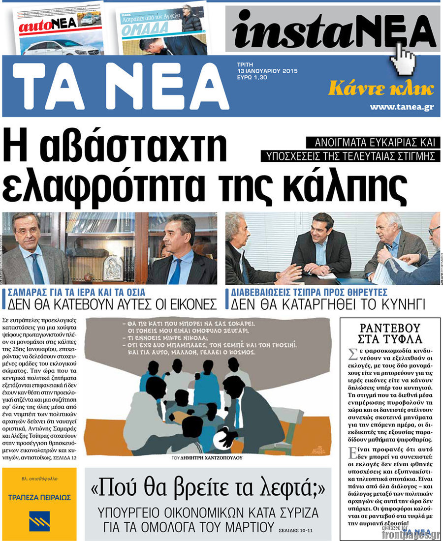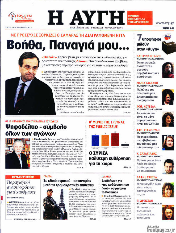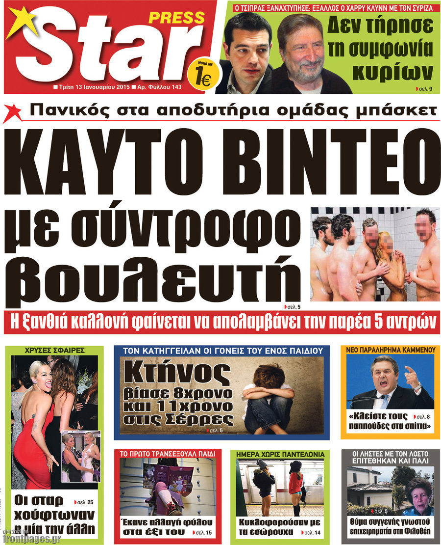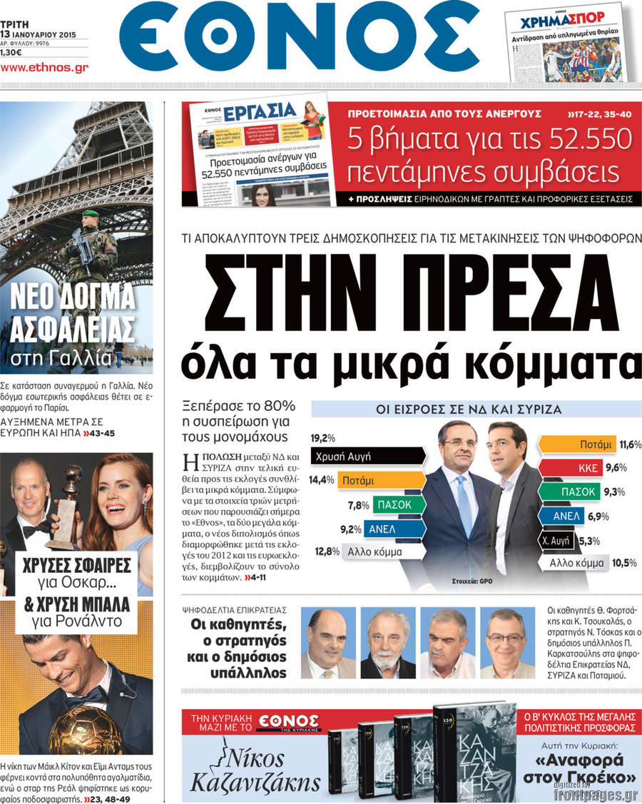 Οι πολιτικές εφημερίδες Enikos Newsroom 08:05, Τρίτη 13 Ιανουαρίου 2015 Media Διαβάστε τα πρωτοσέλιδα των πολιτικών εφημερίδων: ΠΟΛΙΤΙΚΕΣ ΕΦΗΜΕΡΙΔΕΣ ΠΡΩΤΟΣΕΛΙΔΑ Μοιράσου το: σχολίασε κι εσύ (0 σχόλια) Ακολουθήστε το enikos.gr στο Google News και μάθετε πρώτοι όλες τις ειδήσεις Δείτε όλες τις τελευταίες ειδήσεις από την Ελλάδα και τον Κόσμο στο enikos.gr Ειδήσεις Ροή Ειδήσεων 42 λεπτά πριν Κύκλωμα διακίνησης ναρκωτικών σε σχολεία: Βίντεο ντοκουμέντο από τα βασανιστήρια στους ανήλικους – Συζητούσαν για το πώς θα κάνουν «ξέπλυμα χρήματος» 3 ώρες πριν Αγρότες: Σήκωσαν τις μπάρες στα διόδια των Αφιδνών – ΦΩΤΟ και ΒΙΝΤΕΟ 37 λεπτά πριν Αιματηρό επεισόδιο στον Άγιο Παντελεήμονα – Δύο τραυματίες, αναζητείται ο δράστης 4 ώρες πριν Κωνσταντίνος Ανεστίδης: «Είμαι αθώος, είμαι καθαρός σαν αστραπή και η αστραπή θα πέσει στο κεφάλι τους» – ΒΙΝΤΕΟ 2 ώρες πριν Αποχώρησε από το Κίνημα Δημοκρατίας η Κυριακή Μάλαμα – Οι αιχμές για τον Στέφανο Κασσελάκη 32 λεπτά πριν Ύπνος: Τι είναι ο «κανόνας 3-3-3» που χρησιμοποιεί ένας γιατρός για να ξεχωρίσει την κόπωση από την αϋπνία 4 ώρες πριν Είσοδος σπιτιού: Πώς να οργανώσετε το χώρο πριν έρθουν οι καλεσμένοι σας – Η ρουτίνα 3 βημάτων 2 ώρες πριν Αριθμολογία: Οι άνθρωποι που έχουν γεννηθεί αυτές τις 4 ημερομηνίες, είναι οι πιο πιστοί και αφοσιωμένοι σύντροφοι 2 ημέρες πριν Enerwave: Το νέο «ρεύμα» στη λιανική ενέργειας που αλλάζει την εμπειρία του καταναλωτή 6 λεπτά πριν Ελένη Βουλγαράκη για Φώτη Ιωαννίδη: «Δεν είναι ωραία η σχέση από απόσταση, φέτος τα Χριστούγεννα θα είμαι δίπλα του» 16 λεπτά πριν Κασσελάκης για παραίτηση Μάλαμα: «Η πορεία μας δεν θα καθοριστεί από μεμονωμένα πρόσωπα, μηχανισμούς και προσωπικές ατζέντες» 24 λεπτά πριν Κλήρωση ΤΖΟΚΕΡ 21/12/2025: Αυτοί είναι οι τυχεροί αριθμοί 32 λεπτά πριν Ύπνος: Τι είναι ο «κανόνας 3-3-3» που χρησιμοποιεί ένας γιατρός για να ξεχωρίσει την κόπωση από την αϋπνία 37 λεπτά πριν Αιματηρό επεισόδιο στον Άγιο Παντελεήμονα – Δύο τραυματίες, αναζητείται ο δράστης ENIKOS NETWORK Οι γυναίκες έχουν βρει μια νέα απόλαυση στην κρεβατοκάμαρα που οι περισσότεροι άνδρες αγνοούν Christmas glow: 5 χρυσές συμβουλές για επιδερμίδα που λάμπει από ομορφιά τα Χριστούγεννα Νέο έτος ρεκόρ για τον ελληνικό τουρισμό το 2025: «Είμαστε μέσα στους 10 πλέον επισκέψιμους προορισμούς παγκοσμίως» λέει η ... Τιμές καυσίμων: Πόσο θα πληρώσουν οι εκδρομείς των Χριστουγέννων – Το κόστος μετακινήσεων σε δημοφιλείς προορισμούς Χαρτογραφώντας το «σημείο χωρίς επιστροφή»: Για πρώτη φορά αποκαλύπτεται με λεπτομέρεια το ακανθώδες όριο της ατμόσφαιρας τ... Η Google καταργεί τη λειτουργία «dark web report» – Πώς θα μπορούν οι χρήστες να διαγράφουν τα δεδομένα τους περισσότερα 21:30 , Κυριακή 21 Δεκεμβρίου 2025 Ο Δικαστής: Στα χέρια της Αστυνομίας βίντεο, που ανατρέπει όλα τα δεδομένα – Στενεύει ο κλοιός γύρω από τον Δικαστή Καταιγιστικές εξελίξεις στο τελευταίο επεισόδιο της χρονιάς της σειράς “Ο Δικαστής”... 17:18 , Κυριακή 21 Δεκεμβρίου 2025 «Η Μεγάλη Χίμαιρα»: Μάγεψε το κοινό κατά την avant-première της προβολής της Την Πρωτοχρονιά (Πέμπτη 1η Ιανουαρίου 2026) στο ERTFLIX θα γίνει η πρεμιέρα της πολυαναμενόμεν... 15:08 , Κυριακή 21 Δεκεμβρίου 2025 Μια νύχτα μόνο: Η Αρετή και ο Οδυσσέας έρχονται και πάλι κοντά Το νέο επεισόδιο της δραματικής σειράς του MEGA «Μια νύχτα μόνο», θα προβληθεί απόψε Κυριακή 2... 14:24 , Κυριακή 21 Δεκεμβρίου 2025 IQ 160: Ο φάκελος με το τεστ πατρότητας ανοίγει, απόψε στις 21:00 στο Star Ανατρεπτι