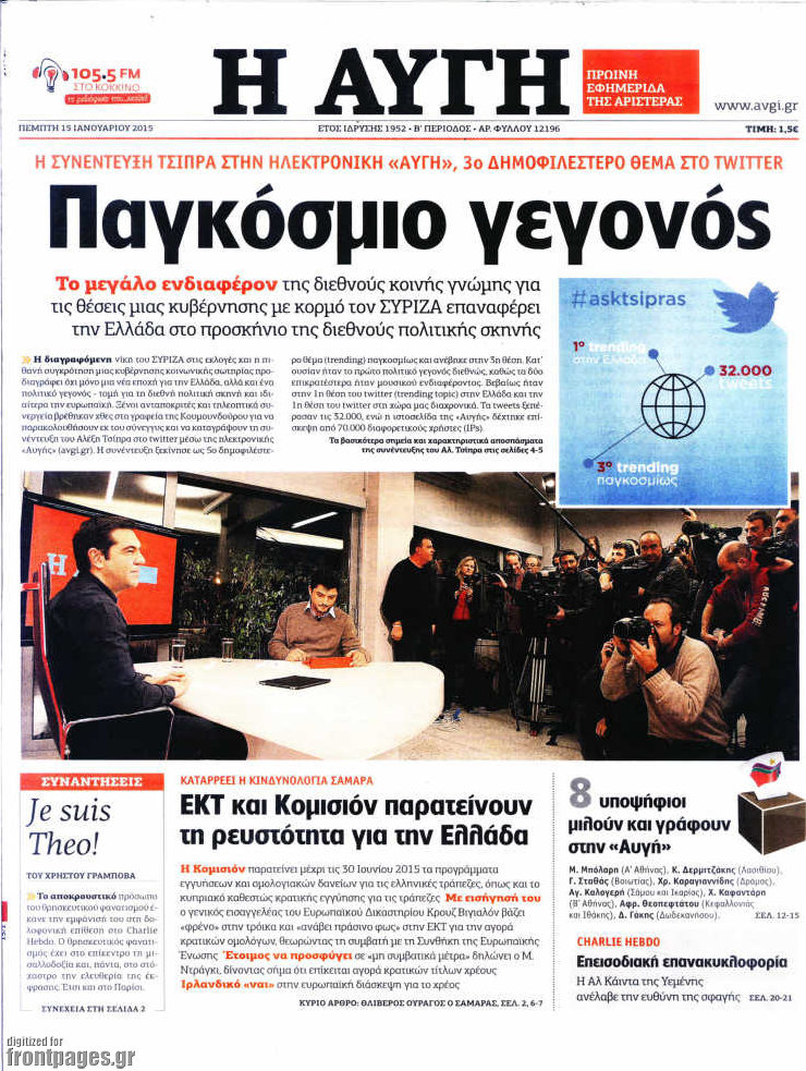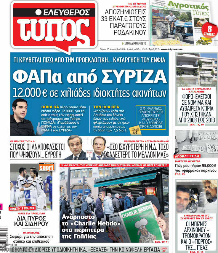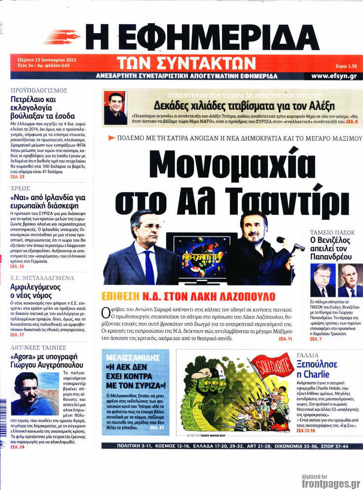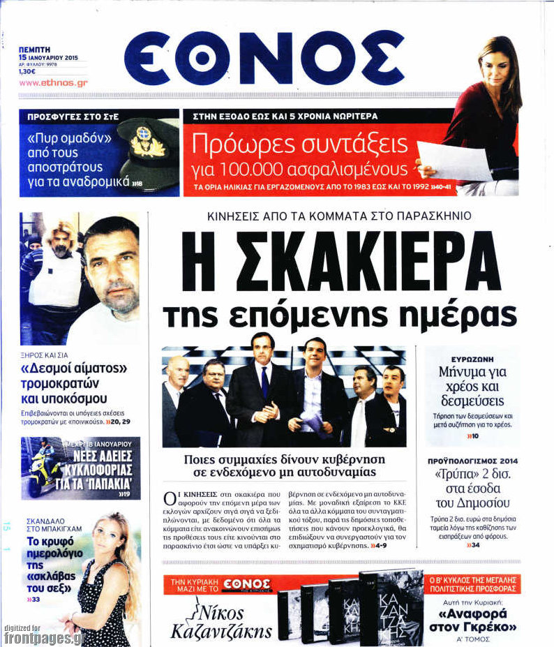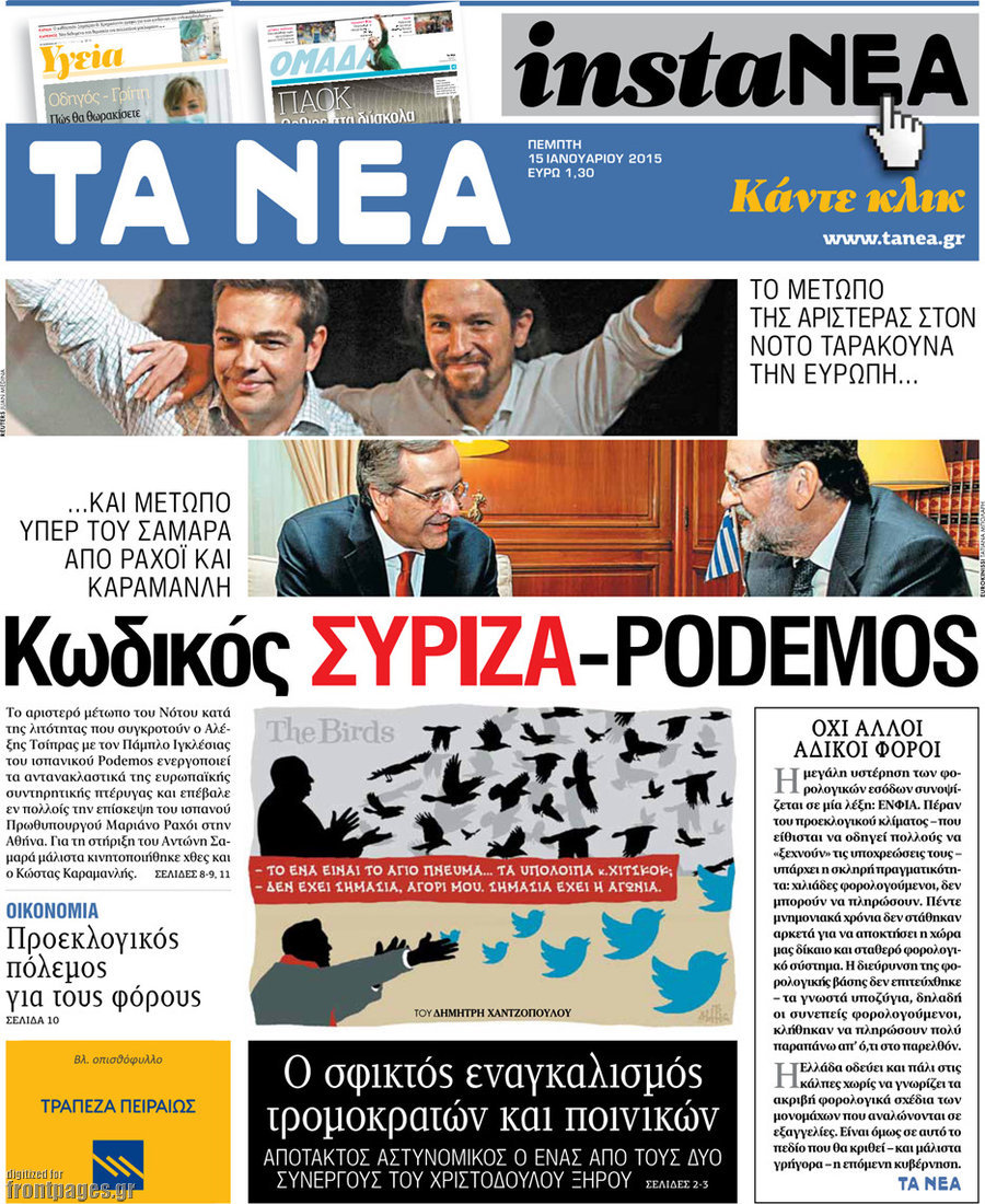 Οι πολιτικές εφημερίδες Enikos Newsroom 07:55, Πέμπτη 15 Ιανουαρίου 2015 Media Διαβάστε τα πρωτοσέλιδα των πολιτικών εφημερίδων: ΠΟΛΙΤΙΚΕΣ ΕΦΗΜΕΡΙΔΕΣ ΠΡΩΤΟΣΕΛΙΔΑ Μοιράσου το: σχολίασε κι εσύ (0 σχόλια) Ακολουθήστε το enikos.gr στο Google News και μάθετε πρώτοι όλες τις ειδήσεις Δείτε όλες τις τελευταίες ειδήσεις από την Ελλάδα και τον Κόσμο στο enikos.gr Ειδήσεις Ροή Ειδήσεων 5 ώρες πριν Νέα Πέραμος: Πού στρέφονται οι έρευνες των αρχών για το άγριο έγκλημα με θύμα τον 27χρονο επιχειρηματία – «Δεν είχε πειράξει κανέναν» λένε οι γονείς του 5 ώρες πριν Μητσοτάκης για τη συνταγματική αναθεώρηση: «Φιλοδοξία μου είναι το 2030 να έχουμε κλείσει όλες τις εκκρεμότητες με το πελατειακό κράτος» 5 ώρες πριν Εξαφάνιση Λόρας: Ο πατέρας της ήταν αυτός που αποκάλυψε ότι ταξίδεψε στη Γερμανία – Το πρόσωπο-«κλειδί», η νέα μαρτυρία και οι «στοχευμένες» κινήσεις της ανήλικης 8 ώρες πριν Δημοσκόπηση Alco: Στις 13 μονάδες η διαφορά ΝΔ-ΠΑΣΟΚ – Πώς αξιολογούν οι πολίτες τις νέες πολιτικές κινήσεις; 4 ώρες πριν The Washington Post: Τι έχουμε μάθει ως τώρα από τα νέα στοιχεία στην υπόθεση Επστάιν – «Η αλήθεια να φτάσει στο κόκκαλο» 34 λεπτά πριν Τα ζώδια σήμερα, Τρίτη 3 Φεβρουαρίου 2026: Τοξότες, σας εξαντλεί να είστε συνεχώς «στην τσίτα» και ψάχνετε κάτι διαφορετικό 7 ώρες πριν Ποιος είναι ο έρωτας της ζωή σας; Ανακαλύψτε την αδελφή-ψυχή σας με βάση τον μήνα γέννησή σας 9 ώρες πριν Λευκές περσίδες ξανά: Η απλή μέθοδος για να εξαφανίσετε την κιτρινίλα χωρίς τρίψιμο 6 ώρες πριν Ύπνος: Η βραδινή ρουτίνα που εγγυάται 8 ώρες ξεκούρασης, σύμφωνα με ειδικό 15 λεπτά πριν Η Κούβα «αδειάζει» τον Τραμπ: Δεν υπάρχει επίσημος διάλογος με τις ΗΠΑ, μόνο διπλωματικές «ανταλλαγές» 34 λεπτά πριν Τα ζώδια σήμερα, Τρίτη 3 Φεβρουαρίου 2026: Τοξότες, σας εξαντλεί να είστε συνεχώς «στην τσίτα» και ψάχνετε κάτι διαφορετικό 39 λεπτά πριν Λαβρόφ: Θεμιτοί στόχοι οι ξένες στρατιωτικές δυνάμεις στην Ουκρανία 56 λεπτά πριν Δημήτρης Νατσιός: Η μονιμότητα των δημοσίων αποτελεί κόκκινη γραμμή για εμάς – Η «Νίκη» θα κατέβει αυτόνομα στις εκλογές 1 ώρα πριν Ουκρανία: Tο Κίεβο δέχεται πυραυλική επίθεση – Ισχυρές εκρήξεις ENIKOS NETWORK 5 πράγματα που κάνουν μαζί τα ευτυχισμένα ζευγάρια Δύο παιδιά με γρίπη στις ΜΕΘ – Συνεχίζεται η απειλή των εποχικών λοιμώξεων Επιθεώρηση Εργασίας: Αυξήθηκαν κατά 4% οι έλεγχοι το 2025 – Στα 53,4 εκατ. ευρώ τα πρόστιμα Τα ξενοδοχεία κατέθεσαν αγωγή κατά της Booking για παράνομες ρήτρες Ευπάθεια στο moltbook ai αποκαλύπτει email, tokens σύνδεσης και api keys Αυτός είναι ο ρόλος της μικρής τρύπας στους νυχοκόπτες – «Είμαι ο μόνος που δεν το ήξερε;»» περισσότερα 18:18 , Δευτέρα 02 Φεβρουαρίου 2026 Άγιος Έρωτας: Η μικρή Ελευθερία δεν θέλει τους νέους της γονείς και η Χλόη καταφεύγει στον πατέρα Νικόλαο Όσα θα δούμε απόψε στο νέο επεισόδιο της σειράς “Άγιος Έρωτας” στις 22:00 στον Alp... 18:07 , Δευτέρα 02 Φεβρουαρίου 2026 MasterChef 10: Το πρώτο Mystery Box έχει την παιχνιδιάρικη υπογραφή του Πάνου Ιωαννίδη Μετά τις πρώτες εβδομάδες και τις διαδικασίες, που προηγήθηκαν, 14 διαγωνιζόμενοι της πρώτης μ... 17:45 , Δευτέρα 02 Φεβρουαρίου 2026 Grand Hotel: Ο Πέτρος και η Αλίκη είναι και πάλι μαζί Καταιγιστικές οι εξελίξεις στο νέο διπλό επεισόδιο της σειράς “Grand Hotel” στις 2... 17:15 , Δευτέρα 02 Φεβρουαρίου 2026 Να μ’ αγαπάς: Η Φωτεινή ανακοινώνει στη Ζωή πως είναι έγκυος, απόψε στις 20:00, με διπλό επεισόδιο Ο Θεόφιλος λαμβάνει τα αποτελέσματα του τεστ DΝA, στο νέο διπλό επεισόδιο της σειράς “Να... ΤΕΛΕΥΤΑΙΕΣ ΕΙΔ