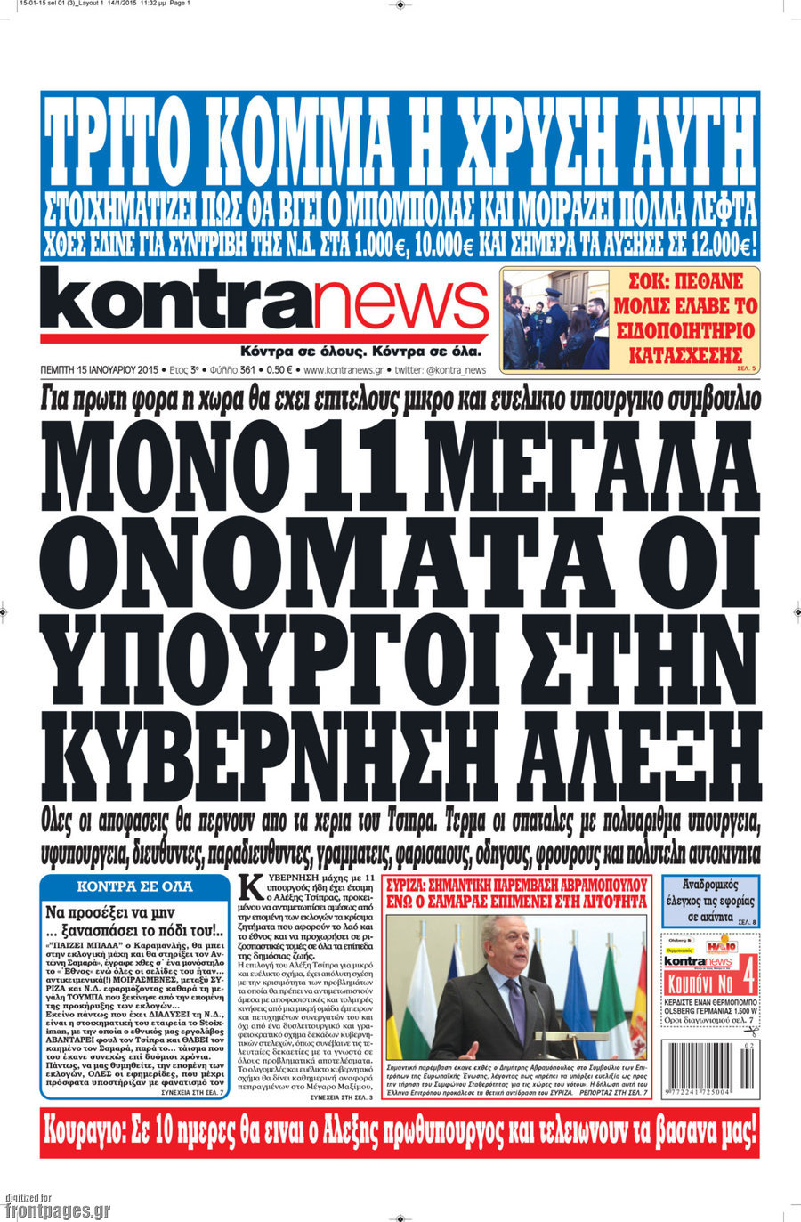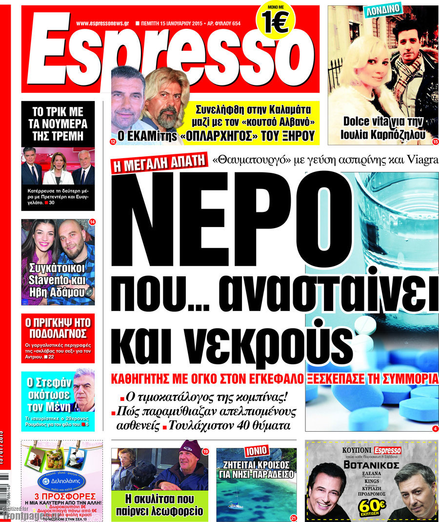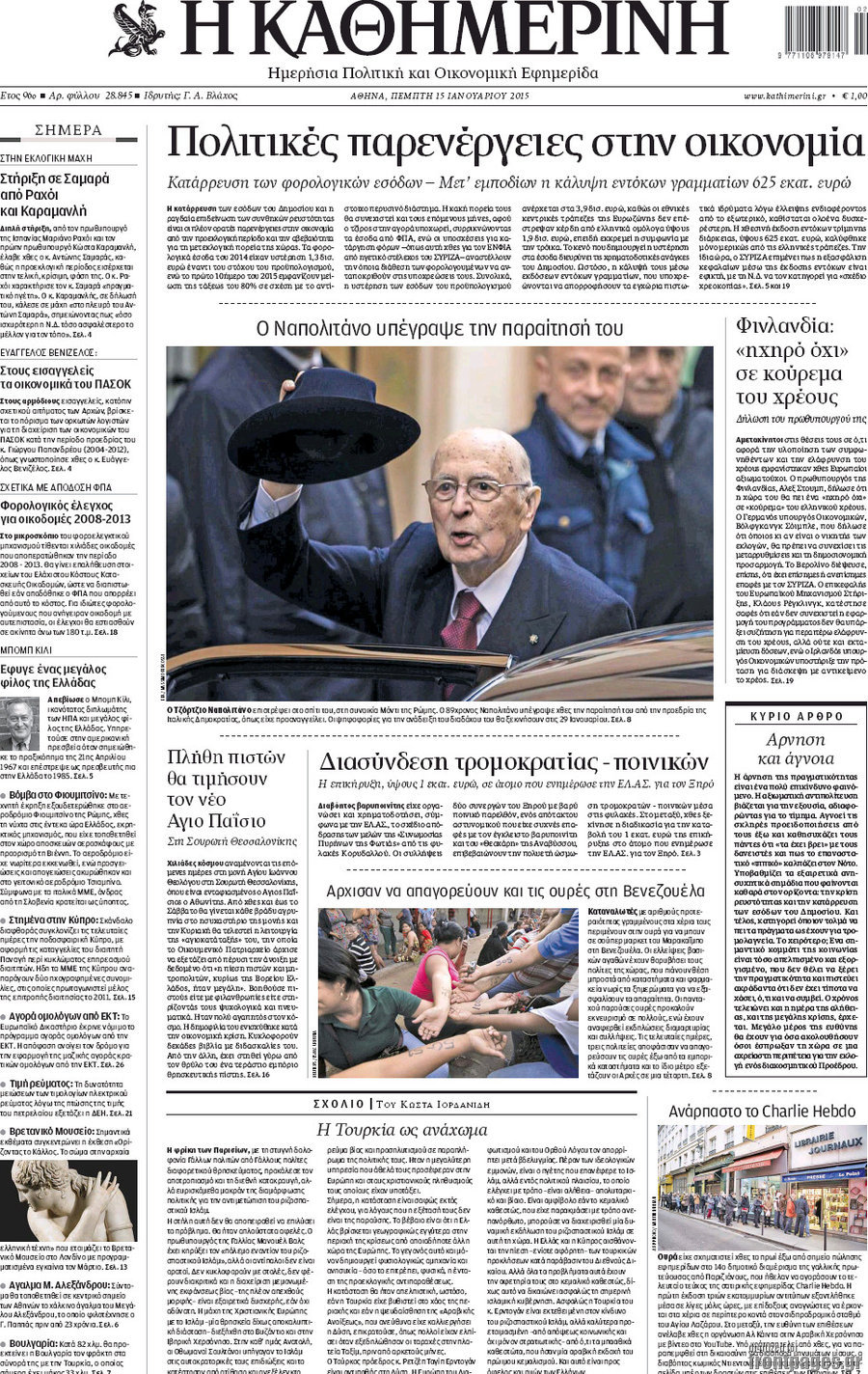 Οι πολιτικές εφημερίδες Enikos Newsroom 07:55, Πέμπτη 15 Ιανουαρίου 2015 Media Διαβάστε τα πρωτοσέλιδα των πολιτικών εφημερίδων: ΠΟΛΙΤΙΚΕΣ ΕΦΗΜΕΡΙΔΕΣ ΠΡΩΤΟΣΕΛΙΔΑ Μοιράσου το: σχολίασε κι εσύ (0 σχόλια) Ακολουθήστε το enikos.gr στο Google News και μάθετε πρώτοι όλες τις ειδήσεις Δείτε όλες τις τελευταίες ειδήσεις από την Ελλάδα και τον Κόσμο στο enikos.gr Ειδήσεις Ροή Ειδήσεων 5 ώρες πριν Νέα Πέραμος: Πού στρέφονται οι έρευνες των αρχών για το άγριο έγκλημα με θύμα τον 27χρονο επιχειρηματία – «Δεν είχε πειράξει κανέναν» λένε οι γονείς του 5 ώρες πριν Μητσοτάκης για τη συνταγματική αναθεώρηση: «Φιλοδοξία μου είναι το 2030 να έχουμε κλείσει όλες τις εκκρεμότητες με το πελατειακό κράτος» 5 ώρες πριν Εξαφάνιση Λόρας: Ο πατέρας της ήταν αυτός που αποκάλυψε ότι ταξίδεψε στη Γερμανία – Το πρόσωπο-«κλειδί», η νέα μαρτυρία και οι «στοχευμένες» κινήσεις της ανήλικης 8 ώρες πριν Δημοσκόπηση Alco: Στις 13 μονάδες η διαφορά ΝΔ-ΠΑΣΟΚ – Πώς αξιολογούν οι πολίτες τις νέες πολιτικές κινήσεις; 4 ώρες πριν The Washington Post: Τι έχουμε μάθει ως τώρα από τα νέα στοιχεία στην υπόθεση Επστάιν – «Η αλήθεια να φτάσει στο κόκκαλο» 34 λεπτά πριν Τα ζώδια σήμερα, Τρίτη 3 Φεβρουαρίου 2026: Τοξότες, σας εξαντλεί να είστε συνεχώς «στην τσίτα» και ψάχνετε κάτι διαφορετικό 7 ώρες πριν Ποιος είναι ο έρωτας της ζωή σας; Ανακαλύψτε την αδελφή-ψυχή σας με βάση τον μήνα γέννησή σας 9 ώρες πριν Λευκές περσίδες ξανά: Η απλή μέθοδος για να εξαφανίσετε την κιτρινίλα χωρίς τρίψιμο 6 ώρες πριν Ύπνος: Η βραδινή ρουτίνα που εγγυάται 8 ώρες ξεκούρασης, σύμφωνα με ειδικό 15 λεπτά πριν Η Κούβα «αδειάζει» τον Τραμπ: Δεν υπάρχει επίσημος διάλογος με τις ΗΠΑ, μόνο διπλωματικές «ανταλλαγές» 34 λεπτά πριν Τα ζώδια σήμερα, Τρίτη 3 Φεβρουαρίου 2026: Τοξότες, σας εξαντλεί να είστε συνεχώς «στην τσίτα» και ψάχνετε κάτι διαφορετικό 39 λεπτά πριν Λαβρόφ: Θεμιτοί στόχοι οι ξένες στρατιωτικές δυνάμεις στην Ουκρανία 56 λεπτά πριν Δημήτρης Νατσιός: Η μονιμότητα των δημοσίων αποτελεί κόκκινη γραμμή για εμάς – Η «Νίκη» θα κατέβει αυτόνομα στις εκλογές 1 ώρα πριν Ουκρανία: Tο Κίεβο δέχεται πυραυλική επίθεση – Ισχυρές εκρήξεις ENIKOS NETWORK 5 πράγματα που κάνουν μαζί τα ευτυχισμένα ζευγάρια Δύο παιδιά με γρίπη στις ΜΕΘ – Συνεχίζεται η απειλή των εποχικών λοιμώξεων Επιθεώρηση Εργασίας: Αυξήθηκαν κατά 4% οι έλεγχοι το 2025 – Στα 53,4 εκατ. ευρώ τα πρόστιμα Τα ξενοδοχεία κατέθεσαν αγωγή κατά της Booking για παράνομες ρήτρες Ευπάθεια στο moltbook ai αποκαλύπτει email, tokens σύνδεσης και api keys Αυτός είναι ο ρόλος της μικρής τρύπας στους νυχοκόπτες – «Είμαι ο μόνος που δεν το ήξερε;»» περισσότερα 18:18 , Δευτέρα 02 Φεβρουαρίου 2026 Άγιος Έρωτας: Η μικρή Ελευθερία δεν θέλει τους νέους της γονείς και η Χλόη καταφεύγει στον πατέρα Νικόλαο Όσα θα δούμε απόψε στο νέο επεισόδιο της σειράς “Άγιος Έρωτας” στις 22:00 στον Alp... 18:07 , Δευτέρα 02 Φεβρουαρίου 2026 MasterChef 10: Το πρώτο Mystery Box έχει την παιχνιδιάρικη υπογραφή του Πάνου Ιωαννίδη Μετά τις πρώτες εβδομάδες και τις διαδικασίες, που προηγήθηκαν, 14 διαγωνιζόμενοι της πρώτης μ... 17:45 , Δευτέρα 02 Φεβρουαρίου 2026 Grand Hotel: Ο Πέτρος και η Αλίκη είναι και πάλι μαζί Καταιγιστικές οι εξελίξεις στο νέο διπλό επεισόδιο της σειράς “Grand Hotel” στις 2... 17:15 , Δευτέρα 02 Φεβρουαρίου 2026 Να μ’ αγαπάς: Η Φωτεινή ανακοινώνει στη Ζωή πως είναι έγκυος, απόψε στις 20:00, με διπλό επεισόδιο Ο Θεόφιλος λαμβάνει τα αποτελέσματα του τεστ DΝA, στο νέο διπλό επεισόδιο της σειράς “Να... ΤΕΛΕΥΤΑΙΕΣ ΕΙΔ