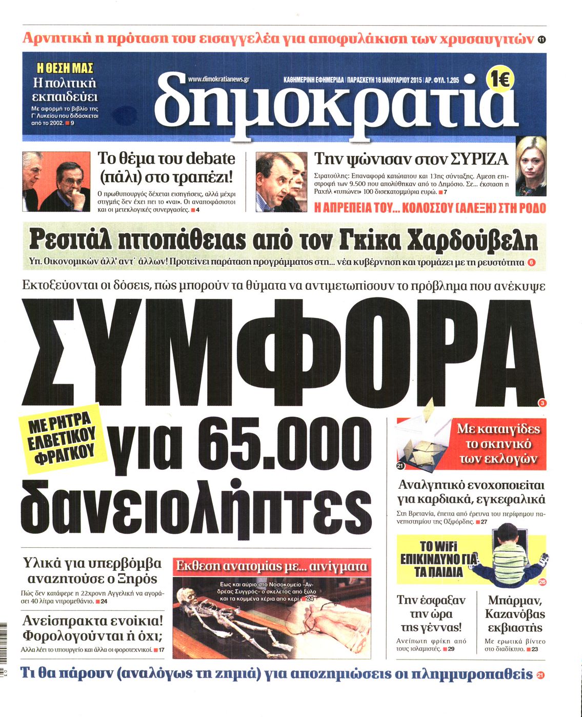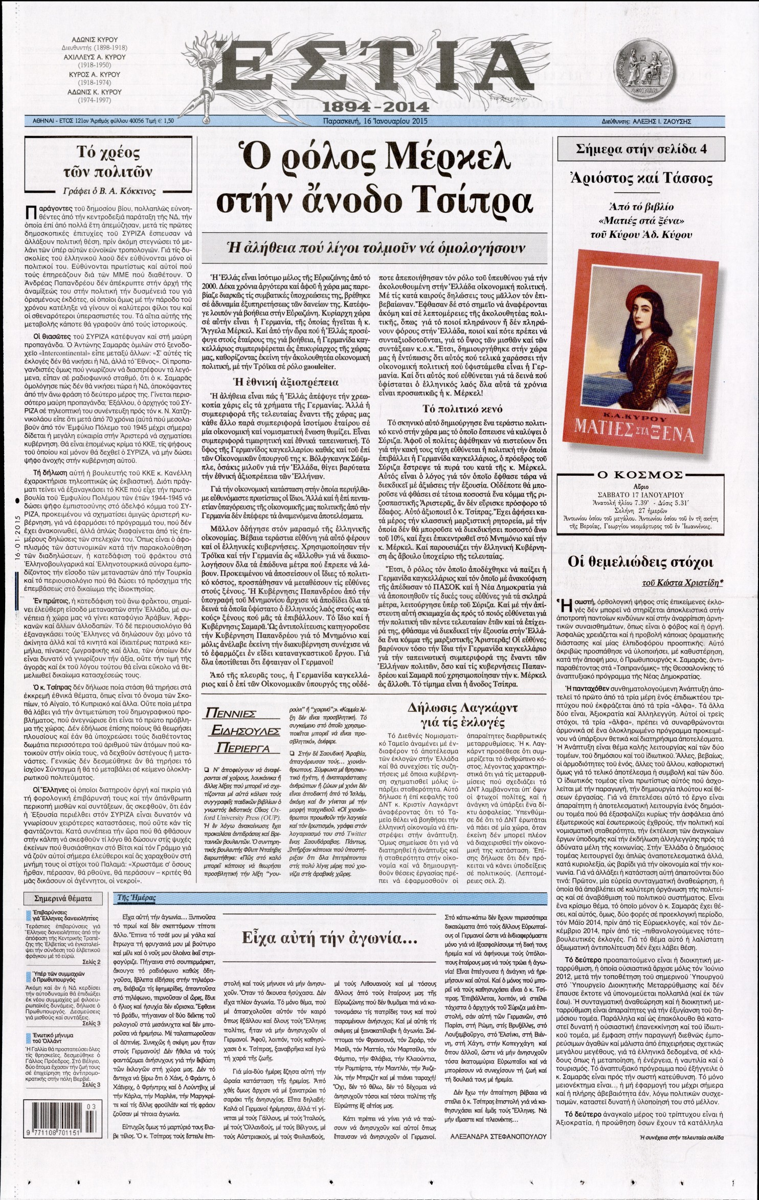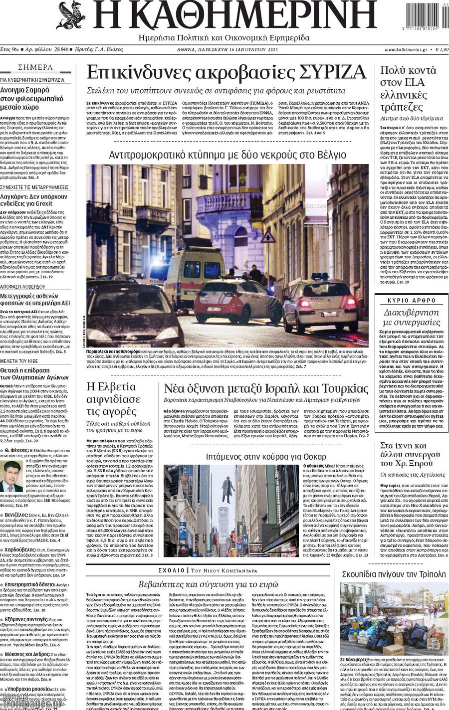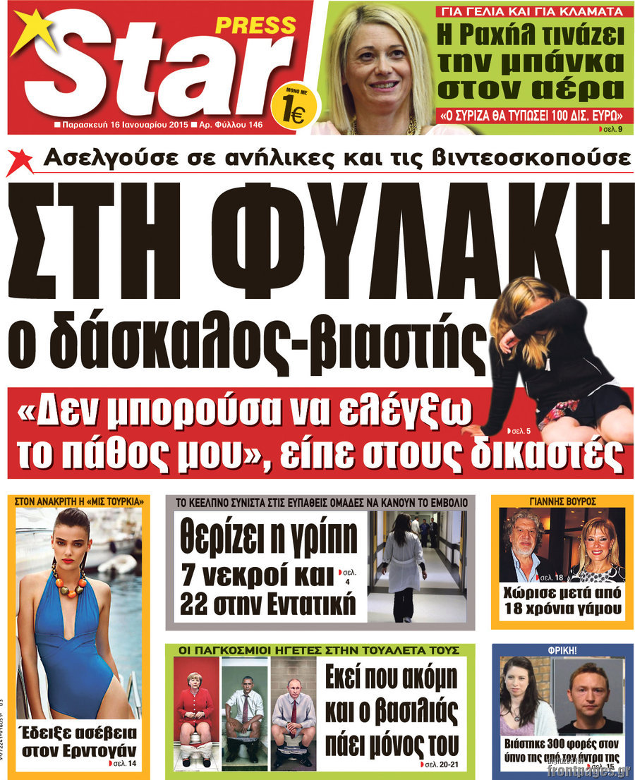 Οι πολιτικές εφημερίδες Enikos Newsroom 07:37, Παρασκευή 16 Ιανουαρίου 2015 Media Διαβάστε τα πρωτοσέλιδα των πολιτικών εφημερίδων: ΕΞΩΦΥΛΛΑ ΕΦΗΜΕΡΙΔΕΣ ΠΟΛΙΤΙΚΕΣ ΕΦΗΜΕΡΙΔΕΣ ΠΡΩΤΟΣΕΛΙΔΑ Μοιράσου το: σχολίασε κι εσύ (0 σχόλια) Ακολουθήστε το enikos.gr στο Google News και μάθετε πρώτοι όλες τις ειδήσεις Δείτε όλες τις τελευταίες ειδήσεις από την Ελλάδα και τον Κόσμο στο enikos.gr Ειδήσεις Ροή Ειδήσεων 5 ώρες πριν Χριστούγεννα στα μπλόκα οι αγρότες: Άνοιξαν στα διόδια και μοίρασαν προϊόντα στους πολίτες – Νέα σύσκεψη την Κυριακή στη Νίκαια 6 ώρες πριν Κύκλωμα διακίνησης ναρκωτικών σε σχολεία: Τηλεφωνούσαν στους ανηλίκους την ώρα του μαθήματος – Οι διάλογοι-σοκ, τα «ψευδώνυμα» και τα βασανιστήρια 5 ώρες πριν Αρχεία Επστάιν: Οι 500 σελίδες που λείπουν, τα αναπάντητα ερωτήματα και οι επώνυμοι – Τι έπεται 7 ώρες πριν Ζελένσκι: Μόνο οι ΗΠΑ και ο Τραμπ μπορούν να πιέσουν τη Ρωσία να βάλει τέλος στον πόλεμο 7 ώρες πριν Φοινικούντα: Προφυλακιστέος ο 30χρονος για συνέργεια στη διπλή δολοφονία – Και άλλα πρόσωπα στο «μικροσκόπιο» 5 ώρες πριν Αποκαλύφθηκε το άγνωστο «GPS» της αρχαιότητας – Πώς οι ναοί «φώτιζαν» τον δρόμο των ναυτικών πριν από την εφεύρεση των φάρων 6 ώρες πριν Ύπνος: Η διατροφή που μπορεί να σας βοηθήσει να κοιμάστε καλύτερα και να ζήσετε περισσότερο 7 ώρες πριν Αριθμολογία: Ο αριθμός του φύλακα αγγέλου σας, με βάση τον μήνα γέννησής σας – «Έτσι σας στέλνει σημάδια το σύμπαν» 19 ώρες πριν Enerwave: Το νέο «ρεύμα» στη λιανική ενέργειας που αλλάζει την εμπειρία του καταναλωτή 58 λεπτά πριν Σήμερα με τη Realnews: Δωροεπιταγή 10€ 1 λεπτό πριν Σήμερα με τη Realnews: Ό,τι και αν αγοράσεις, σκανάρεις και κερδίζεις! 10 λεπτά πριν Βενεζουέλα: Προσφέρει βοήθεια στο Ιράν στην σύγκρουση με τις ΗΠΑ 25 λεπτά πριν Μαριλού Κατσαφάδου: «Η απώλεια της με έβαλε σε διαδικασία να δω διαφορετικά τη ζωή, σαν να ωρίμασα 10 χρόνια» 40 λεπτά πριν Ολυμπιακός: Ξέσπασε ο Τζουλιάν Μπιανκόν – «Ο γκολκίπερ της Κηφισιάς έδινε show, ήταν πέναλτι στο τέλος» ENIKOS NETWORK Οι γυναίκες αποκαλύπτουν το πιο ελκυστικό πράγμα που μπορεί να κάνει ένας άνδρας Ομορφιά και αντιγήρανση: Ειδικοί μιλούν για συσκευές περιποίησης του δέρματος «Πολεμική» προετοιμασία από την ευρωπαϊκή βιομηχανία ενέργειας – Η Eurelectric ζητεί «ομπρέλα» προστασίας για τις υποδομές Ακύρωση ΑΦΜ για απάτες – Ποιους βάζει στο στόχαστρο η ΑΑΔΕ Χαρτογραφώντας το «σημείο χωρίς επιστροφή»: Για πρώτη φορά αποκαλύπτεται με λεπτομέρεια το ακανθώδες όριο της ατμόσφαιρας τ... Η Google καταργεί τη λειτουργία «dark web report» – Πώς θα μπορούν οι χρήστες να διαγράφουν τα δεδομένα τους περισσότερα 04:08 , Κυριακή 21 Δεκεμβρίου 2025 Σήμερα με τη Realnews: Ό,τι και αν αγοράσεις, σκανάρεις και κερδίζεις! Σήμερα με τη Realnews: Ό,τι και αν αγοράσεις, σκανάρεις και κερδίζεις! Με το PADU app, το κορυ... 03:08 , Κυριακή 21 Δεκεμβρίου 2025 Σήμερα με τη Realnews: Instyle, μαζί Drive και Realnews Geopolitics Σήμερα με τη Realnews: Instyle, μαζί Drive και Realnews Geopolitics Instyle Η Άννα Ρεζάν, η Ch... 01:30 , Κυριακή 21 Δεκεμβρίου 2025 Άννα Βίσση: Τα… Social Media «προσκύνησαν» την «απόλυτη» για την συναυλία της στο Καλλιμάρμαρο που προβλήθηκε από το Mega Την ημέρα των γενεθλίων της Άννας Βίσση, το MEGA τίμησε τη διαχρονική παρουσία της «απόλυτης Ε... 00:00 , Κυριακή 21 Δεκεμβρίου 2025 The Voice: Η επιστροφή της Έλενας Παπαρίζου και η ατάκα του Γιώργου Μαζωνάκη μετά τις καταγγελίες Στη φάση των Cross Battles Live μπήκε το The Voice, με την Έλενα Παπαρίζου να επιστρέφει στο π... ΤΕΛΕΥΤΑΙΕΣ ΕΙΔΗΣΕΙΣ 10 λεπτά πριν Βε