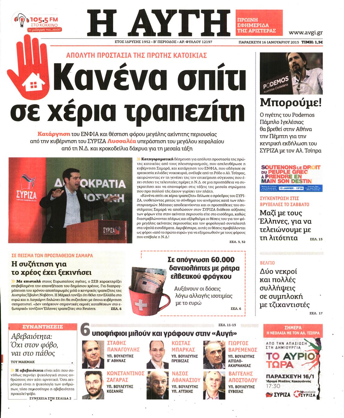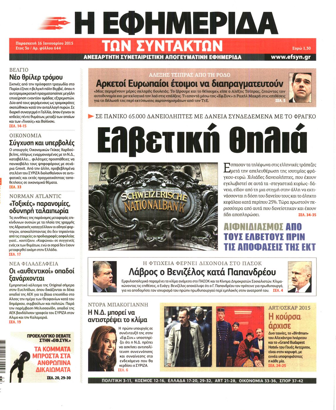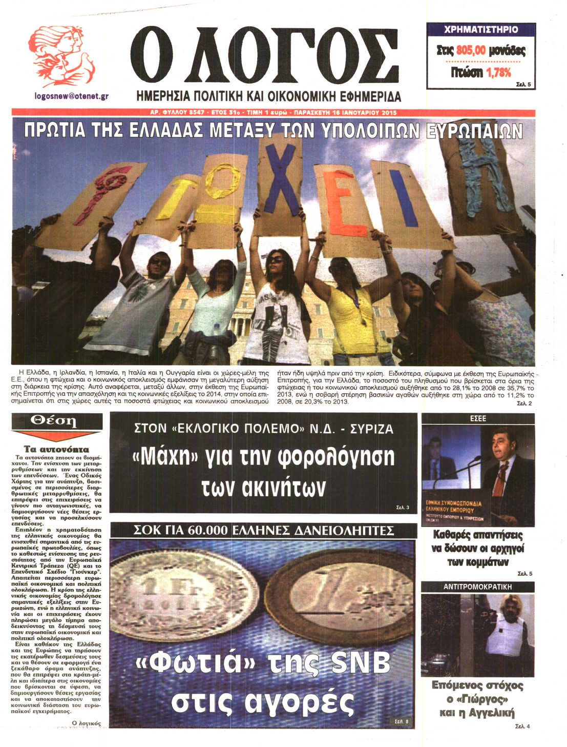 Οι πολιτικές εφημερίδες Enikos Newsroom 07:37, Παρασκευή 16 Ιανουαρίου 2015 Media Διαβάστε τα πρωτοσέλιδα των πολιτικών εφημερίδων: ΕΞΩΦΥΛΛΑ ΕΦΗΜΕΡΙΔΕΣ ΠΟΛΙΤΙΚΕΣ ΕΦΗΜΕΡΙΔΕΣ ΠΡΩΤΟΣΕΛΙΔΑ Μοιράσου το: σχολίασε κι εσύ (0 σχόλια) Ακολουθήστε το enikos.gr στο Google News και μάθετε πρώτοι όλες τις ειδήσεις Δείτε όλες τις τελευταίες ειδήσεις από την Ελλάδα και τον Κόσμο στο enikos.gr Ειδήσεις Ροή Ειδήσεων 5 ώρες πριν Χριστούγεννα στα μπλόκα οι αγρότες: Άνοιξαν στα διόδια και μοίρασαν προϊόντα στους πολίτες – Νέα σύσκεψη την Κυριακή στη Νίκαια 6 ώρες πριν Κύκλωμα διακίνησης ναρκωτικών σε σχολεία: Τηλεφωνούσαν στους ανηλίκους την ώρα του μαθήματος – Οι διάλογοι-σοκ, τα «ψευδώνυμα» και τα βασανιστήρια 5 ώρες πριν Αρχεία Επστάιν: Οι 500 σελίδες που λείπουν, τα αναπάντητα ερωτήματα και οι επώνυμοι – Τι έπεται 7 ώρες πριν Ζελένσκι: Μόνο οι ΗΠΑ και ο Τραμπ μπορούν να πιέσουν τη Ρωσία να βάλει τέλος στον πόλεμο 7 ώρες πριν Φοινικούντα: Προφυλακιστέος ο 30χρονος για συνέργεια στη διπλή δολοφονία – Και άλλα πρόσωπα στο «μικροσκόπιο» 5 ώρες πριν Αποκαλύφθηκε το άγνωστο «GPS» της αρχαιότητας – Πώς οι ναοί «φώτιζαν» τον δρόμο των ναυτικών πριν από την εφεύρεση των φάρων 6 ώρες πριν Ύπνος: Η διατροφή που μπορεί να σας βοηθήσει να κοιμάστε καλύτερα και να ζήσετε περισσότερο 7 ώρες πριν Αριθμολογία: Ο αριθμός του φύλακα αγγέλου σας, με βάση τον μήνα γέννησής σας – «Έτσι σας στέλνει σημάδια το σύμπαν» 19 ώρες πριν Enerwave: Το νέο «ρεύμα» στη λιανική ενέργειας που αλλάζει την εμπειρία του καταναλωτή 58 λεπτά πριν Σήμερα με τη Realnews: Δωροεπιταγή 10€ 1 λεπτό πριν Σήμερα με τη Realnews: Ό,τι και αν αγοράσεις, σκανάρεις και κερδίζεις! 10 λεπτά πριν Βενεζουέλα: Προσφέρει βοήθεια στο Ιράν στην σύγκρουση με τις ΗΠΑ 25 λεπτά πριν Μαριλού Κατσαφάδου: «Η απώλεια της με έβαλε σε διαδικασία να δω διαφορετικά τη ζωή, σαν να ωρίμασα 10 χρόνια» 40 λεπτά πριν Ολυμπιακός: Ξέσπασε ο Τζουλιάν Μπιανκόν – «Ο γκολκίπερ της Κηφισιάς έδινε show, ήταν πέναλτι στο τέλος» ENIKOS NETWORK Οι γυναίκες αποκαλύπτουν το πιο ελκυστικό πράγμα που μπορεί να κάνει ένας άνδρας Ομορφιά και αντιγήρανση: Ειδικοί μιλούν για συσκευές περιποίησης του δέρματος «Πολεμική» προετοιμασία από την ευρωπαϊκή βιομηχανία ενέργειας – Η Eurelectric ζητεί «ομπρέλα» προστασίας για τις υποδομές Ακύρωση ΑΦΜ για απάτες – Ποιους βάζει στο στόχαστρο η ΑΑΔΕ Χαρτογραφώντας το «σημείο χωρίς επιστροφή»: Για πρώτη φορά αποκαλύπτεται με λεπτομέρεια το ακανθώδες όριο της ατμόσφαιρας τ... Η Google καταργεί τη λειτουργία «dark web report» – Πώς θα μπορούν οι χρήστες να διαγράφουν τα δεδομένα τους περισσότερα 04:08 , Κυριακή 21 Δεκεμβρίου 2025 Σήμερα με τη Realnews: Ό,τι και αν αγοράσεις, σκανάρεις και κερδίζεις! Σήμερα με τη Realnews: Ό,τι και αν αγοράσεις, σκανάρεις και κερδίζεις! Με το PADU app, το κορυ... 03:08 , Κυριακή 21 Δεκεμβρίου 2025 Σήμερα με τη Realnews: Instyle, μαζί Drive και Realnews Geopolitics Σήμερα με τη Realnews: Instyle, μαζί Drive και Realnews Geopolitics Instyle Η Άννα Ρεζάν, η Ch... 01:30 , Κυριακή 21 Δεκεμβρίου 2025 Άννα Βίσση: Τα… Social Media «προσκύνησαν» την «απόλυτη» για την συναυλία της στο Καλλιμάρμαρο που προβλήθηκε από το Mega Την ημέρα των γενεθλίων της Άννας Βίσση, το MEGA τίμησε τη διαχρονική παρουσία της «απόλυτης Ε... 00:00 , Κυριακή 21 Δεκεμβρίου 2025 The Voice: Η επιστροφή της Έλενας Παπαρίζου και η ατάκα του Γιώργου Μαζωνάκη μετά τις καταγγελίες Στη φάση των Cross Battles Live μπήκε το The Voice, με την Έλενα Παπαρίζου να επιστρέφει στο π... ΤΕΛΕΥΤΑΙΕΣ ΕΙΔΗΣΕΙΣ 10 λεπτά πριν Βε