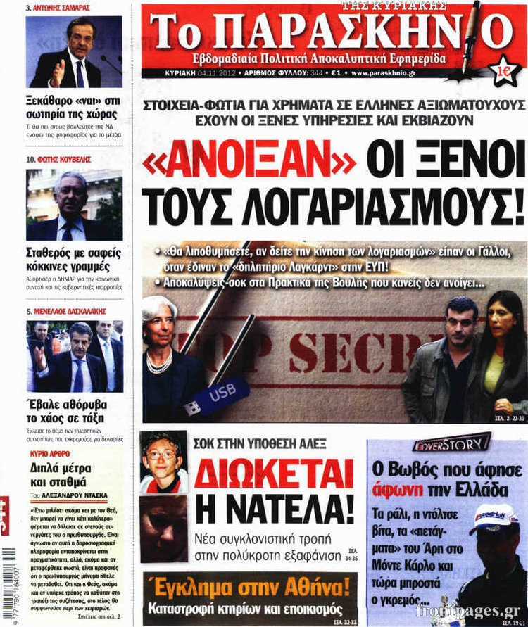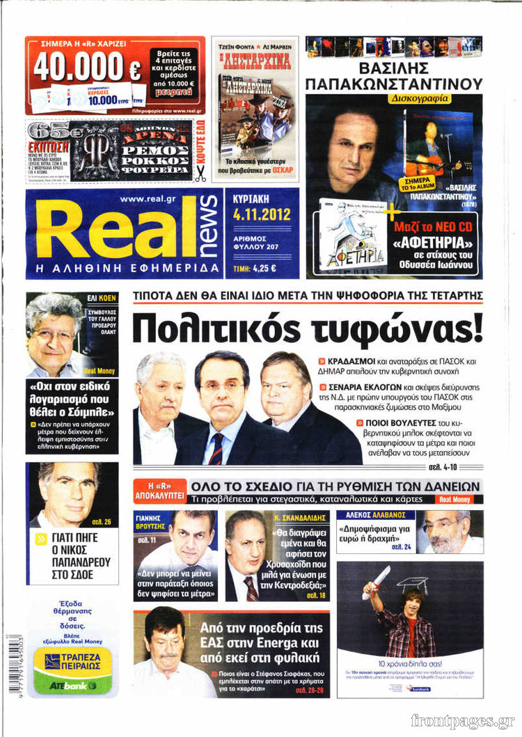 Οι πολιτικές εφημερίδες Enikos Newsroom 08:56, Κυριακή 04 Νοεμβρίου 2012 Media Οι πολιτικές εφημερίδες Τα πρωτοσέλιδα των πολιτικών εφημερίδων ΠΡΩΤΟΣΕΛΙΔΑ Μοιράσου το: σχολίασε κι εσύ (0 σχόλια) Ακολουθήστε το enikos.gr στο Google News και μάθετε πρώτοι όλες τις ειδήσεις Δείτε όλες τις τελευταίες ειδήσεις από την Ελλάδα και τον Κόσμο στο enikos.gr Ειδήσεις Ροή Ειδήσεων 1 ώρα πριν Μπλόκα: Οι αγρότες σηκώνουν τις μπάρες σε διόδια για τους εκδρομείς των Χριστουγέννων και μοιράζουν προϊόντα – Βίντεο 2 ώρες πριν Τσιάρας προς αγρότες: Τα μπλόκα και τα πείσματα δεν ωφελούν – Οι λύσεις περνούν μέσα από τον διάλογο 3 ώρες πριν Αρχεία Έπσταϊν: Οι συγκλονιστικές φωτογραφίες – Ο Μάικλ Τζάκσον, ο Μικ Τζάγκερ και ο Κέβιν Σπέισι ανάμεσα στους διάσημους που απεικονίζονται 35 λεπτά πριν Μαθητές διακινούσαν κοκαΐνη και χασίς σε σχολείο της Αττικής – 12 συλλήψεις 3 ώρες πριν Ινδία: Επτά ελέφαντες σκοτώθηκαν κατά τη σύγκρουση επιβατικού τρένου με κοπάδι 5 ώρες πριν Μία νέα «χρυσή» περίοδος αρχίζει για 3 ζώδια από σήμερα – «Μία αναπάντεχη ευκαιρία οδηγεί στην επιτυχία» 6 ώρες πριν Αγχώνεται για το χριστουγεννιάτικο δώρο που πήρε στην πλούσια σύντροφό του – «Φοβάμαι πως θα το βρει φθηνιάρικο, φοράει βραχιόλια Cartier» 3 ώρες πριν Διαιτολόγος αποκαλύπτει 9 πρωινές συνήθειες που «λιώνουν» το κοιλιακό λίπος – «Υποστηρίζουν την υγιεινή απώλεια βάρους» 4 ώρες πριν Οι 7 φράσεις που δεν λένε ποτέ οι συναισθηματικά έξυπνοι άνθρωποι κατά τη διάρκεια ενός καβγά 6 λεπτά πριν Μία ανεκμετάλλευτη πηγή θα μπορούσε να προσφέρει ανεξάντλητη ενέργεια – Οι επιστήμονες ίσως γνωρίζουν πώς να την ξεκλειδώσουν 15 λεπτά πριν Θεσσαλονίκη: Ανήλικος που είχε εξαφανιστεί βρέθηκε στο σπίτι Τούρκων μετά από αστυνομική επιχείρηση 24 λεπτά πριν Ιταλία: 384 συλλήψεις και κατάσχεση 1,4 τόνων ναρκωτικών σε μεγάλη αστυνομική επιχείρηση 32 λεπτά πριν Γερμανού για Μαζωνάκη: «Η σχέση μας μετράει 30 χρόνια – Σαφώς και έχω άποψη» 35 λεπτά πριν Μαθητές διακινούσαν κοκαΐνη και χασίς σε σχολείο της Αττικής – 12 συλλήψεις ENIKOS NETWORK Η αποχή από την αναπαραγωγή παρατείνει τη ζωή στα ζώα, σύμφωνα με μελέτη – Τι ισχύει για τους ανθρώπους; Σημαντικές επαφές στις ΗΠΑ είχε ο υπουργός Υγείας Άδωνις Γεωργιάδης Τσιάρας προς αγρότες: Έχει ικανοποιηθεί το 74% των αιτημάτων – Τα μπλόκα και τα πείσματα δεν ωφελούν MyHealth App: Τα στοιχεία για τον Προσωπικό Βοηθό Υγείας Πολίτη – Τι ερωτήματα έγιναν μέσα σε 7 ημέρες Χαρτογραφώντας το «σημείο χωρίς επιστροφή»: Για πρώτη φορά αποκαλύπτεται με λεπτομέρεια το ακανθώδες όριο της ατμόσφαιρας τ... Η Google καταργεί τη λειτουργία «dark web report» – Πώς θα μπορούν οι χρήστες να διαγράφουν τα δεδομένα τους περισσότερα 14:04 , Σάββατο 20 Δεκεμβρίου 2025 Η Realnews αυτής της Κυριακής (21/12/2025) Με τίτλο: «Ασπίδα προστασίας για την Ελλάδα» κυκλοφορεί, αυτήν την Κυριακή, η Realnews. Σημαντ... 12:53 , Σάββατο 20 Δεκεμβρίου 2025 Να μ’ αγαπάς: Το παρελθόν έρχεται στο φως – Καταιγιστικές εξελίξεις στα τελευταία επεισόδια του 2025 Ο Άγγελος αποκαλύπτεται, η Φωτεινή ανησυχεί για τον Λευτέρη και η Ζωή έρχεται αντιμέτωπη με το... 11:41 , Σάββατο 20 Δεκεμβρίου 2025 «Η αγάπη δεν χάνεται ποτέ»: Η μικρού μήκους ταινία κινουμένων σχεδίων που θέτει ερωτήματα για τη ζωή και τον θάνατο Ο θάνατος είναι ένα από τα πιο σκληρά θέματα που καλείται να διαχειριστεί κάποιος στη διάρκεια... 09:30 , Σάββατο 20 Δεκεμβρίου 2025 «Porto Leone: Στη γειτονιά με τα κόκκινα φανάρια» – Ο Χρόνης αποκαλύπτει στ