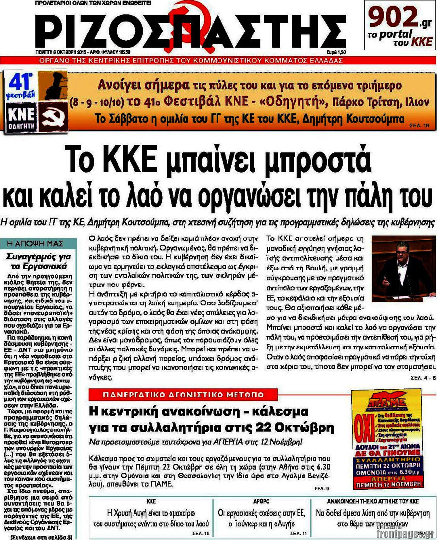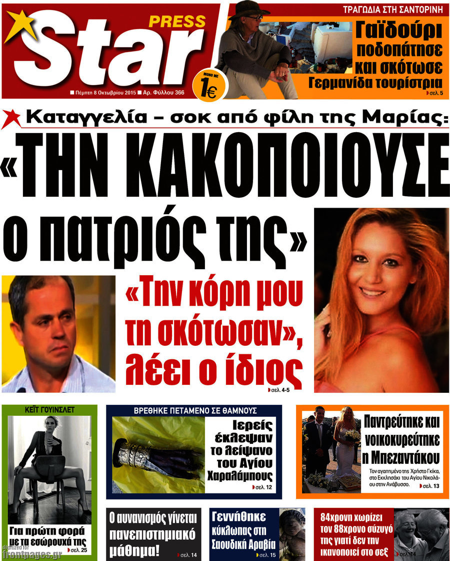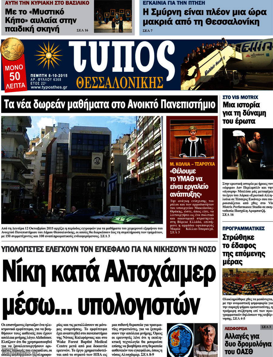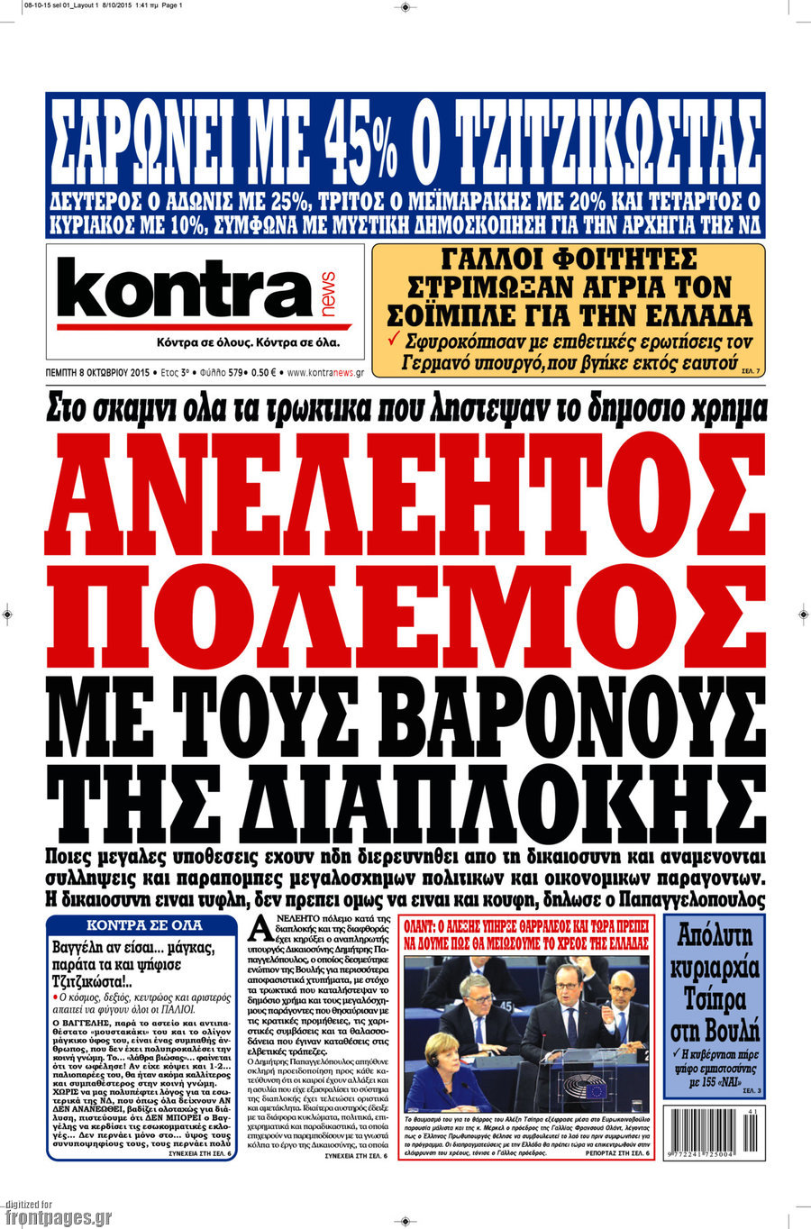 Οι πολιτικές εφημερίδες 8/10/2015 Enikos Newsroom 07:43, Πέμπτη 08 Οκτωβρίου 2015 Media Διαβάστε τα σημερινά πρωτοσέλιδα των πολιτικών εφημερίδων: ΠΟΛΙΤΙΚΕΣ ΕΦΗΜΕΡΙΔΕΣ ΠΡΩΤΟΣΕΛΙΔΑ Μοιράσου το: σχολίασε κι εσύ (0 σχόλια) Ακολουθήστε το enikos.gr στο Google News και μάθετε πρώτοι όλες τις ειδήσεις Δείτε όλες τις τελευταίες ειδήσεις από την Ελλάδα και τον Κόσμο στο enikos.gr Ειδήσεις Ροή Ειδήσεων 1 ώρα πριν Πώς δρούσε το κύκλωμα που διακινούσε ναρκωτικά σε σχολεία – Υπέβαλαν σε βασανιστήρια όσους δεν τηρούσαν τους «κανόνες πειθαρχίας» 2 ώρες πριν Αγρότες: Γιορτές στα μπλόκα με ανοιχτά διόδια – Δικογραφία στα Ιωάννινα για το σήκωμα των μπαρών 5 ώρες πριν Αρχεία Έπσταϊν: Οι συγκλονιστικές φωτογραφίες – Ο Μάικλ Τζάκσον, ο Μικ Τζάγκερ και ο Κέβιν Σπέισι ανάμεσα στους διάσημους που απεικονίζονται 20 λεπτά πριν NBC: Ο Νετανιάχου σχεδιάζει να ενημερώσει τον Τραμπ για πιθανά νέα πλήγματα εναντίον του Ιράν 30 λεπτά πριν Αττική: Εξαρθρώθηκε εγκληματική οργάνωση που έκλεβε οχήματα, τα παραποιούσε και τα μεταπωλούσε σε πολίτες – Πώς δρούσε το κύκλωμα 2 ώρες πριν Η τύχη χαμογελά σε 3 ζώδια έως τις 28 Δεκεμβρίου – «Προσέξτε τις επιλογές σας και η επιμονή σας θα ανταμειφθεί» 6 ώρες πριν Διαιτολόγος αποκαλύπτει 9 πρωινές συνήθειες που «λιώνουν» το κοιλιακό λίπος – «Υποστηρίζουν την υγιεινή απώλεια βάρους» 3 ώρες πριν Μία ανεκμετάλλευτη πηγή θα μπορούσε να προσφέρει ανεξάντλητη ενέργεια – Οι επιστήμονες ίσως γνωρίζουν πώς να την ξεκλειδώσουν 9 ώρες πριν Enerwave: Το νέο «ρεύμα» στη λιανική ενέργειας που αλλάζει την εμπειρία του καταναλωτή 1 λεπτό πριν Νιούκαστλ – Τσέλσι 2-2: Αλύγιστοι οι Λονδρέζοι 12 λεπτά πριν Μικαέλα Μπέντχαους: Ο πρώτος άνθρωπος σε αναπηρικό αμαξίδιο που ταξίδεψε στο διάστημα – ΒΙΝΤΕΟ 20 λεπτά πριν NBC: Ο Νετανιάχου σχεδιάζει να ενημερώσει τον Τραμπ για πιθανά νέα πλήγματα εναντίον του Ιράν 30 λεπτά πριν Αττική: Εξαρθρώθηκε εγκληματική οργάνωση που έκλεβε οχήματα, τα παραποιούσε και τα μεταπωλούσε σε πολίτες – Πώς δρούσε το κύκλωμα 38 λεπτά πριν Κωνσταντίνος Αργυρός: «Δεν θέλω να ασχοληθώ με την πολιτική σε αυτή τη φάση – Μου έχουν γίνει προτάσεις» ENIKOS NETWORK Γιατί πρέπει να ζητάμε χάρες; Ποιο είναι το φαινόμενο Ben Franklin που κάνει τους άλλους να μας συμπαθούν Η αποχή από την αναπαραγωγή παρατείνει τη ζωή στα ζώα, σύμφωνα με μελέτη – Τι ισχύει για τους ανθρώπους; Στα ύψη ο χρυσός – Νέο ρεκόρ στην τιμή της λίρας, πόσο πωλείται Τέλη κυκλοφορίας 2026: Προσοχή στην προθεσμία εξόφλησής τους – Πώς διαμορφώνονται τα πρόστιμα σε περίπτωση καθυστέρησης Χαρτογραφώντας το «σημείο χωρίς επιστροφή»: Για πρώτη φορά αποκαλύπτεται με λεπτομέρεια το ακανθώδες όριο της ατμόσφαιρας τ... Η Google καταργεί τη λειτουργία «dark web report» – Πώς θα μπορούν οι χρήστες να διαγράφουν τα δεδομένα τους περισσότερα 14:04 , Σάββατο 20 Δεκεμβρίου 2025 Η Realnews αυτής της Κυριακής (21/12/2025) Με τίτλο: «Ασπίδα προστασίας για την Ελλάδα» κυκλοφορεί, αυτήν την Κυριακή, η Realnews. Σημαντ... 12:53 , Σάββατο 20 Δεκεμβρίου 2025 Να μ’ αγαπάς: Το παρελθόν έρχεται στο φως – Καταιγιστικές εξελίξεις στα τελευταία επεισόδια του 2025 Ο Άγγελος αποκαλύπτεται, η Φωτεινή ανησυχεί για τον Λευτέρη και η Ζωή έρχεται αντιμέτωπη με το... 11:41 , Σάββατο 20 Δεκεμβρίου 2025 «Η αγάπη δεν χάνεται ποτέ»: Η μικρού μήκους ταινία κινουμένων σχεδίων που θέτει ερωτήματα για τη ζωή και τον θάνατο Ο θάνατος είναι ένα από τα πιο σκληρά θέματα που καλείται να διαχειριστεί κάποιος στη διά