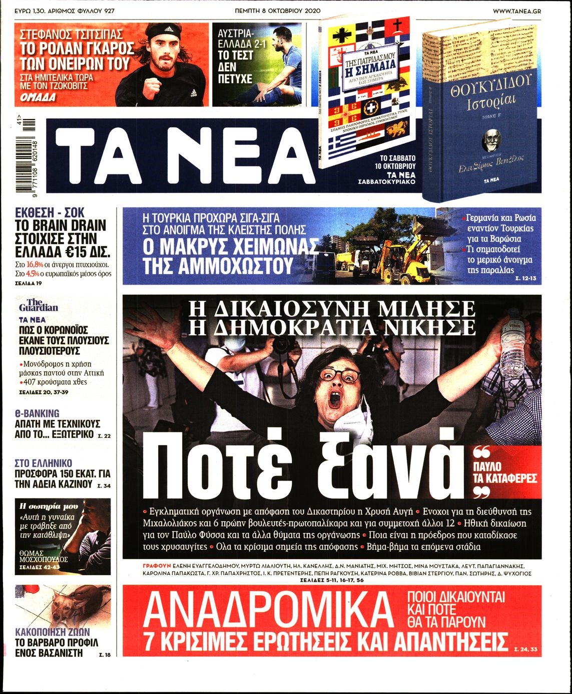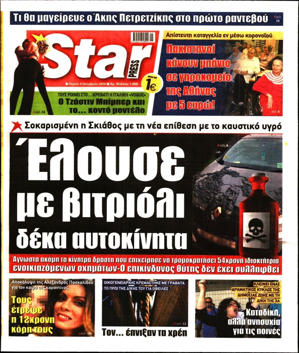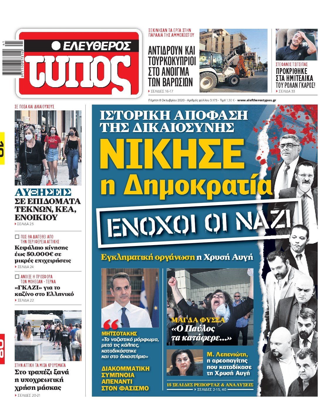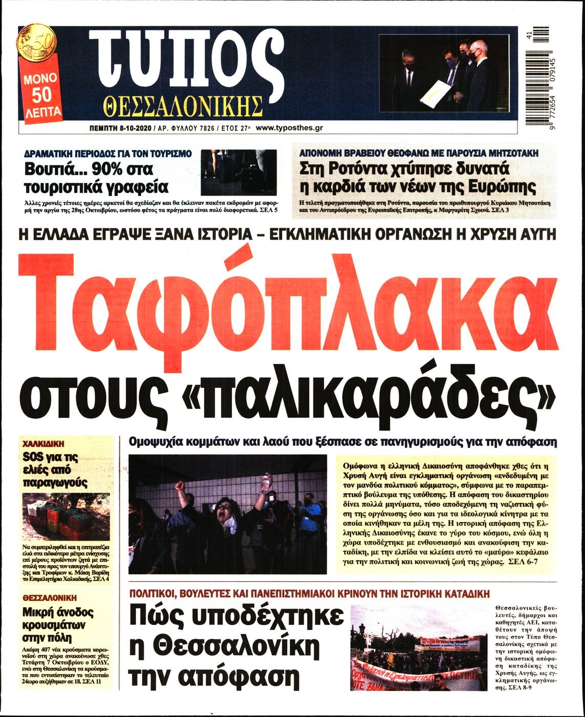 Οι πολιτικές εφημερίδες 8/10/2020 Διονύσης Νίκκας 06:09, Πέμπτη 08 Οκτωβρίου 2020 Media Διαβάστε τα πρωτοσέλιδα των πολιτικών εφημερίδων… ΠΟΛΙΤΙΚΕΣ ΕΦΗΜΕΡΙΔΕΣ ΠΡΩΤΟΣΕΛΙΔΑ Μοιράσου το: σχολίασε κι εσύ (0 σχόλια) Ακολουθήστε το enikos.gr στο Google News και μάθετε πρώτοι όλες τις ειδήσεις Δείτε όλες τις τελευταίες ειδήσεις από την Ελλάδα και τον Κόσμο στο enikos.gr Ειδήσεις Ροή Ειδήσεων 2 ώρες πριν Μπλόκα: Οι αγρότες σηκώνουν τις μπάρες σε διόδια για τους εκδρομείς των Χριστουγέννων και μοιράζουν προϊόντα – Βίντεο 2 ώρες πριν Τσιάρας προς αγρότες: Τα μπλόκα και τα πείσματα δεν ωφελούν – Οι λύσεις περνούν μέσα από τον διάλογο 3 ώρες πριν Αρχεία Έπσταϊν: Οι συγκλονιστικές φωτογραφίες – Ο Μάικλ Τζάκσον, ο Μικ Τζάγκερ και ο Κέβιν Σπέισι ανάμεσα στους διάσημους που απεικονίζονται 54 λεπτά πριν Μαθητές διακινούσαν κοκαΐνη και χασίς σε σχολείο της Αττικής – 12 συλλήψεις 60 λεπτά πριν Βέλγιο: Άγνωστοι έριξαν κόκκινη μπογιά στο προξενείο της Πολωνίας στις Βρυξέλλες 5 ώρες πριν Μία νέα «χρυσή» περίοδος αρχίζει για 3 ζώδια από σήμερα – «Μία αναπάντεχη ευκαιρία οδηγεί στην επιτυχία» 3 ώρες πριν Διαιτολόγος αποκαλύπτει 9 πρωινές συνήθειες που «λιώνουν» το κοιλιακό λίπος – «Υποστηρίζουν την υγιεινή απώλεια βάρους» 4 ώρες πριν Οι 7 φράσεις που δεν λένε ποτέ οι συναισθηματικά έξυπνοι άνθρωποι κατά τη διάρκεια ενός καβγά 6 ώρες πριν Enerwave: Το νέο «ρεύμα» στη λιανική ενέργειας που αλλάζει την εμπειρία του καταναλωτή 3 λεπτά πριν Μαρινάκης στον Realfm 97,8: Η κυβέρνηση σέβεται κάθε λογική διεκδίκηση των αγροτών, αλλά και το αίτημα των πολιτών να μην ταλαιπωρούνται 9 λεπτά πριν O Πάντερ MVP της 17ης αγωνιστικής στην Euroleague 18 λεπτά πριν Πέθανε η τραγουδίστρια Κλαούντια Ντελμέρ 25 λεπτά πριν Μία ανεκμετάλλευτη πηγή θα μπορούσε να προσφέρει ανεξάντλητη ενέργεια – Οι επιστήμονες ίσως γνωρίζουν πώς να την ξεκλειδώσουν 34 λεπτά πριν Θεσσαλονίκη: Ανήλικος που είχε εξαφανιστεί βρέθηκε στο σπίτι Τούρκων μετά από αστυνομική επιχείρηση ENIKOS NETWORK Η αποχή από την αναπαραγωγή παρατείνει τη ζωή στα ζώα, σύμφωνα με μελέτη – Τι ισχύει για τους ανθρώπους; Σημαντικές επαφές στις ΗΠΑ είχε ο υπουργός Υγείας Άδωνις Γεωργιάδης Ευλογιά αιγοπροβάτων: Παρατεταμένη επιζωοτία, αυστηρά μέτρα – Τι ισχύει για τον εμβολιασμό και την ανασύσταση του ζωικού κε... Τσιάρας προς αγρότες: Έχει ικανοποιηθεί το 74% των αιτημάτων – Τα μπλόκα και τα πείσματα δεν ωφελούν Χαρτογραφώντας το «σημείο χωρίς επιστροφή»: Για πρώτη φορά αποκαλύπτεται με λεπτομέρεια το ακανθώδες όριο της ατμόσφαιρας τ... Η Google καταργεί τη λειτουργία «dark web report» – Πώς θα μπορούν οι χρήστες να διαγράφουν τα δεδομένα τους περισσότερα 14:04 , Σάββατο 20 Δεκεμβρίου 2025 Η Realnews αυτής της Κυριακής (21/12/2025) Με τίτλο: «Ασπίδα προστασίας για την Ελλάδα» κυκλοφορεί, αυτήν την Κυριακή, η Realnews. Σημαντ... 12:53 , Σάββατο 20 Δεκεμβρίου 2025 Να μ’ αγαπάς: Το παρελθόν έρχεται στο φως – Καταιγιστικές εξελίξεις στα τελευταία επεισόδια του 2025 Ο Άγγελος αποκαλύπτεται, η Φωτεινή ανησυχεί για τον Λευτέρη και η Ζωή έρχεται αντιμέτωπη με το... 11:41 , Σάββατο 20 Δεκεμβρίου 2025 «Η αγάπη δεν χάνεται ποτέ»: Η μικρού μήκους ταινία κινουμένων σχεδίων που θέτει ερωτήματα για τη ζωή και τον θάνατο Ο θάνατος είναι ένα από τα πιο σκληρά θέματα που καλείται να διαχειριστεί κάποιος στη διάρκεια... 09:30 , Σάββατο 20 Δεκεμβρίου 2025 «Porto Leone: Στη γειτονιά με τα κόκκινα φανάρια» – Ο Χρόνης αποκαλύπτει στην Αλεξάνδρα το μυστι