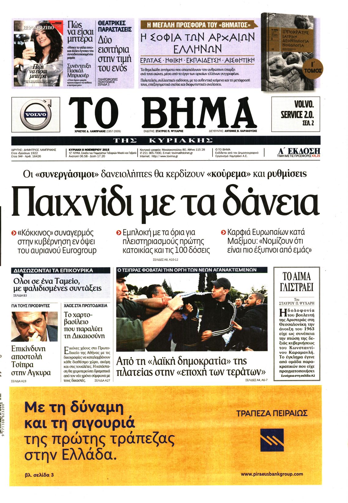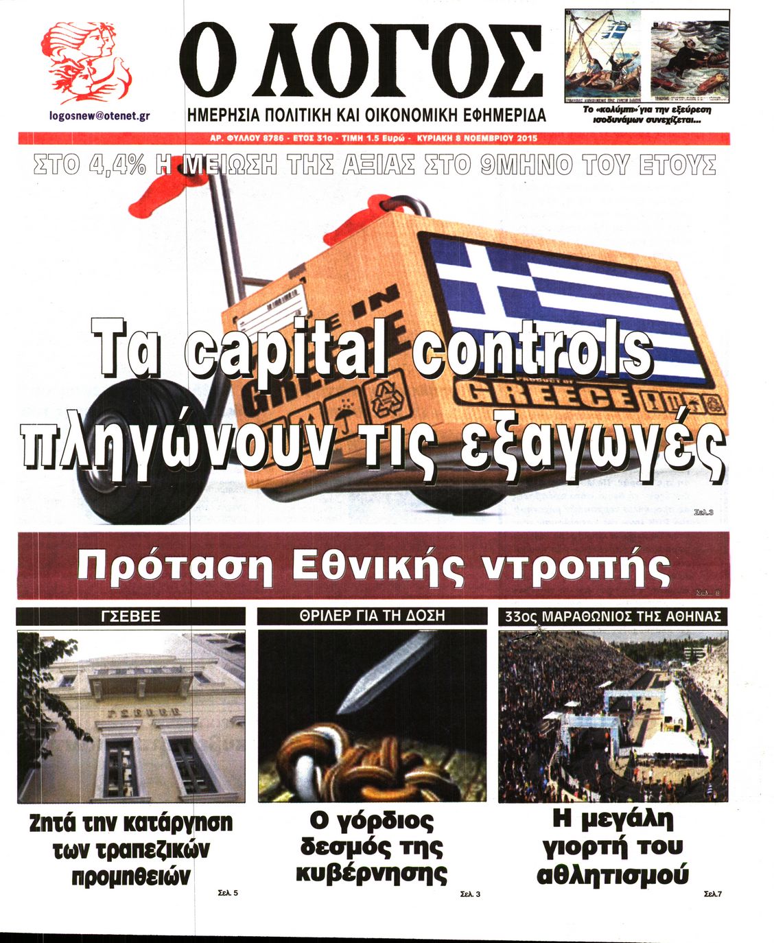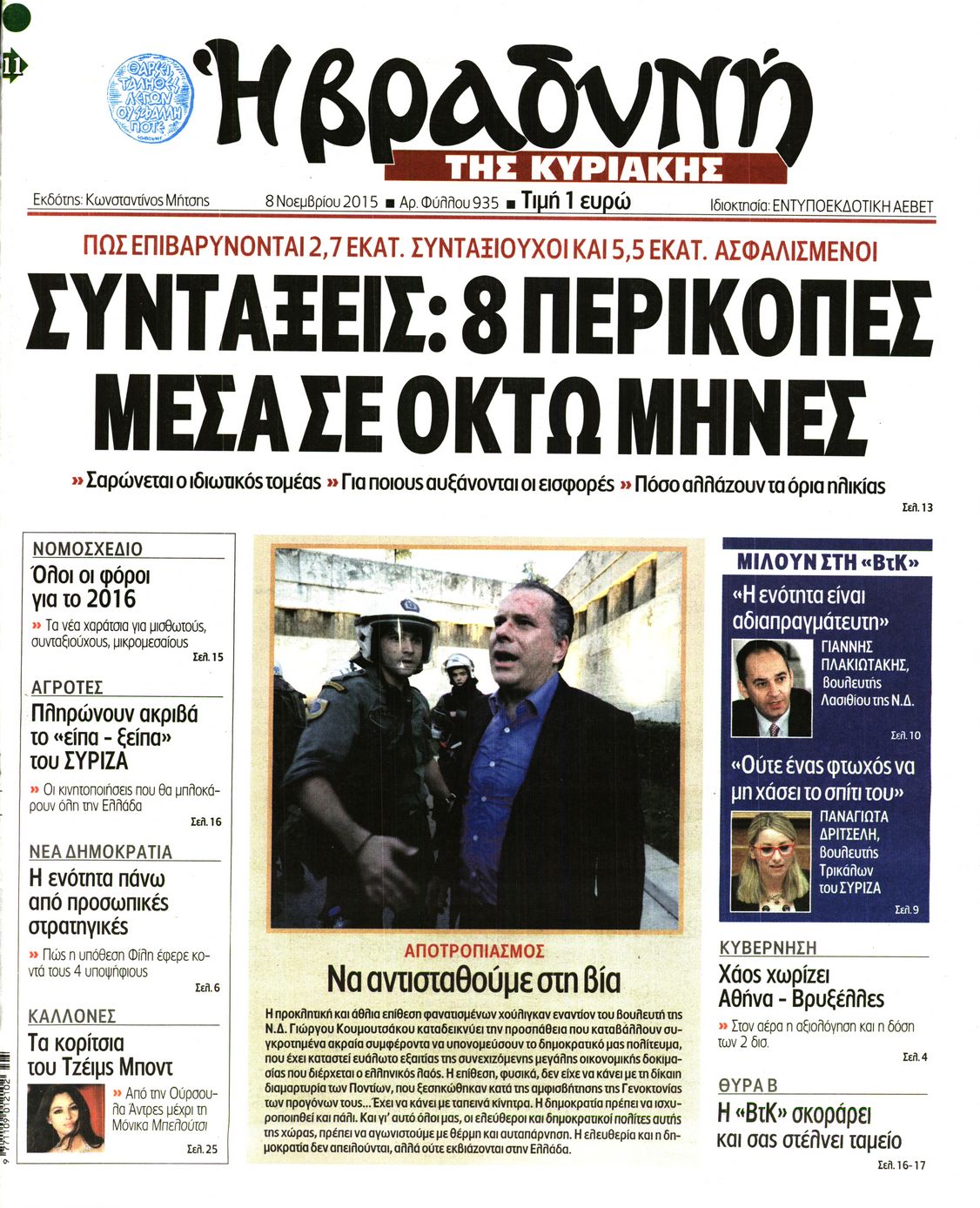 Οι πολιτικές εφημερίδες 8/11/2015 Enikos Newsroom 06:23, Κυριακή 08 Νοεμβρίου 2015 Media Δείτε τα πρωτοσέλιδα των πολιτικών εφημερίδων. ΕΦΗΜΕΡΙΔΕΣ ΠΟΛΙΤΙΚΕΣ ΕΦΗΜΕΡΙΔΕΣ ΠΡΩΤΟΣΕΛΙΔΑ Μοιράσου το: σχολίασε κι εσύ (0 σχόλια) Ακολουθήστε το enikos.gr στο Google News και μάθετε πρώτοι όλες τις ειδήσεις Δείτε όλες τις τελευταίες ειδήσεις από την Ελλάδα και τον Κόσμο στο enikos.gr Ειδήσεις Ροή Ειδήσεων 1 ώρα πριν Χριστούγεννα στα μπλόκα: Επιμένουν στις κινητοποιήσεις τους οι αγρότες – Ανοίγουν τα διόδια το Σαββατοκύριακο 2 ώρες πριν Ουκρανία: Η άνευ προηγουμένου επίθεση σε ρωσικό τάνκερ στη Μεσόγειο και το μήνυμα προς στον Πούτιν – Το «μακρύ χέρι» του Κιέβου 46 λεπτά πριν Πούτιν: Τα μηνύματα σε Ευρώπη και ΝΑΤΟ από το μαραθώνιο «σόου» του – Η απαίτηση για «σεβασμό» και η ειρήνη «με τους όρους» της Μόσχας 2 ώρες πριν Τραμπ: Δεν αποκλείει την πιθανότητα ενός πολέμου στη Βενεζουέλα – «Ο Μαδούρο ξέρει καλύτερα από τον καθένα τι ακριβώς θέλω» 2 ώρες πριν Συνεχίζει να προκαλεί ο Μίτσκοσκι: «Για μένα το όνομα Μακεδονία είναι ιερό» 47 λεπτά πριν Ανακαλύφθηκαν αρχαία χρυσά νομίσματα 2.200 ετών που απεικονίζουν τον θεό Απόλλωνα – Η άγνωστη σύνδεση με τον Φίλιππο Β΄ της Μακεδονίας 2 ώρες πριν Ύπνος: Μια κρυφή κατάσταση του εγκεφάλου πριν από τον ύπνο μπορεί να είναι το “κλειδί” για υψηλή ευφυΐα και δημιουργικότητα 3 ώρες πριν Αριθμολογία: Οι άνθρωποι που έχουν γεννηθεί αυτές τις 4 ημερομηνίες, συχνά παρεξηγούνται – «Η καλοσύνη τους κρύβει τεράστια δύναμη» 4 ώρες πριν Ξεχάστε το καθάρισμα το Σαββατοκύριακο: Ο «κανόνας των 20 λεπτών» που θα σας λύσει τα χέρια 2 λεπτά πριν Σάμος: Άνοιξε το μπλόκο των αγροτών στον κόμβο Κοκκαρίου – Σε νέα συνεδρίαση θα καθορίσουν την στάση τους 10 λεπτά πριν Άνω Λιόσια: Πυροβολισμοί σε επιχείρηση με χαλιά – Εντοπίστηκαν 10 κάλυκες 17 λεπτά πριν Γάζα: Ισραηλινό πλήγμα σε σχολείο που είχαν καταφύγει εκτοπισμένοι – Τουλάχιστον έξι νεκροί 31 λεπτά πριν Ολυμπιακός – Βιλερμπάν 107-84: Επιστροφή στις νίκες με… προπόνηση 37 λεπτά πριν Νέος Κόσμος: Συνελήφθη 41χρονος με ένταλμα από την Τουρκία για εμπόριο ναρκωτικών και ληστεία ENIKOS NETWORK Το ΕΚΑΒ τιμήθηκε από την Ακαδημία Αθηνών για τα 40 χρόνια προσφοράς του Έχετε πραγματικά μεγάλη καρδιά; 10 χαρακτηριστικά όσων έχουν καλοσύνη Αναστολή μέτρων αναγκαστικής εκτέλεσης για κτηνοτρόφους που πλήττονται από την ευλογιά των αιγοπροβάτων Πλήρης επάρκεια προϊόντων στις λαϊκές της Αττικής, παρά τις αγροτικές κινητοποιήσεις – Τι απαντούν οι πωλητές Χαρτογραφώντας το «σημείο χωρίς επιστροφή»: Για πρώτη φορά αποκαλύπτεται με λεπτομέρεια το ακανθώδες όριο της ατμόσφαιρας τ... Η Google καταργεί τη λειτουργία «dark web report» – Πώς θα μπορούν οι χρήστες να διαγράφουν τα δεδομένα τους περισσότερα 22:42 , Παρασκευή 19 Δεκεμβρίου 2025 Γιώργος Γιαννόπουλος για “Το σόι σου”: “Είναι ευτυχία και ευλογία αυτή η σειρά” «Είναι ευτυχία και ευλογία η συγκυρία αυτής της σειράς», θα πει ο Γιώργος Γιαννόπουλος -ο αγαπ... 20:37 , Παρασκευή 19 Δεκεμβρίου 2025 Don’t Forget The Lyrics: Η Έλλη Κοκκίνου υποδέχεται 4 παίκτες που θα κάνουν τα πάντα για να μη χάσουν ούτε… μισή λέξη από τους στίχους Το «Don’t Forget The Lyrics» επιστρέφει απόψε, Παρασκευή 19 Δεκεμβρίου, στις 21:00 με νέο επει... 19:31 , Παρασκευή 19 Δεκεμβρίου 2025 GNTM: Απόψε ο μεγάλος τελικός για τους 4 φιναλίστ Έπειτα από μήνες γεμάτους μόδα, δημιουργία και έντονες αναμετρήσεις, το GNTM 2025 κορυφώνεται,... 18:11 , Παρασκευή 19 Δεκεμβρίου 2025 Το σόι σου: Ο Άρη
