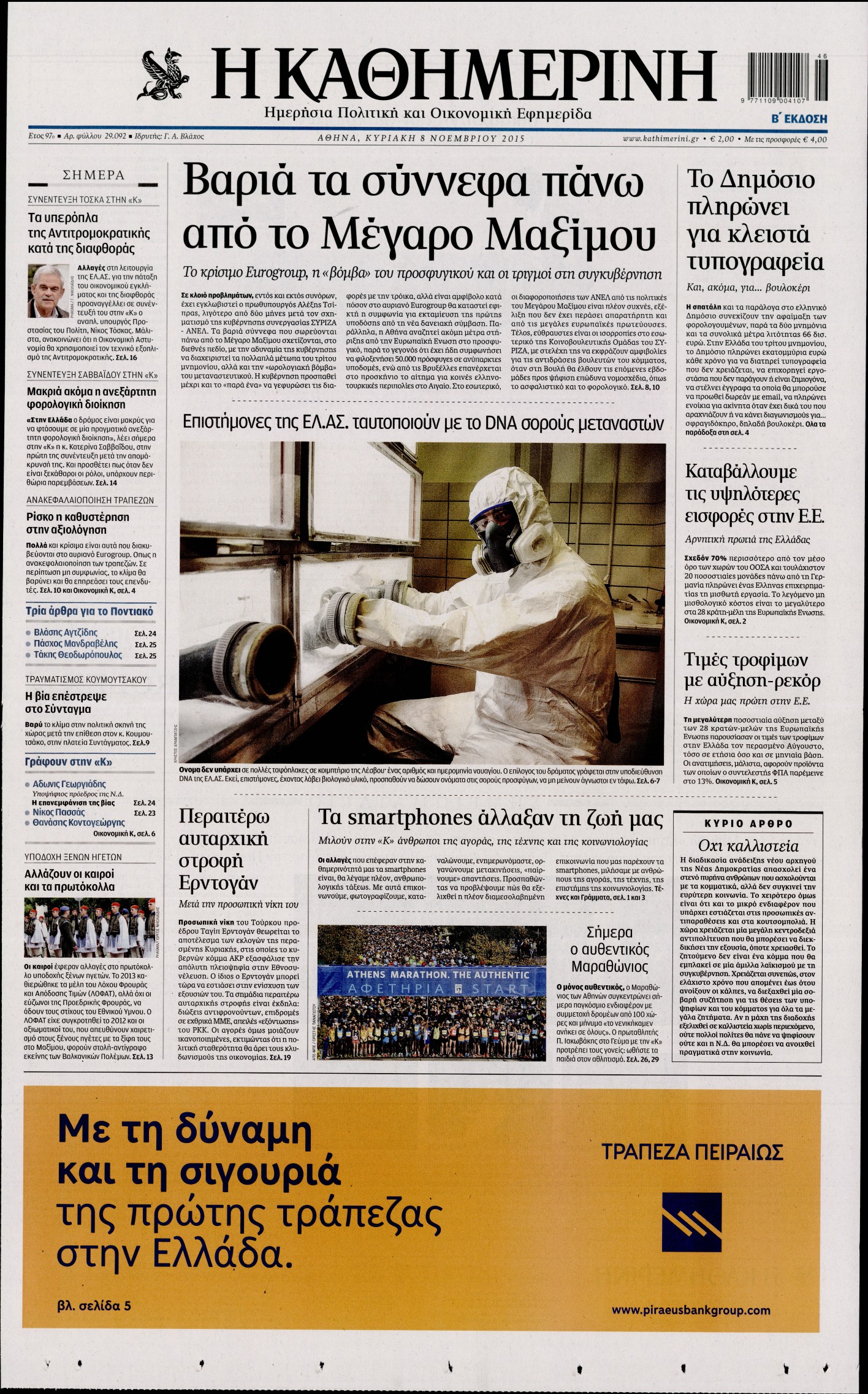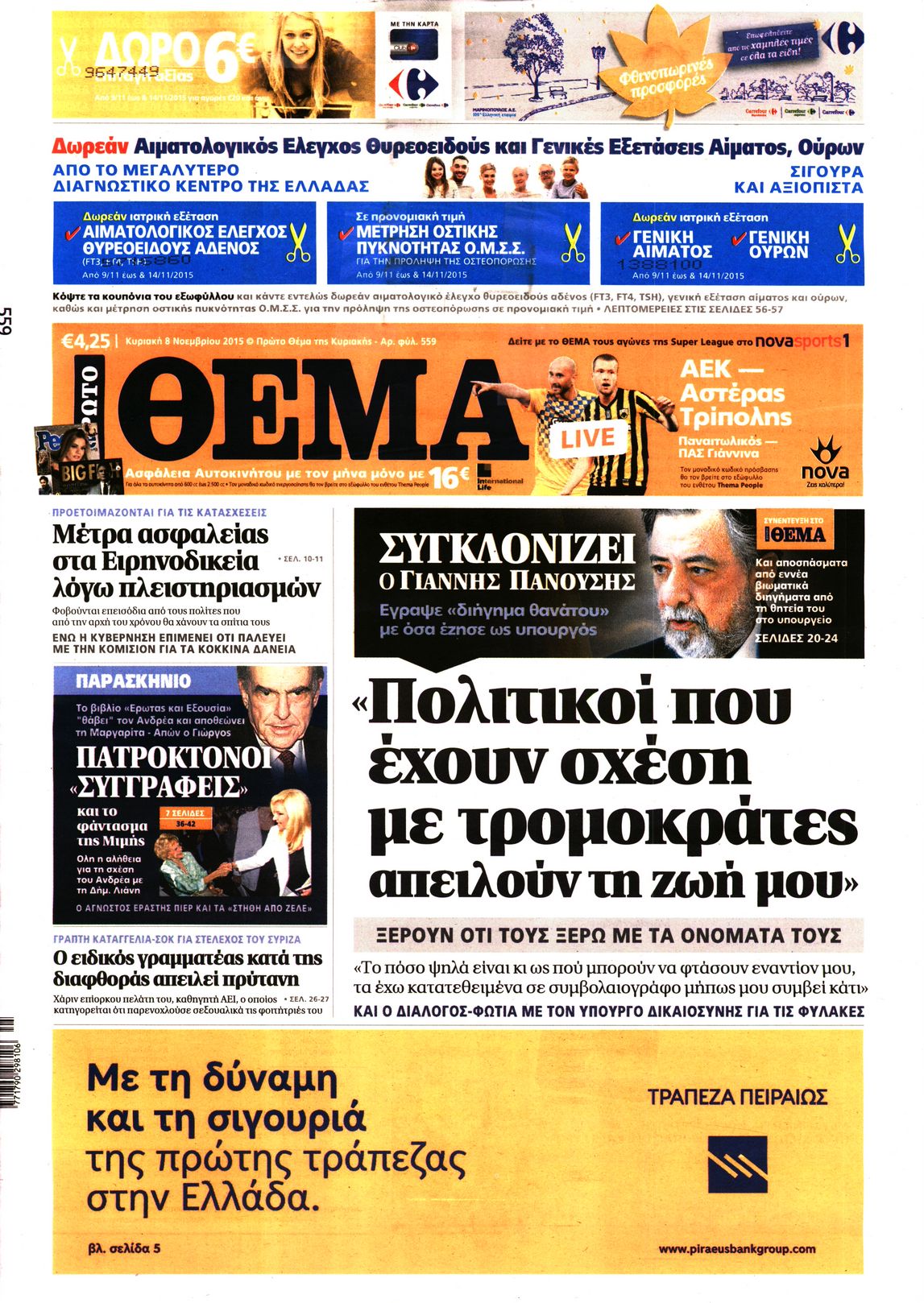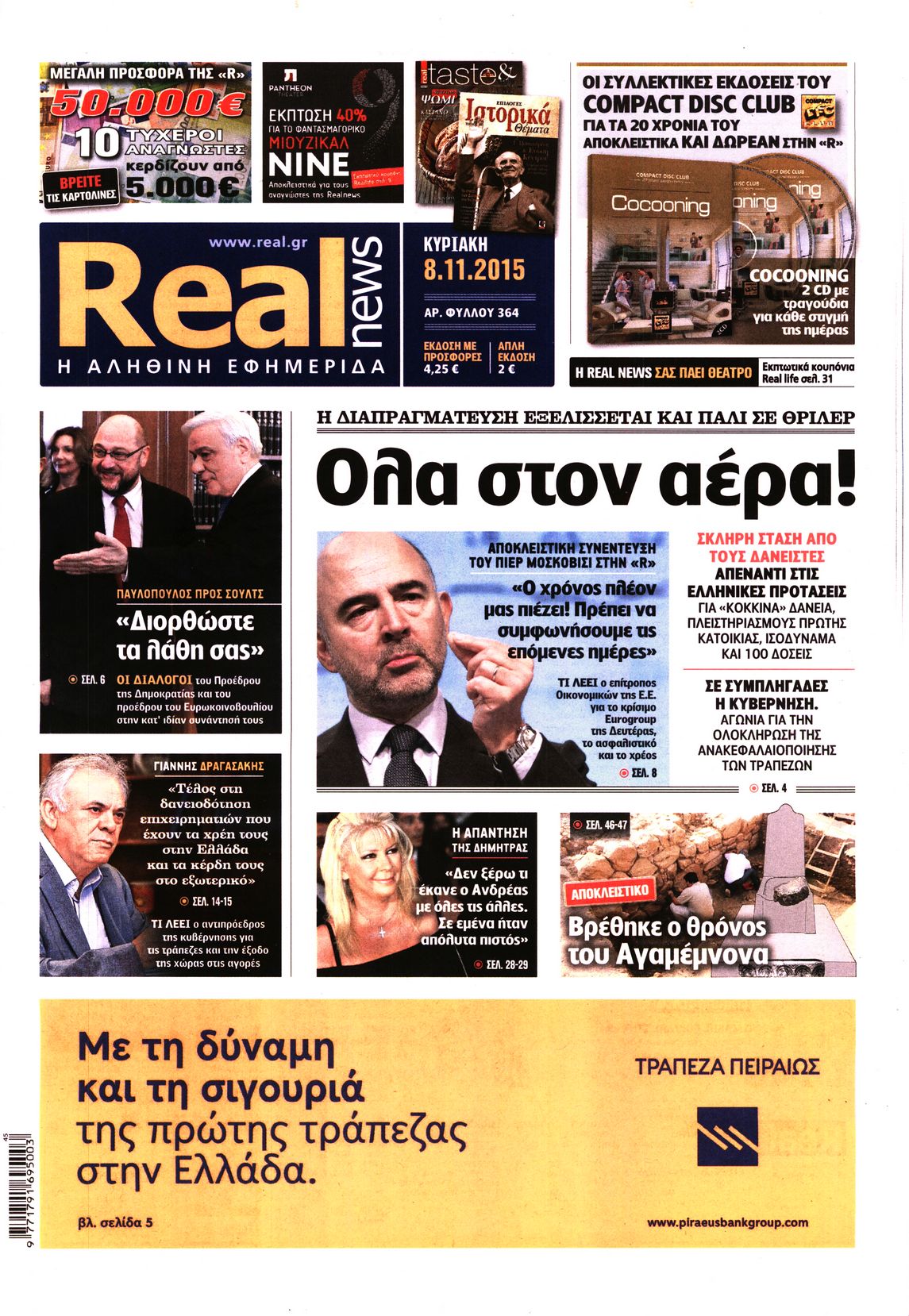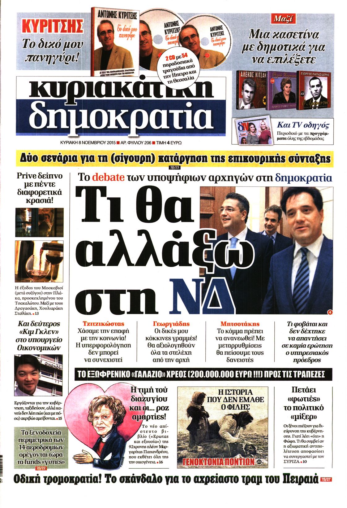 Οι πολιτικές εφημερίδες 8/11/2015 Enikos Newsroom 06:23, Κυριακή 08 Νοεμβρίου 2015 Media Δείτε τα πρωτοσέλιδα των πολιτικών εφημερίδων. ΕΦΗΜΕΡΙΔΕΣ ΠΟΛΙΤΙΚΕΣ ΕΦΗΜΕΡΙΔΕΣ ΠΡΩΤΟΣΕΛΙΔΑ Μοιράσου το: σχολίασε κι εσύ (0 σχόλια) Ακολουθήστε το enikos.gr στο Google News και μάθετε πρώτοι όλες τις ειδήσεις Δείτε όλες τις τελευταίες ειδήσεις από την Ελλάδα και τον Κόσμο στο enikos.gr Ειδήσεις Ροή Ειδήσεων 1 ώρα πριν Χριστούγεννα στα μπλόκα: Επιμένουν στις κινητοποιήσεις τους οι αγρότες – Ανοίγουν τα διόδια το Σαββατοκύριακο 2 ώρες πριν Ουκρανία: Η άνευ προηγουμένου επίθεση σε ρωσικό τάνκερ στη Μεσόγειο και το μήνυμα προς στον Πούτιν – Το «μακρύ χέρι» του Κιέβου 46 λεπτά πριν Πούτιν: Τα μηνύματα σε Ευρώπη και ΝΑΤΟ από το μαραθώνιο «σόου» του – Η απαίτηση για «σεβασμό» και η ειρήνη «με τους όρους» της Μόσχας 2 ώρες πριν Τραμπ: Δεν αποκλείει την πιθανότητα ενός πολέμου στη Βενεζουέλα – «Ο Μαδούρο ξέρει καλύτερα από τον καθένα τι ακριβώς θέλω» 2 ώρες πριν Συνεχίζει να προκαλεί ο Μίτσκοσκι: «Για μένα το όνομα Μακεδονία είναι ιερό» 47 λεπτά πριν Ανακαλύφθηκαν αρχαία χρυσά νομίσματα 2.200 ετών που απεικονίζουν τον θεό Απόλλωνα – Η άγνωστη σύνδεση με τον Φίλιππο Β΄ της Μακεδονίας 2 ώρες πριν Ύπνος: Μια κρυφή κατάσταση του εγκεφάλου πριν από τον ύπνο μπορεί να είναι το “κλειδί” για υψηλή ευφυΐα και δημιουργικότητα 3 ώρες πριν Αριθμολογία: Οι άνθρωποι που έχουν γεννηθεί αυτές τις 4 ημερομηνίες, συχνά παρεξηγούνται – «Η καλοσύνη τους κρύβει τεράστια δύναμη» 4 ώρες πριν Ξεχάστε το καθάρισμα το Σαββατοκύριακο: Ο «κανόνας των 20 λεπτών» που θα σας λύσει τα χέρια 2 λεπτά πριν Σάμος: Άνοιξε το μπλόκο των αγροτών στον κόμβο Κοκκαρίου – Σε νέα συνεδρίαση θα καθορίσουν την στάση τους 10 λεπτά πριν Άνω Λιόσια: Πυροβολισμοί σε επιχείρηση με χαλιά – Εντοπίστηκαν 10 κάλυκες 17 λεπτά πριν Γάζα: Ισραηλινό πλήγμα σε σχολείο που είχαν καταφύγει εκτοπισμένοι – Τουλάχιστον έξι νεκροί 31 λεπτά πριν Ολυμπιακός – Βιλερμπάν 107-84: Επιστροφή στις νίκες με… προπόνηση 37 λεπτά πριν Νέος Κόσμος: Συνελήφθη 41χρονος με ένταλμα από την Τουρκία για εμπόριο ναρκωτικών και ληστεία ENIKOS NETWORK Το ΕΚΑΒ τιμήθηκε από την Ακαδημία Αθηνών για τα 40 χρόνια προσφοράς του Έχετε πραγματικά μεγάλη καρδιά; 10 χαρακτηριστικά όσων έχουν καλοσύνη Αναστολή μέτρων αναγκαστικής εκτέλεσης για κτηνοτρόφους που πλήττονται από την ευλογιά των αιγοπροβάτων Πλήρης επάρκεια προϊόντων στις λαϊκές της Αττικής, παρά τις αγροτικές κινητοποιήσεις – Τι απαντούν οι πωλητές Χαρτογραφώντας το «σημείο χωρίς επιστροφή»: Για πρώτη φορά αποκαλύπτεται με λεπτομέρεια το ακανθώδες όριο της ατμόσφαιρας τ... Η Google καταργεί τη λειτουργία «dark web report» – Πώς θα μπορούν οι χρήστες να διαγράφουν τα δεδομένα τους περισσότερα 22:42 , Παρασκευή 19 Δεκεμβρίου 2025 Γιώργος Γιαννόπουλος για “Το σόι σου”: “Είναι ευτυχία και ευλογία αυτή η σειρά” «Είναι ευτυχία και ευλογία η συγκυρία αυτής της σειράς», θα πει ο Γιώργος Γιαννόπουλος -ο αγαπ... 20:37 , Παρασκευή 19 Δεκεμβρίου 2025 Don’t Forget The Lyrics: Η Έλλη Κοκκίνου υποδέχεται 4 παίκτες που θα κάνουν τα πάντα για να μη χάσουν ούτε… μισή λέξη από τους στίχους Το «Don’t Forget The Lyrics» επιστρέφει απόψε, Παρασκευή 19 Δεκεμβρίου, στις 21:00 με νέο επει... 19:31 , Παρασκευή 19 Δεκεμβρίου 2025 GNTM: Απόψε ο μεγάλος τελικός για τους 4 φιναλίστ Έπειτα από μήνες γεμάτους μόδα, δημιουργία και έντονες αναμετρήσεις, το GNTM 2025 κορυφώνεται,... 18:11 , Παρασκευή 19 Δεκεμβρίου 2025 Το σόι σου: Ο Άρη