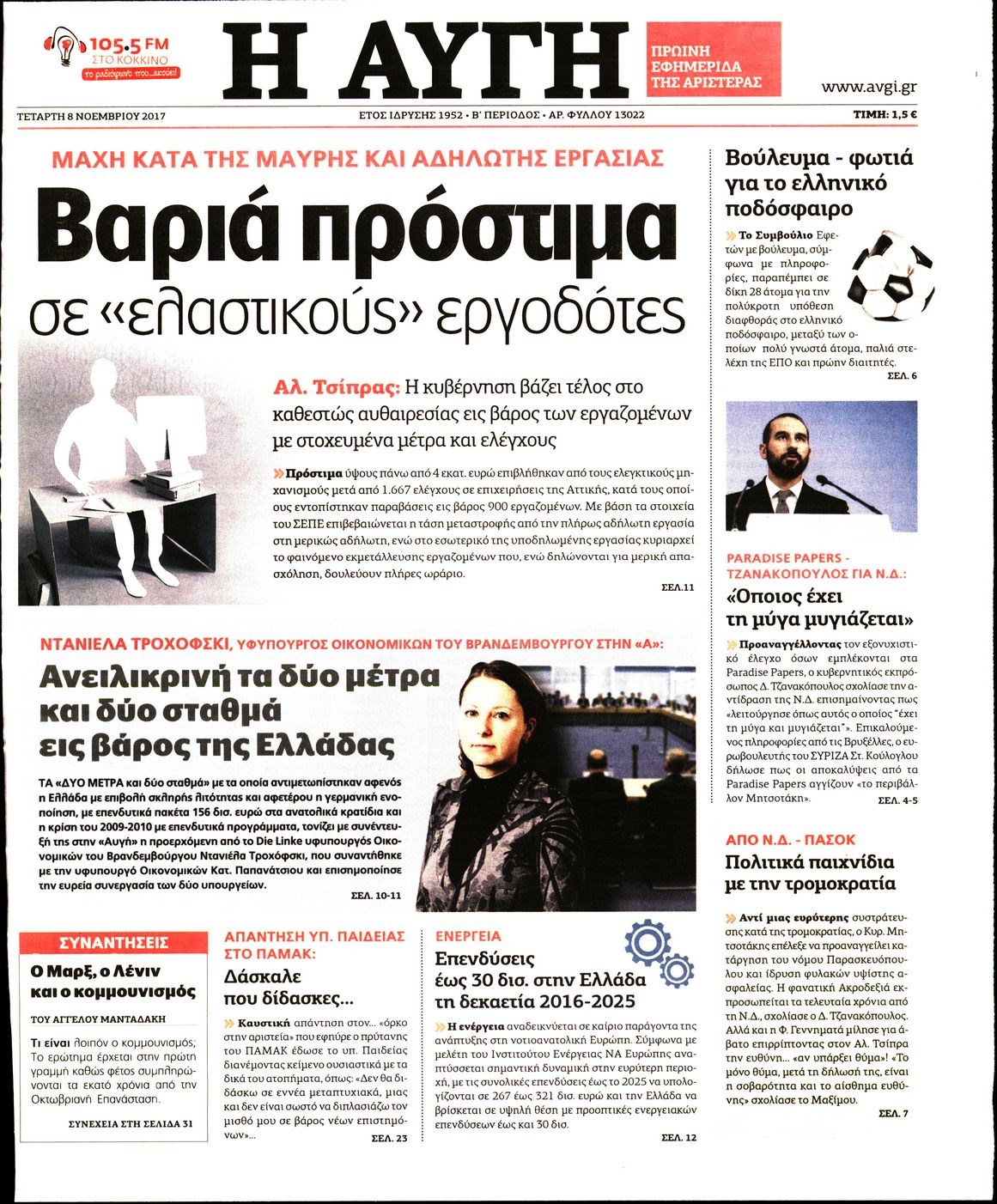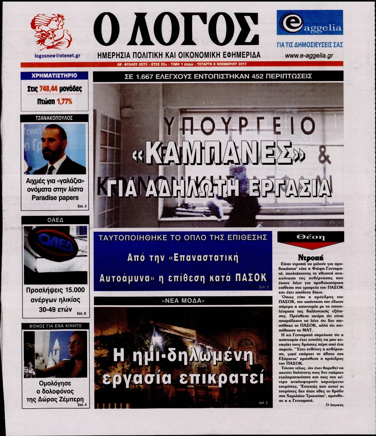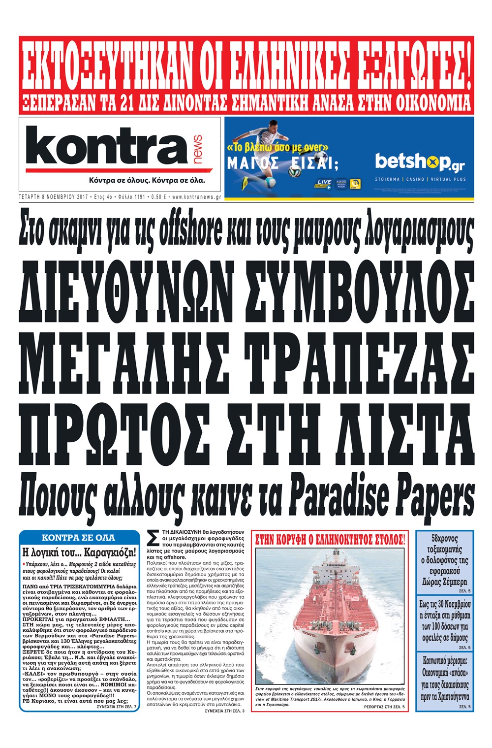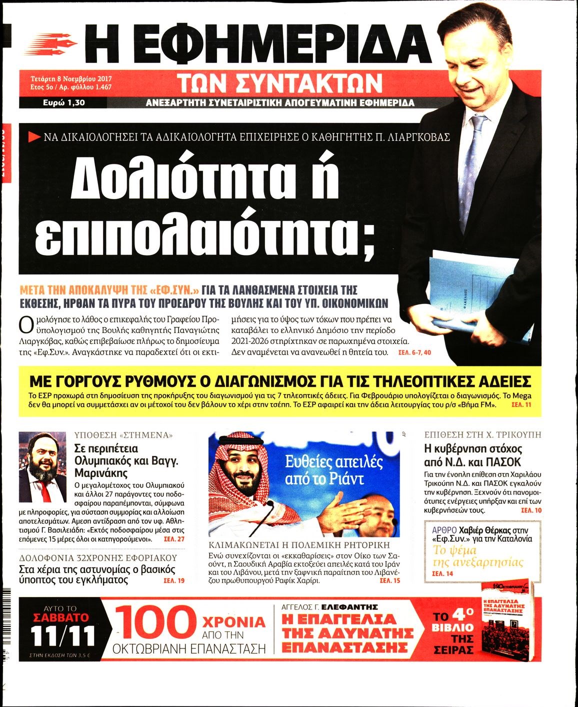 Οι πολιτικές εφημερίδες 8/11/2017 Enikos Newsroom 07:36, Τετάρτη 08 Νοεμβρίου 2017 Media Διαβάστε τα σημερινά πρωτοσέλιδα των πολιτικών εφημερίδων: ΠΟΛΙΤΙΚΕΣ ΕΦΗΜΕΡΙΔΕΣ ΠΡΩΤΟΣΕΛΙΔΑ Μοιράσου το: σχολίασε κι εσύ (0 σχόλια) Ακολουθήστε το enikos.gr στο Google News και μάθετε πρώτοι όλες τις ειδήσεις Δείτε όλες τις τελευταίες ειδήσεις από την Ελλάδα και τον Κόσμο στο enikos.gr Ειδήσεις Ροή Ειδήσεων 3 λεπτά πριν Υπόθεση Έπσταϊν: Το Υπουργείο Δικαιοσύνης δημοσιοποίησε μια σειρά από εξαιρετικά επεξεργασμένα αρχεία – «Λείπουν τα πιο σημαντικά έγγραφα», λένε οι Δημοκρατικοί 9 ώρες πριν Χριστούγεννα στα μπλόκα: Επιμένουν στις κινητοποιήσεις τους οι αγρότες – Ανοίγουν τα διόδια το Σαββατοκύριακο 2 ώρες πριν Σαρωτικοί οι έλεγχοι στους δρόμους ενόψει εορτών – Μπλόκα της τροχαίας σε κεντρικές αρτηρίες της Αττικής 9 ώρες πριν Πούτιν: Τα μηνύματα σε Ευρώπη και ΝΑΤΟ από το μαραθώνιο «σόου» του – Η απαίτηση για «σεβασμό» και η ειρήνη «με τους όρους» της Μόσχας 8 ώρες πριν Άνω Λιόσια: Πυροβολισμοί σε επιχείρηση με χαλιά – Εντοπίστηκαν 10 κάλυκες 2 ώρες πριν Αυγά: Πόσα μπορείτε να τρώτε την ημέρα με ασφάλεια για μέγιστη πρόσληψη πρωτεΐνης 2 ώρες πριν Τα ζώδια σήμερα, Σάββατο 20 Δεκεμβρίου: Παρθένοι, το σύμπαν σας δίνει το κλειδί 9 ώρες πριν Ανακαλύφθηκαν αρχαία χρυσά νομίσματα 2.200 ετών που απεικονίζουν τον θεό Απόλλωνα – Η άγνωστη σύνδεση με τον Φίλιππο Β΄ της Μακεδονίας 2 ώρες πριν Οπτική ψευδαίσθηση: Μόνο αν είσαι ο Σέρλοκ Χολμς θα βρεις τον αριθμό «87» σε 7 δευτερόλεπτα 3 λεπτά πριν Υπόθεση Έπσταϊν: Το Υπουργείο Δικαιοσύνης δημοσιοποίησε μια σειρά από εξαιρετικά επεξεργασμένα αρχεία – «Λείπουν τα πιο σημαντικά έγγραφα», λένε οι Δημοκρατικοί 5 λεπτά πριν Καιρός: Αλλαγή σκηνικού σήμερα με βροχές και πτώση της θερμοκρασίας – Οι προβλέψεις των μετεωρολόγων για τα Χριστούγεννα 13 λεπτά πριν ΟΝΕΧ – MEGATUGS: Ξεκίνησε η ναυπήγηση ρυμουλκών στην Ελλάδα – Προθάλαμος πολεμικών πλοίων – Δείτε φωτογραφίες και βίντεο 22 λεπτά πριν Φοινικούντα: Σήμερα απολογείται ο 30χρονος γιος γνωστού επιχειρηματία της Πλάκας 30 λεπτά πριν Οι αθλητικές μεταδόσεις 20/12/2025 ENIKOS NETWORK Πρέπει να αποδέχεστε ή να απορρίπτετε όλα τα cookies; Ένας ειδικός εξηγεί Η αγαπημένη λιχουδιά των πόνι που μπορεί να ενισχύσει όραση, εγκέφαλο και ανοσοποιητικό Αναστολή μέτρων αναγκαστικής εκτέλεσης για κτηνοτρόφους που πλήττονται από την ευλογιά των αιγοπροβάτων Πλήρης επάρκεια προϊόντων στις λαϊκές της Αττικής, παρά τις αγροτικές κινητοποιήσεις – Τι απαντούν οι πωλητές Χαρτογραφώντας το «σημείο χωρίς επιστροφή»: Για πρώτη φορά αποκαλύπτεται με λεπτομέρεια το ακανθώδες όριο της ατμόσφαιρας τ... Η Google καταργεί τη λειτουργία «dark web report» – Πώς θα μπορούν οι χρήστες να διαγράφουν τα δεδομένα τους περισσότερα 05:48 , Σάββατο 20 Δεκεμβρίου 2025 Οι οικονομικές εφημερίδες 20/12/2025 Διαβάστε τα πρωτοσέλιδα από τις οικονομικές εφημερίδες, σήμερα 20/12/2025. 05:43 , Σάββατο 20 Δεκεμβρίου 2025 Οι αθλητικές εφημερίδες 20/12/2025 Διαβάστε τα πρωτοσέλιδα από τις αθλητικές εφημερίδες, σήμερα 20/12/2025. 05:38 , Σάββατο 20 Δεκεμβρίου 2025 Οι πολιτικές εφημερίδες 20/12/2025 Διαβάστε τα πρωτοσέλιδα από τις πολιτικές εφημερίδες, σήμερα 20/12/2025. 04:20 , Σάββατο 20 Δεκεμβρίου 2025 Αγγελική Νικολούλη: Τα συλλυπητήρια για την απώλεια της Ειρήνης Μαρινάκη Τα συλληπητήρια στον πρόεδρο του Mega, τον Βαγγέλη Μαρινάκη, για την απώλεια της μητέρας του Ε... ΤΕΛΕΥΤΑΙΕΣ ΕΙΔΗΣΕΙΣ 3 λεπτά πριν Υπόθεση Έπσταϊν: Το Υπουρ
