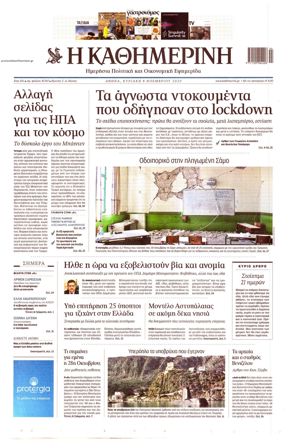 Οι πολιτικές εφημερίδες 8/11/2020 Σήφης Γαρυφαλάκης 07:16, Κυριακή 08 Νοεμβρίου 2020 Media Διαβάστε τα πρωτοσέλιδα των πολιτικών εφημερίδων… ΕΦΗΜΕΡΙΔΕΣ ΠΟΛΙΤΙΚΕΣ ΕΦΗΜΕΡΙΔΕΣ ΠΡΩΤΟΣΕΛΙΔΑ ΠΡΩΤΟΣΕΛΙΔΑ ΕΦΗΜΕΡΙΔΩΝ Μοιράσου το: σχολίασε κι εσύ (0 σχόλια) Ακολουθήστε το enikos.gr στο Google News και μάθετε πρώτοι όλες τις ειδήσεις Δείτε όλες τις τελευταίες ειδήσεις από την Ελλάδα και τον Κόσμο στο enikos.gr Ειδήσεις Ροή Ειδήσεων 3 ώρες πριν Αυξάνουν την πίεση προς την κυβέρνηση οι αγρότες: Κλείνουν παρακαμπτήριους και ανοίγουν διόδια – Τι θα γίνει τις γιορτές 2 ώρες πριν ΟΠΕΚΕΠΕ: Προφυλακιστέος ο φερόμενος αρχηγός και ο λογιστής της εγκληματικής οργάνωσης 3 ώρες πριν Φοινικούντα: Το Σάββατο απολογείται ο 30χρονος γιος γνωστού επιχειρηματία της Πλάκας που παραδόθηκε – Όσα είπε στους αστυνομικούς και ο ρόλος του στο έγκλημα 3 ώρες πριν Μπορεί ο Μαδούρο να αντέξει τον αποκλεισμό του Τραμπ; Τι θα χρειαστεί η Ουάσινγκτον για να τον ανατρέψει 4 ώρες πριν Πρίγκιπας Ουίλιαμ – Κέιτ: Η νέα οικογενειακή φωτογραφία για τις Χριστουγεννιάτικες κάρτες του 2025 4 ώρες πριν Ύπνος: Η απλή βραδινή ρουτίνα για να προστατεύσετε τα μαλλιά σας από το κρύο κατά τη διάρκεια του χειμώνα 5 ώρες πριν Manifesting: Πώς να συναντήσετε τον σύντροφο της ζωής σας, ανάλογα με τον μήνα γέννησής σας 2 ημέρες πριν 20 χρόνια τα Χριστούγεννα ξεκινούν στα Public με μεγάλη ποικιλία σε δώρα! 3 ώρες πριν Αρχαιολόγοι ανακάλυψαν ρωμαϊκά τεχνουργήματα από μια πόλη που δεν υπήρξε ποτέ – Τα τρία εντυπωσιακά κτίρια και ο αμφορέας με τις… σαρδέλες 15 λεπτά πριν Μάρκο Νίκολιτς: «Είμαι περήφανος για τους παίκτες μου, όποιος αντίπαλος και να έρθει θα προετοιμαστούμε» 23 λεπτά πριν ΟΗΕ: Την εκλογή του νέου ύπατου αρμοστή για τους Πρόσφυγες Μπαρχάμ Άχμεντ Σαλίχ χαιρέτησε ο Αντόνιο Γκουτέρες 28 λεπτά πριν Σύνοδος Κορυφής στις Βρυξέλλες: Ακόμη πιο κοντά σε διέξοδο για τη χρηματοδότηση της Ουκρανίας 36 λεπτά πριν ΟΗΕ: Iστορική επίσκεψη του Συμβουλίου Ασφαλείας στη Δαμασκό – Mήνυμα Ελλάδας για συμπερίληψη και λογοδοσία 43 λεπτά πριν Νέος πρέσβης της Μεγάλης Βρετανίας στις ΗΠΑ ο Κρίστιαν Τέρνερ ENIKOS NETWORK Σε περίοδο αυξημένης δραστηριότητας η γρίπη στην Ελλάδα-Μέτρα προστασίας από τον ΕΟΔΥ Σκέφτεστε συνέχεια συζητήσεις που έχετε κάνει; Τι σημαίνει αυτό, σύμφωνα με ειδικό Στεγαστικό: Τι λέει η ΠΟΜΙΔΑ για τα νέα μέτρα που ανακοίνωσε ο Κυριάκος Μητσοτάκης Λαγκάρντ: Αισιόδοξη για την ανάπτυξη της Ευρωζώνης, αβέβαιη για τον πληθωρισμό Χαρτογραφώντας το «σημείο χωρίς επιστροφή»: Για πρώτη φορά αποκαλύπτεται με λεπτομέρεια το ακανθώδες όριο της ατμόσφαιρας τ... Η Google καταργεί τη λειτουργία «dark web report» – Πώς θα μπορούν οι χρήστες να διαγράφουν τα δεδομένα τους περισσότερα 17:45 , Πέμπτη 18 Δεκεμβρίου 2025 ROUK ZOUK: Εορταστικό επεισόδιο με καλεσμένους τους πρωταγωνιστές του «Γιατί ρε πατέρα» Το Σάββατο 20 Δεκεμβρίου στις 21:00, η Ζέτα Μακρυπούλια υποδέχεται εκλεκτούς ηθοποιούς που όλο... 17:20 , Πέμπτη 18 Δεκεμβρίου 2025 Άγιος έρωτας: Η Χριστίνα εξομολογείται στον πατέρα Νικόλαο, απόψε στις 21:00 στον Alpha Η Νότα αποφασίζει να εκδικηθεί τον Πέτρο και τον Στέφανο, για χάρη του Λούη, όμως τα πράγματα ... 16:50 , Πέμπτη 18 Δεκεμβρίου 2025 Να μ’ αγαπάς: Ζωή και Φωτεινή συμφιλιώνονται ως μάνα με κόρη, απόψε στις 20:00 Η ταυτότητα του Άγγελου αποκαλύπτεται στο νέο επεισόδιο της σειράς “Να μ’ αγαπάς... 15:52 , Πέμπτη 18 Δεκεμβρίου 2025 Το Σπίτι Δίπλα Στο Ποτάμι: Το καθηλωτικό τελευταίο επεισόδι