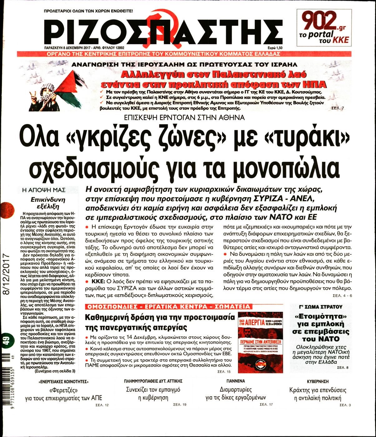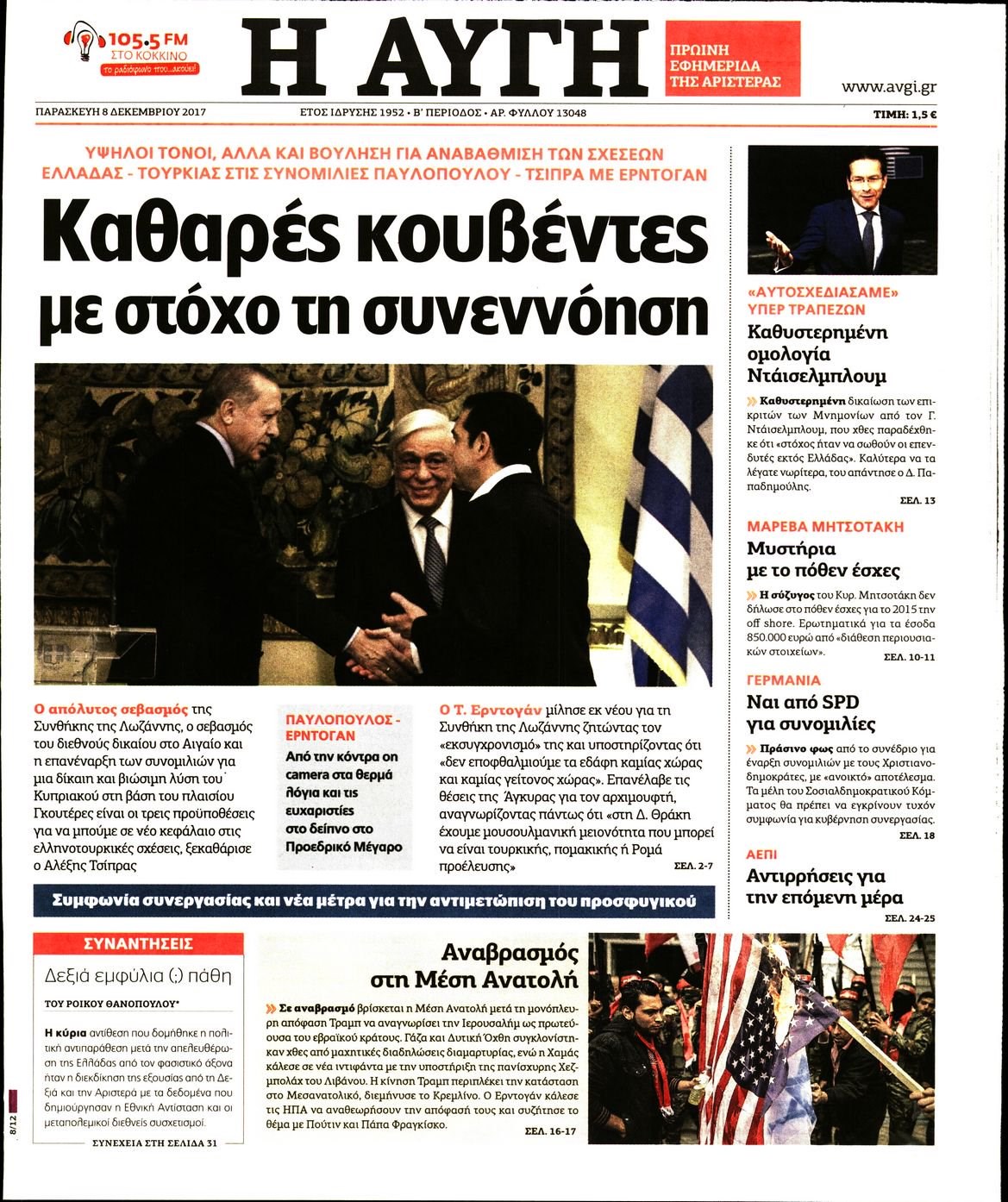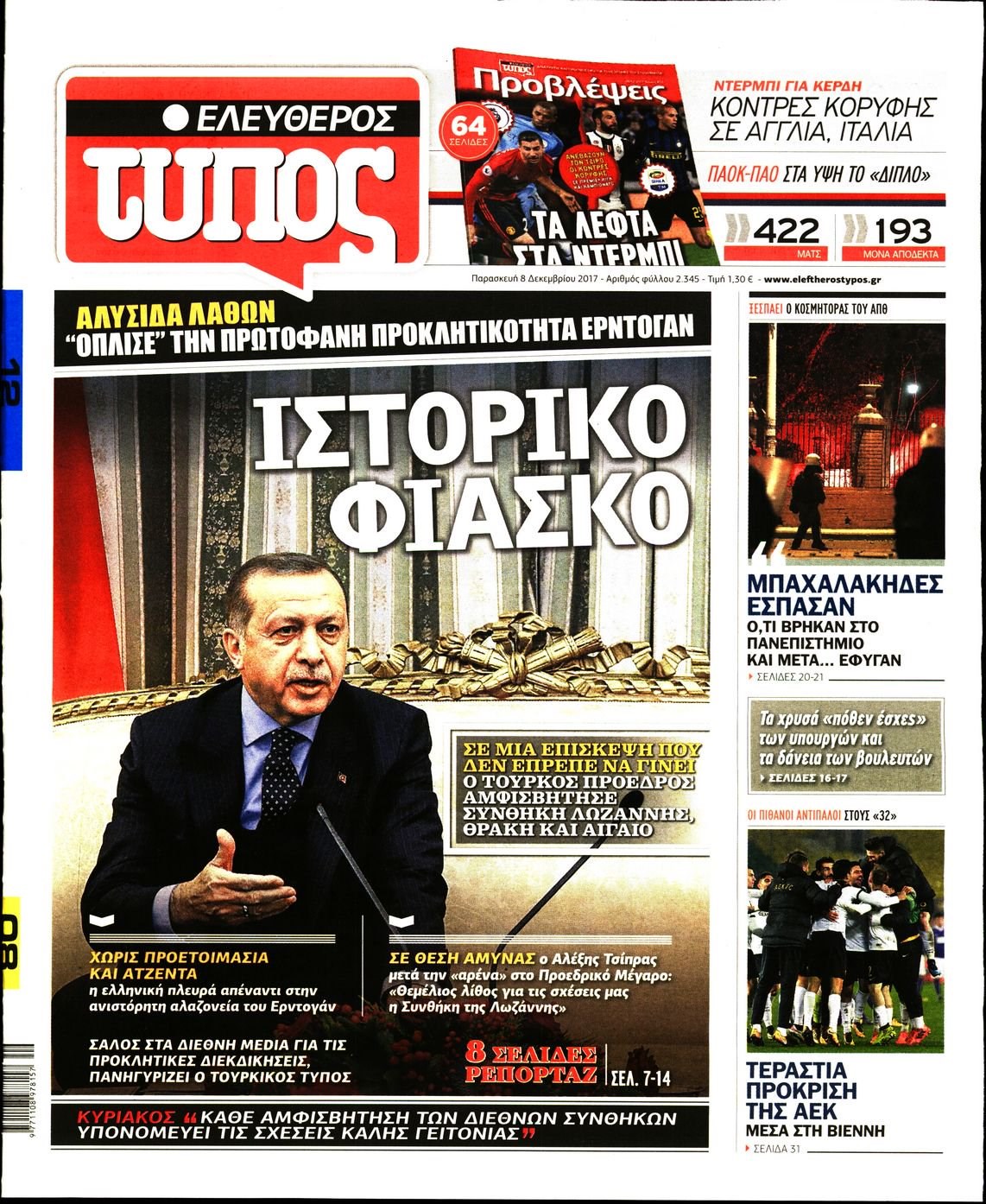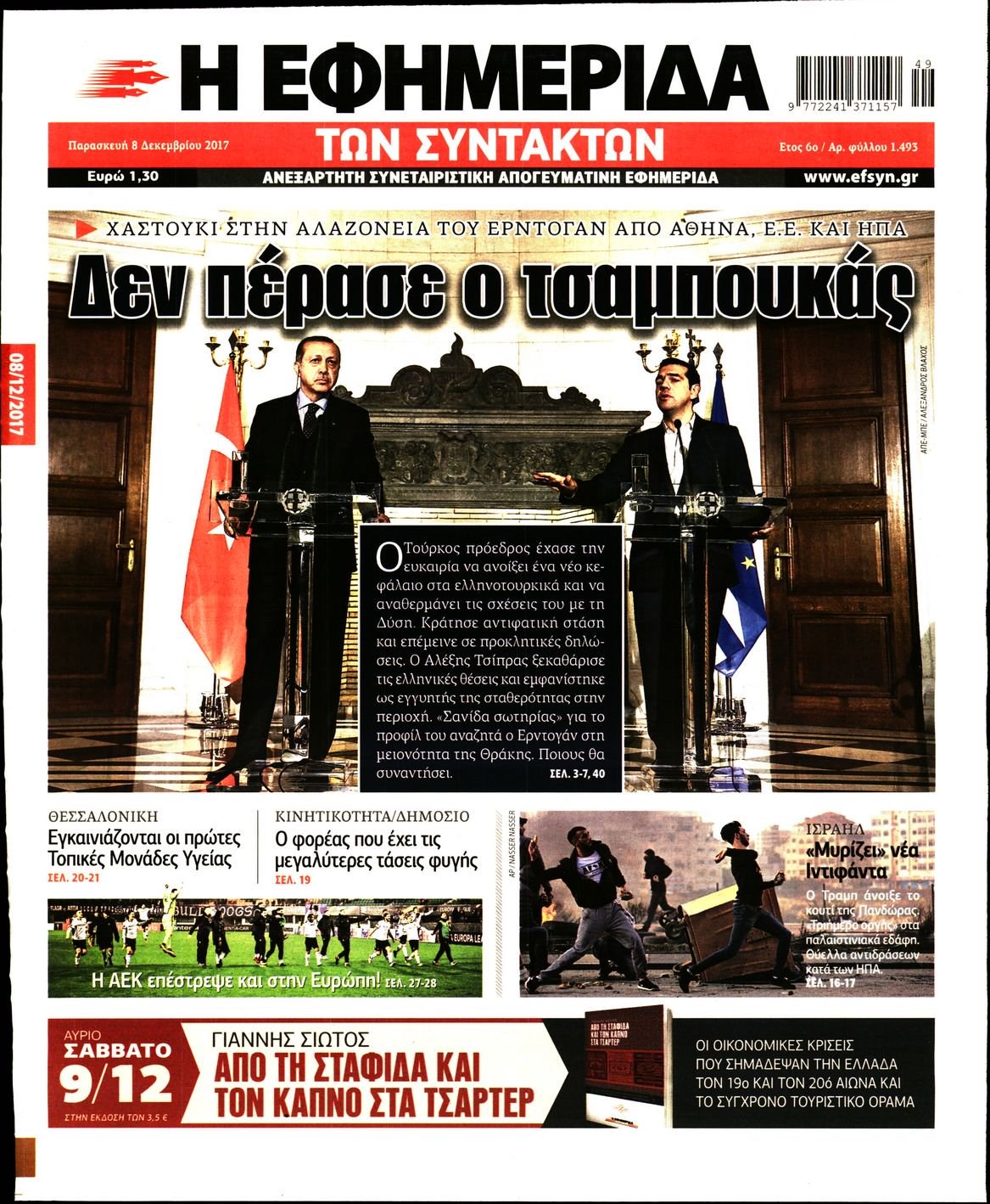 Οι πολιτικές εφημερίδες 8/12/2017 Enikos Newsroom 07:50, Παρασκευή 08 Δεκεμβρίου 2017 Media Διαβάστε τα σημερινά πρωτοσέλιδα των πολιτικών εφημερίδων: ΠΟΛΙΤΙΚΕΣ ΕΦΗΜΕΡΙΔΕΣ ΠΡΩΤΟΣΕΛΙΔΑ Μοιράσου το: σχολίασε κι εσύ (0 σχόλια) Ακολουθήστε το enikos.gr στο Google News και μάθετε πρώτοι όλες τις ειδήσεις Δείτε όλες τις τελευταίες ειδήσεις από την Ελλάδα και τον Κόσμο στο enikos.gr Ειδήσεις Ροή Ειδήσεων 1 ώρα πριν Χριστούγεννα στα μπλόκα: Επιμένουν στις κινητοποιήσεις τους οι αγρότες – Ανοίγουν τα διόδια το Σαββατοκύριακο 2 ώρες πριν Ουκρανία: Η άνευ προηγουμένου επίθεση σε ρωσικό τάνκερ στη Μεσόγειο και το μήνυμα προς στον Πούτιν – Το «μακρύ χέρι» του Κιέβου 1 ώρα πριν Πούτιν: Τα μηνύματα σε Ευρώπη και ΝΑΤΟ από το μαραθώνιο «σόου» του – Η απαίτηση για «σεβασμό» και η ειρήνη «με τους όρους» της Μόσχας 2 ώρες πριν Τραμπ: Δεν αποκλείει την πιθανότητα ενός πολέμου στη Βενεζουέλα – «Ο Μαδούρο ξέρει καλύτερα από τον καθένα τι ακριβώς θέλω» 3 ώρες πριν Συνεχίζει να προκαλεί ο Μίτσκοσκι: «Για μένα το όνομα Μακεδονία είναι ιερό» 1 ώρα πριν Ανακαλύφθηκαν αρχαία χρυσά νομίσματα 2.200 ετών που απεικονίζουν τον θεό Απόλλωνα – Η άγνωστη σύνδεση με τον Φίλιππο Β΄ της Μακεδονίας 2 ώρες πριν Ύπνος: Μια κρυφή κατάσταση του εγκεφάλου πριν από τον ύπνο μπορεί να είναι το “κλειδί” για υψηλή ευφυΐα και δημιουργικότητα 3 ώρες πριν Αριθμολογία: Οι άνθρωποι που έχουν γεννηθεί αυτές τις 4 ημερομηνίες, συχνά παρεξηγούνται – «Η καλοσύνη τους κρύβει τεράστια δύναμη» 4 ώρες πριν Ξεχάστε το καθάρισμα το Σαββατοκύριακο: Ο «κανόνας των 20 λεπτών» που θα σας λύσει τα χέρια 5 λεπτά πριν Πόλεμος στην Ουκρανία: Εφτά νεκροί από ρωσική πυραυλική επίθεση στο λιμάνι της Οδησσού 9 λεπτά πριν ΗΠΑ: Η κυβέρνηση του Ντόναλντ Τραμπ άρχισε να δημοσιοποιεί τα αρχεία Έπσταϊν 21 λεπτά πριν Σάμος: Άνοιξε το μπλόκο των αγροτών στον κόμβο Κοκκαρίου – Σε νέα συνεδρίαση θα καθορίσουν την στάση τους 29 λεπτά πριν Άνω Λιόσια: Πυροβολισμοί σε επιχείρηση με χαλιά – Εντοπίστηκαν 10 κάλυκες 36 λεπτά πριν Γάζα: Ισραηλινό πλήγμα σε σχολείο που είχαν καταφύγει εκτοπισμένοι – Τουλάχιστον έξι νεκροί ENIKOS NETWORK Το ΕΚΑΒ τιμήθηκε από την Ακαδημία Αθηνών για τα 40 χρόνια προσφοράς του Έχετε πραγματικά μεγάλη καρδιά; 10 χαρακτηριστικά όσων έχουν καλοσύνη Αναστολή μέτρων αναγκαστικής εκτέλεσης για κτηνοτρόφους που πλήττονται από την ευλογιά των αιγοπροβάτων Πλήρης επάρκεια προϊόντων στις λαϊκές της Αττικής, παρά τις αγροτικές κινητοποιήσεις – Τι απαντούν οι πωλητές Χαρτογραφώντας το «σημείο χωρίς επιστροφή»: Για πρώτη φορά αποκαλύπτεται με λεπτομέρεια το ακανθώδες όριο της ατμόσφαιρας τ... Η Google καταργεί τη λειτουργία «dark web report» – Πώς θα μπορούν οι χρήστες να διαγράφουν τα δεδομένα τους περισσότερα 22:42 , Παρασκευή 19 Δεκεμβρίου 2025 Γιώργος Γιαννόπουλος για “Το σόι σου”: “Είναι ευτυχία και ευλογία αυτή η σειρά” «Είναι ευτυχία και ευλογία η συγκυρία αυτής της σειράς», θα πει ο Γιώργος Γιαννόπουλος -ο αγαπ... 20:37 , Παρασκευή 19 Δεκεμβρίου 2025 Don’t Forget The Lyrics: Η Έλλη Κοκκίνου υποδέχεται 4 παίκτες που θα κάνουν τα πάντα για να μη χάσουν ούτε… μισή λέξη από τους στίχους Το «Don’t Forget The Lyrics» επιστρέφει απόψε, Παρασκευή 19 Δεκεμβρίου, στις 21:00 με νέο επει... 19:31 , Παρασκευή 19 Δεκεμβρίου 2025 GNTM: Απόψε ο μεγάλος τελικός για τους 4 φιναλίστ Έπειτα από μήνες γεμάτους μόδα, δημιουργία και έντονες αναμετρήσεις, το GNTM 2025 κορυφώνεται,... 18:11 , Παρασκευή 19 Δεκεμβρίου 2025 Το σόι σου: 