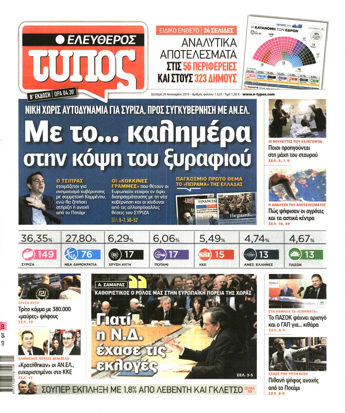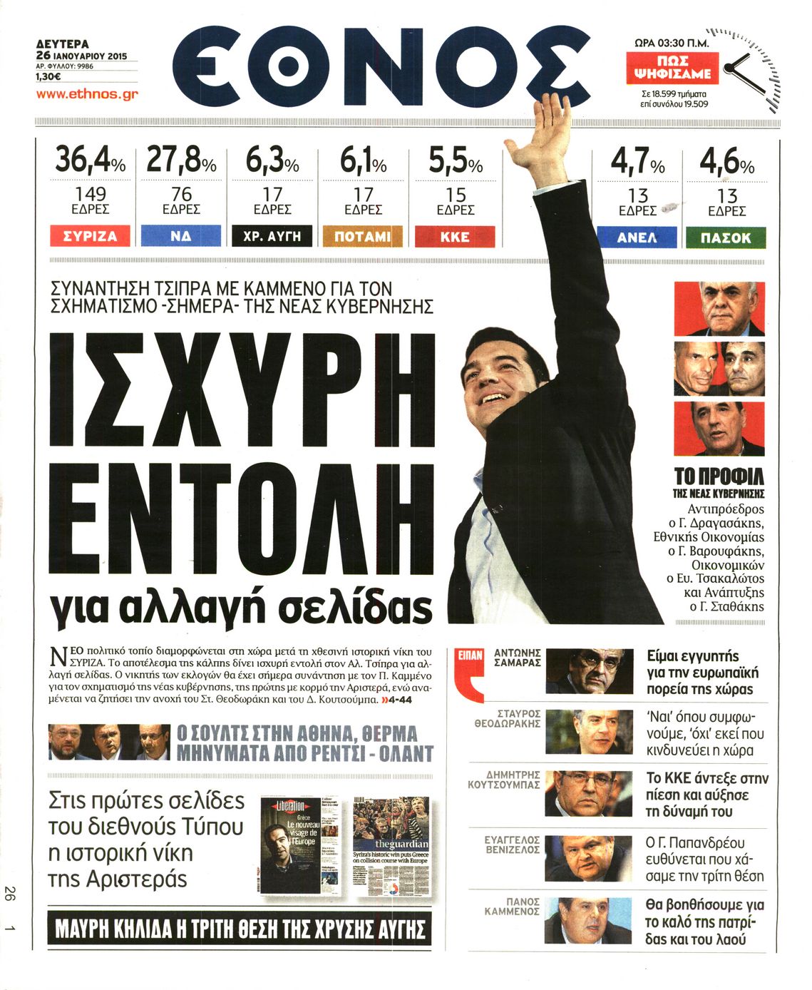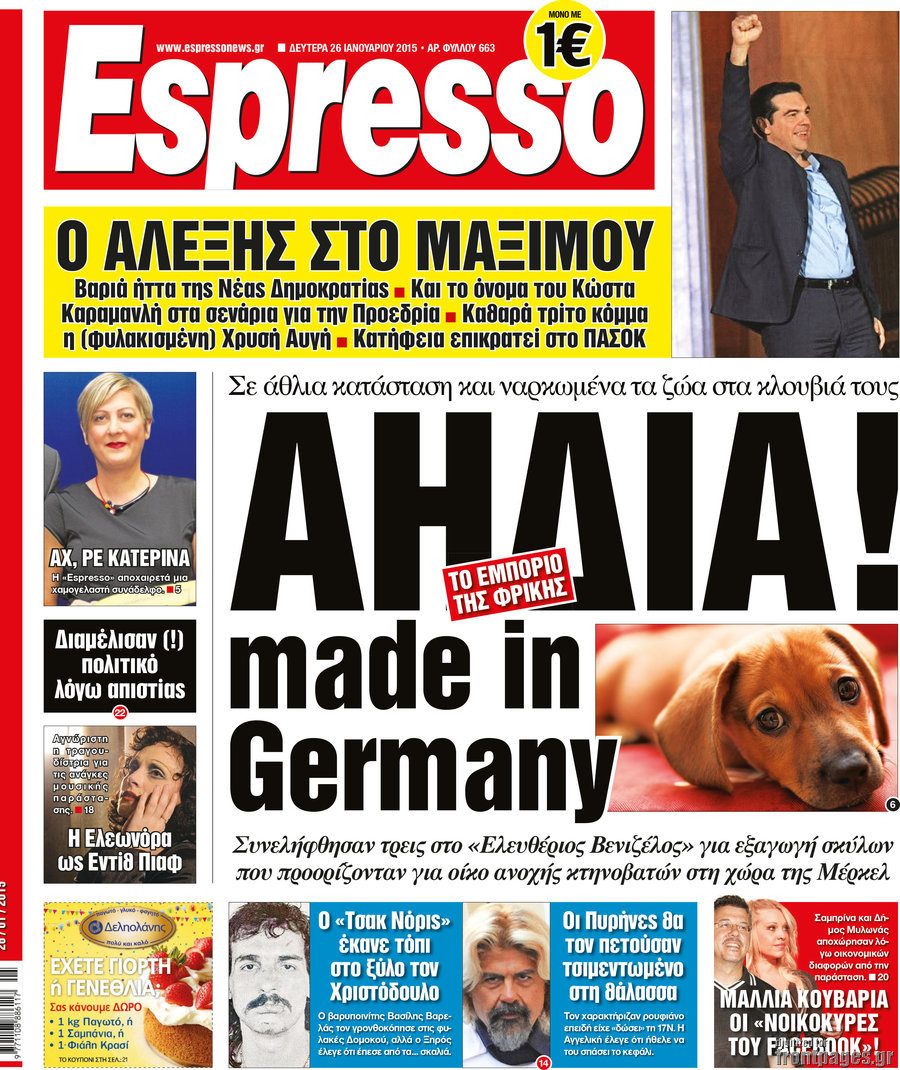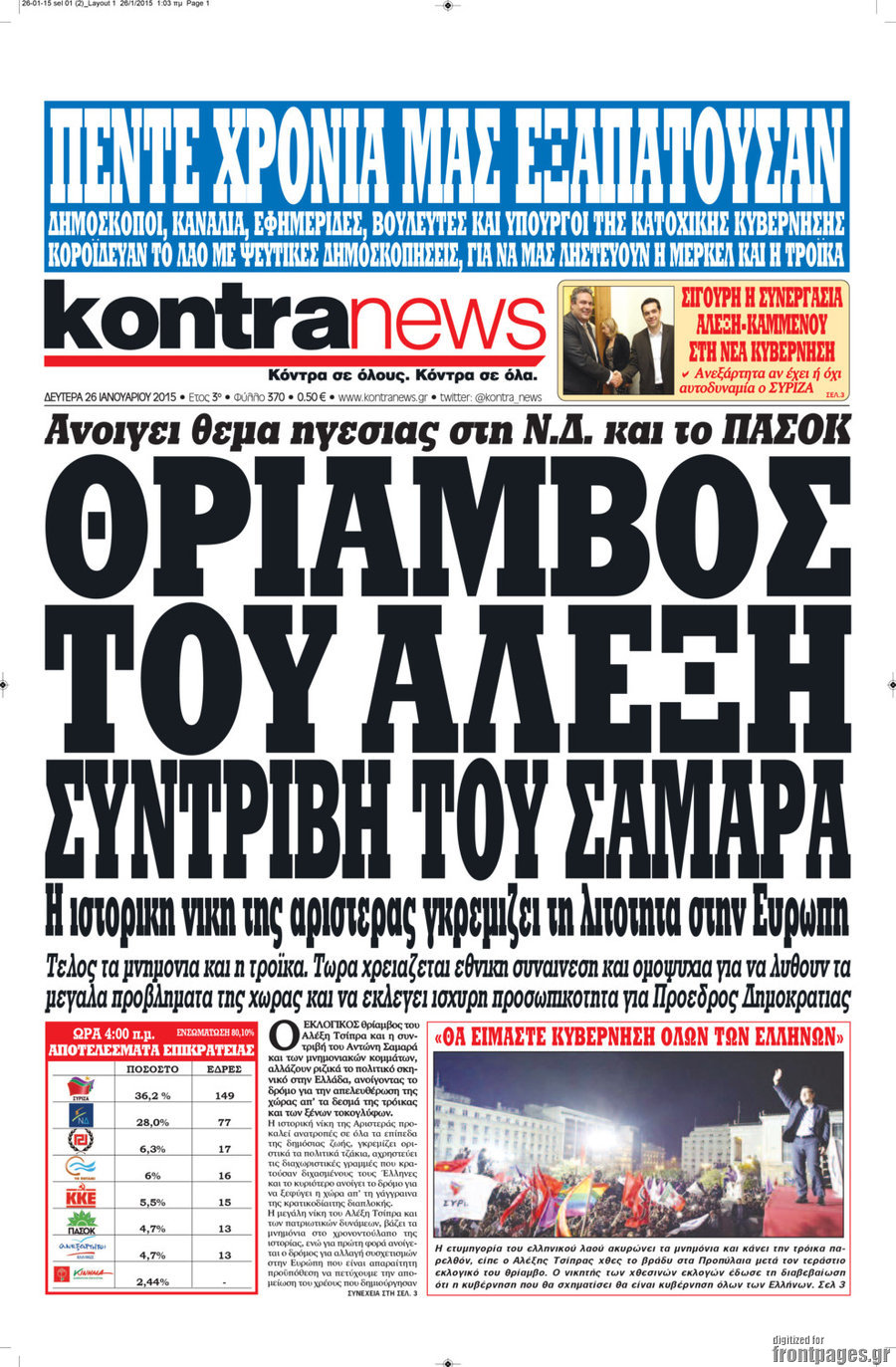 Οι πολιτικές εφημερίδες Enikos Newsroom 07:57, Δευτέρα 26 Ιανουαρίου 2015 Media Διαβάστε τα πρωτοσέλιδα των πολιτικών εφημερίδων: ΕΦΗΜΕΡΙΔΕΣ ΠΟΛΙΤΙΚΕΣ ΕΦΗΜΕΡΙΔΕΣ ΠΡΩΤΟΣΕΛΙΔΑ Μοιράσου το: σχολίασε κι εσύ (0 σχόλια) Ακολουθήστε το enikos.gr στο Google News και μάθετε πρώτοι όλες τις ειδήσεις Δείτε όλες τις τελευταίες ειδήσεις από την Ελλάδα και τον Κόσμο στο enikos.gr Ειδήσεις Ροή Ειδήσεων 5 ώρες πριν Χριστούγεννα στα μπλόκα: Επιμένουν στις κινητοποιήσεις τους οι αγρότες – Ανοίγουν τα διόδια το Σαββατοκύριακο 5 ώρες πριν Ουκρανία: Η άνευ προηγουμένου επίθεση σε ρωσικό τάνκερ στη Μεσόγειο και το μήνυμα προς στον Πούτιν – Το «μακρύ χέρι» του Κιέβου 4 ώρες πριν Πούτιν: Τα μηνύματα σε Ευρώπη και ΝΑΤΟ από το μαραθώνιο «σόου» του – Η απαίτηση για «σεβασμό» και η ειρήνη «με τους όρους» της Μόσχας 5 ώρες πριν Τραμπ: Δεν αποκλείει την πιθανότητα ενός πολέμου στη Βενεζουέλα – «Ο Μαδούρο ξέρει καλύτερα από τον καθένα τι ακριβώς θέλω» 6 ώρες πριν Συνεχίζει να προκαλεί ο Μίτσκοσκι: «Για μένα το όνομα Μακεδονία είναι ιερό» 5 ώρες πριν Ανακαλύφθηκαν αρχαία χρυσά νομίσματα 2.200 ετών που απεικονίζουν τον θεό Απόλλωνα – Η άγνωστη σύνδεση με τον Φίλιππο Β΄ της Μακεδονίας 5 ώρες πριν Ύπνος: Μια κρυφή κατάσταση του εγκεφάλου πριν από τον ύπνο μπορεί να είναι το “κλειδί” για υψηλή ευφυΐα και δημιουργικότητα 6 ώρες πριν Αριθμολογία: Οι άνθρωποι που έχουν γεννηθεί αυτές τις 4 ημερομηνίες, συχνά παρεξηγούνται – «Η καλοσύνη τους κρύβει τεράστια δύναμη» 7 ώρες πριν Ξεχάστε το καθάρισμα το Σαββατοκύριακο: Ο «κανόνας των 20 λεπτών» που θα σας λύσει τα χέρια 10 λεπτά πριν Ταμίλα Κουλίεβα: «Δεν θέλω να είμαι κάποια που πορεύεται συνεχώς με τις ίδιες αναφορές» 25 λεπτά πριν Η Ελλάδα προσχωρεί στη Διεθνή Επιτροπή Αποζημιώσεων για την Ουκρανία 40 λεπτά πριν GNTM: Η Ξένια Τσίρκοβα αναδείχθηκε μεγάλη νικήτρια και πήρε τις 50.000 ευρώ – Ποιος βρέθηκε σε απόσταση αναπνοής; 55 λεπτά πριν Θεσσαλονίκη: Εξαφανίστηκε 13χρονος από χώρο φιλοξενίας ασυνόδευτων ανηλίκων στο Ωραιόκαστρο 1 ώρα πριν Ντόναλντ Τραμπ: «Πολύ βαριά αντίποινα» στη Συρία – «Πλήττουμε πολύ δυνατά οχυρά του Ισλαμικού Κράτους» ENIKOS NETWORK Το ΕΚΑΒ τιμήθηκε από την Ακαδημία Αθηνών για τα 40 χρόνια προσφοράς του Έχετε πραγματικά μεγάλη καρδιά; 10 χαρακτηριστικά όσων έχουν καλοσύνη Αναστολή μέτρων αναγκαστικής εκτέλεσης για κτηνοτρόφους που πλήττονται από την ευλογιά των αιγοπροβάτων Πλήρης επάρκεια προϊόντων στις λαϊκές της Αττικής, παρά τις αγροτικές κινητοποιήσεις – Τι απαντούν οι πωλητές Χαρτογραφώντας το «σημείο χωρίς επιστροφή»: Για πρώτη φορά αποκαλύπτεται με λεπτομέρεια το ακανθώδες όριο της ατμόσφαιρας τ... Η Google καταργεί τη λειτουργία «dark web report» – Πώς θα μπορούν οι χρήστες να διαγράφουν τα δεδομένα τους περισσότερα 02:50 , Σάββατο 20 Δεκεμβρίου 2025 GNTM: Η Ξένια Τσίρκοβα αναδείχθηκε μεγάλη νικήτρια και πήρε τις 50.000 ευρώ – Ποιος βρέθηκε σε απόσταση αναπνοής; Με φαντασμαγορικό τρόπο ολοκληρώθηκε το βράδυ της Παρασκευής ο μεγάλος τελικός του GNTM, μέσα ... 22:42 , Παρασκευή 19 Δεκεμβρίου 2025 Γιώργος Γιαννόπουλος για “Το σόι σου”: “Είναι ευτυχία και ευλογία αυτή η σειρά” «Είναι ευτυχία και ευλογία η συγκυρία αυτής της σειράς», θα πει ο Γιώργος Γιαννόπουλος -ο αγαπ... 20:37 , Παρασκευή 19 Δεκεμβρίου 2025 Don’t Forget The Lyrics: Η Έλλη Κοκκίνου υποδέχεται 4 παίκτες που θα κάνουν τα πάντα για να μη χάσουν ούτε… μισή λέξη από τους στίχους Το «Don’t Forget The Lyrics» επιστρέφει απόψε, Πα