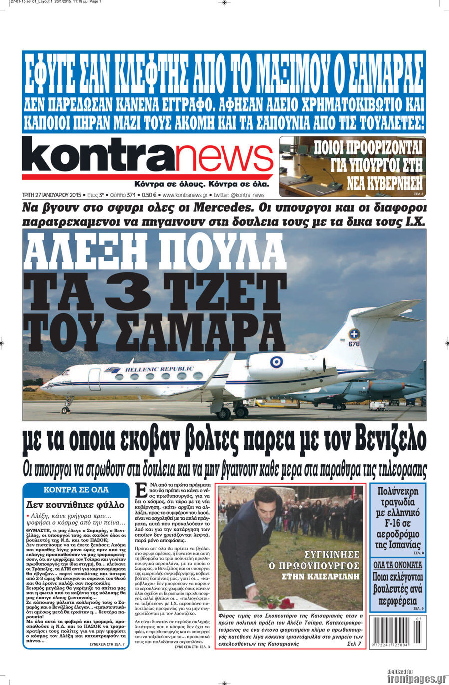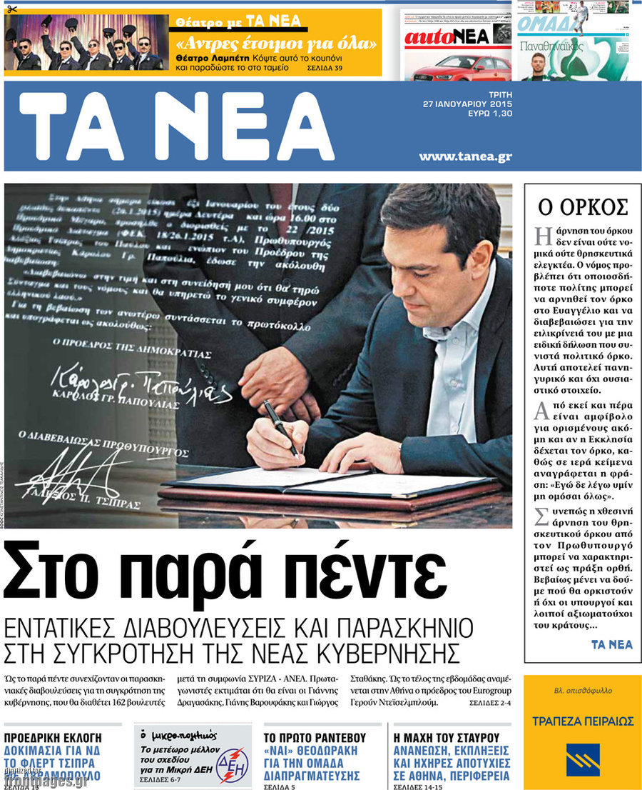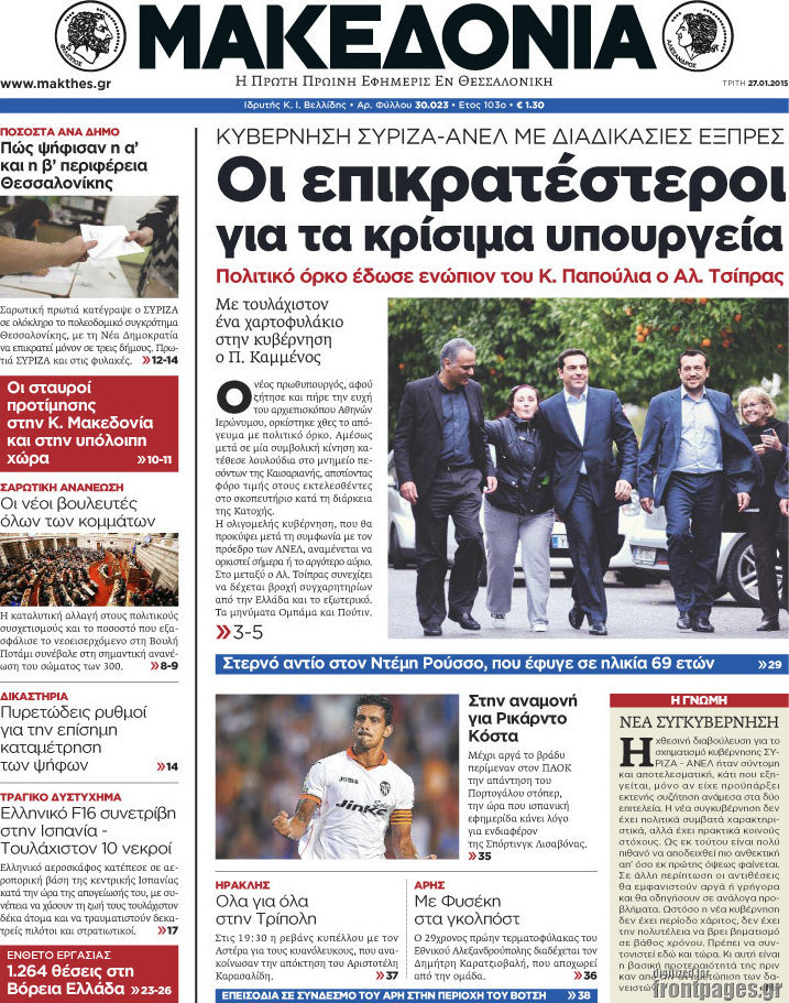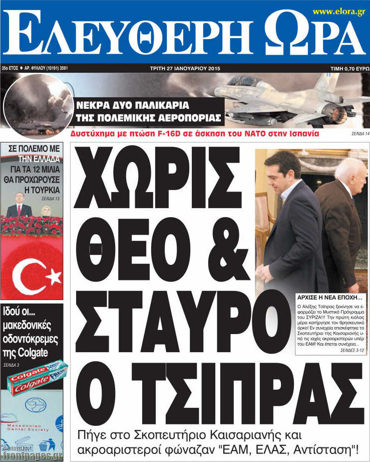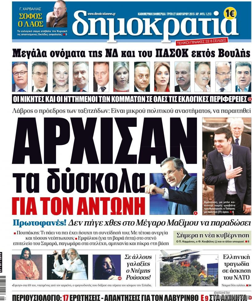 Οι πολιτικές εφημερίδες Enikos Newsroom 07:45, Τρίτη 27 Ιανουαρίου 2015 Media ΠΟΛΙΤΙΚΕΣ ΕΦΗΜΕΡΙΔΕΣ ΠΡΩΤΟΣΕΛΙΔΑ Μοιράσου το: σχολίασε κι εσύ (0 σχόλια) Ακολουθήστε το enikos.gr στο Google News και μάθετε πρώτοι όλες τις ειδήσεις Δείτε όλες τις τελευταίες ειδήσεις από την Ελλάδα και τον Κόσμο στο enikos.gr Ειδήσεις Ροή Ειδήσεων 2 ώρες πριν Μπλόκα: Οι αγρότες σηκώνουν τις μπάρες σε διόδια για τους εκδρομείς των Χριστουγέννων και μοιράζουν προϊόντα – Βίντεο 3 ώρες πριν Τσιάρας προς αγρότες: Τα μπλόκα και τα πείσματα δεν ωφελούν – Οι λύσεις περνούν μέσα από τον διάλογο 4 ώρες πριν Αρχεία Έπσταϊν: Οι συγκλονιστικές φωτογραφίες – Ο Μάικλ Τζάκσον, ο Μικ Τζάγκερ και ο Κέβιν Σπέισι ανάμεσα στους διάσημους που απεικονίζονται 2 ώρες πριν Μαθητές διακινούσαν κοκαΐνη και χασίς σε σχολείο της Αττικής – 12 συλλήψεις 2 ώρες πριν Βέλγιο: Άγνωστοι έριξαν κόκκινη μπογιά στο προξενείο της Πολωνίας στις Βρυξέλλες 6 ώρες πριν Μία νέα «χρυσή» περίοδος αρχίζει για 3 ζώδια από σήμερα – «Μία αναπάντεχη ευκαιρία οδηγεί στην επιτυχία» 4 ώρες πριν Διαιτολόγος αποκαλύπτει 9 πρωινές συνήθειες που «λιώνουν» το κοιλιακό λίπος – «Υποστηρίζουν την υγιεινή απώλεια βάρους» 5 ώρες πριν Οι 7 φράσεις που δεν λένε ποτέ οι συναισθηματικά έξυπνοι άνθρωποι κατά τη διάρκεια ενός καβγά 7 ώρες πριν Enerwave: Το νέο «ρεύμα» στη λιανική ενέργειας που αλλάζει την εμπειρία του καταναλωτή 13 λεπτά πριν Στο νοσοκομείο ο Λευτέρης Πανταζής – Τι συνέβη 22 λεπτά πριν Super League: Με Κηφισιά ο Ολυμπιακός για να «κλείσει» το 2025 στην κορυφή – Αναλυτικά το πρόγραμμα της 15ης αγωνιστικής 27 λεπτά πριν ΕΛΑΣ: Συνελήφθησαν Υπαρχιπυροσβέστης και δύο ακόμη άτομα για κατοχή και διακίνηση ναρκωτικών ουσιών – Η καταγγελία και ο τιμοκατάλογος 35 λεπτά πριν Πακιστάν: Σε κάθειρξη 17 ετών καταδικάστηκαν ο πρώην πρωθυπουργός Ίμραν Χαν και η σύζυγός του 43 λεπτά πριν Μαρινάκης στον Realfm 97,8: Η κυβέρνηση σέβεται κάθε λογική διεκδίκηση των αγροτών, αλλά και το αίτημα των πολιτών να μην ταλαιπωρούνται ENIKOS NETWORK Η αποχή από την αναπαραγωγή παρατείνει τη ζωή στα ζώα, σύμφωνα με μελέτη – Τι ισχύει για τους ανθρώπους; Σημαντικές επαφές στις ΗΠΑ είχε ο υπουργός Υγείας Άδωνις Γεωργιάδης Επιτροπή Ανταγωνισμού: Στο μικροσκόπιο σχολικές τσάντες και επώνυμα brands – Τι ερευνάται Ευλογιά αιγοπροβάτων: Παρατεταμένη επιζωοτία, αυστηρά μέτρα – Τι ισχύει για τον εμβολιασμό και την ανασύσταση του ζωικού κε... Χαρτογραφώντας το «σημείο χωρίς επιστροφή»: Για πρώτη φορά αποκαλύπτεται με λεπτομέρεια το ακανθώδες όριο της ατμόσφαιρας τ... Η Google καταργεί τη λειτουργία «dark web report» – Πώς θα μπορούν οι χρήστες να διαγράφουν τα δεδομένα τους περισσότερα 14:04 , Σάββατο 20 Δεκεμβρίου 2025 Η Realnews αυτής της Κυριακής (21/12/2025) Με τίτλο: «Ασπίδα προστασίας για την Ελλάδα» κυκλοφορεί, αυτήν την Κυριακή, η Realnews. Σημαντ... 12:53 , Σάββατο 20 Δεκεμβρίου 2025 Να μ’ αγαπάς: Το παρελθόν έρχεται στο φως – Καταιγιστικές εξελίξεις στα τελευταία επεισόδια του 2025 Ο Άγγελος αποκαλύπτεται, η Φωτεινή ανησυχεί για τον Λευτέρη και η Ζωή έρχεται αντιμέτωπη με το... 11:41 , Σάββατο 20 Δεκεμβρίου 2025 «Η αγάπη δεν χάνεται ποτέ»: Η μικρού μήκους ταινία κινουμένων σχεδίων που θέτει ερωτήματα για τη ζωή και τον θάνατο Ο θάνατος είναι ένα από τα πιο σκληρά θέματα που καλείται να διαχειριστεί κάποιος στη διάρκεια... 09:30 , Σάββατο 20 Δεκεμβρίου 2025 «Porto Leone: Στη γειτονιά με τα κόκκινα φανάρια» – Ο Χρόνης αποκαλύπτει στην Αλεξάνδρα το μυστικό 
