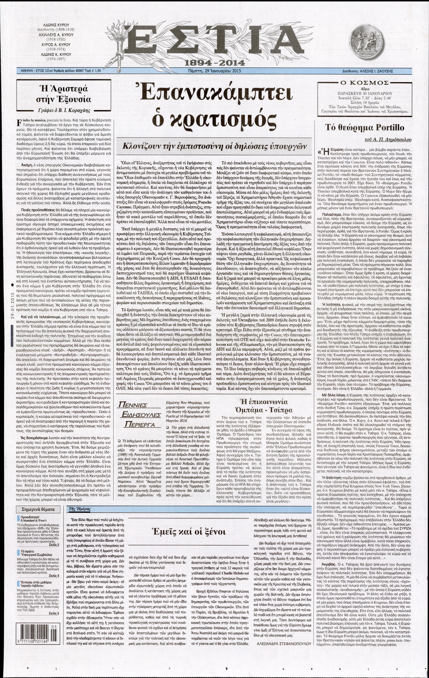 Οι πολιτικές εφημερίδες Enikos Newsroom 07:46, Πέμπτη 29 Ιανουαρίου 2015 Media Διαβάστε τα πρωτοσέλιδα των πολιτικών εφημερίδων: ΕΦΗΜΕΡΙΔΕΣ ΠΟΛΙΤΙΚΕΣ ΕΦΗΜΕΡΙΔΕΣ ΠΡΩΤΟΣΕΛΙΔΑ Μοιράσου το: σχολίασε κι εσύ (0 σχόλια) Ακολουθήστε το enikos.gr στο Google News και μάθετε πρώτοι όλες τις ειδήσεις Δείτε όλες τις τελευταίες ειδήσεις από την Ελλάδα και τον Κόσμο στο enikos.gr Ειδήσεις Ροή Ειδήσεων 2 ώρες πριν Γιορτές με μπλόκα για τους αγρότες: Ανοίγουν διόδια και μοιράζουν προϊόντα στους ταξιδιώτες 2 ώρες πριν Τα αρχεία του Έπσταϊν αποκαλύπτουν φωτογραφία του έκπτωτου πρίγκιπα Άντριου – Είναι ξαπλωμένος στην αγκαλιά 5 γυναικών 1 ώρα πριν Νέες ταυτότητες: Μεγάλη αναμονή για ραντεβού στην Αττική – Τέλος τα ταξίδια εκτός Ελλάδος από τον Αύγουστο για όσους δεν έχουν αλλάξει 2 ώρες πριν Εξαφάνιση 33χρονου γιατρού στην Κρήτη: «Άναψα τα φώτα, τρόμαξε και άρχισε να τρέχει στα χωράφια» – Η τελευταία διαδρομή και η μαρτυρία «κλειδί» 31 λεπτά πριν Ινδία: Επτά ελέφαντες σκοτώθηκαν κατά τη σύγκρουση επιβατικού τρένου με κοπάδι 2 ώρες πριν Μία νέα «χρυσή» περίοδος αρχίζει για 3 ζώδια από σήμερα – «Μία αναπάντεχη ευκαιρία οδηγεί στην επιτυχία» 4 ώρες πριν Αρχαιολόγοι ανακάλυψαν σε χωράφι απεικόνιση 600 ετών ενός Αγίου – Τα στοιχεία που δείχνουν ότι μαρτύρησε 3 ώρες πριν Αγχώνεται για το χριστουγεννιάτικο δώρο που πήρε στην πλούσια σύντροφό του – «Φοβάμαι πως θα το βρει φθηνιάρικο, φοράει βραχιόλια Cartier» 28 λεπτά πριν Διαιτολόγος αποκαλύπτει 9 πρωινές συνήθειες που «λιώνουν» το κοιλιακό λίπος – «Υποστηρίζουν την υγιεινή απώλεια βάρους» 8 λεπτά πριν Χρήστος Μάντακας: «Θα μπορούσα να είχα φύγει από τη ζωή, δεν μπορούσα να περπατήσω…» 15 λεπτά πριν Εντυπωσιακό βίντεο από «τσουνάμι» πάγου στη Σιβηρία – Πώς προκαλείται το σπάνιο φαινόμενο 23 λεπτά πριν Μυλωνάκης κατά Τζάκρη: Την καλώ να ανασκευάσει το αδιανόητο ψέμα της. Η ανοχή έχει και τα όρια της» 28 λεπτά πριν Διαιτολόγος αποκαλύπτει 9 πρωινές συνήθειες που «λιώνουν» το κοιλιακό λίπος – «Υποστηρίζουν την υγιεινή απώλεια βάρους» 31 λεπτά πριν Ινδία: Επτά ελέφαντες σκοτώθηκαν κατά τη σύγκρουση επιβατικού τρένου με κοπάδι ENIKOS NETWORK Είστε μόνιμα απρόσεκτοι; 3 σημάδια που δείχνουν ότι μπορεί να είναι σύμπτωμα πάθησης Πόσα κιλά παίρνουμε πραγματικά τα Χριστούγεννα, σύμφωνα με την επιστήμη – Πώς να το αποτρέψουμε; Χριστούγεννα και Πρωτοχρονιά: Πώς αμείβονται όσοι εργαστούν e-ΕΦΚΑ και ΔΥΠΑ: Έρχονται νέες πληρωμές έως τις 24 Δεκεμβρίου – Ποιοι πάνε ταμείο Χαρτογραφώντας το «σημείο χωρίς επιστροφή»: Για πρώτη φορά αποκαλύπτεται με λεπτομέρεια το ακανθώδες όριο της ατμόσφαιρας τ... Η Google καταργεί τη λειτουργία «dark web report» – Πώς θα μπορούν οι χρήστες να διαγράφουν τα δεδομένα τους περισσότερα 11:41 , Σάββατο 20 Δεκεμβρίου 2025 «Η αγάπη δεν χάνεται ποτέ»: Η μικρού μήκους ταινία κινουμένων σχεδίων που θέτει ερωτήματα για τη ζωή και τον θάνατο Ο θάνατος είναι ένα από τα πιο σκληρά θέματα που καλείται να διαχειριστεί κάποιος στη διάρκεια... 09:30 , Σάββατο 20 Δεκεμβρίου 2025 «Porto Leone: Στη γειτονιά με τα κόκκινα φανάρια» – Ο Χρόνης αποκαλύπτει στην Αλεξάνδρα το μυστικό για το παιδί της Λένας Η μεγάλη δραματική σειρά του Apha «Porto Leone: Στη γειτονιά με τα κόκκινα φανάρια» μας μεταφέ... 08:14 , Σάββατο 20 Δεκεμβρίου 2025 Τρομεροί γονείς: Η Μαρία Καβογιάννη εισβάλλει στο σπίτι της οικογένειας Στεφανίδη Όσα θα δούμε στο νέο διπλό επεισόδιο της σειράς «Τρομεροί γονείς», σήμερα Σάββατο
