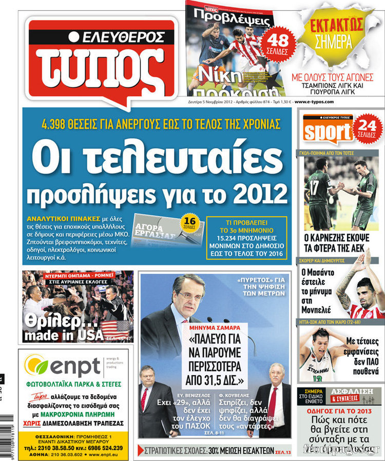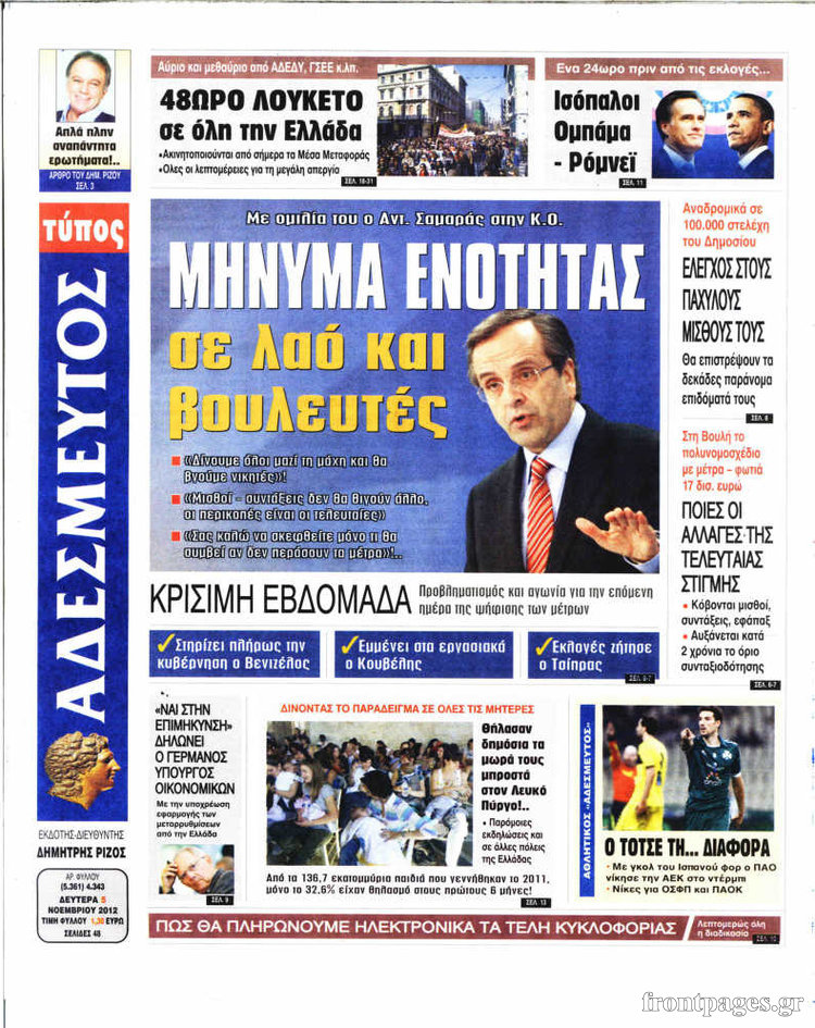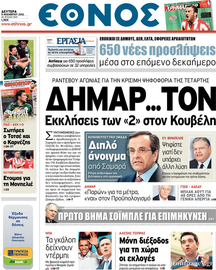 Οι πολιτικές εφημερίδες Enikos Newsroom 08:07, Δευτέρα 05 Νοεμβρίου 2012 Media Οι πολιτικές εφημερίδες ΕΦΗΜΕΡΙΔΕΣ Μοιράσου το: σχολίασε κι εσύ (0 σχόλια) Ακολουθήστε το enikos.gr στο Google News και μάθετε πρώτοι όλες τις ειδήσεις Δείτε όλες τις τελευταίες ειδήσεις από την Ελλάδα και τον Κόσμο στο enikos.gr Ειδήσεις Ροή Ειδήσεων 2 ώρες πριν Αυξάνουν την πίεση προς την κυβέρνηση οι αγρότες: Κλείνουν παρακαμπτήριους και ανοίγουν διόδια – Τι θα γίνει τις γιορτές 1 ώρα πριν ΟΠΕΚΕΠΕ: Προφυλακιστέος ο φερόμενος αρχηγός και ο λογιστής της εγκληματικής οργάνωσης 2 ώρες πριν Φοινικούντα: Το Σάββατο απολογείται ο 30χρονος γιος γνωστού επιχειρηματία της Πλάκας που παραδόθηκε – Όσα είπε στους αστυνομικούς και ο ρόλος του στο έγκλημα 2 ώρες πριν Μπορεί ο Μαδούρο να αντέξει τον αποκλεισμό του Τραμπ; Τι θα χρειαστεί η Ουάσινγκτον για να τον ανατρέψει 3 ώρες πριν Πρίγκιπας Ουίλιαμ – Κέιτ: Η νέα οικογενειακή φωτογραφία για τις Χριστουγεννιάτικες κάρτες του 2025 3 ώρες πριν Ύπνος: Η απλή βραδινή ρουτίνα για να προστατεύσετε τα μαλλιά σας από το κρύο κατά τη διάρκεια του χειμώνα 4 ώρες πριν Manifesting: Πώς να συναντήσετε τον σύντροφο της ζωής σας, ανάλογα με τον μήνα γέννησής σας 2 ημέρες πριν 20 χρόνια τα Χριστούγεννα ξεκινούν στα Public με μεγάλη ποικιλία σε δώρα! 2 ώρες πριν Αρχαιολόγοι ανακάλυψαν ρωμαϊκά τεχνουργήματα από μια πόλη που δεν υπήρξε ποτέ – Τα τρία εντυπωσιακά κτίρια και ο αμφορέας με τις… σαρδέλες 16 λεπτά πριν Βαθμολογία UEFA: Η Πολωνία προσπέρασε την Ελλάδα 32 λεπτά πριν Conference League: Οι ομάδες που προκρίθηκαν στους «16» και τα «ζευγαρώματα» στα νοκ άουτ 40 λεπτά πριν ΑΕΚ – Κραϊόβα 3-2: Επική ανατροπή και πρόκριση στους «16» του Conference League η Ένωση 1 ώρα πριν ΟΠΕΚΕΠΕ: Προφυλακιστέος ο φερόμενος αρχηγός και ο λογιστής της εγκληματικής οργάνωσης 1 ώρα πριν Αθηνά Μαξίμου: Η τρυφερή ανάρτηση για τα γενέθλια του Αιμίλιου Χειλάκη – «Είναι η εκλεκτική συγγένειά μου, η επιλογή και η ευθύνη μου» ENIKOS NETWORK Σε περίοδο αυξημένης δραστηριότητας η γρίπη στην Ελλάδα-Μέτρα προστασίας από τον ΕΟΔΥ Σκέφτεστε συνέχεια συζητήσεις που έχετε κάνει; Τι σημαίνει αυτό, σύμφωνα με ειδικό Στεγαστικό: Τι λέει η ΠΟΜΙΔΑ για τα νέα μέτρα που ανακοίνωσε ο Κυριάκος Μητσοτάκης Λαγκάρντ: Αισιόδοξη για την ανάπτυξη της Ευρωζώνης, αβέβαιη για τον πληθωρισμό Χαρτογραφώντας το «σημείο χωρίς επιστροφή»: Για πρώτη φορά αποκαλύπτεται με λεπτομέρεια το ακανθώδες όριο της ατμόσφαιρας τ... Η Google καταργεί τη λειτουργία «dark web report» – Πώς θα μπορούν οι χρήστες να διαγράφουν τα δεδομένα τους περισσότερα 17:45 , Πέμπτη 18 Δεκεμβρίου 2025 ROUK ZOUK: Εορταστικό επεισόδιο με καλεσμένους τους πρωταγωνιστές του «Γιατί ρε πατέρα» Το Σάββατο 20 Δεκεμβρίου στις 21:00, η Ζέτα Μακρυπούλια υποδέχεται εκλεκτούς ηθοποιούς που όλο... 17:20 , Πέμπτη 18 Δεκεμβρίου 2025 Άγιος έρωτας: Η Χριστίνα εξομολογείται στον πατέρα Νικόλαο, απόψε στις 21:00 στον Alpha Η Νότα αποφασίζει να εκδικηθεί τον Πέτρο και τον Στέφανο, για χάρη του Λούη, όμως τα πράγματα ... 16:50 , Πέμπτη 18 Δεκεμβρίου 2025 Να μ’ αγαπάς: Ζωή και Φωτεινή συμφιλιώνονται ως μάνα με κόρη, απόψε στις 20:00 Η ταυτότητα του Άγγελου αποκαλύπτεται στο νέο επεισόδιο της σειράς “Να μ’ αγαπάς... 15:52 , Πέμπτη 18 Δεκεμβρίου 2025 Το Σπίτι Δίπλα Στο Ποτάμι: Το καθηλωτικό τελευταίο επεισόδιο για το 2025 απόψε στις 22:30 Καθηλώνει το σημερινό επεισόδιο της σειράς “Το Σπίτι Δίπλα Στο Ποτάμι” που έρχεται... ΤΕΛΕΥΤΑΙΕΣ ΕΙΔΗΣΕΙΣ 16 λεπτά πριν Βαθμολογία UEFA: Η Π