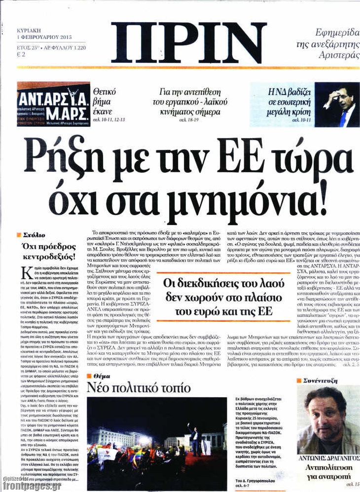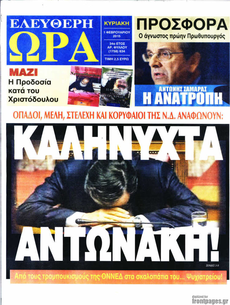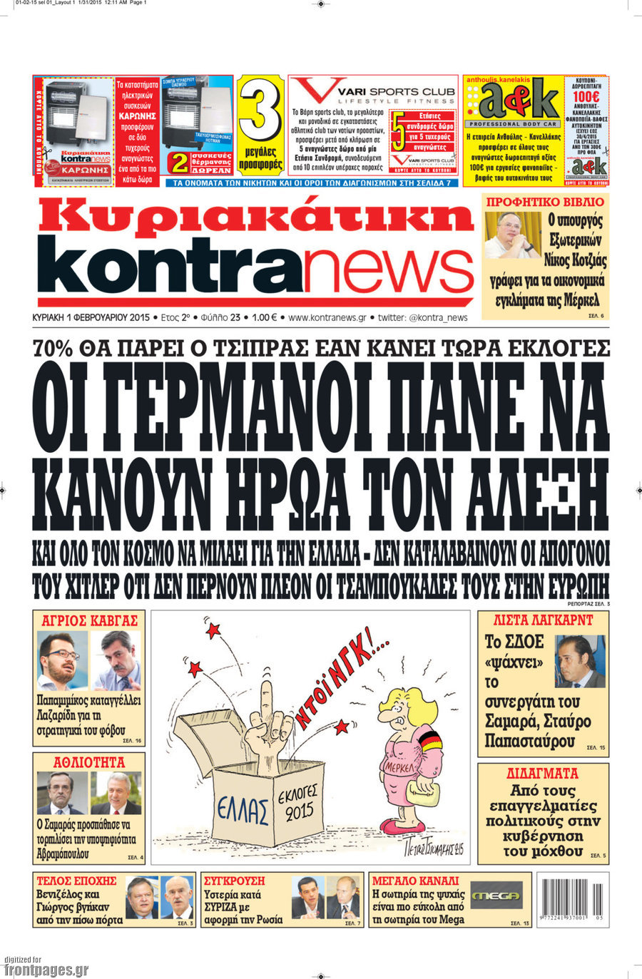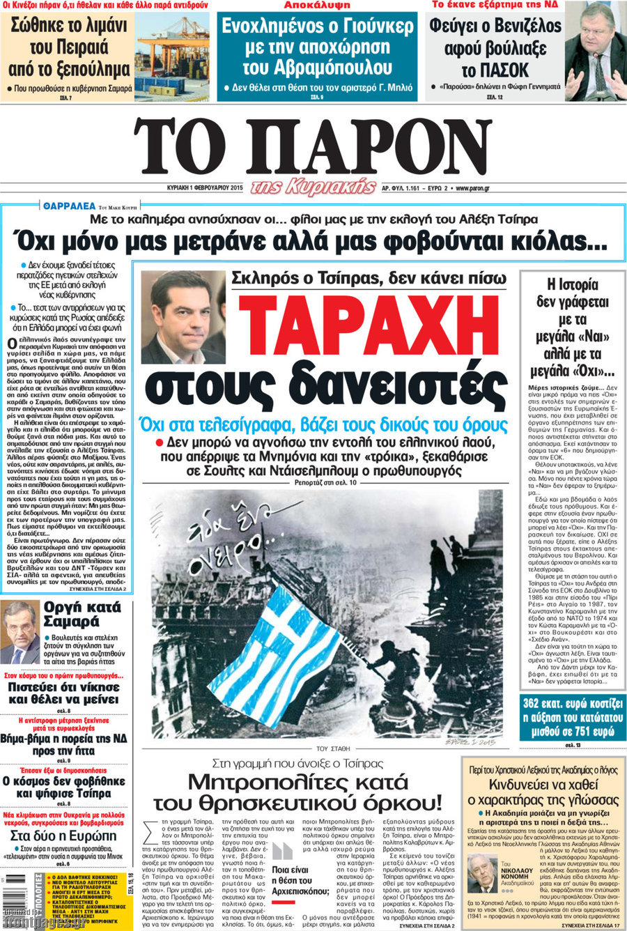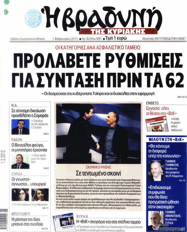 Οι πολιτικές εφημερίδες Enikos Newsroom 07:45, Κυριακή 01 Φεβρουαρίου 2015 Media Διαβάστε τα πρωτοσέλιδα των πολιτικών εφημερίδων: ΕΦΗΜΕΡΙΔΕΣ ΠΟΛΙΤΙΚΕΣ ΕΦΗΜΕΡΙΔΕΣ ΠΡΩΤΟΣΕΛΙΔΑ Μοιράσου το: σχολίασε κι εσύ (0 σχόλια) Ακολουθήστε το enikos.gr στο Google News και μάθετε πρώτοι όλες τις ειδήσεις Δείτε όλες τις τελευταίες ειδήσεις από την Ελλάδα και τον Κόσμο στο enikos.gr Ειδήσεις Ροή Ειδήσεων 38 λεπτά πριν Διάλογοι-σοκ από το κύκλωμα που διακινούσε ναρκωτικά σε σχολεία – «Αν δεν είσαι εκεί σε 5 λεπτά, θα φας πολύ ξύλο μπρο» 2 ώρες πριν Αγρότες από το μπλόκο Νίκαιας κλείνουν τη Δευτέρα τις σήραγγες των Τεμπών για τα φορτηγά – Τι αποφάσισαν 5 ώρες πριν Κηφισιά: Δύο συλλήψεις για ληστεία με λεία 180.000 ευρώ – Βίντεο ντοκουμέντα από τη δράση των συλληφθέντων 2 ώρες πριν Ζελένσκι: Τάχθηκε σήμερα υπέρ της διεξαγωγής ευρύτερων διαβουλεύσεων με Ευρωπαίους εταίρους 3 ώρες πριν Θεσσαλονίκη: Με Αγιοβασίληδες γέμισε ο Θερμαϊκός στο 5ο Santa SUP 6 ώρες πριν Τα άστρα ευνοούν σκανδαλωδώς 4 ζώδια – «Εμφανίζονται ξαφνικά ευκαιρίες γιατί αποφασίζετε να αφήσετε πίσω το παρελθόν» 4 ώρες πριν Οι άνθρωποι που στρώνουν το κρεβάτι τους κάθε πρωί, διαθέτουν αυτές τις 8 κρυφές δυνάμεις 1 ώρα πριν Ένα πλάσμα στα βάθη της θάλασσας απορροφά άνθρακα από την ατμόσφαιρα – «Δεν είχαμε ιδέα για την ύπαρξή του» 1 ημέρα πριν Enerwave: Το νέο «ρεύμα» στη λιανική ενέργειας που αλλάζει την εμπειρία του καταναλωτή 9 λεπτά πριν Αν ανήκετε σε ένα από αυτά τα 3 ζώδια, το 2026 θα είναι η χρονιά σας – «Η ζωή σας βελτιώνεται σε όλους τους τομείς» 16 λεπτά πριν Φάμελλος: Πάγια θέση του ΣΥΡΙΖΑ η επαναφορά 13ου και 14ου μισθού και 13ης σύνταξης 22 λεπτά πριν Ελβετία: Ανοιχτό το ενδεχόμενο απαγόρευσης των social media στα παιδιά – «Πρέπει να τα προστατεύσουμε καλύτερα» 29 λεπτά πριν Σόφη Ζαννίνου: «Έκλαιγε τόσο πολύ ο Βέγγος που είπα να τον πάρουν, μην πάθει κάτι και το έχω βάρος στη συνείδησή μου» 38 λεπτά πριν Διάλογοι-σοκ από το κύκλωμα που διακινούσε ναρκωτικά σε σχολεία – «Αν δεν είσαι εκεί σε 5 λεπτά, θα φας πολύ ξύλο μπρο» ENIKOS NETWORK Ο εγκέφαλός μας ξεπερνά ακόμα σε εξυπνάδα το ΑΙ – Ποιο είναι αυτό στο οποίο είμαστε καλύτεροι Φοράτε ψηλοτάκουνα παπούτσια; Ποδίατροι συμβουλεύουν πόσο ψηλά επιτρέπεται να είναι και πώς να τα επιλέξετε ΕΚΤ: Προβλέπει χαμηλότερες τιμές ενέργειας και αποκλιμάκωση πληθωρισμού στην Ευρωζώνη το 2026 IRIS: Διπλασιάζεται το όριο μεταφοράς χρημάτων μεταξύ ιδιωτών – Οι νέες αλλαγές και πότε θα εφαρμοστούν Χαρτογραφώντας το «σημείο χωρίς επιστροφή»: Για πρώτη φορά αποκαλύπτεται με λεπτομέρεια το ακανθώδες όριο της ατμόσφαιρας τ... Η Google καταργεί τη λειτουργία «dark web report» – Πώς θα μπορούν οι χρήστες να διαγράφουν τα δεδομένα τους περισσότερα 15:08 , Κυριακή 21 Δεκεμβρίου 2025 Μια νύχτα μόνο: Η Αρετή και ο Οδυσσέας έρχονται και πάλι κοντά Το νέο επεισόδιο της δραματικής σειράς του MEGA «Μια νύχτα μόνο», θα προβληθεί απόψε Κυριακή 2... 14:24 , Κυριακή 21 Δεκεμβρίου 2025 IQ 160: Ο φάκελος με το τεστ πατρότητας ανοίγει, απόψε στις 21:00 στο Star Ανατρεπτικό το νέο διπλό επεισόδιο της σειράς “IQ 160” στις 21:00 στο Star. Ο Τηλέ... 09:43 , Κυριακή 21 Δεκεμβρίου 2025 Το λάθος στην ταινία Die Hard που άφησε άναυδους τους θαυμαστές του Μπρους Γουίλις Ένας φανατικός των ταινιών άφησε άναυδους τους θαυμαστές του Die Hard, επισημαίνοντας τρία βασ... 08:13 , Κυριακή 21 Δεκεμβρίου 2025 Άγιος έρωτας: Ένας καταστροφικός σεισμός χτυπά τη Στέρνα Καταιγιστικές είναι οι εξελίξεις στα δυο τελευταία,