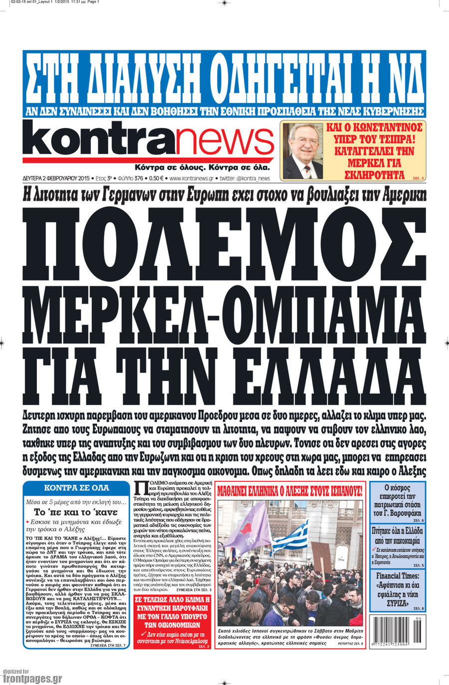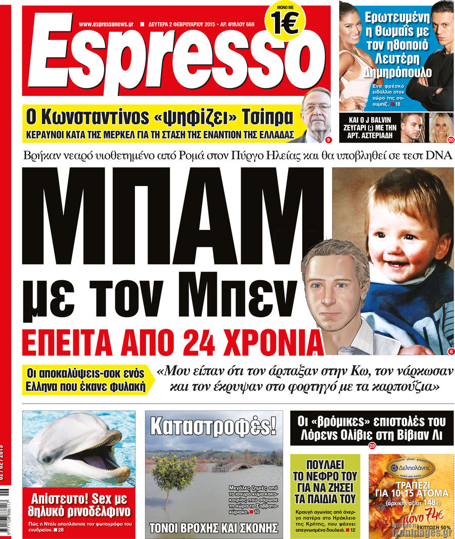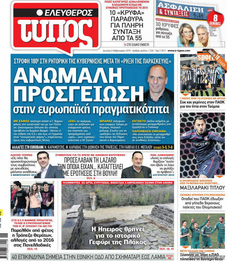 Οι πολιτικές εφημερίδες Enikos Newsroom 08:14, Δευτέρα 02 Φεβρουαρίου 2015 Media Διαβάστε τα πρωτοσέλιδα των πολιτικών εφημερίδων: ΠΟΛΙΤΙΚΕΣ ΕΦΗΜΕΡΙΔΕΣ ΠΡΩΤΟΣΕΛΙΔΑ Μοιράσου το: σχολίασε κι εσύ (0 σχόλια) Ακολουθήστε το enikos.gr στο Google News και μάθετε πρώτοι όλες τις ειδήσεις Δείτε όλες τις τελευταίες ειδήσεις από την Ελλάδα και τον Κόσμο στο enikos.gr Ειδήσεις Ροή Ειδήσεων 5 ώρες πριν Κύκλωμα διακίνησης ναρκωτικών σε σχολεία: Βίντεο ντοκουμέντο από τα βασανιστήρια στους ανήλικους – Συζητούσαν για το πώς θα κάνουν «ξέπλυμα χρήματος» 4 ώρες πριν Κλιμακώνουν τις κινητοποιήσεις τους οι αγρότες: Κλείνουν τη Δευτέρα τις σήραγγες των Τεμπών για τα φορτηγά – Ανοίγουν την Τρίτη τους δρόμους για τους εκδρομείς 5 ώρες πριν Αιματηρό επεισόδιο στον Άγιο Παντελεήμονα – Δύο τραυματίες, αναζητείται ο δράστης 4 ώρες πριν ΗΠΑ: Αυξάνουν την πίεση στην Βενεζουέλα – Το νέο ρεσάλτο σε τάνκερ και ο στόχος του Τραμπ 5 ώρες πριν Κασσελάκης για παραίτηση Μάλαμα: «Η πορεία μας δεν θα καθοριστεί από μεμονωμένα πρόσωπα, μηχανισμούς και προσωπικές ατζέντες» 4 ώρες πριν Αρχαιολογικό θρίλερ στην καρδιά της Ευρώπης: Παράξενο θραύσμα με ανάγλυφα και σφηνοειδή γραφή ανακαλύφθηκε σε μέρος που δεν περίμενε κανείς 5 ώρες πριν Ύπνος: Τι είναι ο «κανόνας 3-3-3» που χρησιμοποιεί ένας γιατρός για να ξεχωρίσει την κόπωση από την αϋπνία 6 ώρες πριν Αριθμολογία: Οι άνθρωποι που έχουν γεννηθεί αυτές τις 4 ημερομηνίες, είναι οι πιο πιστοί και αφοσιωμένοι σύντροφοι 2 ημέρες πριν Enerwave: Το νέο «ρεύμα» στη λιανική ενέργειας που αλλάζει την εμπειρία του καταναλωτή 15 λεπτά πριν Ξέσπασε ο Γιώργος Μαζωνάκης μετά τις καταγγελίες: «Εκπομπές στην τηλεόραση ξεφτιλίζουν ανθρώπους» 30 λεπτά πριν Κολομβία: Μονομερής εκεχειρία από τον ELN για την περίοδο των εορτών 45 λεπτά πριν ΗΠΑ: Επιχείρηση αναχαίτισης τάνκερ που συνδέεται με το Ιράν και κατευθυνόταν στη Βενεζουέλα 1 ώρα πριν Στιβ Γουίτκοφ: «Eποικοδομητικές» οι συνομιλίες με τη Ρωσία για την Ουκρανία 1 ώρα πριν Άννα Βίσση: Απάντησε στις φήμες περί αποχώρησης από τις πίστες – «…όσο έχω φωνή θα σας τραγουδάω» ENIKOS NETWORK Οι γυναίκες έχουν βρει μια νέα απόλαυση στην κρεβατοκάμαρα που οι περισσότεροι άνδρες αγνοούν Christmas glow: 5 χρυσές συμβουλές για επιδερμίδα που λάμπει από ομορφιά τα Χριστούγεννα Νέο έτος ρεκόρ για τον ελληνικό τουρισμό το 2025: «Είμαστε μέσα στους 10 πλέον επισκέψιμους προορισμούς παγκοσμίως» λέει η ... Τιμές καυσίμων: Πόσο θα πληρώσουν οι εκδρομείς των Χριστουγέννων – Το κόστος μετακινήσεων σε δημοφιλείς προορισμούς Χαρτογραφώντας το «σημείο χωρίς επιστροφή»: Για πρώτη φορά αποκαλύπτεται με λεπτομέρεια το ακανθώδες όριο της ατμόσφαιρας τ... Η Google καταργεί τη λειτουργία «dark web report» – Πώς θα μπορούν οι χρήστες να διαγράφουν τα δεδομένα τους περισσότερα 02:45 , Δευτέρα 22 Δεκεμβρίου 2025 Ξέσπασε ο Γιώργος Μαζωνάκης μετά τις καταγγελίες: «Εκπομπές στην τηλεόραση ξεφτιλίζουν ανθρώπους» Στο προσκήνιο της επικαιρότητας βρέθηκε ξανά ο Γιώργος Μαζωνάκης, για δεύτερη φορά μέσα σε λίγ... 00:13 , Δευτέρα 22 Δεκεμβρίου 2025 MasterChef: Στον… αέρα το τρέιλερ του 10ου κύκλου – ΒΙΝΤΕΟ Κυκλοφόρησε το τρέιλερ για τον 10ο κύκλο του MasterChef, σηματοδοτώντας την επιστροφή του δημο... 21:30 , Κυριακή 21 Δεκεμβρίου 2025 Ο Δικαστής: Στα χέρια της Αστυνομίας βίντεο, που ανατρέπει όλα τα δεδομένα – Στενεύει ο κλοιός γύρω από τον Δικαστή Καταιγιστικές εξελίξεις στο τελευταίο επεισόδιο της χρονιάς της σειράς 