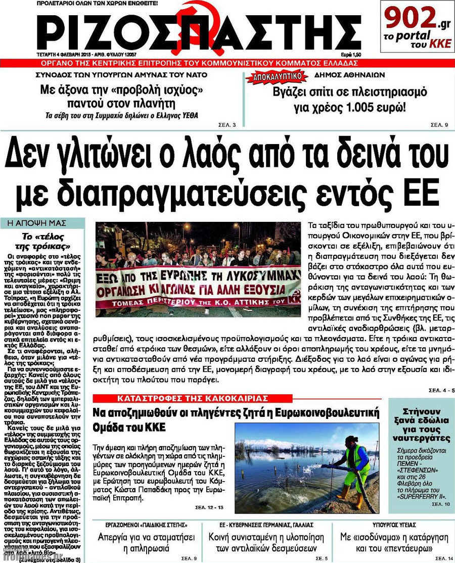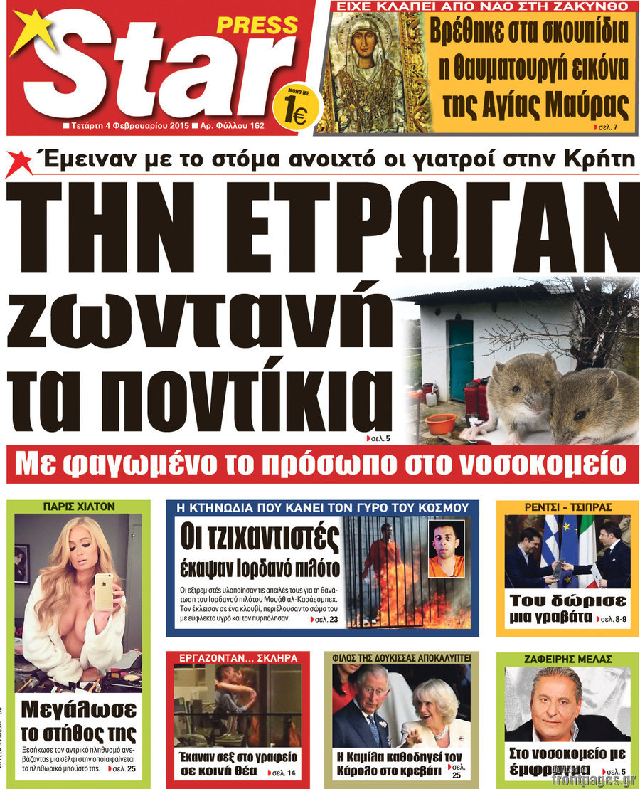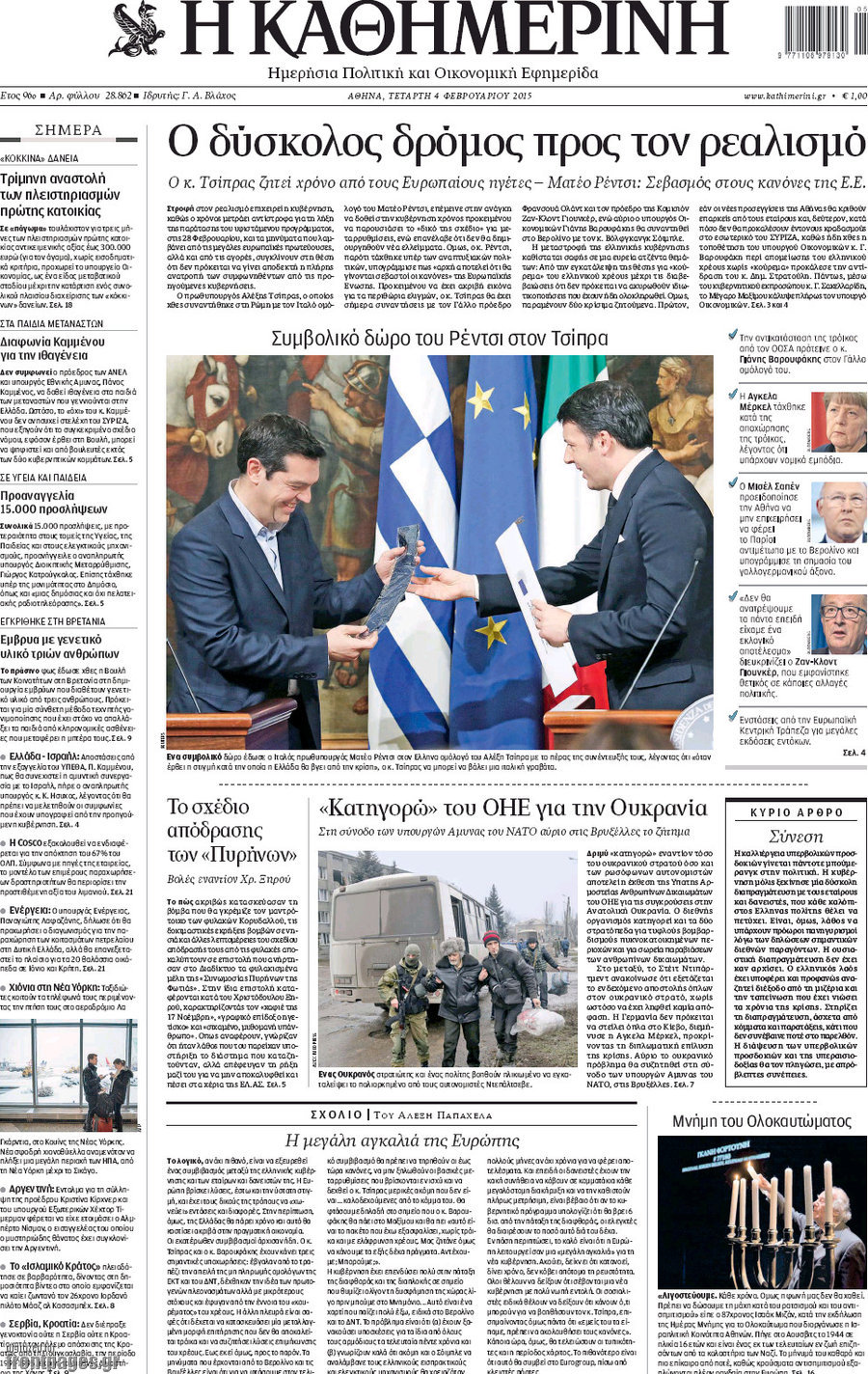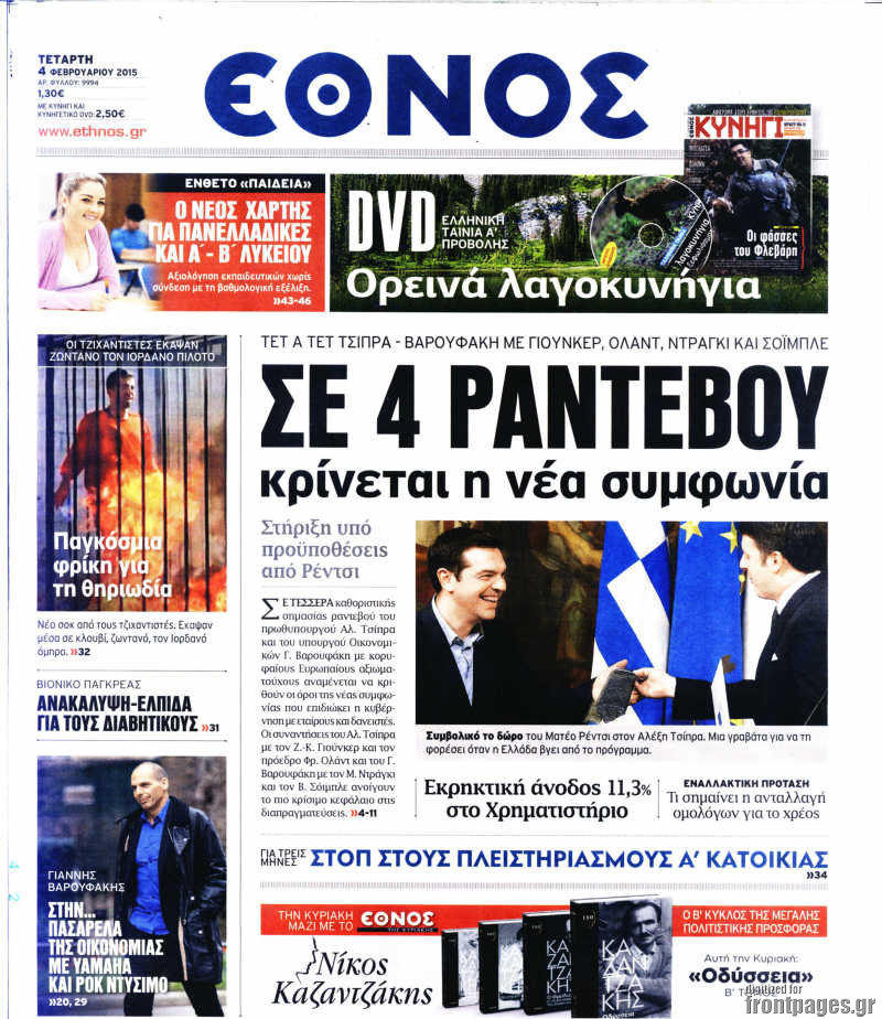 Οι πολιτικές εφημερίδες Enikos Newsroom 07:54, Τετάρτη 04 Φεβρουαρίου 2015 Media Διαβάστε τα πρωτοσέλιδα των πολιτικών εφημερίδων: ΠΟΛΙΤΙΚΕΣ ΕΦΗΜΕΡΙΔΕΣ ΠΡΩΤΟΣΕΛΙΔΑ Μοιράσου το: σχολίασε κι εσύ (0 σχόλια) Ακολουθήστε το enikos.gr στο Google News και μάθετε πρώτοι όλες τις ειδήσεις Δείτε όλες τις τελευταίες ειδήσεις από την Ελλάδα και τον Κόσμο στο enikos.gr Ειδήσεις Ροή Ειδήσεων 43 λεπτά πριν Υπόθεση Έπσταϊν: Το Υπουργείο Δικαιοσύνης δημοσιοποίησε μια σειρά από εξαιρετικά επεξεργασμένα αρχεία – «Λείπουν τα πιο σημαντικά έγγραφα», λένε οι Δημοκρατικοί 2 ώρες πριν Σαρωτικοί οι έλεγχοι στους δρόμους ενόψει εορτών – Μπλόκα της τροχαίας σε κεντρικές αρτηρίες της Αττικής 54 λεπτά πριν ΟΝΕΧ – MEGATUGS: Ξεκίνησε η ναυπήγηση ρυμουλκών στην Ελλάδα – Προθάλαμος πολεμικών πλοίων – Δείτε φωτογραφίες και βίντεο 46 λεπτά πριν Καιρός: Αλλαγή σκηνικού σήμερα με βροχές και πτώση της θερμοκρασίας – Οι προβλέψεις των μετεωρολόγων για τα Χριστούγεννα 10 ώρες πριν Χριστούγεννα στα μπλόκα: Επιμένουν στις κινητοποιήσεις τους οι αγρότες – Ανοίγουν τα διόδια το Σαββατοκύριακο 2 ώρες πριν Αυγά: Πόσα μπορείτε να τρώτε την ημέρα με ασφάλεια για μέγιστη πρόσληψη πρωτεΐνης 3 ώρες πριν Τα ζώδια σήμερα, Σάββατο 20 Δεκεμβρίου: Παρθένοι, το σύμπαν σας δίνει το κλειδί 2 ώρες πριν Οπτική ψευδαίσθηση: Μόνο αν είσαι ο Σέρλοκ Χολμς θα βρεις τον αριθμό «87» σε 7 δευτερόλεπτα 23 λεπτά πριν Αρχαιολόγοι ανακάλυψαν σε χωράφι απεικόνιση 600 ετών ενός Αγίου – Τα στοιχεία που δείχνουν ότι μαρτύρησε 7 λεπτά πριν MyHealth App: Τα στοιχεία για τον Προσωπικό Βοηθό Υγείας Πολίτη – Τι ερωτήματα έγιναν μέσα σε 7 ημέρες 15 λεπτά πριν Τρομεροί γονείς: Η Μαρία Καβογιάννη εισβάλλει στο σπίτι της οικογένειας Στεφανίδη 23 λεπτά πριν Αρχαιολόγοι ανακάλυψαν σε χωράφι απεικόνιση 600 ετών ενός Αγίου – Τα στοιχεία που δείχνουν ότι μαρτύρησε 31 λεπτά πριν Mega χριστουγεννιάτικη φορολοταρία: «Κλείδωσε» η ημερομηνία για την κλήρωση – Ερωτήσεις και απαντήσεις 38 λεπτά πριν ΗΠΑ: Τέσσερις μετανάστες πέθαναν σε κέντρα κράτησης – Αύξηση θανάτων σε επίπεδο ρεκόρ το 2025 ENIKOS NETWORK Το τεστ των 10 δευτερολέπτων που μπορεί να προβλέψει το προσδόκιμο ζωής σας – Τι λέει ειδικός του Cleveland Επιλέξτε καρέκλα για να μάθετε ποια είναι τα κρυφά χαρακτηριστικά σας – Τι αποκάλυψε για εσάς αυτό το τεστ προσωπικότητας; Mega χριστουγεννιάτικη φορολοταρία: «Κλείδωσε» η ημερομηνία για την κλήρωση – Ερωτήσεις και απαντήσεις Αναστολή μέτρων αναγκαστικής εκτέλεσης για κτηνοτρόφους που πλήττονται από την ευλογιά των αιγοπροβάτων Χαρτογραφώντας το «σημείο χωρίς επιστροφή»: Για πρώτη φορά αποκαλύπτεται με λεπτομέρεια το ακανθώδες όριο της ατμόσφαιρας τ... Η Google καταργεί τη λειτουργία «dark web report» – Πώς θα μπορούν οι χρήστες να διαγράφουν τα δεδομένα τους περισσότερα 08:14 , Σάββατο 20 Δεκεμβρίου 2025 Τρομεροί γονείς: Η Μαρία Καβογιάννη εισβάλλει στο σπίτι της οικογένειας Στεφανίδη Όσα θα δούμε στο νέο διπλό επεισόδιο της σειράς «Τρομεροί γονείς», σήμερα Σάββατο 20 Δεκεμβρίο... 05:48 , Σάββατο 20 Δεκεμβρίου 2025 Οι οικονομικές εφημερίδες 20/12/2025 Διαβάστε τα πρωτοσέλιδα από τις οικονομικές εφημερίδες, σήμερα 20/12/2025. 05:43 , Σάββατο 20 Δεκεμβρίου 2025 Οι αθλητικές εφημερίδες 20/12/2025 Διαβάστε τα πρωτοσέλιδα από τις αθλητικές εφημερίδες, σήμερα 20/12/2025. 05:38 , Σάββατο 20 Δεκεμβρίου 2025 Οι πολιτικές εφημερίδες 20/12/2025 Διαβάστε τα πρωτοσέλιδα από τις πολιτικές εφημερίδες, σήμερα 20/12/2025. ΤΕΛΕΥΤΑΙΕΣ ΕΙΔΗΣΕΙΣ 7 λεπ