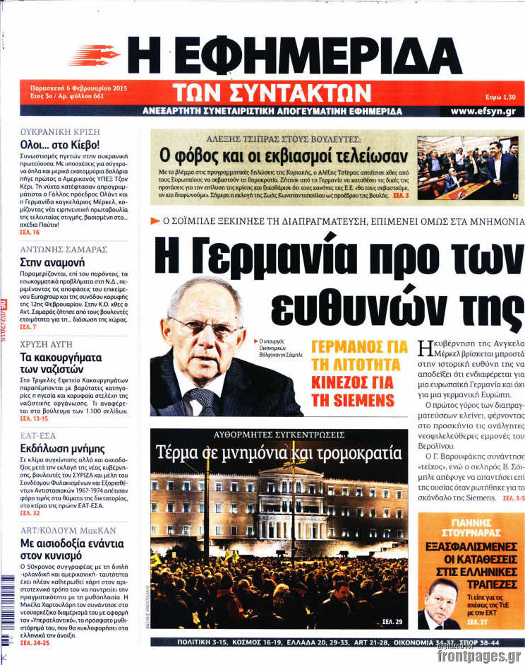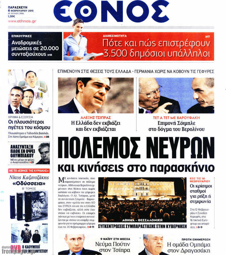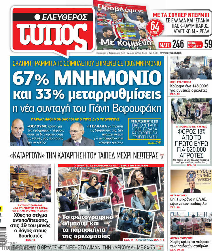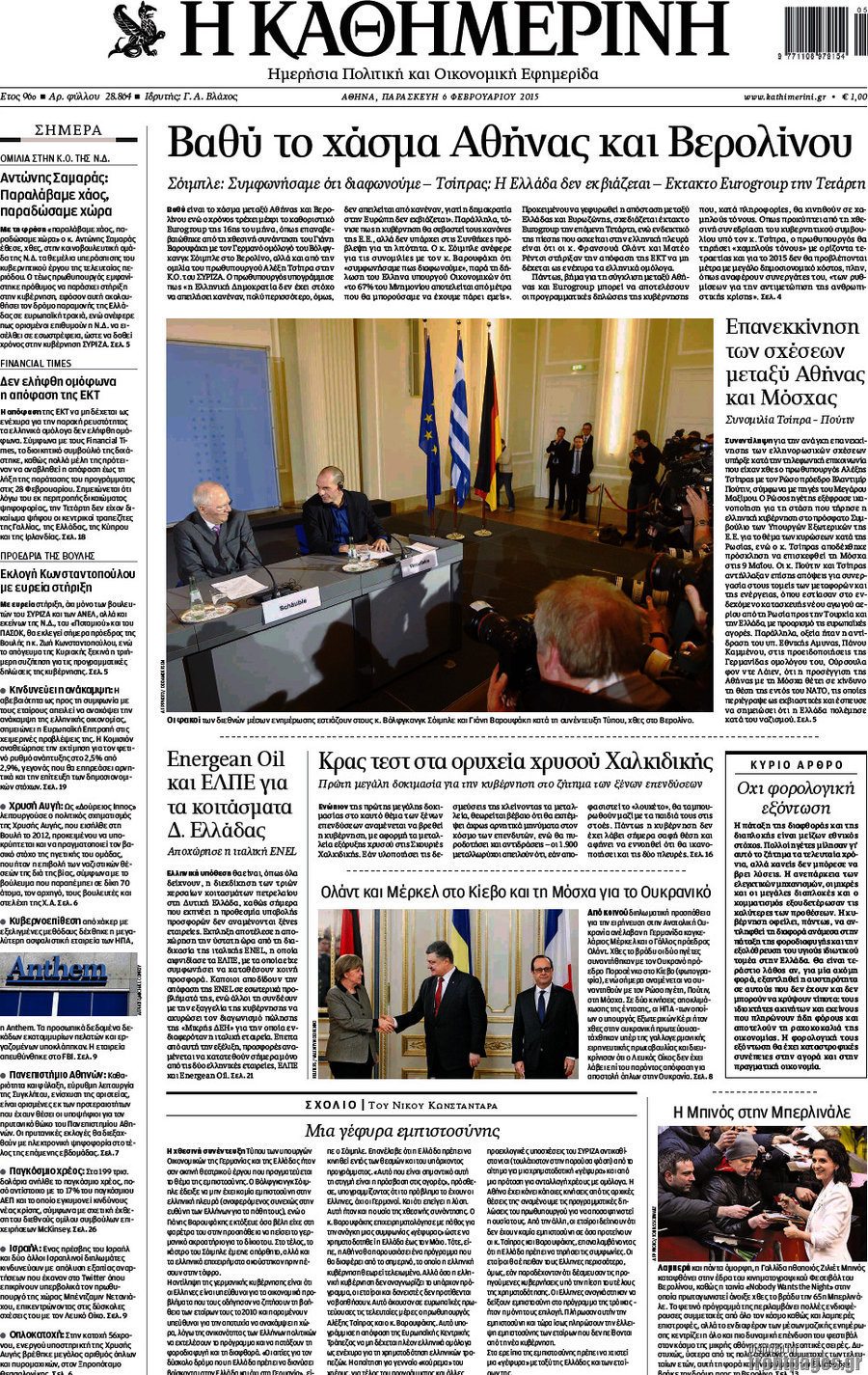 Οι πολιτικές εφημερίδες Enikos Newsroom 08:05, Παρασκευή 06 Φεβρουαρίου 2015 Media Διαβάστε τα πρωτοσέλιδα των πολιτικών εφημερίδων: ΠΟΛΙΤΙΚΕΣ ΕΦΗΜΕΡΙΔΕΣ ΠΡΩΤΟΣΕΛΙΔΑ Μοιράσου το: σχολίασε κι εσύ (0 σχόλια) Ακολουθήστε το enikos.gr στο Google News και μάθετε πρώτοι όλες τις ειδήσεις Δείτε όλες τις τελευταίες ειδήσεις από την Ελλάδα και τον Κόσμο στο enikos.gr Ειδήσεις Ροή Ειδήσεων 2 ώρες πριν Ευρωπαϊκή Ένωση: Συμφωνία για δάνειο 90 δισ. ευρώ στην Ουκρανία τη διετία 2026-2027 7 ώρες πριν ΟΠΕΚΕΠΕ: Προφυλακιστέος ο φερόμενος αρχηγός και ο λογιστής της εγκληματικής οργάνωσης 8 ώρες πριν Αυξάνουν την πίεση προς την κυβέρνηση οι αγρότες: Κλείνουν παρακαμπτήριους και ανοίγουν διόδια – Τι θα γίνει τις γιορτές 8 ώρες πριν Φοινικούντα: Το Σάββατο απολογείται ο 30χρονος γιος γνωστού επιχειρηματία της Πλάκας που παραδόθηκε – Όσα είπε στους αστυνομικούς και ο ρόλος του στο έγκλημα 6 ώρες πριν ΑΕΚ – Κραϊόβα 3-2: Επική ανατροπή και πρόκριση στους «16» του Conference League η Ένωση 7 ώρες πριν Αρχαιολόγοι ανακάλυψαν ρωμαϊκά τεχνουργήματα από μια πόλη που δεν υπήρξε ποτέ – Τα τρία εντυπωσιακά κτίρια και ο αμφορέας με τις… σαρδέλες 8 ώρες πριν Ύπνος: Η απλή βραδινή ρουτίνα για να προστατεύσετε τα μαλλιά σας από το κρύο κατά τη διάρκεια του χειμώνα 9 ώρες πριν Manifesting: Πώς να συναντήσετε τον σύντροφο της ζωής σας, ανάλογα με τον μήνα γέννησής σας 2 ημέρες πριν 20 χρόνια τα Χριστούγεννα ξεκινούν στα Public με μεγάλη ποικιλία σε δώρα! 6 λεπτά πριν Οπτική ψευδαίσθηση: Μόνο αν έχεις αετίσια ματιά θα βρεις τον παπαγάλο σε 12 δευτερόλεπτα 12 λεπτά πριν Αθήνα: Βρέθηκε η 16χρονη που είχε εξαφανιστεί από τις 6 Δεκεμβρίου – Η ανακοίνωση από το «Χαμόγελο του Παιδιού» 21 λεπτά πριν Κρύα χέρια και πόδια: Γιατρός εξηγεί ποια είναι η αίτια και πότε πρέπει να ανησυχήσετε 27 λεπτά πριν Σαν σήμερα 19 Δεκεμβρίου: Τα σημαντικότερα γεγονότα της ημέρας 32 λεπτά πριν Οι οικονομικές εφημερίδες 19/12/2025 ENIKOS NETWORK Σε περίοδο αυξημένης δραστηριότητας η γρίπη στην Ελλάδα-Μέτρα προστασίας από τον ΕΟΔΥ Σκέφτεστε συνέχεια συζητήσεις που έχετε κάνει; Τι σημαίνει αυτό, σύμφωνα με ειδικό Στεγαστικό: Τι λέει η ΠΟΜΙΔΑ για τα νέα μέτρα που ανακοίνωσε ο Κυριάκος Μητσοτάκης Λαγκάρντ: Αισιόδοξη για την ανάπτυξη της Ευρωζώνης, αβέβαιη για τον πληθωρισμό Χαρτογραφώντας το «σημείο χωρίς επιστροφή»: Για πρώτη φορά αποκαλύπτεται με λεπτομέρεια το ακανθώδες όριο της ατμόσφαιρας τ... Η Google καταργεί τη λειτουργία «dark web report» – Πώς θα μπορούν οι χρήστες να διαγράφουν τα δεδομένα τους περισσότερα 05:48 , Παρασκευή 19 Δεκεμβρίου 2025 Οι οικονομικές εφημερίδες 19/12/2025 Διαβάστε τα πρωτοσέλιδα από τις οικονομικές εφημερίδες, σήμερα 19/12/2025. 05:43 , Παρασκευή 19 Δεκεμβρίου 2025 Οι αθλητικές εφημερίδες 19/12/2025 Διαβάστε τα πρωτοσέλιδα από τις αθλητικές εφημερίδες, σήμερα 19/12/2025. 05:38 , Παρασκευή 19 Δεκεμβρίου 2025 Οι πολιτικές εφημερίδες 19/12/2025 Διαβάστε τα πρωτοσέλιδα από τις πολιτικές εφημερίδες, σήμερα 19/12/2025. 02:50 , Παρασκευή 19 Δεκεμβρίου 2025 GNTM: «Κλείδωσαν» οι τέσσερις φιναλίστ – Μεγάλη ανατροπή στις τελευταίες αποχωρήσεις Για προτελευταία φορά εμφανίστηκαν στο πλατό του GNTM οι φιναλίστ του φετινού κύκλου, το βράδυ... ΤΕΛΕΥΤΑΙΕΣ ΕΙΔΗΣΕΙΣ 6 λεπτά πριν Οπτική ψευδαίσθηση: Μόνο αν έχεις αετίσια ματιά θα... 12 λεπτά πριν Αθήνα: Βρέθηκε η 16χρονη που είχε εξαφανιστεί από τις 6... 21 λεπτά πριν Κρύα χέρια και πόδια: Γιατρός εξηγεί ποια είναι η... 27 λεπτά πριν Σαν σήμερα 19 Δεκεμβρίου: Τα σημαντικότερα γεγονότ