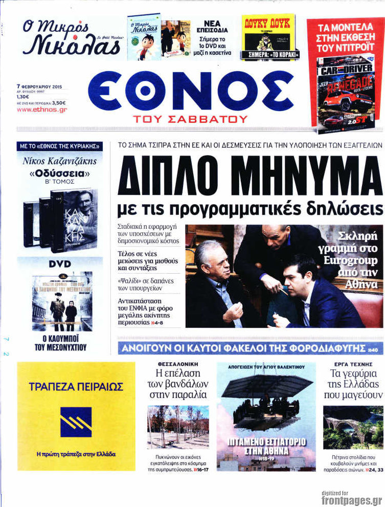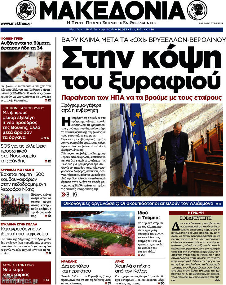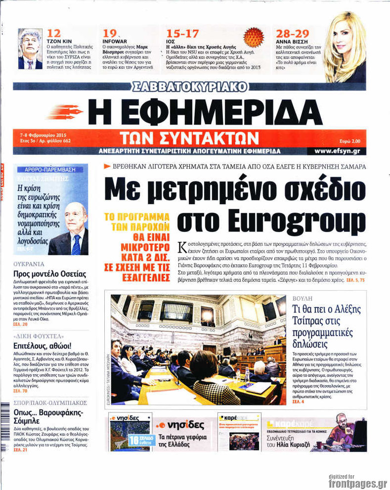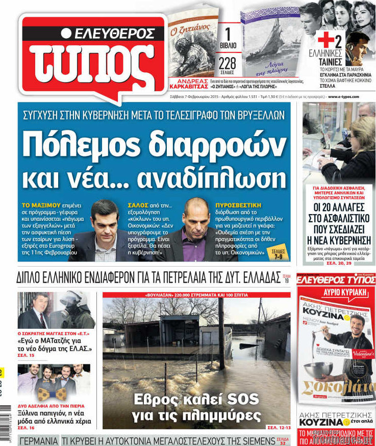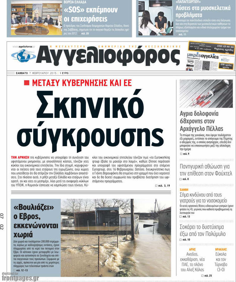 Οι πολιτικές εφημερίδες Enikos Newsroom 07:28, Σάββατο 07 Φεβρουαρίου 2015 Media ΠΟΛΙΤΙΚΕΣ ΕΦΗΜΕΡΙΔΕΣ ΠΡΩΤΟΣΕΛΙΔΑ Μοιράσου το: σχολίασε κι εσύ (0 σχόλια) Ακολουθήστε το enikos.gr στο Google News και μάθετε πρώτοι όλες τις ειδήσεις Δείτε όλες τις τελευταίες ειδήσεις από την Ελλάδα και τον Κόσμο στο enikos.gr Ειδήσεις Ροή Ειδήσεων 4 ώρες πριν Χριστούγεννα στα μπλόκα: Επιμένουν στις κινητοποιήσεις τους οι αγρότες – Ανοίγουν τα διόδια το Σαββατοκύριακο 5 ώρες πριν Ουκρανία: Η άνευ προηγουμένου επίθεση σε ρωσικό τάνκερ στη Μεσόγειο και το μήνυμα προς στον Πούτιν – Το «μακρύ χέρι» του Κιέβου 4 ώρες πριν Πούτιν: Τα μηνύματα σε Ευρώπη και ΝΑΤΟ από το μαραθώνιο «σόου» του – Η απαίτηση για «σεβασμό» και η ειρήνη «με τους όρους» της Μόσχας 5 ώρες πριν Τραμπ: Δεν αποκλείει την πιθανότητα ενός πολέμου στη Βενεζουέλα – «Ο Μαδούρο ξέρει καλύτερα από τον καθένα τι ακριβώς θέλω» 5 ώρες πριν Συνεχίζει να προκαλεί ο Μίτσκοσκι: «Για μένα το όνομα Μακεδονία είναι ιερό» 4 ώρες πριν Ανακαλύφθηκαν αρχαία χρυσά νομίσματα 2.200 ετών που απεικονίζουν τον θεό Απόλλωνα – Η άγνωστη σύνδεση με τον Φίλιππο Β΄ της Μακεδονίας 5 ώρες πριν Ύπνος: Μια κρυφή κατάσταση του εγκεφάλου πριν από τον ύπνο μπορεί να είναι το “κλειδί” για υψηλή ευφυΐα και δημιουργικότητα 6 ώρες πριν Αριθμολογία: Οι άνθρωποι που έχουν γεννηθεί αυτές τις 4 ημερομηνίες, συχνά παρεξηγούνται – «Η καλοσύνη τους κρύβει τεράστια δύναμη» 7 ώρες πριν Ξεχάστε το καθάρισμα το Σαββατοκύριακο: Ο «κανόνας των 20 λεπτών» που θα σας λύσει τα χέρια 14 λεπτά πριν Θεσσαλονίκη: Εξαφανίστηκε 13χρονος από χώρο φιλοξενίας ασυνόδευτων ανηλίκων στο Ωραιόκαστρο 24 λεπτά πριν Ντόναλντ Τραμπ: «Πολύ βαριά αντίποινα» στη Συρία – «Πλήττουμε πολύ δυνατά οχυρά του Ισλαμικού Κράτους» 39 λεπτά πριν Εξάρχεια: Ένταση με μολότοφ, χημικά και κρότου λάμψης 54 λεπτά πριν ΗΠΑ: Τραγωδία στην Αλαμπάμα – Σκότωσε την δημοσιογράφο σύζυγό του και αυτοκτόνησε μπροστά στον 3χρονο γιο τους 1 ώρα πριν Πρόταση γάμου στο ΣΕΦ κατά την διάρκεια του αγώνα Ολυμπιακός-Βιλερμπάν – Δείτε βίντεο ENIKOS NETWORK Το ΕΚΑΒ τιμήθηκε από την Ακαδημία Αθηνών για τα 40 χρόνια προσφοράς του Έχετε πραγματικά μεγάλη καρδιά; 10 χαρακτηριστικά όσων έχουν καλοσύνη Αναστολή μέτρων αναγκαστικής εκτέλεσης για κτηνοτρόφους που πλήττονται από την ευλογιά των αιγοπροβάτων Πλήρης επάρκεια προϊόντων στις λαϊκές της Αττικής, παρά τις αγροτικές κινητοποιήσεις – Τι απαντούν οι πωλητές Χαρτογραφώντας το «σημείο χωρίς επιστροφή»: Για πρώτη φορά αποκαλύπτεται με λεπτομέρεια το ακανθώδες όριο της ατμόσφαιρας τ... Η Google καταργεί τη λειτουργία «dark web report» – Πώς θα μπορούν οι χρήστες να διαγράφουν τα δεδομένα τους περισσότερα 22:42 , Παρασκευή 19 Δεκεμβρίου 2025 Γιώργος Γιαννόπουλος για “Το σόι σου”: “Είναι ευτυχία και ευλογία αυτή η σειρά” «Είναι ευτυχία και ευλογία η συγκυρία αυτής της σειράς», θα πει ο Γιώργος Γιαννόπουλος -ο αγαπ... 20:37 , Παρασκευή 19 Δεκεμβρίου 2025 Don’t Forget The Lyrics: Η Έλλη Κοκκίνου υποδέχεται 4 παίκτες που θα κάνουν τα πάντα για να μη χάσουν ούτε… μισή λέξη από τους στίχους Το «Don’t Forget The Lyrics» επιστρέφει απόψε, Παρασκευή 19 Δεκεμβρίου, στις 21:00 με νέο επει... 19:31 , Παρασκευή 19 Δεκεμβρίου 2025 GNTM: Απόψε ο μεγάλος τελικός για τους 4 φιναλίστ Έπειτα από μήνες γεμάτους μόδα, δημιουργία και έντονες αναμετρήσεις, το GNTM 2025 κορυφώνεται,... 18:11 , Παρασκευή 19 Δεκεμβρίου 2025 Το σόι σου: Ο Άρης έρχεται στην Ελλάδα για τις γιορτές των Χριστο
