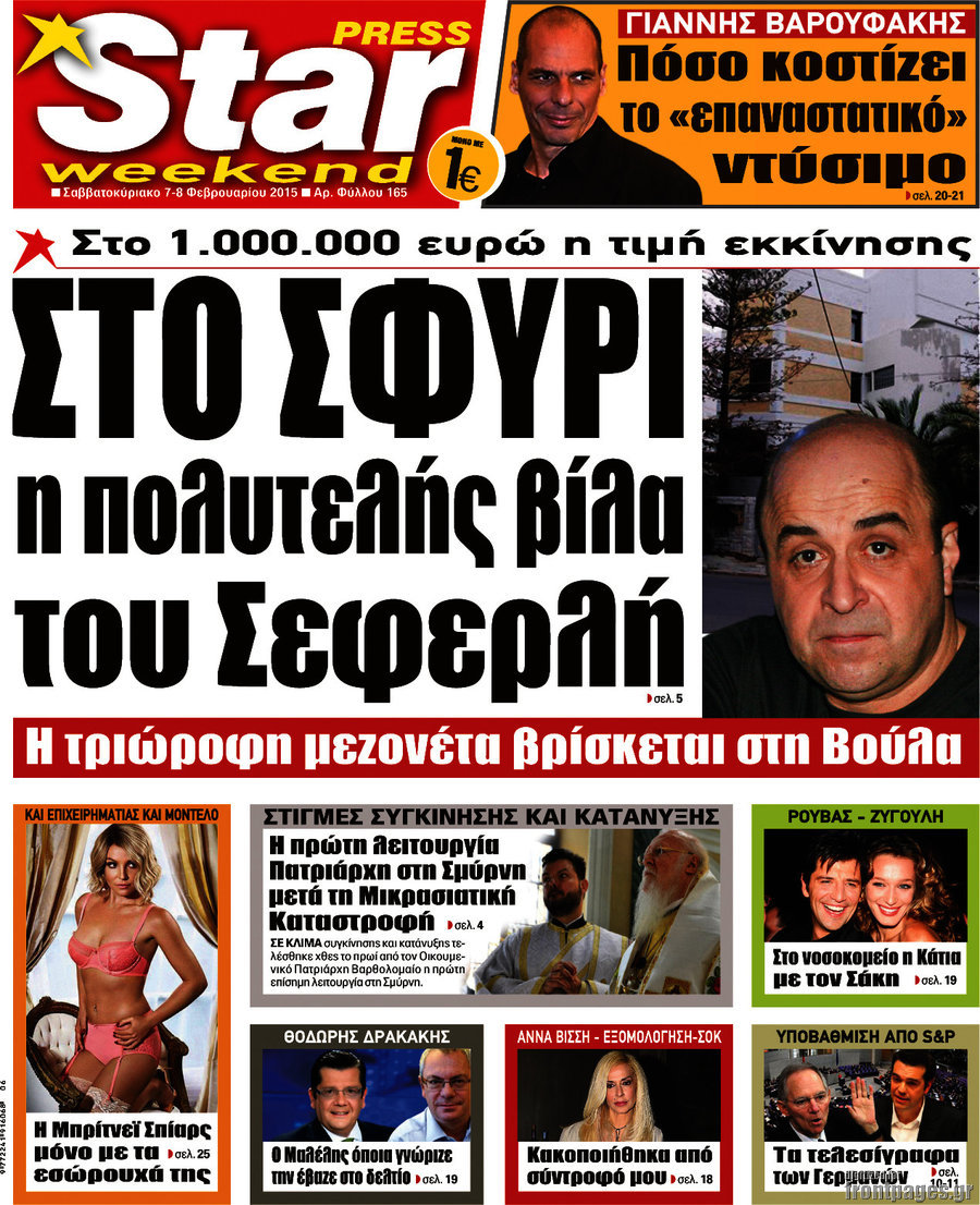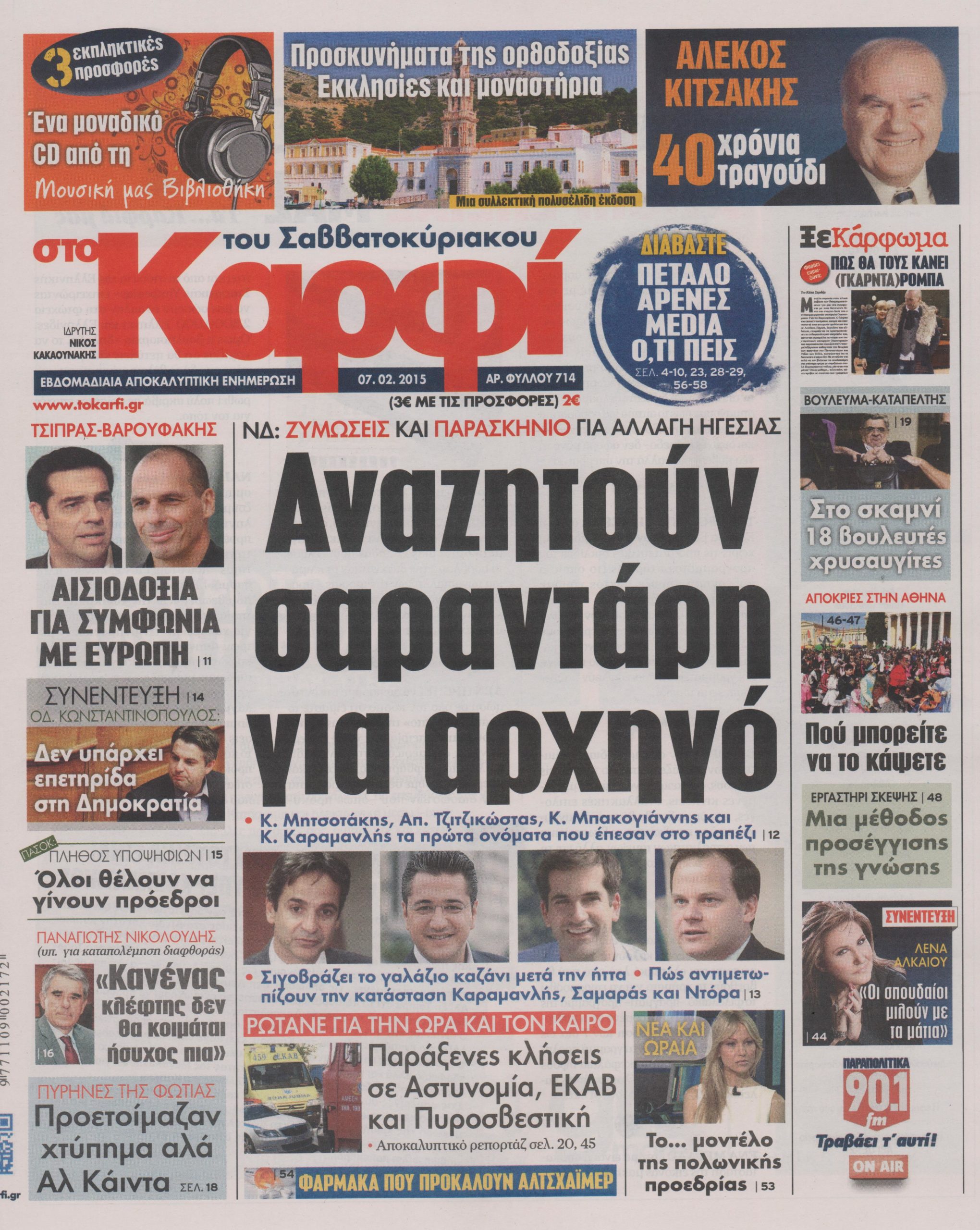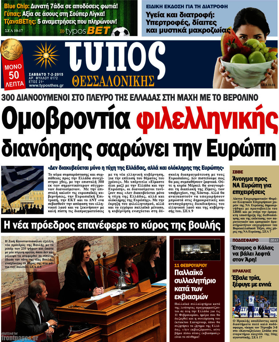 Οι πολιτικές εφημερίδες Enikos Newsroom 07:28, Σάββατο 07 Φεβρουαρίου 2015 Media ΠΟΛΙΤΙΚΕΣ ΕΦΗΜΕΡΙΔΕΣ ΠΡΩΤΟΣΕΛΙΔΑ Μοιράσου το: σχολίασε κι εσύ (0 σχόλια) Ακολουθήστε το enikos.gr στο Google News και μάθετε πρώτοι όλες τις ειδήσεις Δείτε όλες τις τελευταίες ειδήσεις από την Ελλάδα και τον Κόσμο στο enikos.gr Ειδήσεις Ροή Ειδήσεων 4 ώρες πριν Χριστούγεννα στα μπλόκα: Επιμένουν στις κινητοποιήσεις τους οι αγρότες – Ανοίγουν τα διόδια το Σαββατοκύριακο 5 ώρες πριν Ουκρανία: Η άνευ προηγουμένου επίθεση σε ρωσικό τάνκερ στη Μεσόγειο και το μήνυμα προς στον Πούτιν – Το «μακρύ χέρι» του Κιέβου 4 ώρες πριν Πούτιν: Τα μηνύματα σε Ευρώπη και ΝΑΤΟ από το μαραθώνιο «σόου» του – Η απαίτηση για «σεβασμό» και η ειρήνη «με τους όρους» της Μόσχας 5 ώρες πριν Τραμπ: Δεν αποκλείει την πιθανότητα ενός πολέμου στη Βενεζουέλα – «Ο Μαδούρο ξέρει καλύτερα από τον καθένα τι ακριβώς θέλω» 5 ώρες πριν Συνεχίζει να προκαλεί ο Μίτσκοσκι: «Για μένα το όνομα Μακεδονία είναι ιερό» 4 ώρες πριν Ανακαλύφθηκαν αρχαία χρυσά νομίσματα 2.200 ετών που απεικονίζουν τον θεό Απόλλωνα – Η άγνωστη σύνδεση με τον Φίλιππο Β΄ της Μακεδονίας 5 ώρες πριν Ύπνος: Μια κρυφή κατάσταση του εγκεφάλου πριν από τον ύπνο μπορεί να είναι το “κλειδί” για υψηλή ευφυΐα και δημιουργικότητα 6 ώρες πριν Αριθμολογία: Οι άνθρωποι που έχουν γεννηθεί αυτές τις 4 ημερομηνίες, συχνά παρεξηγούνται – «Η καλοσύνη τους κρύβει τεράστια δύναμη» 7 ώρες πριν Ξεχάστε το καθάρισμα το Σαββατοκύριακο: Ο «κανόνας των 20 λεπτών» που θα σας λύσει τα χέρια 14 λεπτά πριν Θεσσαλονίκη: Εξαφανίστηκε 13χρονος από χώρο φιλοξενίας ασυνόδευτων ανηλίκων στο Ωραιόκαστρο 24 λεπτά πριν Ντόναλντ Τραμπ: «Πολύ βαριά αντίποινα» στη Συρία – «Πλήττουμε πολύ δυνατά οχυρά του Ισλαμικού Κράτους» 39 λεπτά πριν Εξάρχεια: Ένταση με μολότοφ, χημικά και κρότου λάμψης 54 λεπτά πριν ΗΠΑ: Τραγωδία στην Αλαμπάμα – Σκότωσε την δημοσιογράφο σύζυγό του και αυτοκτόνησε μπροστά στον 3χρονο γιο τους 1 ώρα πριν Πρόταση γάμου στο ΣΕΦ κατά την διάρκεια του αγώνα Ολυμπιακός-Βιλερμπάν – Δείτε βίντεο ENIKOS NETWORK Το ΕΚΑΒ τιμήθηκε από την Ακαδημία Αθηνών για τα 40 χρόνια προσφοράς του Έχετε πραγματικά μεγάλη καρδιά; 10 χαρακτηριστικά όσων έχουν καλοσύνη Αναστολή μέτρων αναγκαστικής εκτέλεσης για κτηνοτρόφους που πλήττονται από την ευλογιά των αιγοπροβάτων Πλήρης επάρκεια προϊόντων στις λαϊκές της Αττικής, παρά τις αγροτικές κινητοποιήσεις – Τι απαντούν οι πωλητές Χαρτογραφώντας το «σημείο χωρίς επιστροφή»: Για πρώτη φορά αποκαλύπτεται με λεπτομέρεια το ακανθώδες όριο της ατμόσφαιρας τ... Η Google καταργεί τη λειτουργία «dark web report» – Πώς θα μπορούν οι χρήστες να διαγράφουν τα δεδομένα τους περισσότερα 22:42 , Παρασκευή 19 Δεκεμβρίου 2025 Γιώργος Γιαννόπουλος για “Το σόι σου”: “Είναι ευτυχία και ευλογία αυτή η σειρά” «Είναι ευτυχία και ευλογία η συγκυρία αυτής της σειράς», θα πει ο Γιώργος Γιαννόπουλος -ο αγαπ... 20:37 , Παρασκευή 19 Δεκεμβρίου 2025 Don’t Forget The Lyrics: Η Έλλη Κοκκίνου υποδέχεται 4 παίκτες που θα κάνουν τα πάντα για να μη χάσουν ούτε… μισή λέξη από τους στίχους Το «Don’t Forget The Lyrics» επιστρέφει απόψε, Παρασκευή 19 Δεκεμβρίου, στις 21:00 με νέο επει... 19:31 , Παρασκευή 19 Δεκεμβρίου 2025 GNTM: Απόψε ο μεγάλος τελικός για τους 4 φιναλίστ Έπειτα από μήνες γεμάτους μόδα, δημιουργία και έντονες αναμετρήσεις, το GNTM 2025 κορυφώνεται,... 18:11 , Παρασκευή 19 Δεκεμβρίου 2025 Το σόι σου: Ο Άρης έρχεται στην Ελλάδα για τις γιορτές των Χριστο