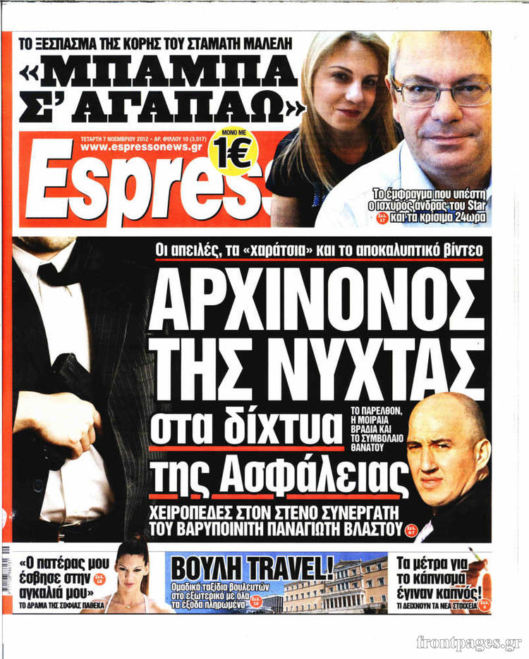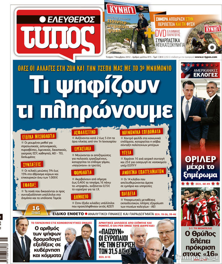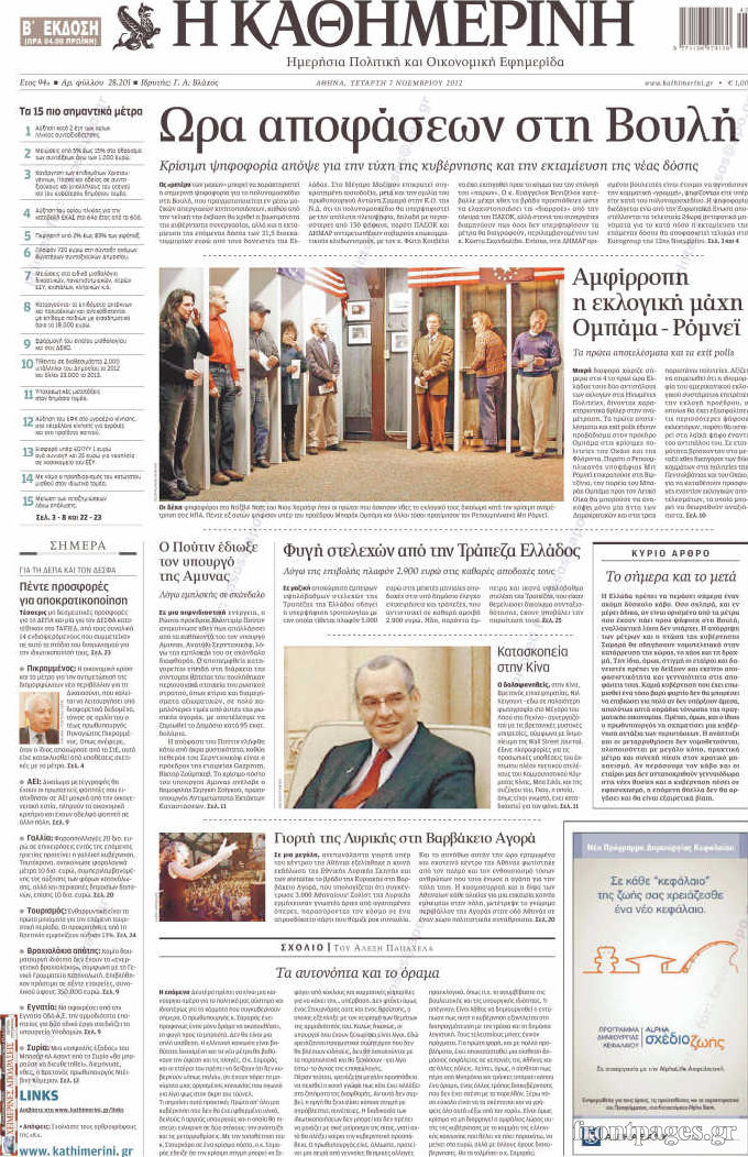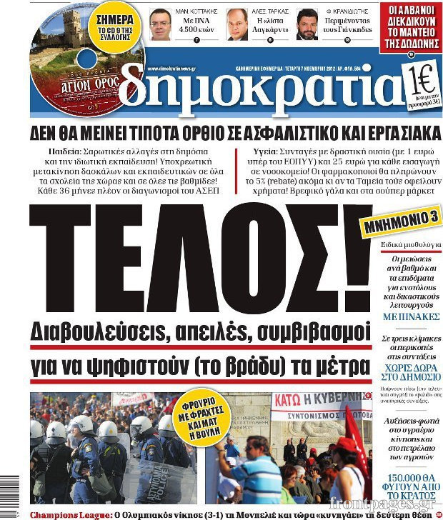 Οι πολιτικές εφημερίδες Enikos Newsroom 08:39, Τετάρτη 07 Νοεμβρίου 2012 Media Διαβάστε τα πρωτοσέλιδα των πολιτικών εφημερίδων. ΕΦΗΜΕΡΙΔΕΣ ΠΟΛΙΤΙΚΕΣ ΕΦΗΜΕΡΙΔΕΣ ΠΡΩΤΟΣΕΛΙΔΑ Μοιράσου το: σχολίασε κι εσύ (0 σχόλια) Ακολουθήστε το enikos.gr στο Google News και μάθετε πρώτοι όλες τις ειδήσεις Δείτε όλες τις τελευταίες ειδήσεις από την Ελλάδα και τον Κόσμο στο enikos.gr Ειδήσεις Ροή Ειδήσεων 7 ώρες πριν Χριστούγεννα στα μπλόκα: Επιμένουν στις κινητοποιήσεις τους οι αγρότες – Ανοίγουν τα διόδια το Σαββατοκύριακο 7 ώρες πριν Ουκρανία: Η άνευ προηγουμένου επίθεση σε ρωσικό τάνκερ στη Μεσόγειο και το μήνυμα προς στον Πούτιν – Το «μακρύ χέρι» του Κιέβου 6 ώρες πριν Πούτιν: Τα μηνύματα σε Ευρώπη και ΝΑΤΟ από το μαραθώνιο «σόου» του – Η απαίτηση για «σεβασμό» και η ειρήνη «με τους όρους» της Μόσχας 7 ώρες πριν Τραμπ: Δεν αποκλείει την πιθανότητα ενός πολέμου στη Βενεζουέλα – «Ο Μαδούρο ξέρει καλύτερα από τον καθένα τι ακριβώς θέλω» 8 ώρες πριν Συνεχίζει να προκαλεί ο Μίτσκοσκι: «Για μένα το όνομα Μακεδονία είναι ιερό» 6 ώρες πριν Ανακαλύφθηκαν αρχαία χρυσά νομίσματα 2.200 ετών που απεικονίζουν τον θεό Απόλλωνα – Η άγνωστη σύνδεση με τον Φίλιππο Β΄ της Μακεδονίας 7 ώρες πριν Ύπνος: Μια κρυφή κατάσταση του εγκεφάλου πριν από τον ύπνο μπορεί να είναι το “κλειδί” για υψηλή ευφυΐα και δημιουργικότητα 8 ώρες πριν Αριθμολογία: Οι άνθρωποι που έχουν γεννηθεί αυτές τις 4 ημερομηνίες, συχνά παρεξηγούνται – «Η καλοσύνη τους κρύβει τεράστια δύναμη» 9 ώρες πριν Ξεχάστε το καθάρισμα το Σαββατοκύριακο: Ο «κανόνας των 20 λεπτών» που θα σας λύσει τα χέρια 5 λεπτά πριν ΟΗΕ: Το Συμβούλιο Ασφαλείας παρατείνει για έναν χρόνο την εντολή της ειρηνευτικής δύναμης στο Κονγκό 21 λεπτά πριν Μοχάμεντ Σαλάχ: Ζήτησε «συγγνώμη» από τους συμπαίκτες του στη Λίβερπουλ για το ξέσπασμά του 36 λεπτά πριν Μάρκο Ρούμπιο: Ανθρωπιστική κατάπαυση του πυρός στο Σουδάν ζητά ο Αμερικανός υπουργός Εξωτερικών 51 λεπτά πριν Αγγελική Νικολούλη: Τα συλλυπητήρια για την απώλεια της Ειρήνης Μαρινάκη 1 ώρα πριν Βολιβία: Μαζική διαδηλώσεις εναντίον της κατάργησης των επιδοτήσεων των τιμών των καυσίμων ENIKOS NETWORK Το ΕΚΑΒ τιμήθηκε από την Ακαδημία Αθηνών για τα 40 χρόνια προσφοράς του Έχετε πραγματικά μεγάλη καρδιά; 10 χαρακτηριστικά όσων έχουν καλοσύνη Αναστολή μέτρων αναγκαστικής εκτέλεσης για κτηνοτρόφους που πλήττονται από την ευλογιά των αιγοπροβάτων Πλήρης επάρκεια προϊόντων στις λαϊκές της Αττικής, παρά τις αγροτικές κινητοποιήσεις – Τι απαντούν οι πωλητές Χαρτογραφώντας το «σημείο χωρίς επιστροφή»: Για πρώτη φορά αποκαλύπτεται με λεπτομέρεια το ακανθώδες όριο της ατμόσφαιρας τ... Η Google καταργεί τη λειτουργία «dark web report» – Πώς θα μπορούν οι χρήστες να διαγράφουν τα δεδομένα τους περισσότερα 04:20 , Σάββατο 20 Δεκεμβρίου 2025 Αγγελική Νικολούλη: Τα συλλυπητήρια για την απώλεια της Ειρήνης Μαρινάκη Τα συλληπητήρια στον πρόεδρο του Mega, τον Βαγγέλη Μαρινάκη, για την απώλεια της μητέρας του Ε... 02:50 , Σάββατο 20 Δεκεμβρίου 2025 GNTM: Η Ξένια Τσίρκοβα αναδείχθηκε μεγάλη νικήτρια και πήρε τις 50.000 ευρώ – Ποιος βρέθηκε σε απόσταση αναπνοής; Με φαντασμαγορικό τρόπο ολοκληρώθηκε το βράδυ της Παρασκευής ο μεγάλος τελικός του GNTM, μέσα ... 22:42 , Παρασκευή 19 Δεκεμβρίου 2025 Γιώργος Γιαννόπουλος για “Το σόι σου”: “Είναι ευτυχία και ευλογία αυτή η σειρά” «Είναι ευτυχία και ευλογία η συγκυρία αυτής της σειράς», θα πει ο Γιώργος Γιαννόπουλος -ο αγαπ... 20:37 , Π