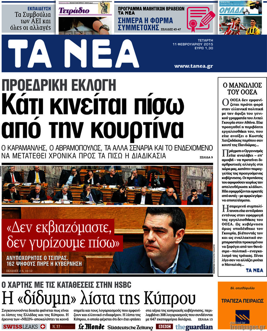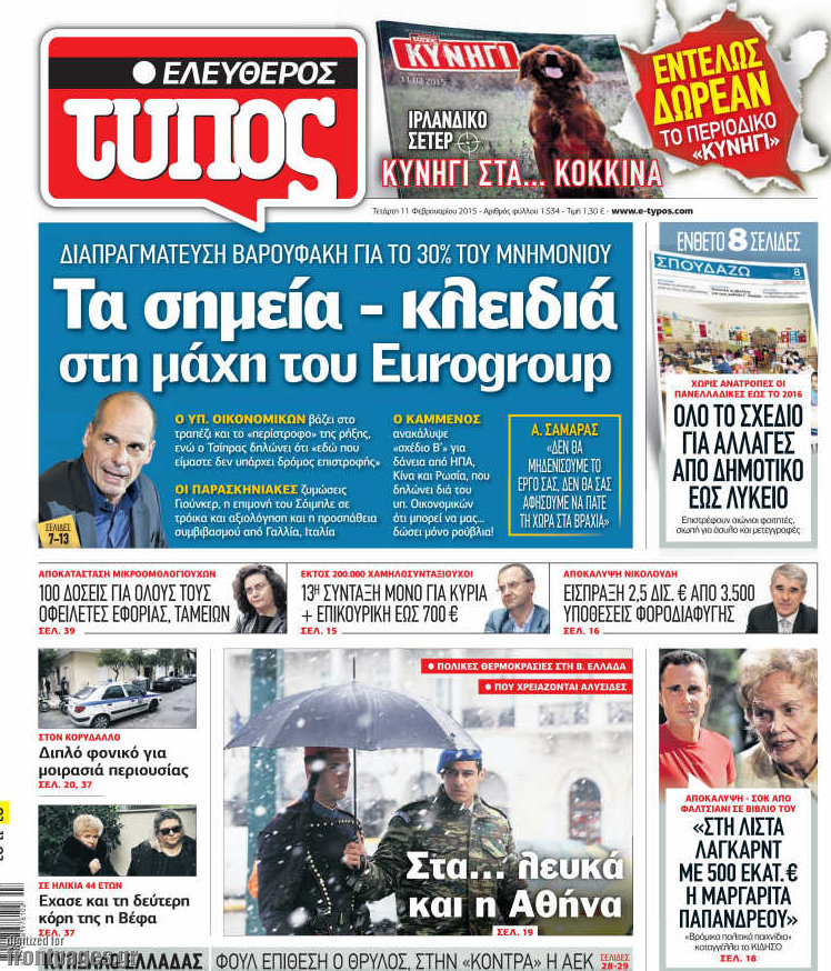 Οι πολιτικές εφημερίδες Enikos Newsroom 07:46, Τετάρτη 11 Φεβρουαρίου 2015 Media Δείτε τα σημερινά πρωτοσέλιδα των πολιτικών εφημερίδων: ΕΦΗΜΕΡΙΔΕΣ ΠΟΛΙΤΙΚΕΣ ΕΦΗΜΕΡΙΔΕΣ ΠΡΩΤΟΣΕΛΙΔΑ Μοιράσου το: σχολίασε κι εσύ (0 σχόλια) Ακολουθήστε το enikos.gr στο Google News και μάθετε πρώτοι όλες τις ειδήσεις Δείτε όλες τις τελευταίες ειδήσεις από την Ελλάδα και τον Κόσμο στο enikos.gr Ειδήσεις Ροή Ειδήσεων 6 λεπτά πριν «Έλληνας Εσκομπάρ»: Φωτογραφίες με τους 4 τόνους κοκαΐνης που κατασχέθηκαν από το σκάφος «Ουρανία» 3 ώρες πριν Η Ουκρανία χτύπησε τάνκερ του σκιώδους στόλου της Ρωσίας στη Μεσόγειο – Έπλεε νότια της Κρήτης 1 ώρα πριν Πούτιν: Σαρκαστικά μηνύματα, παράπονα και απρόοπτα στη συνέντευξη Τύπου – Η πρόταση γάμου on air και οι ερωτήσεις για τα αγγούρια και τους… εξωγήινους 2 ώρες πριν Η απάντηση της κυβέρνησης στα αιτήματα των αγροτών: 16+4 υλοποιούνται ή βρίσκονται υπό επεξεργασία για να βρεθεί λύση – 7 δεν μπορούν να επιλυθούν 2 ώρες πριν Εξώδικο επιχειρηματία στον Γιώργο Μαζωνάκη – Τι απαντά στις καταγγελίες του τραγουδιστή 1 ώρα πριν Τα 5 ζώδια που ευνοούνται στην ερωτική ζωή τους την επόμενη εβδομάδα – «Η ενέργεια του Αιγόκερου φέρνει αγάπη και σταθερότητα» 6 ώρες πριν Γεμάτος νεροχύτης; 5 σοβαρές ευθύνες που «φοβίζουν» όσους αφήνουν άπλυτα πιάτα 5 ώρες πριν Ειδικός μοιράζεται 6 κόλπα για να διατηρείστε σε φόρμα με πάνω από 40 ώρες εργασίας την εβδομάδα: «Προπονηθείτε πριν από τη δουλειά, όχι μετά» 2 ημέρες πριν 20 χρόνια τα Χριστούγεννα ξεκινούν στα Public με μεγάλη ποικιλία σε δώρα! 2 λεπτά πριν Πούτιν: «Δεν είμαι υπεύθυνος» για τους θανάτους στην Ουκρανία – Σχέδιο για κατάπαυση του πυρός αν ο Ζελένσκι κάνει εκλογές 4 λεπτά πριν Κουίζ για την παλιά Αθήνα: Αναγνωρίζετε την περιοχή; Έχετε περάσει 100% από εκεί 6 λεπτά πριν «Έλληνας Εσκομπάρ»: Φωτογραφίες με τους 4 τόνους κοκαΐνης που κατασχέθηκαν από το σκάφος «Ουρανία» 11 λεπτά πριν Μακρόν: Η Ευρώπη πρέπει να συνεργαστεί με τον Πούτιν αν αποτύχουν οι προσπάθειες των ΗΠΑ για ειρηνευτική συμφωνία 16 λεπτά πριν ΟΠΑΠ: Φρέσκια και δυναμική καμπάνια για το Υπεύθυνο Παιχνίδι με Χριστουγεννιάτικη διάθεση ENIKOS NETWORK ΕΛΣΤΑΤ: Αύξηση κατά 1,7% των επαγγελματιών υγείας το 2024 Τάξη στις ιατρικές διαφημίσεις για την προστασία των πολιτών βάζει ο ΙΣΑ Παπαθανάσης για νέο Εθνικό Πρόγραμμα Ανάπτυξης 2026-2030: Είναι υπερδιπλάσιο από αυτό της προηγούμενης προγραμματικής περιό... Βουλή: Υπερψηφίστηκε το νομοσχέδιο για τη μετάβαση του ΟΠΕΚΕΠΕ στην ΑΑΔΕ Χαρτογραφώντας το «σημείο χωρίς επιστροφή»: Για πρώτη φορά αποκαλύπτεται με λεπτομέρεια το ακανθώδες όριο της ατμόσφαιρας τ... Η Google καταργεί τη λειτουργία «dark web report» – Πώς θα μπορούν οι χρήστες να διαγράφουν τα δεδομένα τους περισσότερα 15:15 , Παρασκευή 19 Δεκεμβρίου 2025 Την Κυριακή με τη Realnews: Ό,τι και αν αγοράσεις, σκανάρεις και κερδίζεις! Την Κυριακή με τη Realnews: Ό,τι και αν αγοράσεις, σκανάρεις και κερδίζεις! Με το PADU app, το... 08:00 , Παρασκευή 19 Δεκεμβρίου 2025 Την Κυριακή με τη Realnews: Δωροεπιταγή 10€ Δωροεπιταγή αξίας 10€ για αγορές άνω των 60€ από τα πολυκαταστήματα FactoryOutlet H προσφορά ι... 05:48 , Παρασκευή 19 Δεκεμβρίου 2025 Οι οικονομικές εφημερίδες 19/12/2025 Διαβάστε τα πρωτοσέλιδα από τις οικονομικές εφημερίδες, σήμερα 19/12/2025. 05:43 , Παρασκευή 19 Δεκεμβρίου 2025 Οι αθλητικές εφημερίδες 19/12/2025 Διαβάστε τα πρωτοσέλιδα από τις αθλητικές εφημερίδες, σήμερα 19/12/2025. ΤΕΛΕΥΤΑΙΕΣ ΕΙΔΗΣΕΙΣ 4 λεπτά πριν Κουίζ για την παλιά Αθήνα: Αναγνωρίζ