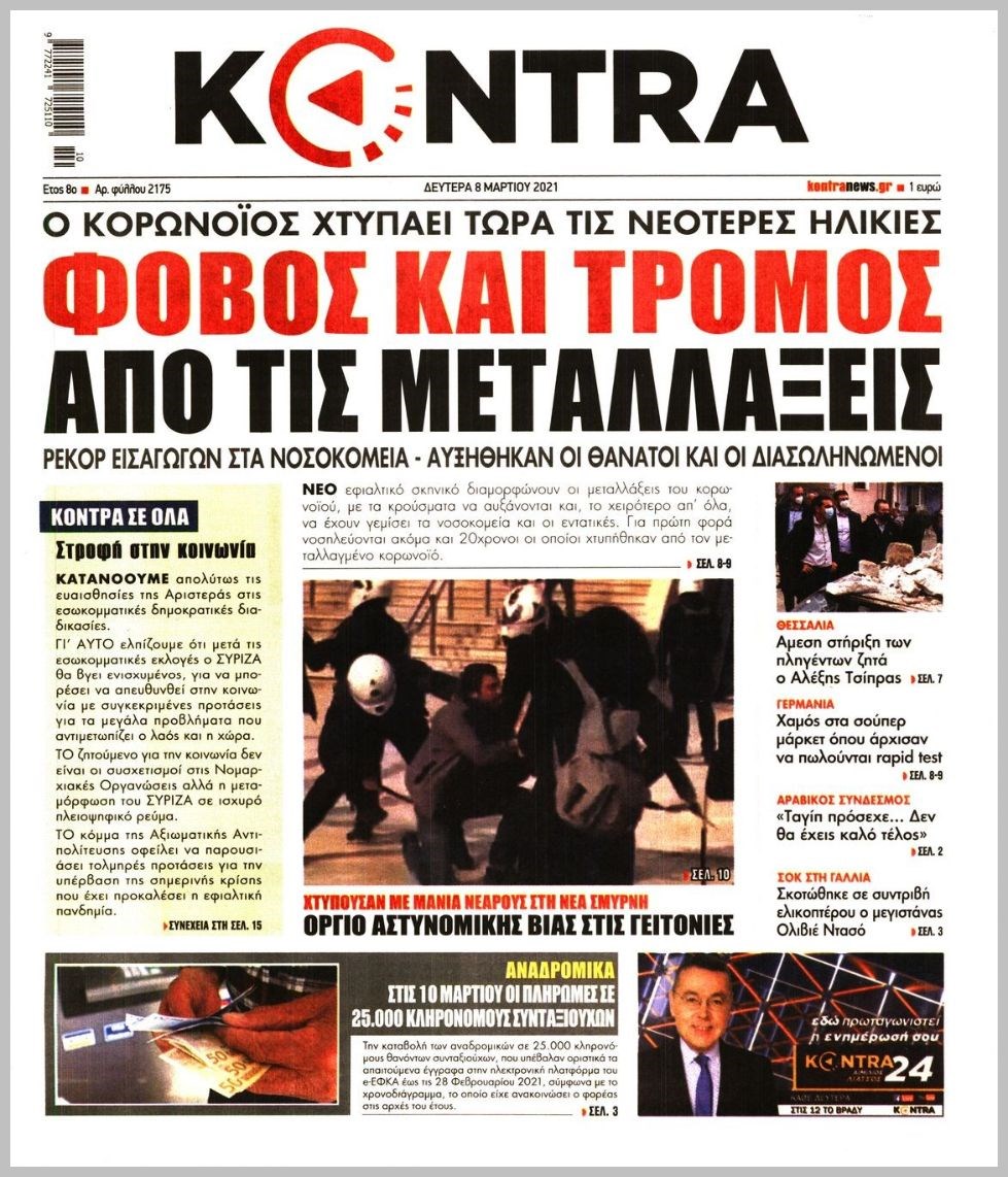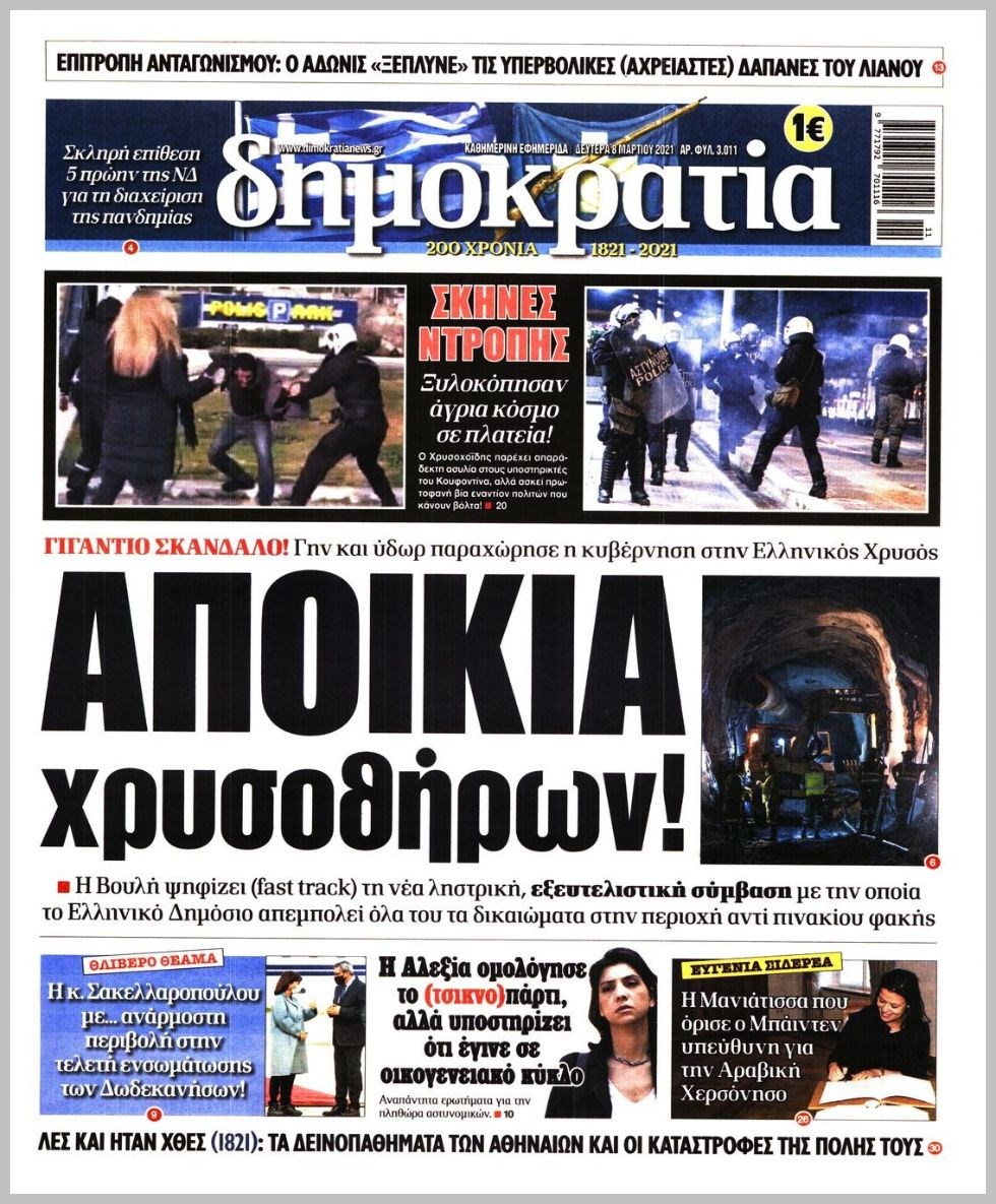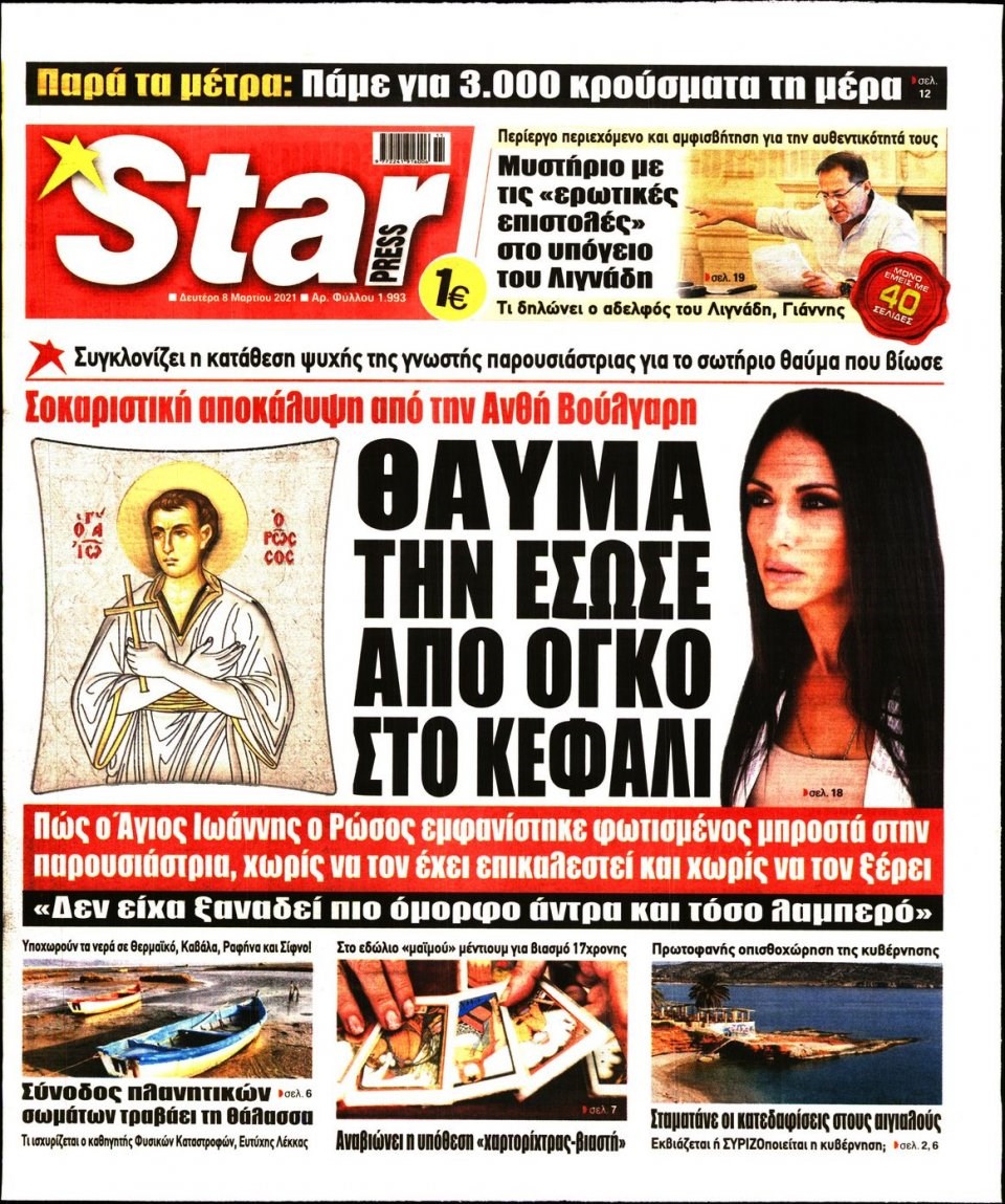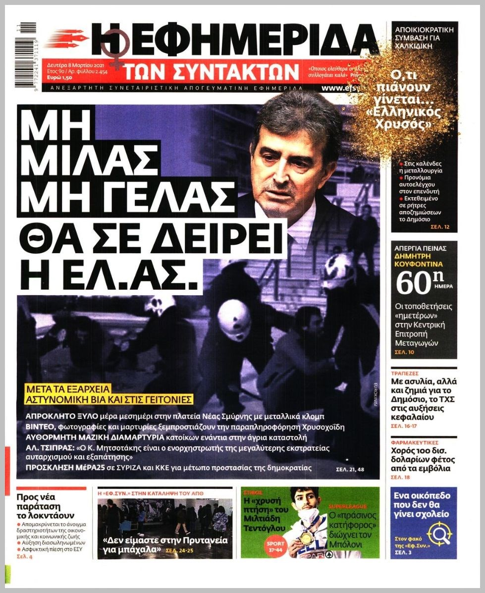 Οι πολιτικές εφημερίδες 8/3/2021 Διονύσης Νίκκας 06:14, Δευτέρα 08 Μαρτίου 2021 Media Διαβάστε τα πρωτοσέλιδα των πολιτικών εφημερίδων… ΕΦΗΜΕΡΙΔΕΣ ΠΡΩΤΟΣΕΛΙΔΑ Μοιράσου το: σχολίασε κι εσύ (0 σχόλια) Ακολουθήστε το enikos.gr στο Google News και μάθετε πρώτοι όλες τις ειδήσεις Δείτε όλες τις τελευταίες ειδήσεις από την Ελλάδα και τον Κόσμο στο enikos.gr Ειδήσεις Ροή Ειδήσεων 4 ώρες πριν Υπόθεση Έπσταϊν: Το Υπουργείο Δικαιοσύνης δημοσιοποίησε μια σειρά από εξαιρετικά επεξεργασμένα αρχεία – «Λείπουν τα πιο σημαντικά έγγραφα», λένε οι Δημοκρατικοί 46 λεπτά πριν Γιορτές με μπλόκα για τους αγρότες: Ανοίγουν διόδια και μοιράζουν προϊόντα στους ταξιδιώτες 1 ώρα πριν Εξαφάνιση 33χρονου γιατρού στην Κρήτη: «Άναψα τα φώτα, τρόμαξε και άρχισε να τρέχει στα χωράφια» – Η τελευταία διαδρομή και η μαρτυρία «κλειδί» 3 ώρες πριν Ο «χάρτης» με τις αυξήσεις και τις φοροελαφρύνσεις του 2026 – Ποιοι και πόσα κερδίζουν 1 ώρα πριν Τα αρχεία του Έπσταϊν αποκαλύπτουν φωτογραφία του έκπτωτου πρίγκιπα Άντριου – Είναι ξαπλωμένος στην αγκαλιά 5 γυναικών 1 ώρα πριν Μία νέα «χρυσή» περίοδος αρχίζει για 3 ζώδια από σήμερα – «Μία αναπάντεχη ευκαιρία οδηγεί στην επιτυχία» 5 ώρες πριν Αυγά: Πόσα μπορείτε να τρώτε την ημέρα με ασφάλεια για μέγιστη πρόσληψη πρωτεΐνης 3 ώρες πριν Αρχαιολόγοι ανακάλυψαν σε χωράφι απεικόνιση 600 ετών ενός Αγίου – Τα στοιχεία που δείχνουν ότι μαρτύρησε 2 ώρες πριν Αγχώνεται για το χριστουγεννιάτικο δώρο που πήρε στην πλούσια σύντροφό του – «Φοβάμαι πως θα το βρει φθηνιάρικο, φοράει βραχιόλια Cartier» 4 λεπτά πριν Τα Labubu «μετακομίζουν» στο Χόλιγουντ: Η Sony Pictures ετοιμάζει live-action ταινία με τον σκηνοθέτη του «Wonka» 11 λεπτά πριν Νέες ταυτότητες: Μεγάλη αναμονή για ραντεβού στην Αττική – Τέλος τα ταξίδια εκτός Ελλάδος από τον Αύγουστο για όσους δεν έχουν αλλάξει 20 λεπτά πριν Οι 7 φράσεις που δεν λένε ποτέ οι συναισθηματικά έξυπνοι άνθρωποι κατά τη διάρκεια ενός καβγά 23 λεπτά πριν Τηλεθέαση (19/12): Ανατροπές και πρωτιές στην πρωινή ζώνη 31 λεπτά πριν Πώς η κλιματική αλλαγή επηρεάζει εγκύους και βρέφη – Οι επιπτώσεις των υψηλών θερμοκρασιών ENIKOS NETWORK Είστε μόνιμα απρόσεκτοι; 3 σημάδια που δείχνουν ότι μπορεί να είναι σύμπτωμα πάθησης Πόσα κιλά παίρνουμε πραγματικά τα Χριστούγεννα, σύμφωνα με την επιστήμη – Πώς να το αποτρέψουμε; e-ΕΦΚΑ και ΔΥΠΑ: Έρχονται νέες πληρωμές έως τις 24 Δεκεμβρίου – Ποιοι πάνε ταμείο Επίδομα παιδιού: Τι αλλάζει από το 2026 – Το όφελος από τις φορολογικές ελαφρύνσεις Χαρτογραφώντας το «σημείο χωρίς επιστροφή»: Για πρώτη φορά αποκαλύπτεται με λεπτομέρεια το ακανθώδες όριο της ατμόσφαιρας τ... Η Google καταργεί τη λειτουργία «dark web report» – Πώς θα μπορούν οι χρήστες να διαγράφουν τα δεδομένα τους περισσότερα 09:30 , Σάββατο 20 Δεκεμβρίου 2025 «Porto Leone: Στη γειτονιά με τα κόκκινα φανάρια» – Ο Χρόνης αποκαλύπτει στην Αλεξάνδρα το μυστικό για το παιδί της Λένας Η μεγάλη δραματική σειρά του Apha «Porto Leone: Στη γειτονιά με τα κόκκινα φανάρια» μας μεταφέ... 08:14 , Σάββατο 20 Δεκεμβρίου 2025 Τρομεροί γονείς: Η Μαρία Καβογιάννη εισβάλλει στο σπίτι της οικογένειας Στεφανίδη Όσα θα δούμε στο νέο διπλό επεισόδιο της σειράς «Τρομεροί γονείς», σήμερα Σάββατο 20 Δεκεμβρίο... 05:48 , Σάββατο 20 Δεκεμβρίου 2025 Οι οικονομικές εφημερίδες 20/12/2025 Διαβάστε τα πρωτοσέλιδα από τις οικονομικές εφημερίδες, σήμερα 20/12/2025. 05:43 , Σάββατο 20 Δεκεμβρίου 2025 Οι αθλητικές εφημερίδες 20/12/2025 Διαβάστε τα πρωτοσέλιδα από τις αθλητικ