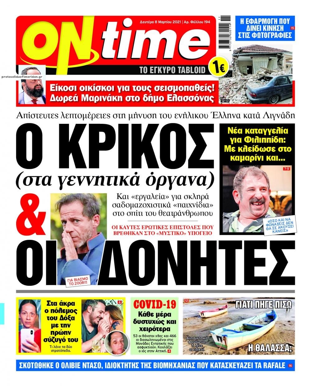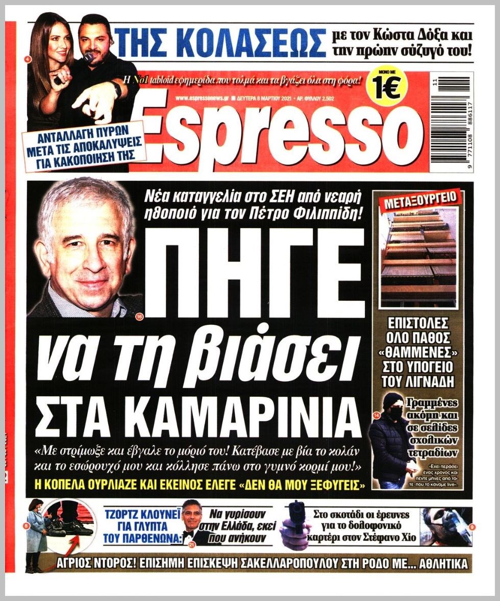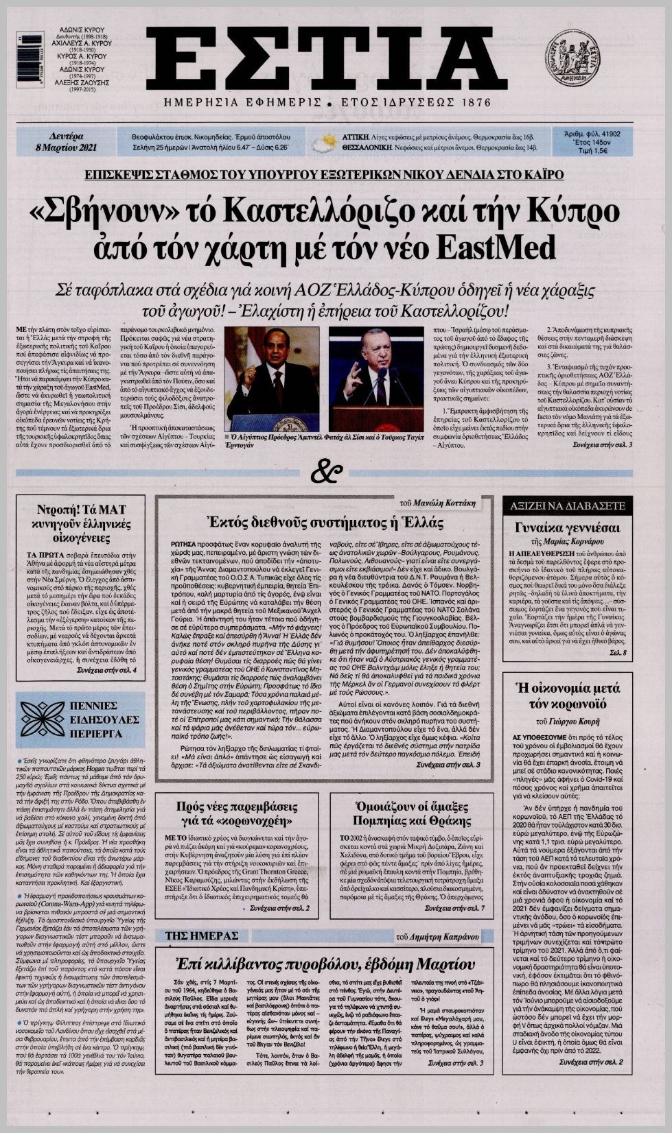 Οι πολιτικές εφημερίδες 8/3/2021 Διονύσης Νίκκας 06:14, Δευτέρα 08 Μαρτίου 2021 Media Διαβάστε τα πρωτοσέλιδα των πολιτικών εφημερίδων… ΕΦΗΜΕΡΙΔΕΣ ΠΡΩΤΟΣΕΛΙΔΑ Μοιράσου το: σχολίασε κι εσύ (0 σχόλια) Ακολουθήστε το enikos.gr στο Google News και μάθετε πρώτοι όλες τις ειδήσεις Δείτε όλες τις τελευταίες ειδήσεις από την Ελλάδα και τον Κόσμο στο enikos.gr Ειδήσεις Ροή Ειδήσεων 4 ώρες πριν Υπόθεση Έπσταϊν: Το Υπουργείο Δικαιοσύνης δημοσιοποίησε μια σειρά από εξαιρετικά επεξεργασμένα αρχεία – «Λείπουν τα πιο σημαντικά έγγραφα», λένε οι Δημοκρατικοί 46 λεπτά πριν Γιορτές με μπλόκα για τους αγρότες: Ανοίγουν διόδια και μοιράζουν προϊόντα στους ταξιδιώτες 1 ώρα πριν Εξαφάνιση 33χρονου γιατρού στην Κρήτη: «Άναψα τα φώτα, τρόμαξε και άρχισε να τρέχει στα χωράφια» – Η τελευταία διαδρομή και η μαρτυρία «κλειδί» 3 ώρες πριν Ο «χάρτης» με τις αυξήσεις και τις φοροελαφρύνσεις του 2026 – Ποιοι και πόσα κερδίζουν 1 ώρα πριν Τα αρχεία του Έπσταϊν αποκαλύπτουν φωτογραφία του έκπτωτου πρίγκιπα Άντριου – Είναι ξαπλωμένος στην αγκαλιά 5 γυναικών 1 ώρα πριν Μία νέα «χρυσή» περίοδος αρχίζει για 3 ζώδια από σήμερα – «Μία αναπάντεχη ευκαιρία οδηγεί στην επιτυχία» 5 ώρες πριν Αυγά: Πόσα μπορείτε να τρώτε την ημέρα με ασφάλεια για μέγιστη πρόσληψη πρωτεΐνης 3 ώρες πριν Αρχαιολόγοι ανακάλυψαν σε χωράφι απεικόνιση 600 ετών ενός Αγίου – Τα στοιχεία που δείχνουν ότι μαρτύρησε 2 ώρες πριν Αγχώνεται για το χριστουγεννιάτικο δώρο που πήρε στην πλούσια σύντροφό του – «Φοβάμαι πως θα το βρει φθηνιάρικο, φοράει βραχιόλια Cartier» 4 λεπτά πριν Τα Labubu «μετακομίζουν» στο Χόλιγουντ: Η Sony Pictures ετοιμάζει live-action ταινία με τον σκηνοθέτη του «Wonka» 11 λεπτά πριν Νέες ταυτότητες: Μεγάλη αναμονή για ραντεβού στην Αττική – Τέλος τα ταξίδια εκτός Ελλάδος από τον Αύγουστο για όσους δεν έχουν αλλάξει 20 λεπτά πριν Οι 7 φράσεις που δεν λένε ποτέ οι συναισθηματικά έξυπνοι άνθρωποι κατά τη διάρκεια ενός καβγά 23 λεπτά πριν Τηλεθέαση (19/12): Ανατροπές και πρωτιές στην πρωινή ζώνη 31 λεπτά πριν Πώς η κλιματική αλλαγή επηρεάζει εγκύους και βρέφη – Οι επιπτώσεις των υψηλών θερμοκρασιών ENIKOS NETWORK Είστε μόνιμα απρόσεκτοι; 3 σημάδια που δείχνουν ότι μπορεί να είναι σύμπτωμα πάθησης Πόσα κιλά παίρνουμε πραγματικά τα Χριστούγεννα, σύμφωνα με την επιστήμη – Πώς να το αποτρέψουμε; e-ΕΦΚΑ και ΔΥΠΑ: Έρχονται νέες πληρωμές έως τις 24 Δεκεμβρίου – Ποιοι πάνε ταμείο Επίδομα παιδιού: Τι αλλάζει από το 2026 – Το όφελος από τις φορολογικές ελαφρύνσεις Χαρτογραφώντας το «σημείο χωρίς επιστροφή»: Για πρώτη φορά αποκαλύπτεται με λεπτομέρεια το ακανθώδες όριο της ατμόσφαιρας τ... Η Google καταργεί τη λειτουργία «dark web report» – Πώς θα μπορούν οι χρήστες να διαγράφουν τα δεδομένα τους περισσότερα 09:30 , Σάββατο 20 Δεκεμβρίου 2025 «Porto Leone: Στη γειτονιά με τα κόκκινα φανάρια» – Ο Χρόνης αποκαλύπτει στην Αλεξάνδρα το μυστικό για το παιδί της Λένας Η μεγάλη δραματική σειρά του Apha «Porto Leone: Στη γειτονιά με τα κόκκινα φανάρια» μας μεταφέ... 08:14 , Σάββατο 20 Δεκεμβρίου 2025 Τρομεροί γονείς: Η Μαρία Καβογιάννη εισβάλλει στο σπίτι της οικογένειας Στεφανίδη Όσα θα δούμε στο νέο διπλό επεισόδιο της σειράς «Τρομεροί γονείς», σήμερα Σάββατο 20 Δεκεμβρίο... 05:48 , Σάββατο 20 Δεκεμβρίου 2025 Οι οικονομικές εφημερίδες 20/12/2025 Διαβάστε τα πρωτοσέλιδα από τις οικονομικές εφημερίδες, σήμερα 20/12/2025. 05:43 , Σάββατο 20 Δεκεμβρίου 2025 Οι αθλητικές εφημερίδες 20/12/2025 Διαβάστε τα πρωτοσέλιδα από τις αθλητικ