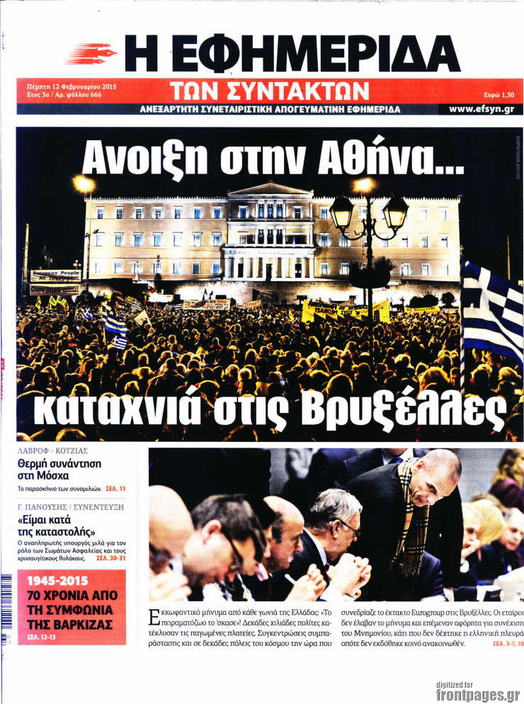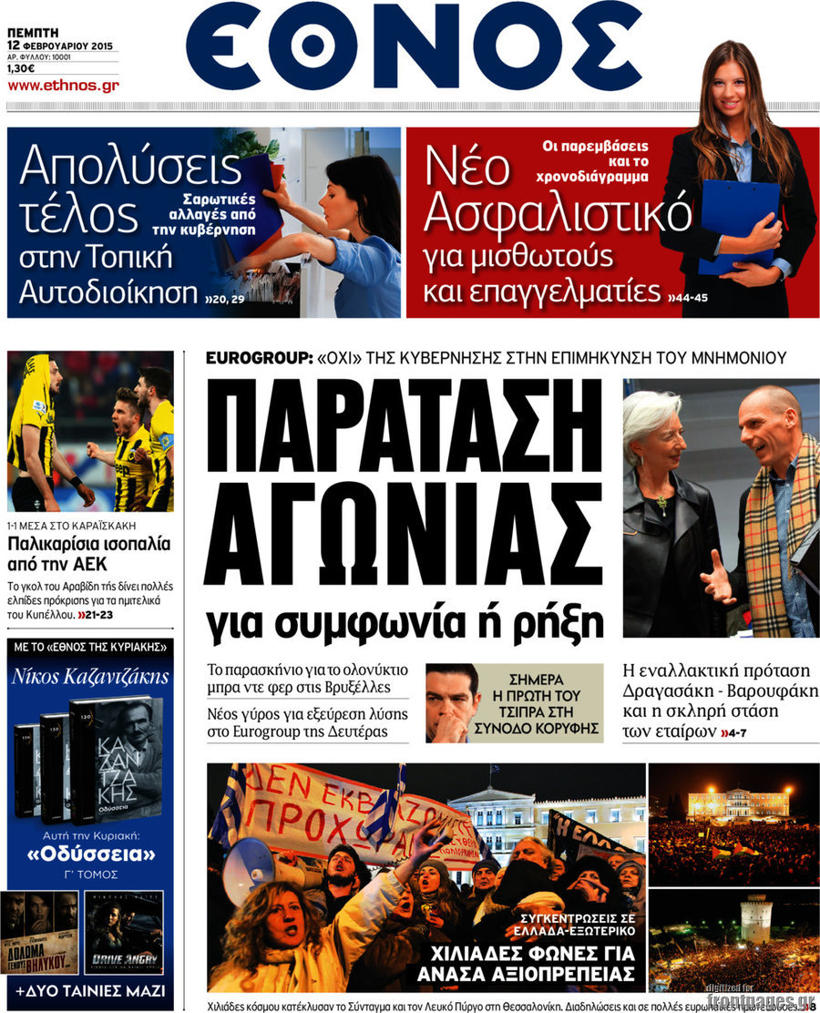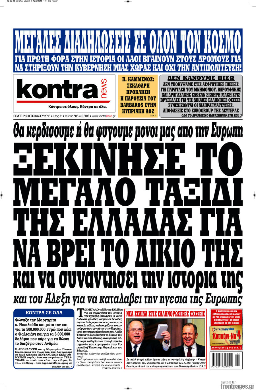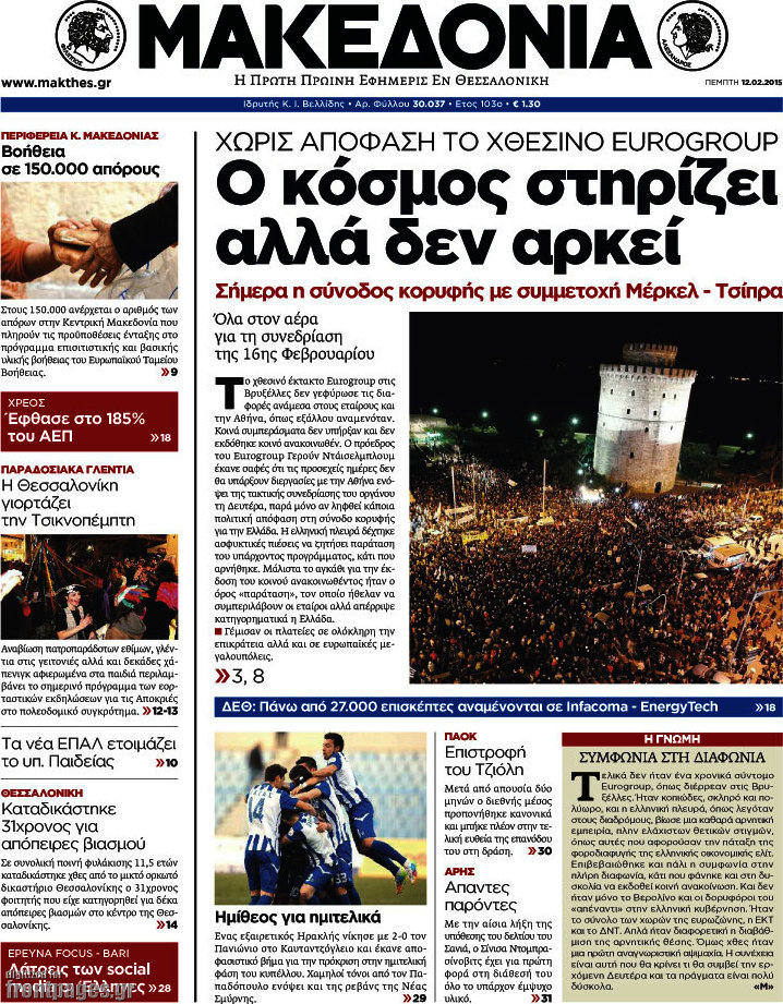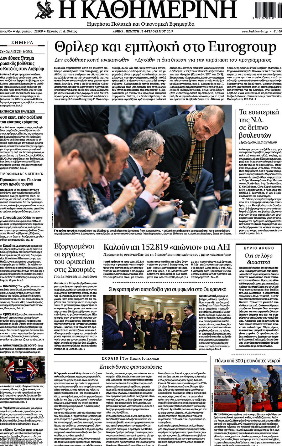 Οι πολιτικές εφημερίδες Enikos Newsroom 07:38, Πέμπτη 12 Φεβρουαρίου 2015 Media ΠΟΛΙΤΙΚΕΣ ΕΦΗΜΕΡΙΔΕΣ ΠΡΩΤΟΣΕΛΙΔΑ Μοιράσου το: σχολίασε κι εσύ (0 σχόλια) Ακολουθήστε το enikos.gr στο Google News και μάθετε πρώτοι όλες τις ειδήσεις Δείτε όλες τις τελευταίες ειδήσεις από την Ελλάδα και τον Κόσμο στο enikos.gr Ειδήσεις Ροή Ειδήσεων 4 ώρες πριν Χριστούγεννα στα μπλόκα: Επιμένουν στις κινητοποιήσεις τους οι αγρότες – Ανοίγουν τα διόδια το Σαββατοκύριακο 4 ώρες πριν Ουκρανία: Η άνευ προηγουμένου επίθεση σε ρωσικό τάνκερ στη Μεσόγειο και το μήνυμα προς στον Πούτιν – Το «μακρύ χέρι» του Κιέβου 3 ώρες πριν Πούτιν: Τα μηνύματα σε Ευρώπη και ΝΑΤΟ από το μαραθώνιο «σόου» του – Η απαίτηση για «σεβασμό» και η ειρήνη «με τους όρους» της Μόσχας 4 ώρες πριν Τραμπ: Δεν αποκλείει την πιθανότητα ενός πολέμου στη Βενεζουέλα – «Ο Μαδούρο ξέρει καλύτερα από τον καθένα τι ακριβώς θέλω» 5 ώρες πριν Συνεχίζει να προκαλεί ο Μίτσκοσκι: «Για μένα το όνομα Μακεδονία είναι ιερό» 3 ώρες πριν Ανακαλύφθηκαν αρχαία χρυσά νομίσματα 2.200 ετών που απεικονίζουν τον θεό Απόλλωνα – Η άγνωστη σύνδεση με τον Φίλιππο Β΄ της Μακεδονίας 4 ώρες πριν Ύπνος: Μια κρυφή κατάσταση του εγκεφάλου πριν από τον ύπνο μπορεί να είναι το “κλειδί” για υψηλή ευφυΐα και δημιουργικότητα 5 ώρες πριν Αριθμολογία: Οι άνθρωποι που έχουν γεννηθεί αυτές τις 4 ημερομηνίες, συχνά παρεξηγούνται – «Η καλοσύνη τους κρύβει τεράστια δύναμη» 6 ώρες πριν Ξεχάστε το καθάρισμα το Σαββατοκύριακο: Ο «κανόνας των 20 λεπτών» που θα σας λύσει τα χέρια 15 λεπτά πριν ΗΠΑ: Τραγωδία στην Αλαμπάμα – Σκότωσε την δημοσιογράφο σύζυγό του και αυτοκτόνησε μπροστά στον 3χρονο γιο τους 29 λεπτά πριν Πρόταση γάμου στο ΣΕΦ κατά την διάρκεια του αγώνα Ολυμπιακός-Βιλερμπάν – Δείτε βίντεο 44 λεπτά πριν Euroleague: Επέστρεψε στις νίκες ο Ολυμπιακός, πήρε την ματσάρα της χρονιάς η Μπάρτσα – Τα αποτελέσματα και η βαθμολογία 59 λεπτά πριν Συρία: Μαζικά πλήγματα των ΗΠΑ σε θέσεις του Ισλαμικού Κράτους – Χέγκσεθ: «Δεν είναι αρχή πολέμου, είναι μια δήλωση εκδίκησης» για το θάνατο των στρατιωτών μας 1 ώρα πριν Ουκρανία: Ολοκληρώθηκαν οι συνομιλίες με τους Αμερικανούς κι Ευρωπαίους διαπραγματευτές ENIKOS NETWORK Το ΕΚΑΒ τιμήθηκε από την Ακαδημία Αθηνών για τα 40 χρόνια προσφοράς του Έχετε πραγματικά μεγάλη καρδιά; 10 χαρακτηριστικά όσων έχουν καλοσύνη Αναστολή μέτρων αναγκαστικής εκτέλεσης για κτηνοτρόφους που πλήττονται από την ευλογιά των αιγοπροβάτων Πλήρης επάρκεια προϊόντων στις λαϊκές της Αττικής, παρά τις αγροτικές κινητοποιήσεις – Τι απαντούν οι πωλητές Χαρτογραφώντας το «σημείο χωρίς επιστροφή»: Για πρώτη φορά αποκαλύπτεται με λεπτομέρεια το ακανθώδες όριο της ατμόσφαιρας τ... Η Google καταργεί τη λειτουργία «dark web report» – Πώς θα μπορούν οι χρήστες να διαγράφουν τα δεδομένα τους περισσότερα 22:42 , Παρασκευή 19 Δεκεμβρίου 2025 Γιώργος Γιαννόπουλος για “Το σόι σου”: “Είναι ευτυχία και ευλογία αυτή η σειρά” «Είναι ευτυχία και ευλογία η συγκυρία αυτής της σειράς», θα πει ο Γιώργος Γιαννόπουλος -ο αγαπ... 20:37 , Παρασκευή 19 Δεκεμβρίου 2025 Don’t Forget The Lyrics: Η Έλλη Κοκκίνου υποδέχεται 4 παίκτες που θα κάνουν τα πάντα για να μη χάσουν ούτε… μισή λέξη από τους στίχους Το «Don’t Forget The Lyrics» επιστρέφει απόψε, Παρασκευή 19 Δεκεμβρίου, στις 21:00 με νέο επει... 19:31 , Παρασκευή 19 Δεκεμβρίου 2025 GNTM: Απόψε ο μεγάλος τελικός για τους 4 φιναλίστ Έπειτα από μήνες γεμάτους μόδα, δημιουργία και έντονες αναμετρήσεις, το GNTM
