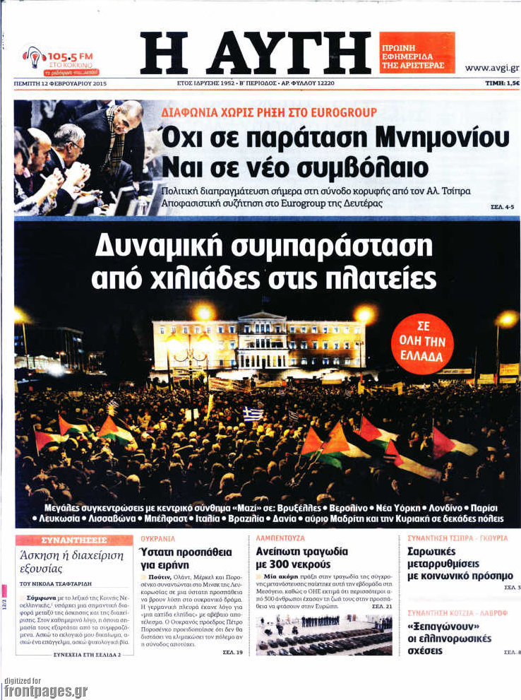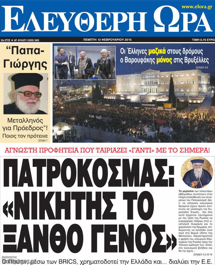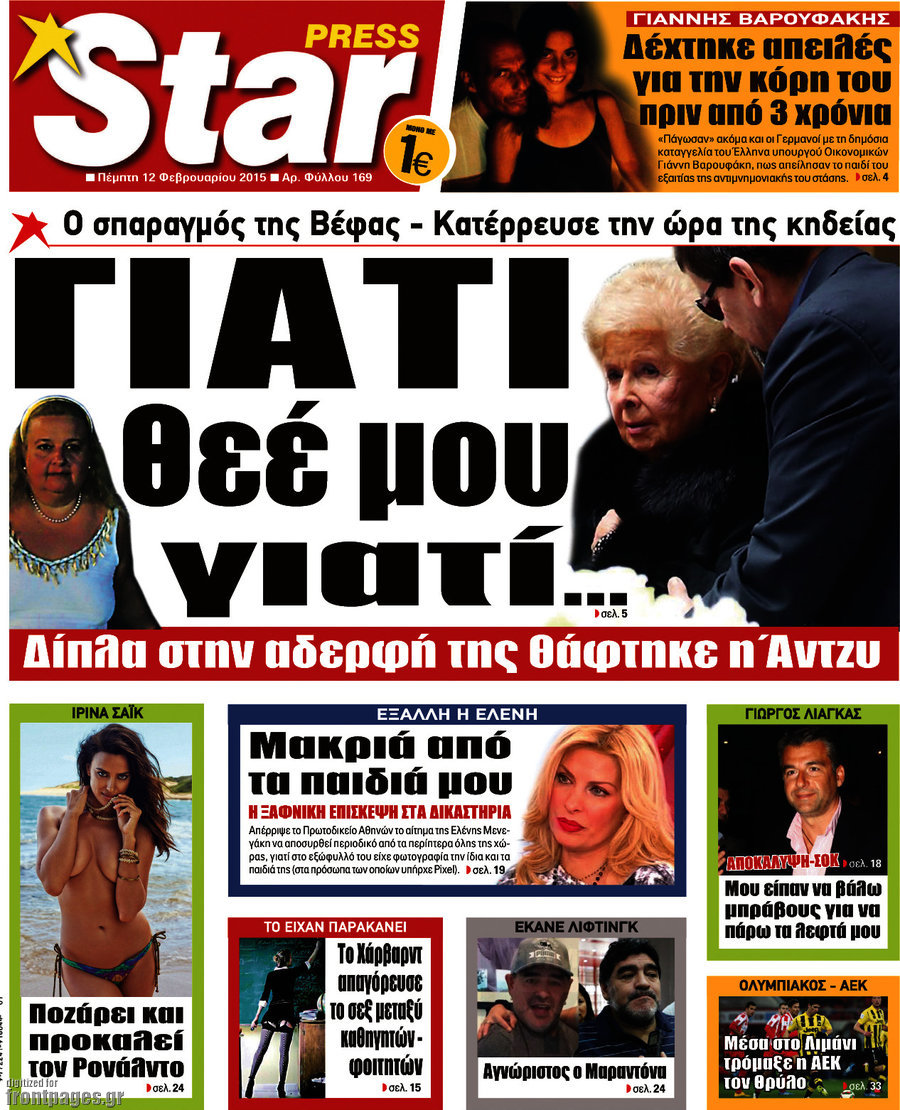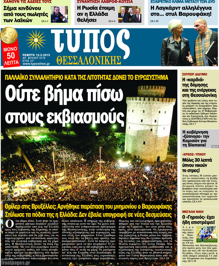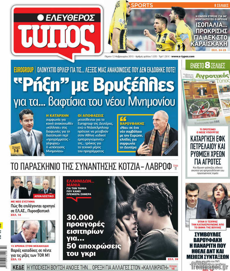 Οι πολιτικές εφημερίδες Enikos Newsroom 07:38, Πέμπτη 12 Φεβρουαρίου 2015 Media ΠΟΛΙΤΙΚΕΣ ΕΦΗΜΕΡΙΔΕΣ ΠΡΩΤΟΣΕΛΙΔΑ Μοιράσου το: σχολίασε κι εσύ (0 σχόλια) Ακολουθήστε το enikos.gr στο Google News και μάθετε πρώτοι όλες τις ειδήσεις Δείτε όλες τις τελευταίες ειδήσεις από την Ελλάδα και τον Κόσμο στο enikos.gr Ειδήσεις Ροή Ειδήσεων 4 ώρες πριν Χριστούγεννα στα μπλόκα: Επιμένουν στις κινητοποιήσεις τους οι αγρότες – Ανοίγουν τα διόδια το Σαββατοκύριακο 4 ώρες πριν Ουκρανία: Η άνευ προηγουμένου επίθεση σε ρωσικό τάνκερ στη Μεσόγειο και το μήνυμα προς στον Πούτιν – Το «μακρύ χέρι» του Κιέβου 3 ώρες πριν Πούτιν: Τα μηνύματα σε Ευρώπη και ΝΑΤΟ από το μαραθώνιο «σόου» του – Η απαίτηση για «σεβασμό» και η ειρήνη «με τους όρους» της Μόσχας 4 ώρες πριν Τραμπ: Δεν αποκλείει την πιθανότητα ενός πολέμου στη Βενεζουέλα – «Ο Μαδούρο ξέρει καλύτερα από τον καθένα τι ακριβώς θέλω» 5 ώρες πριν Συνεχίζει να προκαλεί ο Μίτσκοσκι: «Για μένα το όνομα Μακεδονία είναι ιερό» 3 ώρες πριν Ανακαλύφθηκαν αρχαία χρυσά νομίσματα 2.200 ετών που απεικονίζουν τον θεό Απόλλωνα – Η άγνωστη σύνδεση με τον Φίλιππο Β΄ της Μακεδονίας 4 ώρες πριν Ύπνος: Μια κρυφή κατάσταση του εγκεφάλου πριν από τον ύπνο μπορεί να είναι το “κλειδί” για υψηλή ευφυΐα και δημιουργικότητα 5 ώρες πριν Αριθμολογία: Οι άνθρωποι που έχουν γεννηθεί αυτές τις 4 ημερομηνίες, συχνά παρεξηγούνται – «Η καλοσύνη τους κρύβει τεράστια δύναμη» 6 ώρες πριν Ξεχάστε το καθάρισμα το Σαββατοκύριακο: Ο «κανόνας των 20 λεπτών» που θα σας λύσει τα χέρια 15 λεπτά πριν ΗΠΑ: Τραγωδία στην Αλαμπάμα – Σκότωσε την δημοσιογράφο σύζυγό του και αυτοκτόνησε μπροστά στον 3χρονο γιο τους 29 λεπτά πριν Πρόταση γάμου στο ΣΕΦ κατά την διάρκεια του αγώνα Ολυμπιακός-Βιλερμπάν – Δείτε βίντεο 44 λεπτά πριν Euroleague: Επέστρεψε στις νίκες ο Ολυμπιακός, πήρε την ματσάρα της χρονιάς η Μπάρτσα – Τα αποτελέσματα και η βαθμολογία 59 λεπτά πριν Συρία: Μαζικά πλήγματα των ΗΠΑ σε θέσεις του Ισλαμικού Κράτους – Χέγκσεθ: «Δεν είναι αρχή πολέμου, είναι μια δήλωση εκδίκησης» για το θάνατο των στρατιωτών μας 1 ώρα πριν Ουκρανία: Ολοκληρώθηκαν οι συνομιλίες με τους Αμερικανούς κι Ευρωπαίους διαπραγματευτές ENIKOS NETWORK Το ΕΚΑΒ τιμήθηκε από την Ακαδημία Αθηνών για τα 40 χρόνια προσφοράς του Έχετε πραγματικά μεγάλη καρδιά; 10 χαρακτηριστικά όσων έχουν καλοσύνη Αναστολή μέτρων αναγκαστικής εκτέλεσης για κτηνοτρόφους που πλήττονται από την ευλογιά των αιγοπροβάτων Πλήρης επάρκεια προϊόντων στις λαϊκές της Αττικής, παρά τις αγροτικές κινητοποιήσεις – Τι απαντούν οι πωλητές Χαρτογραφώντας το «σημείο χωρίς επιστροφή»: Για πρώτη φορά αποκαλύπτεται με λεπτομέρεια το ακανθώδες όριο της ατμόσφαιρας τ... Η Google καταργεί τη λειτουργία «dark web report» – Πώς θα μπορούν οι χρήστες να διαγράφουν τα δεδομένα τους περισσότερα 22:42 , Παρασκευή 19 Δεκεμβρίου 2025 Γιώργος Γιαννόπουλος για “Το σόι σου”: “Είναι ευτυχία και ευλογία αυτή η σειρά” «Είναι ευτυχία και ευλογία η συγκυρία αυτής της σειράς», θα πει ο Γιώργος Γιαννόπουλος -ο αγαπ... 20:37 , Παρασκευή 19 Δεκεμβρίου 2025 Don’t Forget The Lyrics: Η Έλλη Κοκκίνου υποδέχεται 4 παίκτες που θα κάνουν τα πάντα για να μη χάσουν ούτε… μισή λέξη από τους στίχους Το «Don’t Forget The Lyrics» επιστρέφει απόψε, Παρασκευή 19 Δεκεμβρίου, στις 21:00 με νέο επει... 19:31 , Παρασκευή 19 Δεκεμβρίου 2025 GNTM: Απόψε ο μεγάλος τελικός για τους 4 φιναλίστ Έπειτα από μήνες γεμάτους μόδα, δημιουργία και έντονες αναμετρήσεις, το GNTM