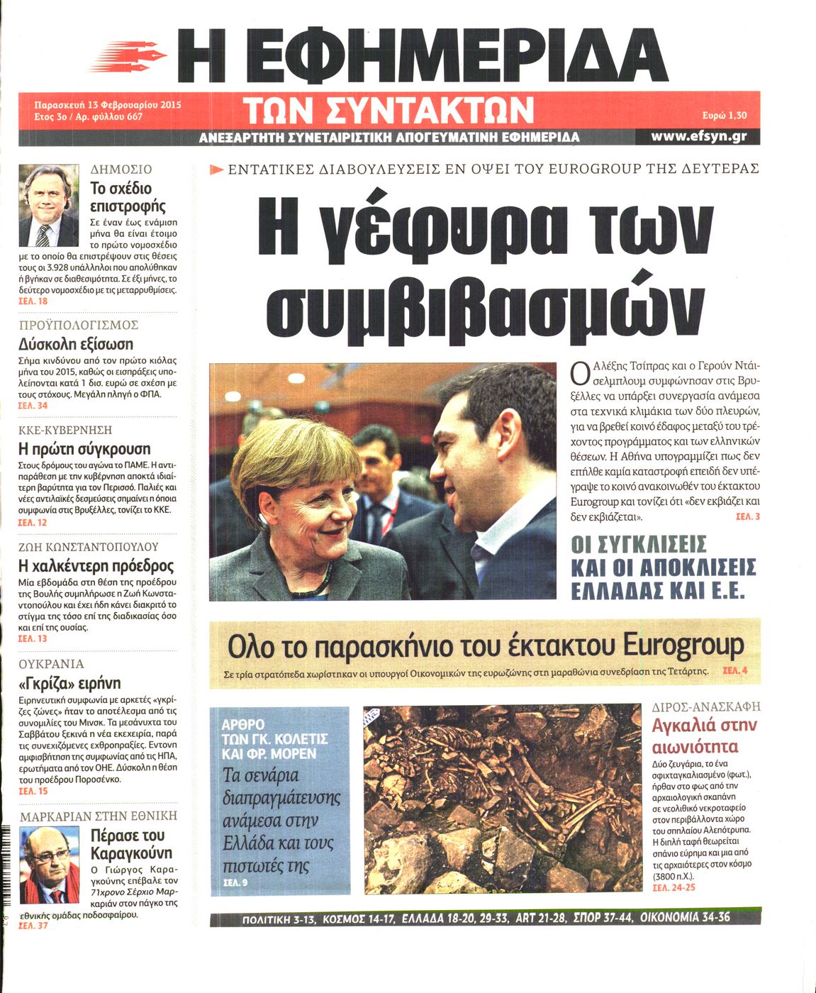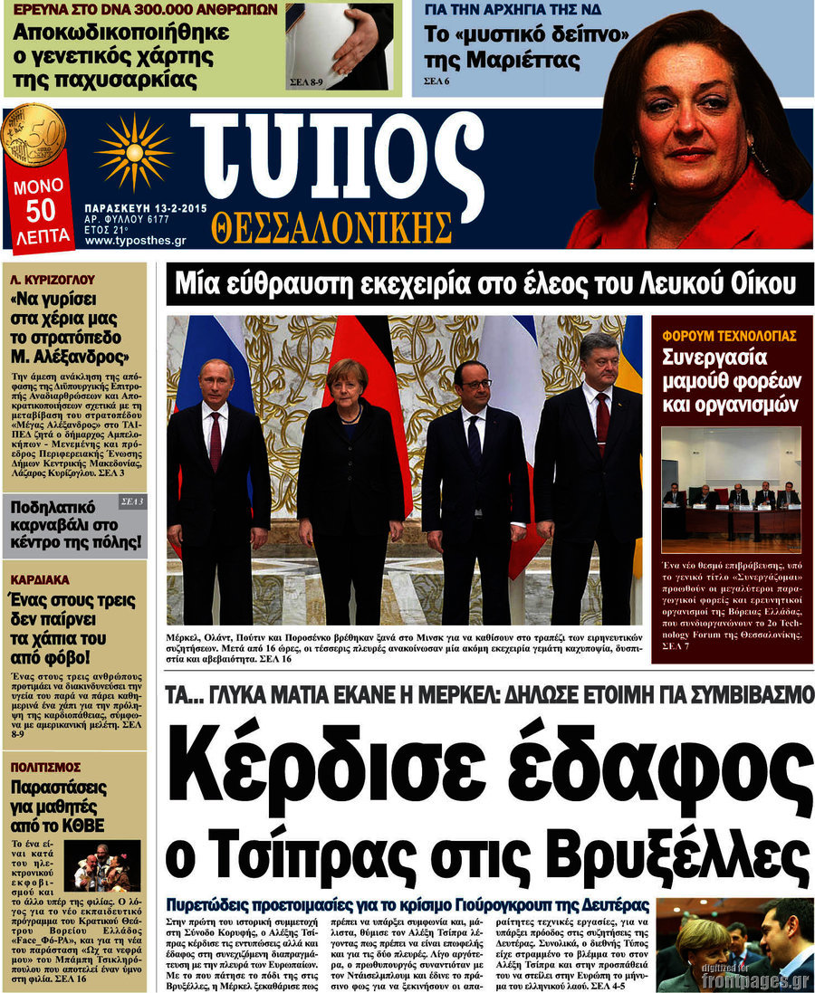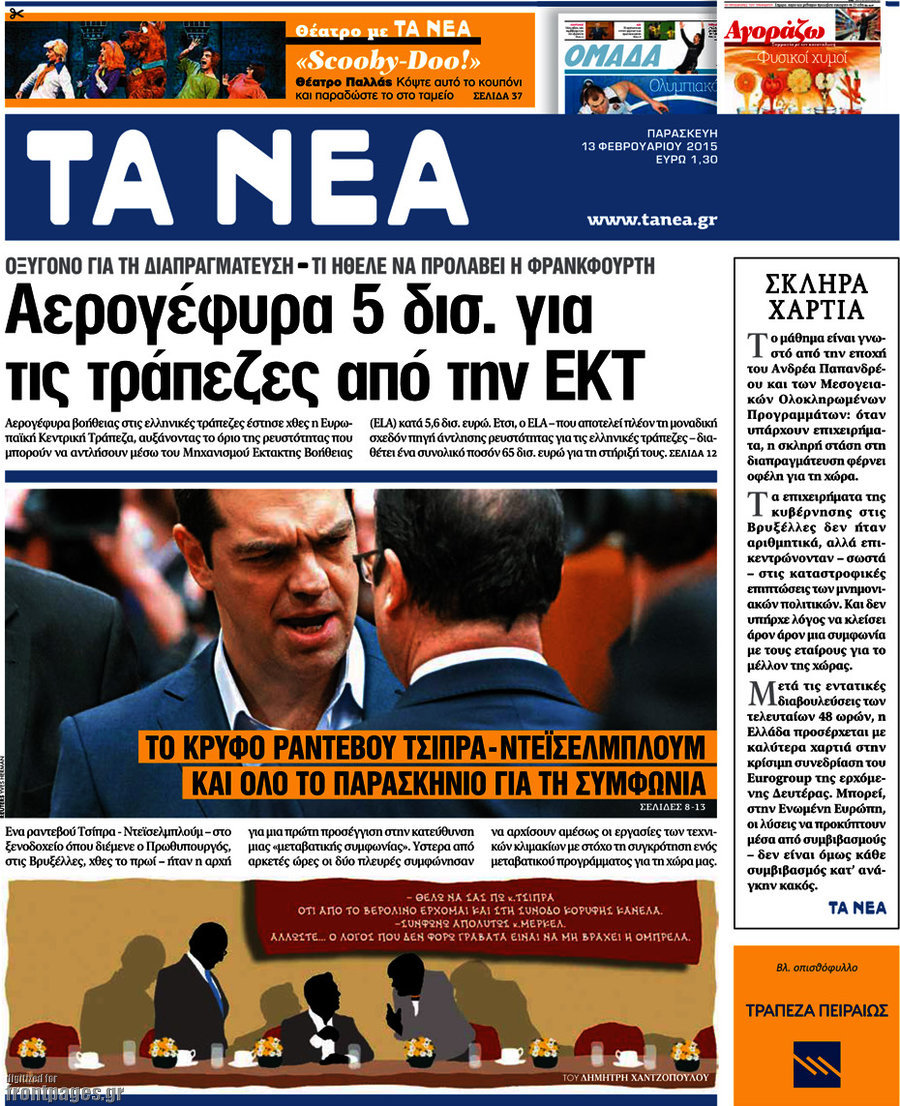 Οι πολιτικές εφημερίδες Enikos Newsroom 07:50, Παρασκευή 13 Φεβρουαρίου 2015 Media Δείτε τα σημερινά πρωτοσέλιδα των πολιτικών εφημερίδων: ΕΞΩΦΥΛΛΑ ΕΦΗΜΕΡΙΔΕΣ ΠΟΛΙΤΙΚΕΣ ΕΦΗΜΕΡΙΔΕΣ ΠΡΩΤΟΣΕΛΙΔΑ Μοιράσου το: σχολίασε κι εσύ (0 σχόλια) Ακολουθήστε το enikos.gr στο Google News και μάθετε πρώτοι όλες τις ειδήσεις Δείτε όλες τις τελευταίες ειδήσεις από την Ελλάδα και τον Κόσμο στο enikos.gr Ειδήσεις Ροή Ειδήσεων 6 ώρες πριν Εκτός ευρωομάδας ΣΥΡΙΖΑ ο Νίκος Παππάς μετά την επίθεση στον δημοσιογράφο Νίκο Γιαννόπουλο – Η μήνυση και οι νέες δηλώσεις 7 ώρες πριν «Αγριεύουν» οι αγρότες: «Δεν συντρέχει λόγος συνάντησης με τον πρωθυπουργό» – Ώρα αποφάσεων στη σύσκεψη της Πέμπτης 7 ώρες πριν Κυψέλη: Χωρίς την οικογένειά της δίπλα της απολογήθηκε η 16χρονη – «Της είχε επιτεθεί κάποιος για να την βιάσει, φοβήθηκε και κυκλοφορούσε με μαχαίρι» 6 ώρες πριν Politico: Το πρόβλημα της Ευρώπης δεν είναι το Βέλγιο αλλά ο Ντόναλντ Τραμπ 8 ώρες πριν Αλεξανδρούπολη: Πολυοργανική ανεπάρκεια λόγω υποσιτισμού η αιτία θανάτου του 3χρονου αγοριού 7 ώρες πριν Μυστήριο με τεράστιες κυκλικές πέτρες 200 κιλών – Ανακαλύφθηκαν τυχαία κατά τη διάρκεια οδικών έργων και κανείς δεν ξέρει από πού προέρχονται 8 ώρες πριν Ύπνος: Ειδικός εξηγεί τον πραγματικό λόγο που ξυπνάτε στις 4 τα ξημερώματα – Ο ρόλος των ορμονών και του κιρκάδιου ρυθμού 9 ώρες πριν Αριθμολογία: Οι άνθρωποι που έχουν γεννηθεί αυτές τις 4 ημερομηνίες, είναι τρυφεροί και αγαπούν ανιδιοτελώς 20 ώρες πριν 20 χρόνια τα Χριστούγεννα ξεκινούν στα Public με μεγάλη ποικιλία σε δώρα! 6 λεπτά πριν Τα ζώδια σήμερα, Πέμπτη 18 Δεκεμβρίου: Λέοντες, η καρδιά σας θέλει να εκφραστεί 14 λεπτά πριν Το Ποντίκι σήμερα Πέμπτη 18/12/2025 18 λεπτά πριν Εφημερεύοντα φαρμακεία σε Αθήνα και Θεσσαλονίκη (18/12) 21 λεπτά πριν Αλεξάνδρα Ούστα: «Αυτό που με τρέλανε στον σύζυγό μου ήταν η ορθολογική του σκέψη» 28 λεπτά πριν Μιχάλης Αεράκης: «Της είπα “θέλω να κάνουμε σπιτικό, αλλά υπάρχουν τρεις προϋποθέσεις…”» ENIKOS NETWORK Αϋπνία: Το κόλπο που θα σας βοηθήσει να κοιμηθείτε απόψε – Είναι απλό και έχει αποτέλεσμα 2,6 εκατομμύρια πολίτες έχουν ήδη εμβολιαστεί κατά της γρίπης ΕΛΣΤΑΤ: Τι δείχνουν τα νέα στοιχεία για τις ηλεκτρονικές παραγγελίες των επιχειρήσεων ΚΕΠΕ: Οι 3 διακριτές συμβολές των ΜμΕ και της μεταποίησης στην ελληνική οικονομία Χαρτογραφώντας το «σημείο χωρίς επιστροφή»: Για πρώτη φορά αποκαλύπτεται με λεπτομέρεια το ακανθώδες όριο της ατμόσφαιρας τ... Η Google καταργεί τη λειτουργία «dark web report» – Πώς θα μπορούν οι χρήστες να διαγράφουν τα δεδομένα τους περισσότερα 05:22 , Πέμπτη 18 Δεκεμβρίου 2025 Το Ποντίκι σήμερα Πέμπτη 18/12/2025 Διαβάστε το πρωτοσέλιδο της εφημερίδας «Το Ποντίκι» σήμερα 18/12/2025. 02:30 , Πέμπτη 18 Δεκεμβρίου 2025 Αλ Τσαντίρι Νιουζ: Η κόρη της Πάολα στο κοινό – Η ατάκα Λαζόπουλου που την έκανε να «κοκκινήσει» Γιορτινή διάθεση και ευχάριστες στιγμές γέμισε η αποψινή, τελευταία για το 2025, εκπομπή του «... 22:24 , Τετάρτη 17 Δεκεμβρίου 2025 Το Σπίτι Δίπλα Στο Ποτάμι: Σε κίνδυνο η υγεία του Απόστολου – Τι θα δούμε απόψε “Το Σπίτι Δίπλα στο Ποτάμι” ξετυλίγει το νήμα της ζωής των πέντε αδελφών με καταισ... 21:14 , Τετάρτη 17 Δεκεμβρίου 2025 Παιχνίδια Εκδίκησης: Θα καταφέρει ο Χρήστος να κλονίσει την εμπιστοσύνη της Μάγιας απέναντι στον Άγη; Τα «Παιχνίδια Εκδίκησης» έρχονται απόψε στις 22:30, στον Αντ1, με το τελευταίο επεισόδιο της χ... ΤΕΛΕΥΤΑΙΕΣ ΕΙΔΗΣΕΙΣ 6 λεπτά πριν Τα ζώδια σήμερα, Πέμπτη 18 Δεκεμβρίου: Λέοντες,