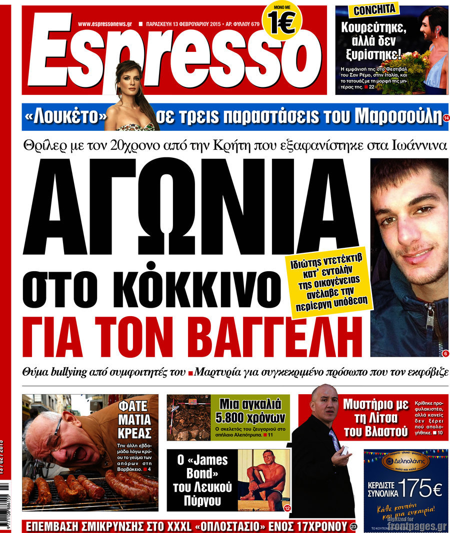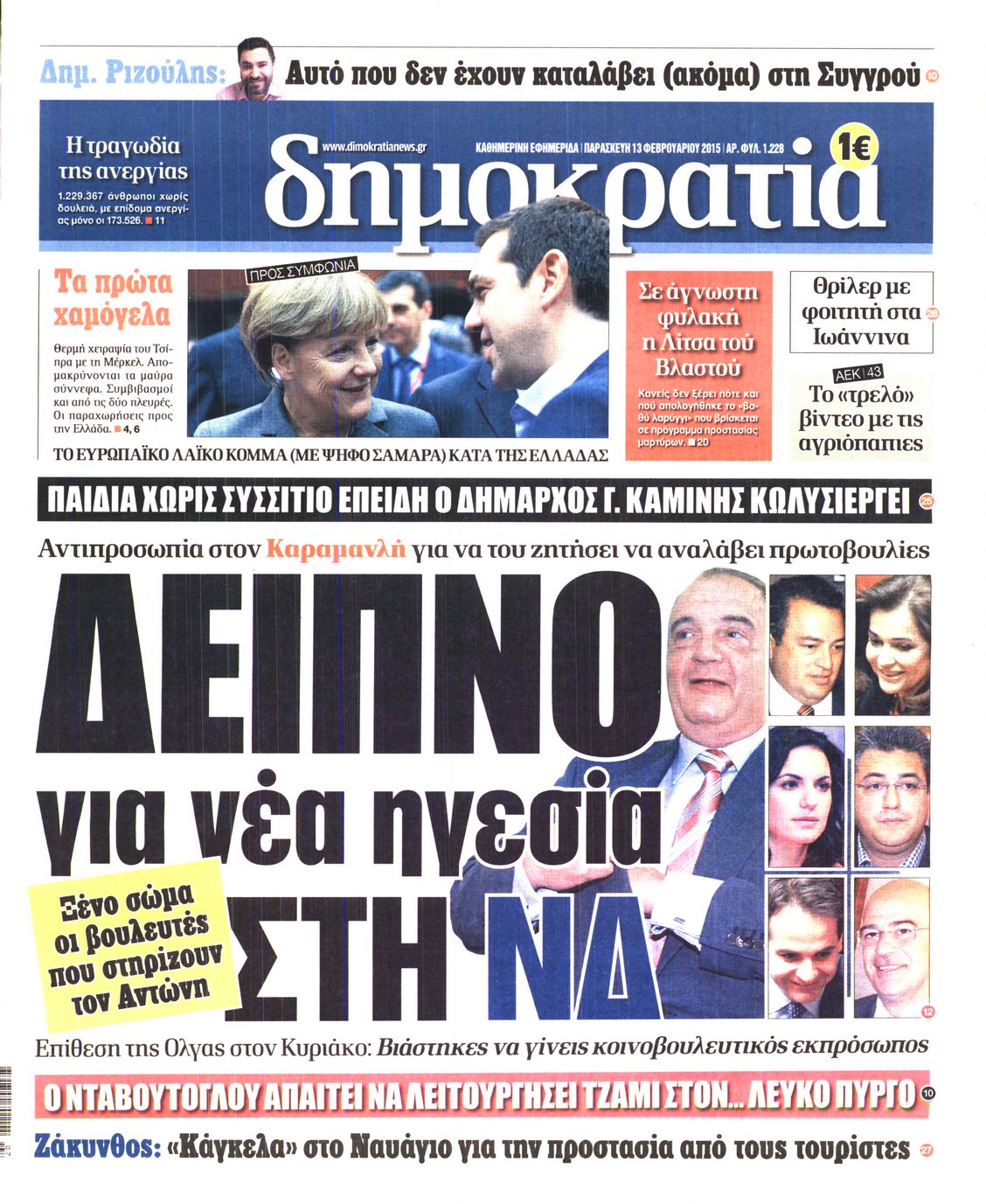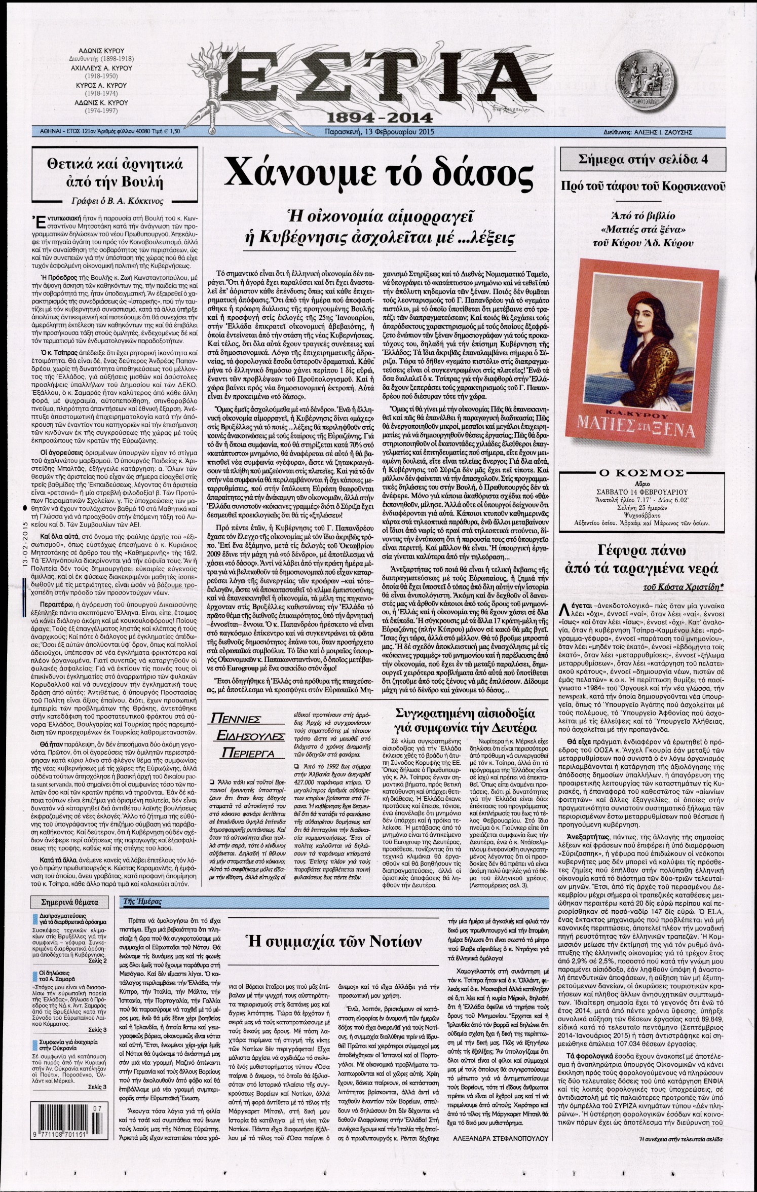 Οι πολιτικές εφημερίδες Enikos Newsroom 07:50, Παρασκευή 13 Φεβρουαρίου 2015 Media Δείτε τα σημερινά πρωτοσέλιδα των πολιτικών εφημερίδων: ΕΞΩΦΥΛΛΑ ΕΦΗΜΕΡΙΔΕΣ ΠΟΛΙΤΙΚΕΣ ΕΦΗΜΕΡΙΔΕΣ ΠΡΩΤΟΣΕΛΙΔΑ Μοιράσου το: σχολίασε κι εσύ (0 σχόλια) Ακολουθήστε το enikos.gr στο Google News και μάθετε πρώτοι όλες τις ειδήσεις Δείτε όλες τις τελευταίες ειδήσεις από την Ελλάδα και τον Κόσμο στο enikos.gr Ειδήσεις Ροή Ειδήσεων 6 ώρες πριν Εκτός ευρωομάδας ΣΥΡΙΖΑ ο Νίκος Παππάς μετά την επίθεση στον δημοσιογράφο Νίκο Γιαννόπουλο – Η μήνυση και οι νέες δηλώσεις 7 ώρες πριν «Αγριεύουν» οι αγρότες: «Δεν συντρέχει λόγος συνάντησης με τον πρωθυπουργό» – Ώρα αποφάσεων στη σύσκεψη της Πέμπτης 7 ώρες πριν Κυψέλη: Χωρίς την οικογένειά της δίπλα της απολογήθηκε η 16χρονη – «Της είχε επιτεθεί κάποιος για να την βιάσει, φοβήθηκε και κυκλοφορούσε με μαχαίρι» 6 ώρες πριν Politico: Το πρόβλημα της Ευρώπης δεν είναι το Βέλγιο αλλά ο Ντόναλντ Τραμπ 8 ώρες πριν Αλεξανδρούπολη: Πολυοργανική ανεπάρκεια λόγω υποσιτισμού η αιτία θανάτου του 3χρονου αγοριού 7 ώρες πριν Μυστήριο με τεράστιες κυκλικές πέτρες 200 κιλών – Ανακαλύφθηκαν τυχαία κατά τη διάρκεια οδικών έργων και κανείς δεν ξέρει από πού προέρχονται 8 ώρες πριν Ύπνος: Ειδικός εξηγεί τον πραγματικό λόγο που ξυπνάτε στις 4 τα ξημερώματα – Ο ρόλος των ορμονών και του κιρκάδιου ρυθμού 9 ώρες πριν Αριθμολογία: Οι άνθρωποι που έχουν γεννηθεί αυτές τις 4 ημερομηνίες, είναι τρυφεροί και αγαπούν ανιδιοτελώς 20 ώρες πριν 20 χρόνια τα Χριστούγεννα ξεκινούν στα Public με μεγάλη ποικιλία σε δώρα! 6 λεπτά πριν Τα ζώδια σήμερα, Πέμπτη 18 Δεκεμβρίου: Λέοντες, η καρδιά σας θέλει να εκφραστεί 14 λεπτά πριν Το Ποντίκι σήμερα Πέμπτη 18/12/2025 18 λεπτά πριν Εφημερεύοντα φαρμακεία σε Αθήνα και Θεσσαλονίκη (18/12) 21 λεπτά πριν Αλεξάνδρα Ούστα: «Αυτό που με τρέλανε στον σύζυγό μου ήταν η ορθολογική του σκέψη» 28 λεπτά πριν Μιχάλης Αεράκης: «Της είπα “θέλω να κάνουμε σπιτικό, αλλά υπάρχουν τρεις προϋποθέσεις…”» ENIKOS NETWORK Αϋπνία: Το κόλπο που θα σας βοηθήσει να κοιμηθείτε απόψε – Είναι απλό και έχει αποτέλεσμα 2,6 εκατομμύρια πολίτες έχουν ήδη εμβολιαστεί κατά της γρίπης ΕΛΣΤΑΤ: Τι δείχνουν τα νέα στοιχεία για τις ηλεκτρονικές παραγγελίες των επιχειρήσεων ΚΕΠΕ: Οι 3 διακριτές συμβολές των ΜμΕ και της μεταποίησης στην ελληνική οικονομία Χαρτογραφώντας το «σημείο χωρίς επιστροφή»: Για πρώτη φορά αποκαλύπτεται με λεπτομέρεια το ακανθώδες όριο της ατμόσφαιρας τ... Η Google καταργεί τη λειτουργία «dark web report» – Πώς θα μπορούν οι χρήστες να διαγράφουν τα δεδομένα τους περισσότερα 05:22 , Πέμπτη 18 Δεκεμβρίου 2025 Το Ποντίκι σήμερα Πέμπτη 18/12/2025 Διαβάστε το πρωτοσέλιδο της εφημερίδας «Το Ποντίκι» σήμερα 18/12/2025. 02:30 , Πέμπτη 18 Δεκεμβρίου 2025 Αλ Τσαντίρι Νιουζ: Η κόρη της Πάολα στο κοινό – Η ατάκα Λαζόπουλου που την έκανε να «κοκκινήσει» Γιορτινή διάθεση και ευχάριστες στιγμές γέμισε η αποψινή, τελευταία για το 2025, εκπομπή του «... 22:24 , Τετάρτη 17 Δεκεμβρίου 2025 Το Σπίτι Δίπλα Στο Ποτάμι: Σε κίνδυνο η υγεία του Απόστολου – Τι θα δούμε απόψε “Το Σπίτι Δίπλα στο Ποτάμι” ξετυλίγει το νήμα της ζωής των πέντε αδελφών με καταισ... 21:14 , Τετάρτη 17 Δεκεμβρίου 2025 Παιχνίδια Εκδίκησης: Θα καταφέρει ο Χρήστος να κλονίσει την εμπιστοσύνη της Μάγιας απέναντι στον Άγη; Τα «Παιχνίδια Εκδίκησης» έρχονται απόψε στις 22:30, στον Αντ1, με το τελευταίο επεισόδιο της χ... ΤΕΛΕΥΤΑΙΕΣ ΕΙΔΗΣΕΙΣ 6 λεπτά πριν Τα ζώδια σήμερα, Πέμπτη 18 Δεκεμβρίου: Λέοντες,