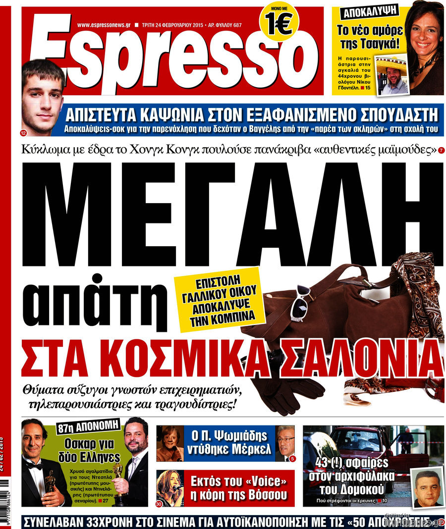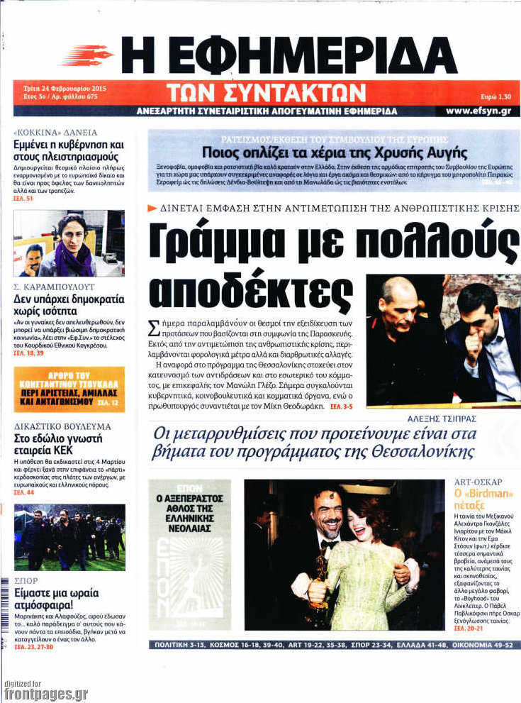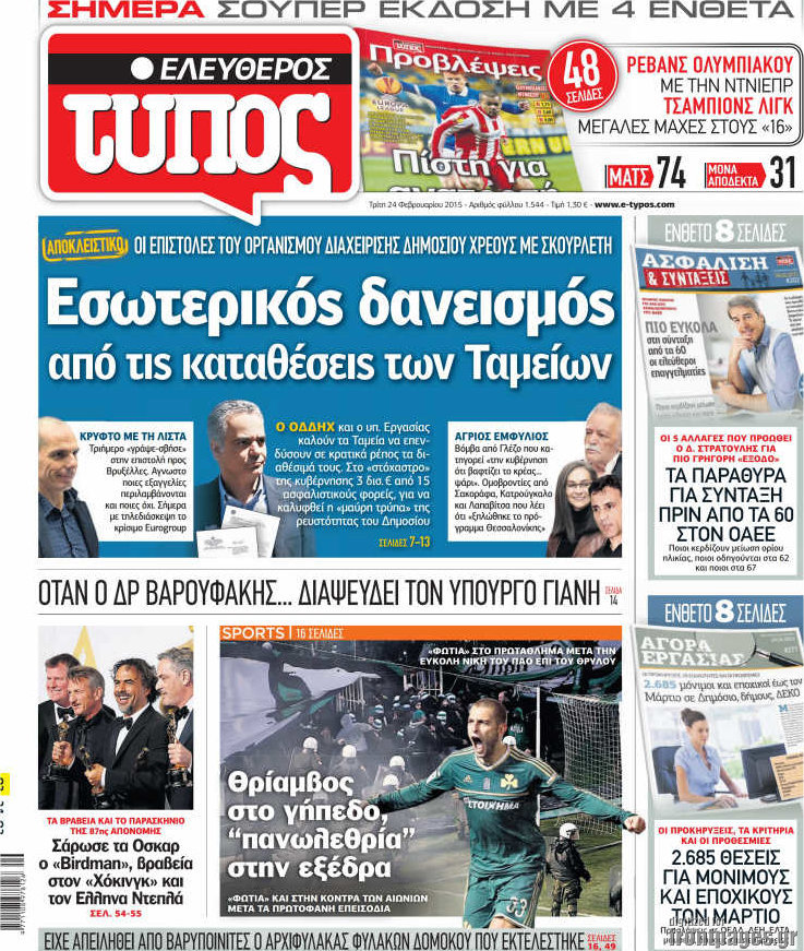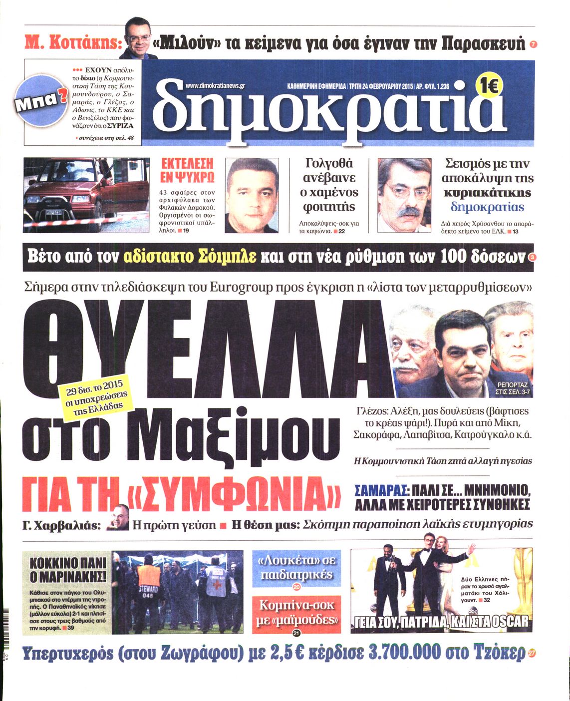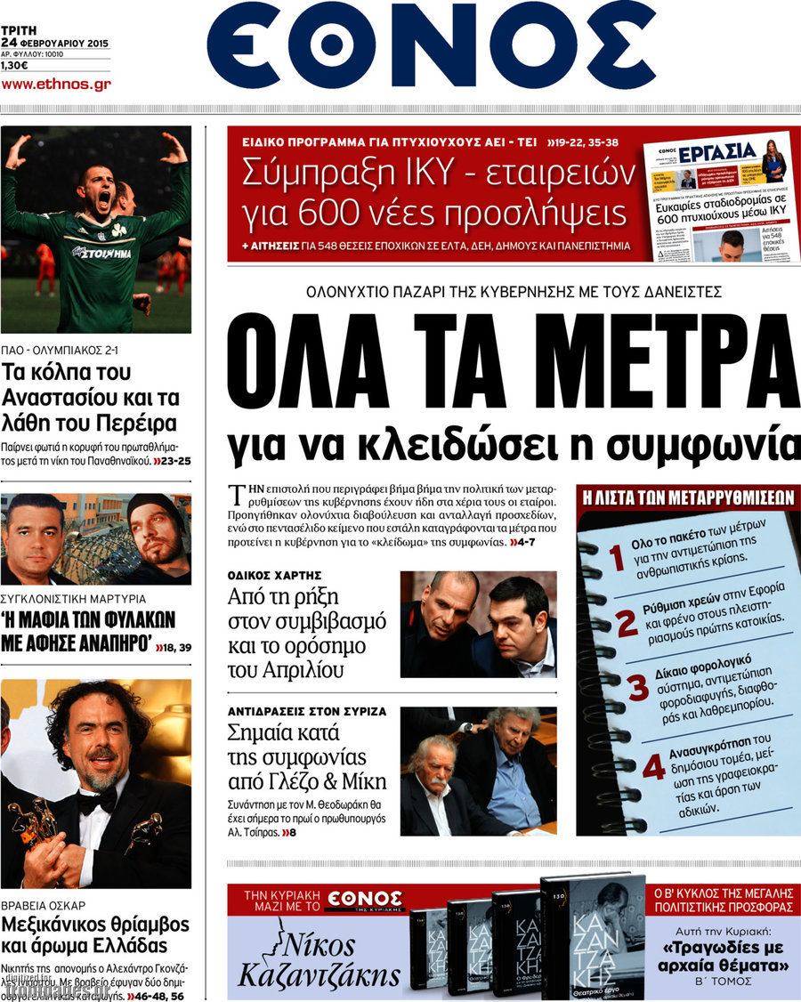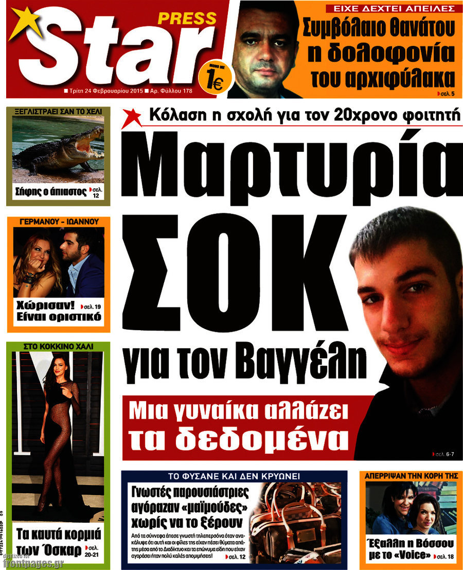 Οι πολιτικές εφημερίδες Enikos Newsroom 07:55, Τρίτη 24 Φεβρουαρίου 2015 Media Διαβάστε τα σημερινά πρωτοσέλιδα των πολιτικών εφημερίδων: , ΕΦΗΜΕΡΙΔΕΣ ΠΟΛΙΤΙΚΕΣ ΕΦΗΜΕΡΙΔΕΣ ΠΡΩΤΟΣΕΛΙΔΑ Μοιράσου το: σχολίασε κι εσύ (0 σχόλια) Ακολουθήστε το enikos.gr στο Google News και μάθετε πρώτοι όλες τις ειδήσεις Δείτε όλες τις τελευταίες ειδήσεις από την Ελλάδα και τον Κόσμο στο enikos.gr Ειδήσεις Ροή Ειδήσεων 6 ώρες πριν Χριστούγεννα στα μπλόκα οι αγρότες: Άνοιξαν στα διόδια και μοίρασαν προϊόντα στους πολίτες – Νέα σύσκεψη την Κυριακή στη Νίκαια 7 ώρες πριν Κύκλωμα διακίνησης ναρκωτικών σε σχολεία: Τηλεφωνούσαν στους ανηλίκους την ώρα του μαθήματος – Οι διάλογοι-σοκ, τα «ψευδώνυμα» και τα βασανιστήρια 6 ώρες πριν Αρχεία Επστάιν: Οι 500 σελίδες που λείπουν, τα αναπάντητα ερωτήματα και οι επώνυμοι – Τι έπεται 8 ώρες πριν Ζελένσκι: Μόνο οι ΗΠΑ και ο Τραμπ μπορούν να πιέσουν τη Ρωσία να βάλει τέλος στον πόλεμο 8 ώρες πριν Φοινικούντα: Προφυλακιστέος ο 30χρονος για συνέργεια στη διπλή δολοφονία – Και άλλα πρόσωπα στο «μικροσκόπιο» 6 ώρες πριν Αποκαλύφθηκε το άγνωστο «GPS» της αρχαιότητας – Πώς οι ναοί «φώτιζαν» τον δρόμο των ναυτικών πριν από την εφεύρεση των φάρων 7 ώρες πριν Ύπνος: Η διατροφή που μπορεί να σας βοηθήσει να κοιμάστε καλύτερα και να ζήσετε περισσότερο 8 ώρες πριν Αριθμολογία: Ο αριθμός του φύλακα αγγέλου σας, με βάση τον μήνα γέννησής σας – «Έτσι σας στέλνει σημάδια το σύμπαν» 20 ώρες πριν Enerwave: Το νέο «ρεύμα» στη λιανική ενέργειας που αλλάζει την εμπειρία του καταναλωτή 20 δευτερόλεπτα πριν Γιαννούλης Λαρεντζάκης: Πρόταση γάμου στην αρραβωνιαστικιά του, Γιώτα Γεωργοπούλου, έκανε ο παίκτης του Ολυμπιακού – Δείτε φωτογραφίες και βίντεο 7 λεπτά πριν Σήμερα με τη Realnews: Δωροεπιταγή 10€ 14 λεπτά πριν Χριστουγεννιάτικο τραπέζι: Την… ανηφόρα έχουν πάρει οι τιμές στα αμνοερίφια – Σε έτοιμα παρασκευάσματα κρέατος καταλήγουν οι καταναλωτές 30 λεπτά πριν «Εσκεμμένη παράλυση» της διαδικασίας καταμέτρησης των αποτελεσμάτων των εκλογών στην Ονδούρα, καταγγέλλει η αποστολή παρατηρητών της ΕΕ 45 λεπτά πριν Λευτέρης Πετρούνιας – Βασιλική Μιλλούση: Οι μαγευτικές φωτογραφίες από το ταξίδι τους στο Στρασβούργο με τις κόρες τους ENIKOS NETWORK Οι γυναίκες αποκαλύπτουν το πιο ελκυστικό πράγμα που μπορεί να κάνει ένας άνδρας Ομορφιά και αντιγήρανση: Ειδικοί μιλούν για συσκευές περιποίησης του δέρματος «Πολεμική» προετοιμασία από την ευρωπαϊκή βιομηχανία ενέργειας – Η Eurelectric ζητεί «ομπρέλα» προστασίας για τις υποδομές Ακύρωση ΑΦΜ για απάτες – Ποιους βάζει στο στόχαστρο η ΑΑΔΕ Χαρτογραφώντας το «σημείο χωρίς επιστροφή»: Για πρώτη φορά αποκαλύπτεται με λεπτομέρεια το ακανθώδες όριο της ατμόσφαιρας τ... Η Google καταργεί τη λειτουργία «dark web report» – Πώς θα μπορούν οι χρήστες να διαγράφουν τα δεδομένα τους περισσότερα 05:08 , Κυριακή 21 Δεκεμβρίου 2025 Σήμερα με τη Realnews: Δωροεπιταγή 10€ Δωροεπιταγή αξίας 10€ για αγορές άνω των 60€ από τα πολυκαταστήματα FactoryOutlet H προσφορά ι... 04:08 , Κυριακή 21 Δεκεμβρίου 2025 Σήμερα με τη Realnews: Ό,τι και αν αγοράσεις, σκανάρεις και κερδίζεις! Σήμερα με τη Realnews: Ό,τι και αν αγοράσεις, σκανάρεις και κερδίζεις! Με το PADU app, το κορυ... 03:08 , Κυριακή 21 Δεκεμβρίου 2025 Σήμερα με τη Realnews: Instyle, μαζί Drive και Realnews Geopolitics Σήμερα με τη Realnews: Instyle, μαζί Drive και Realnews Geopolitics Instyle Η Άννα Ρεζάν, η Ch... 01:30 , Κυριακή 21 Δεκεμβρίου 2025 Άννα Βίσση: Τα… Social Media «προσκύνησαν» την «απόλυτη» για την συναυλία της στο Καλλιμ